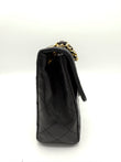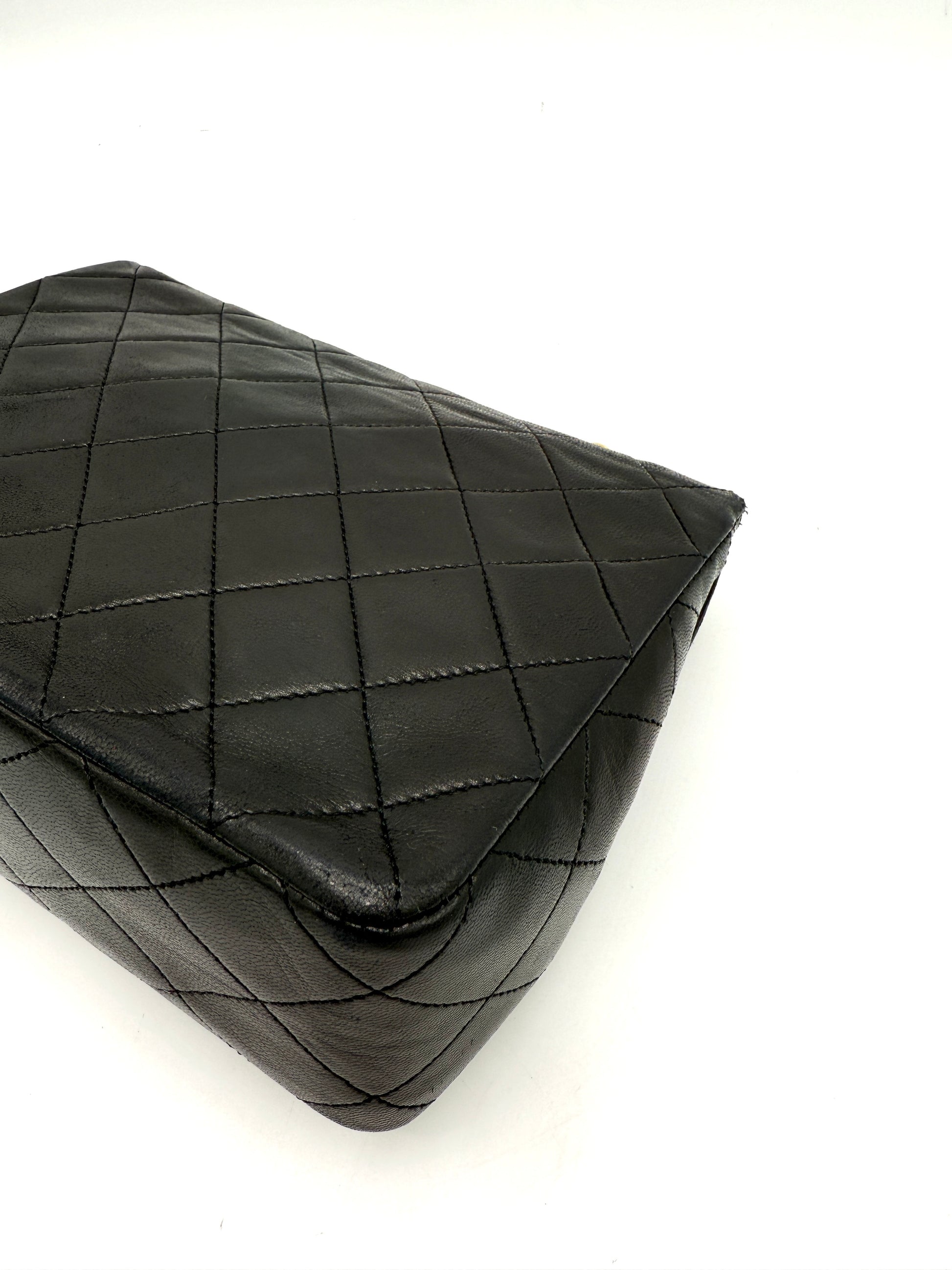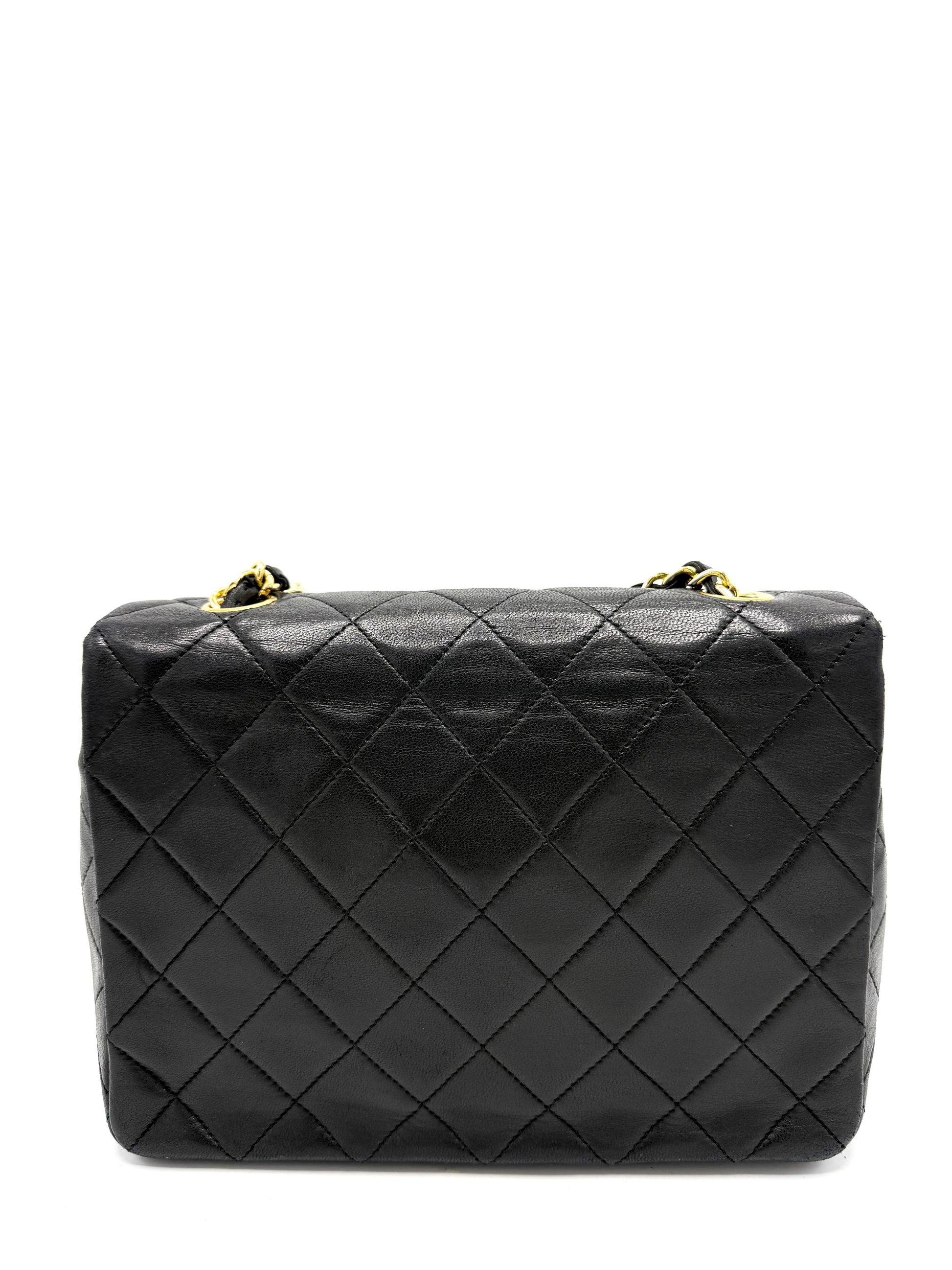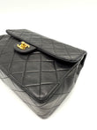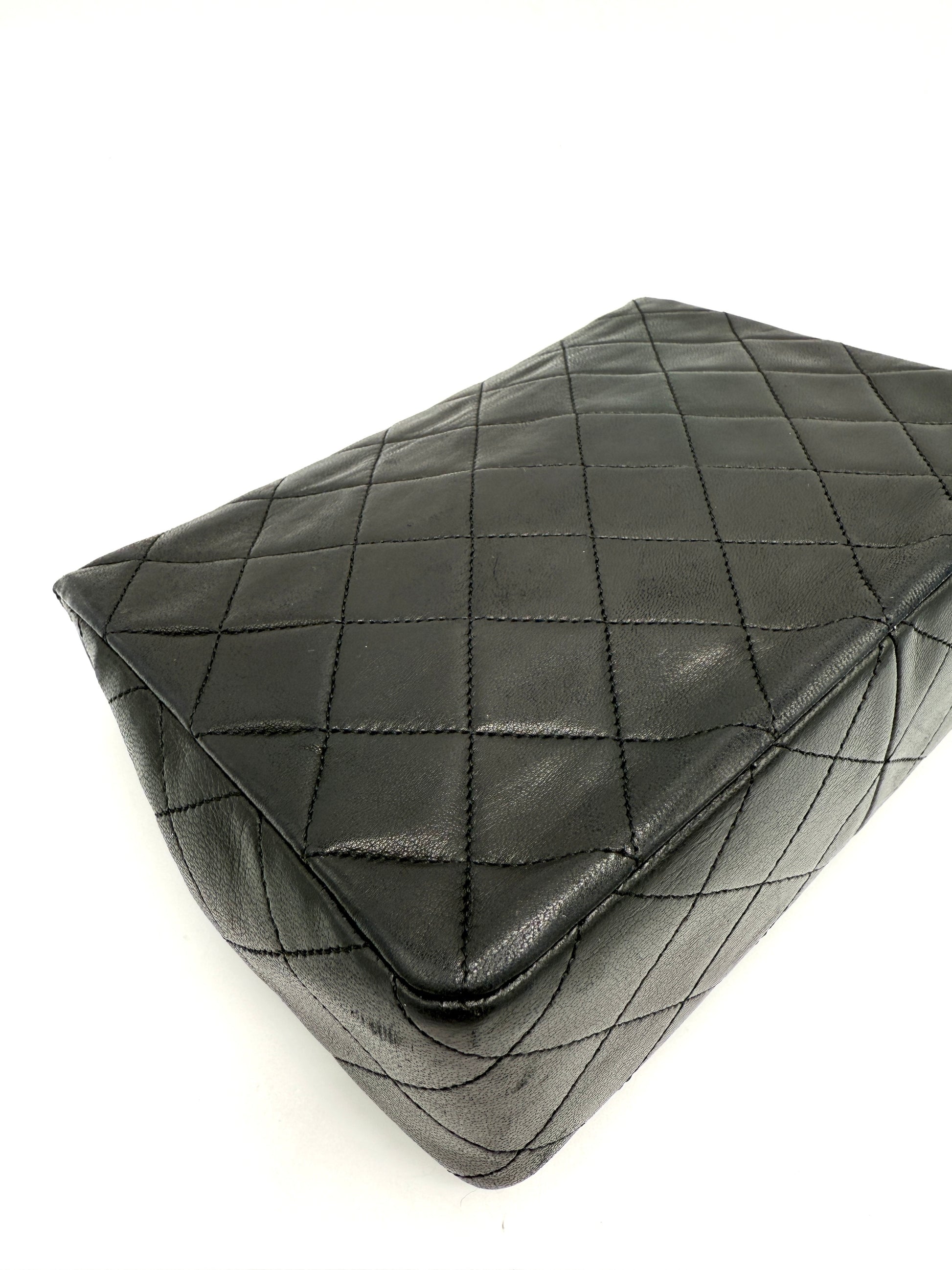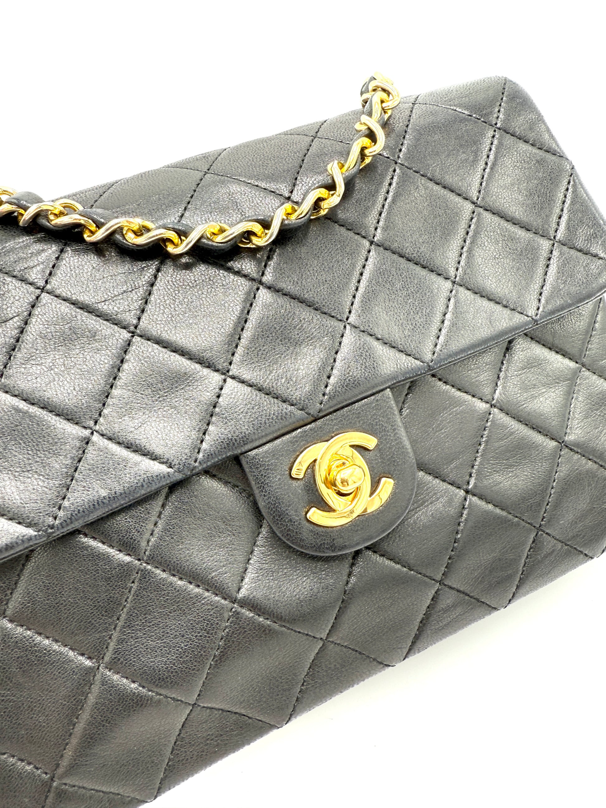 100% Authentic Chanel 24k CC Black Lambskin Square Flap