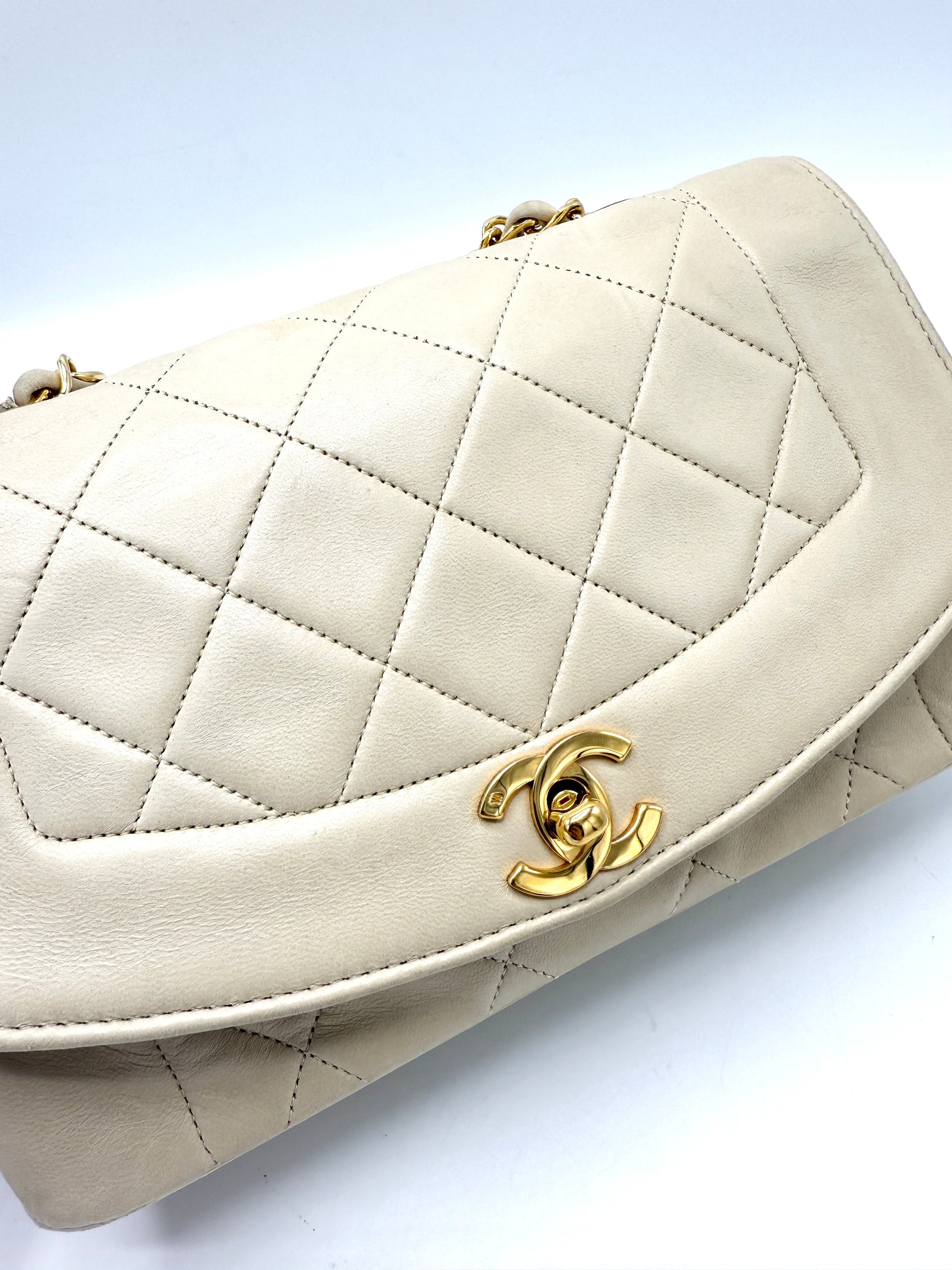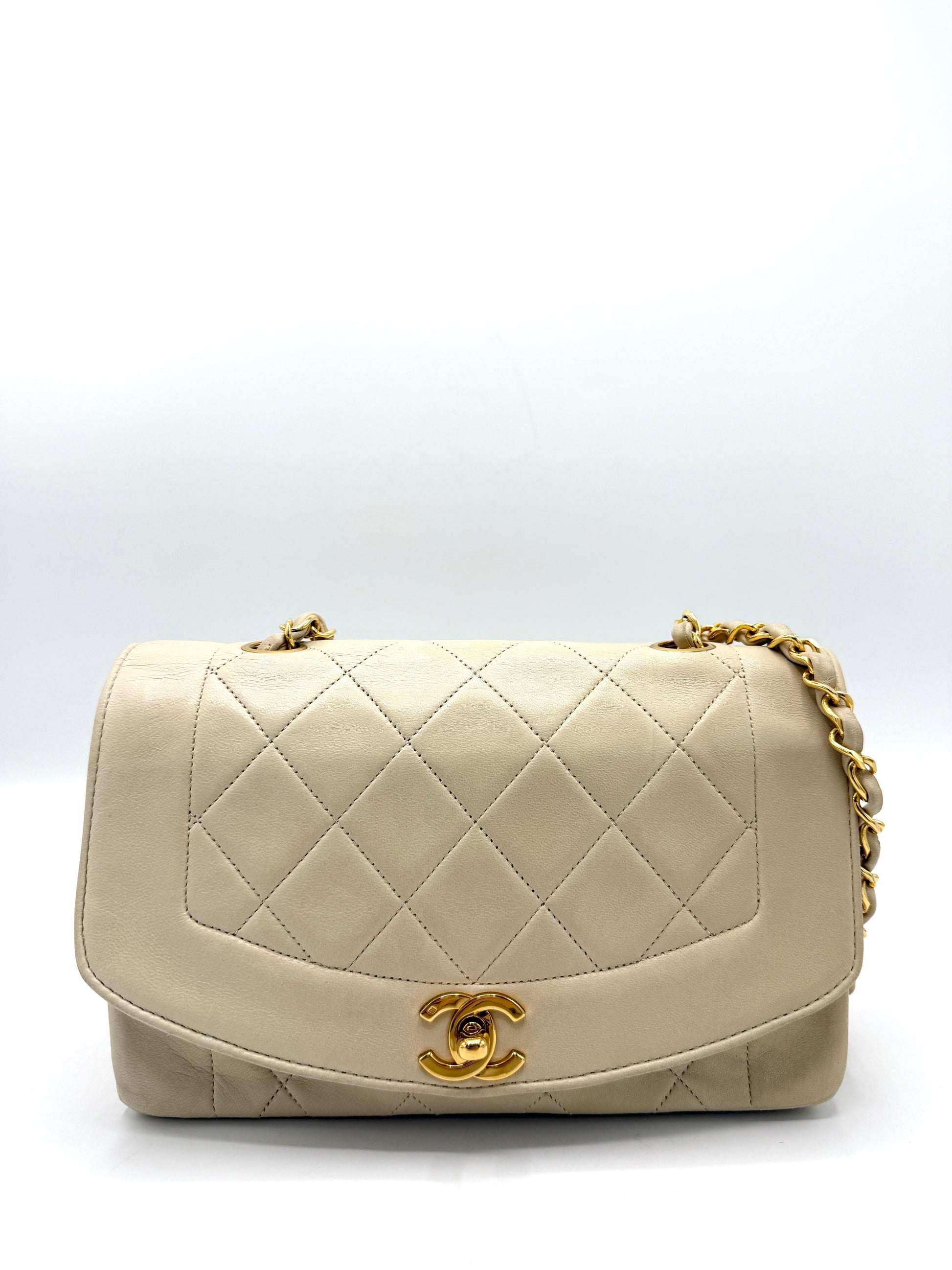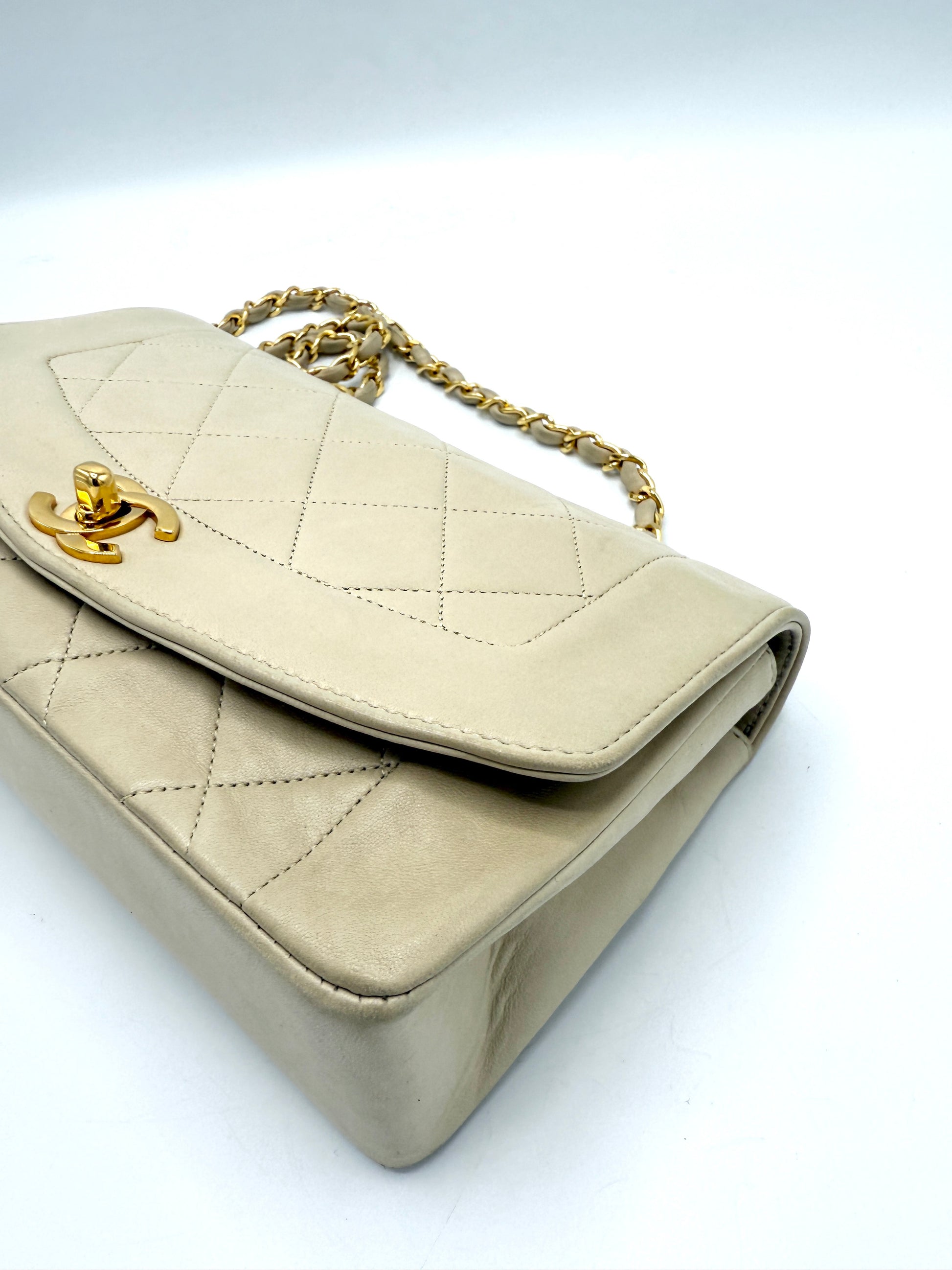 100% Authentic Chanel 24k Clair Beige Small Diana Flap
