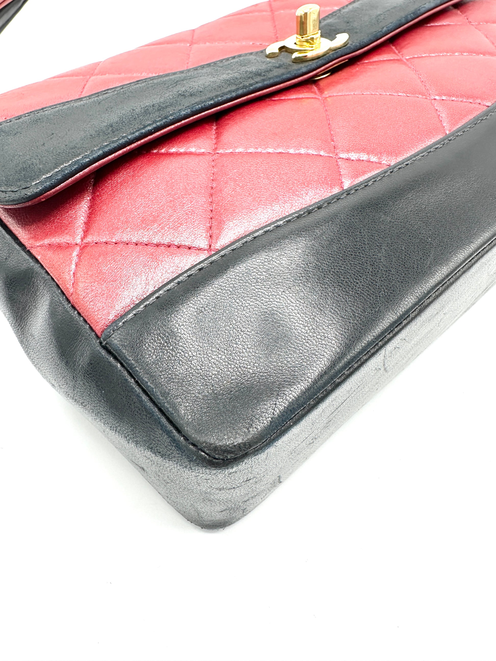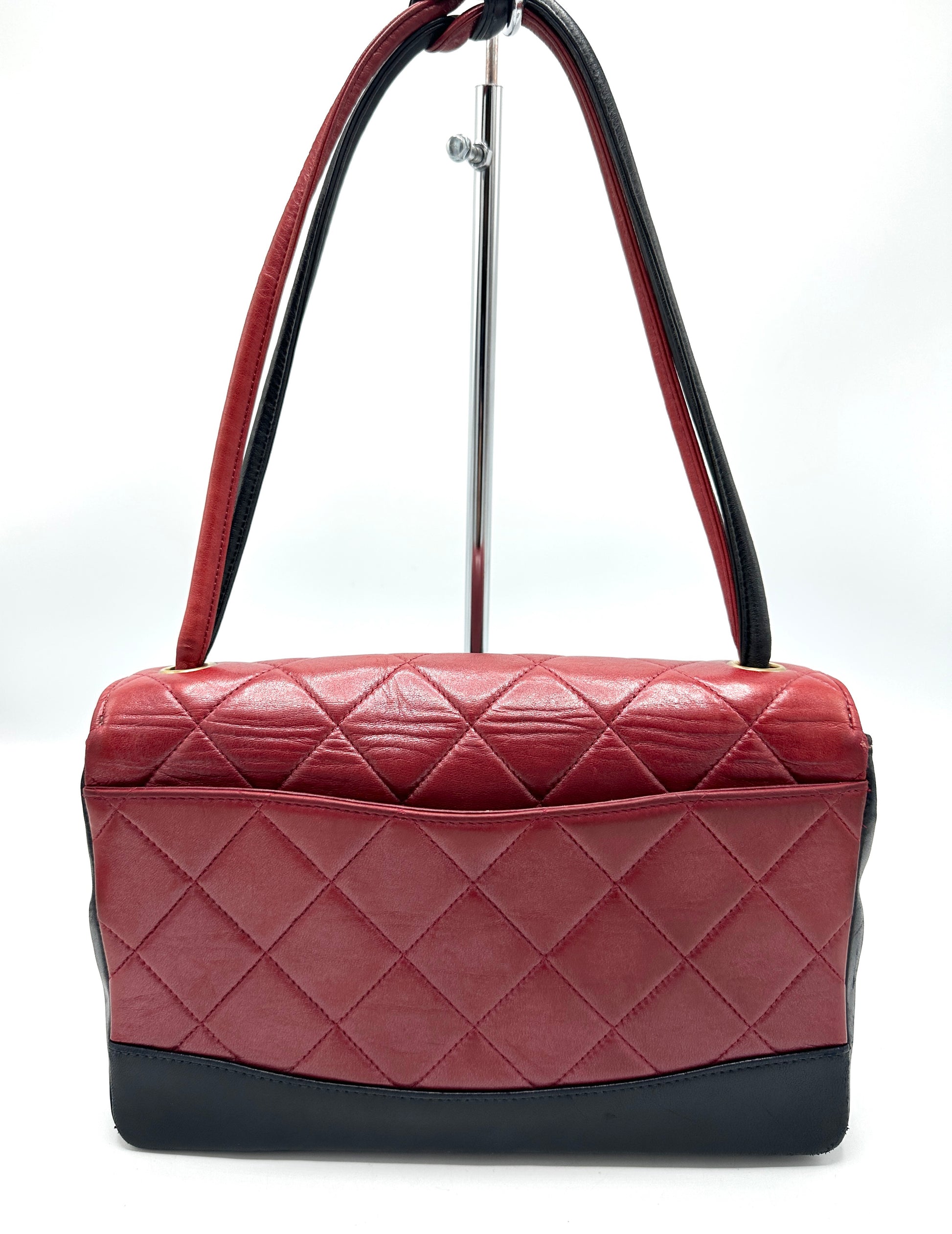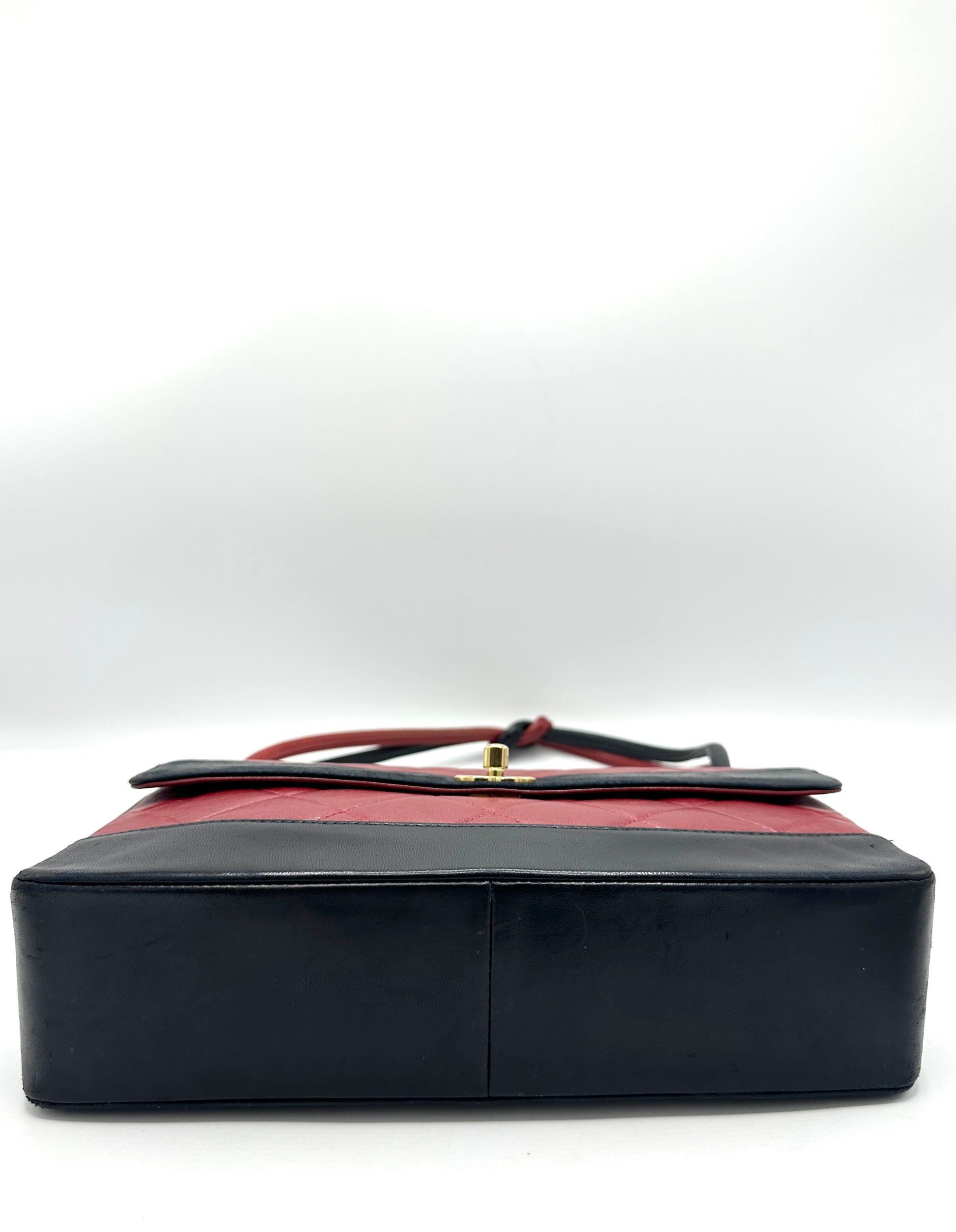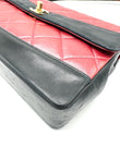 24k Metallic Red Quilted/Black Lambskin Flap Shoulder Bag
