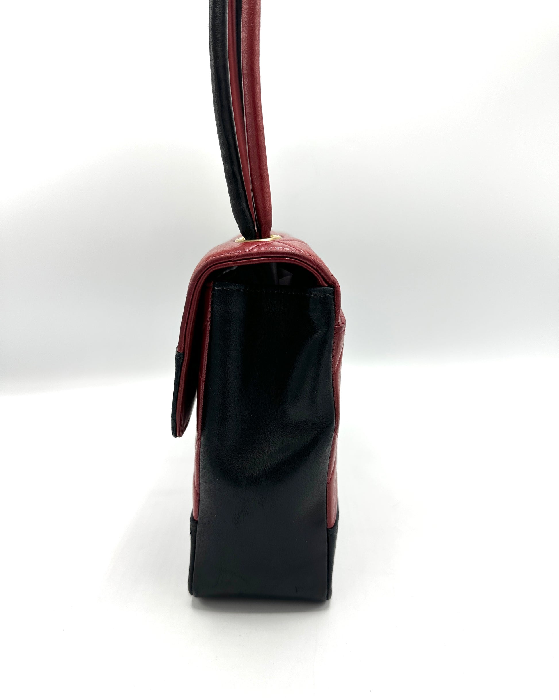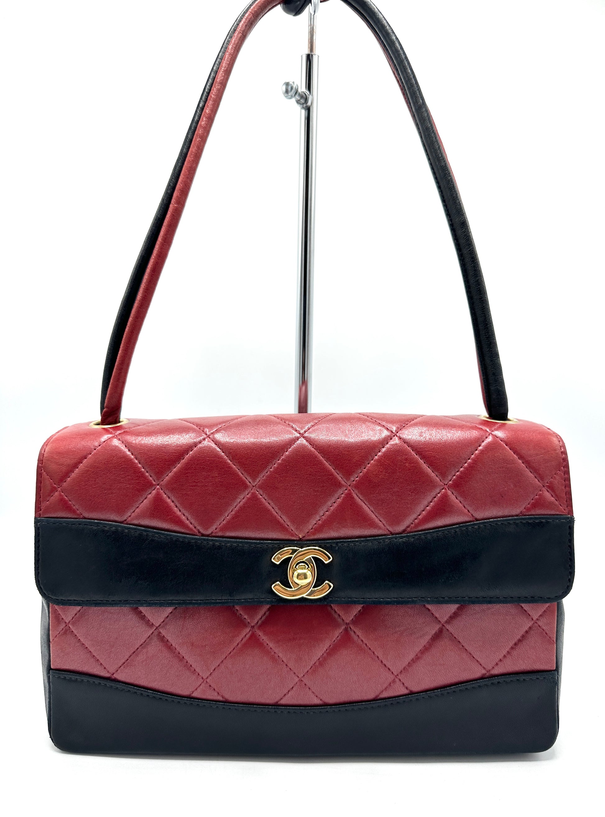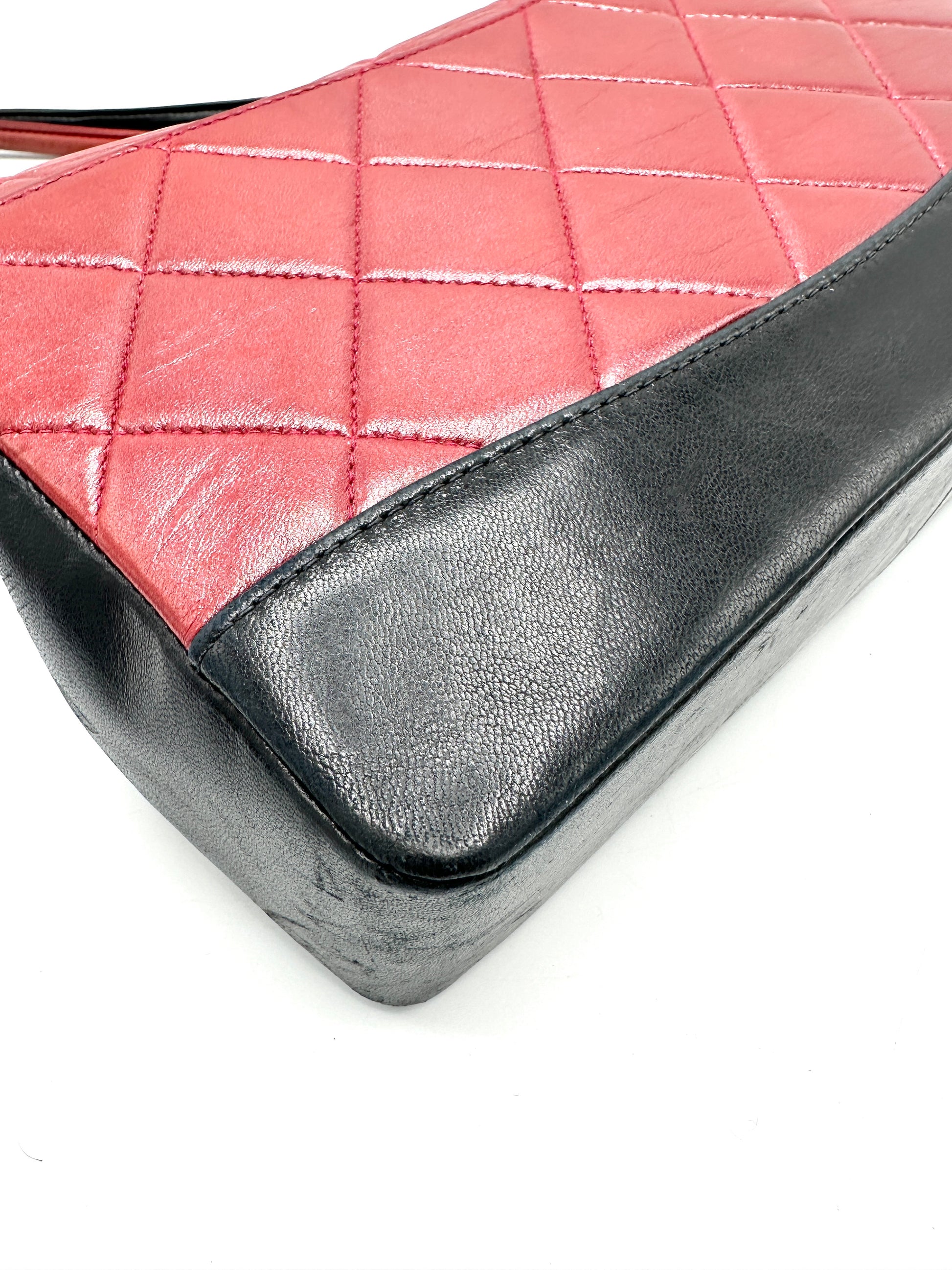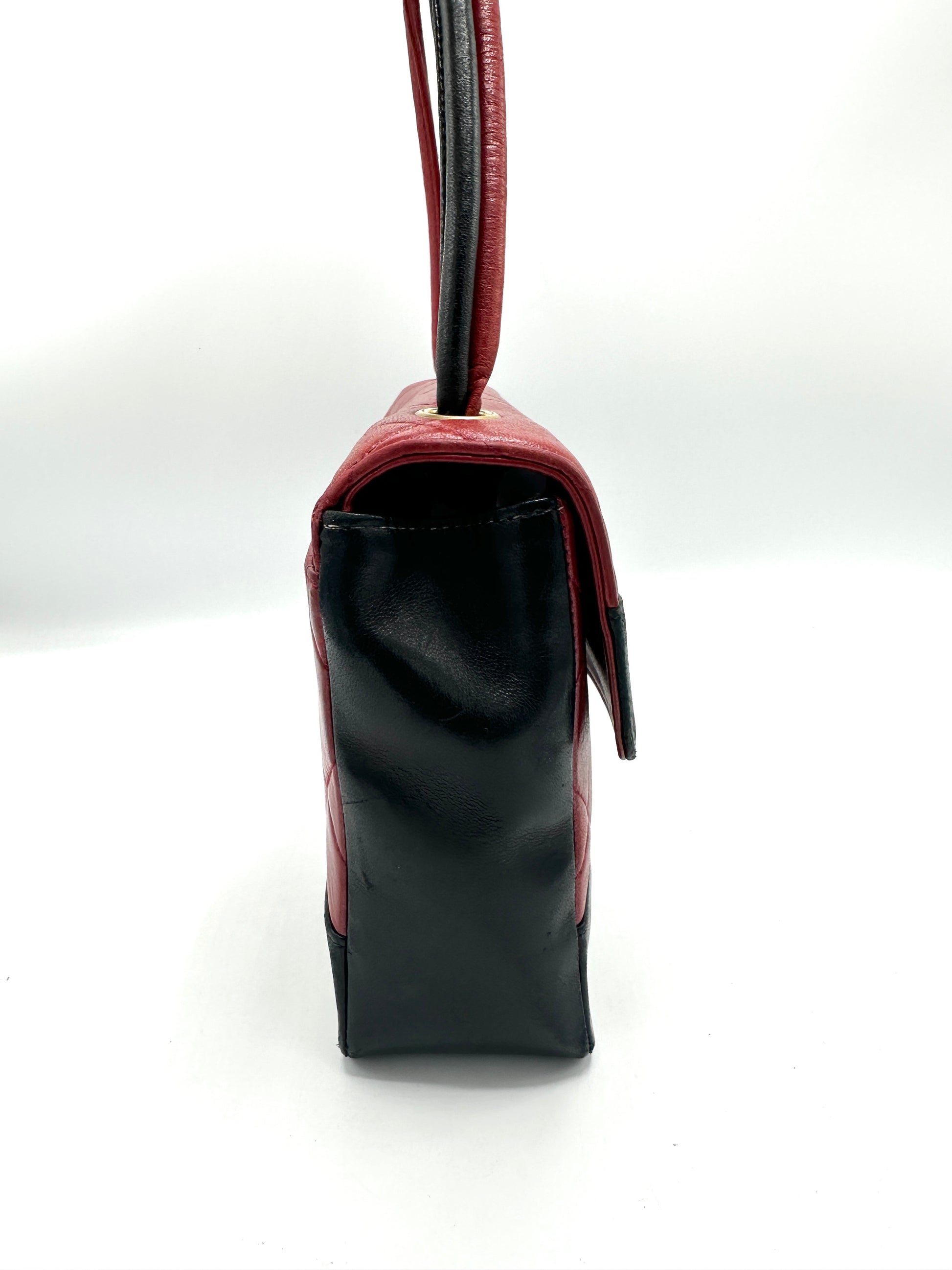 24k Metallic Red Quilted/Black Lambskin Flap Shoulder Bag