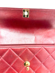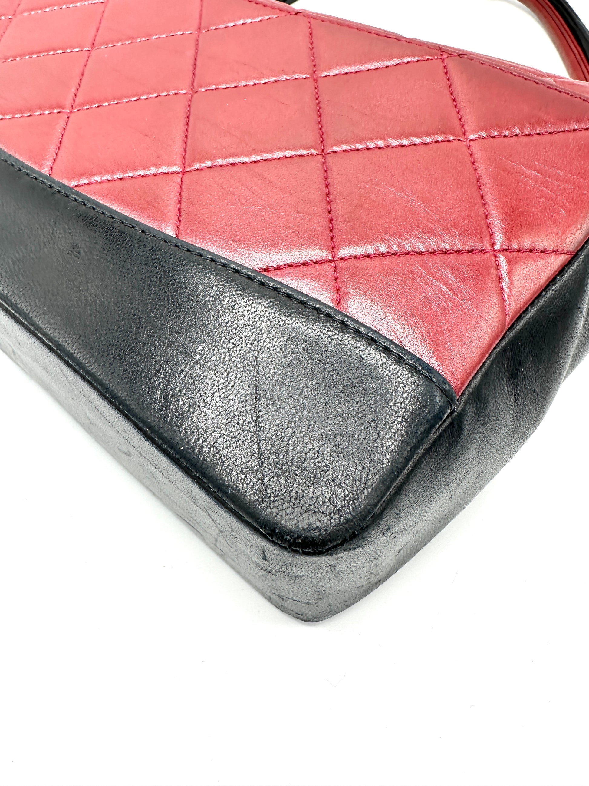 100% Authentic Chanel 24k Metallic Red Quilted/Black Lambskin Flap Shoulder Bag