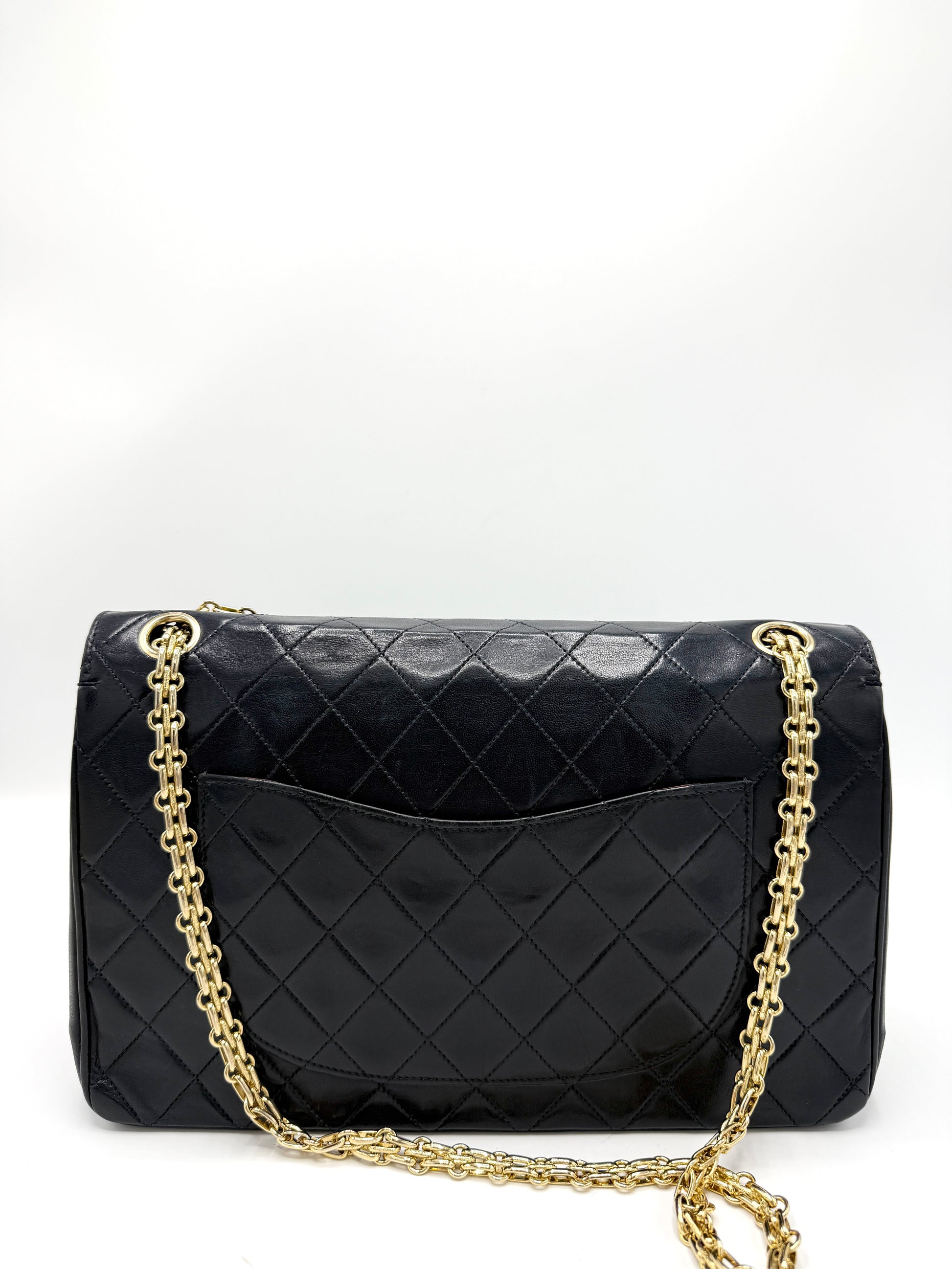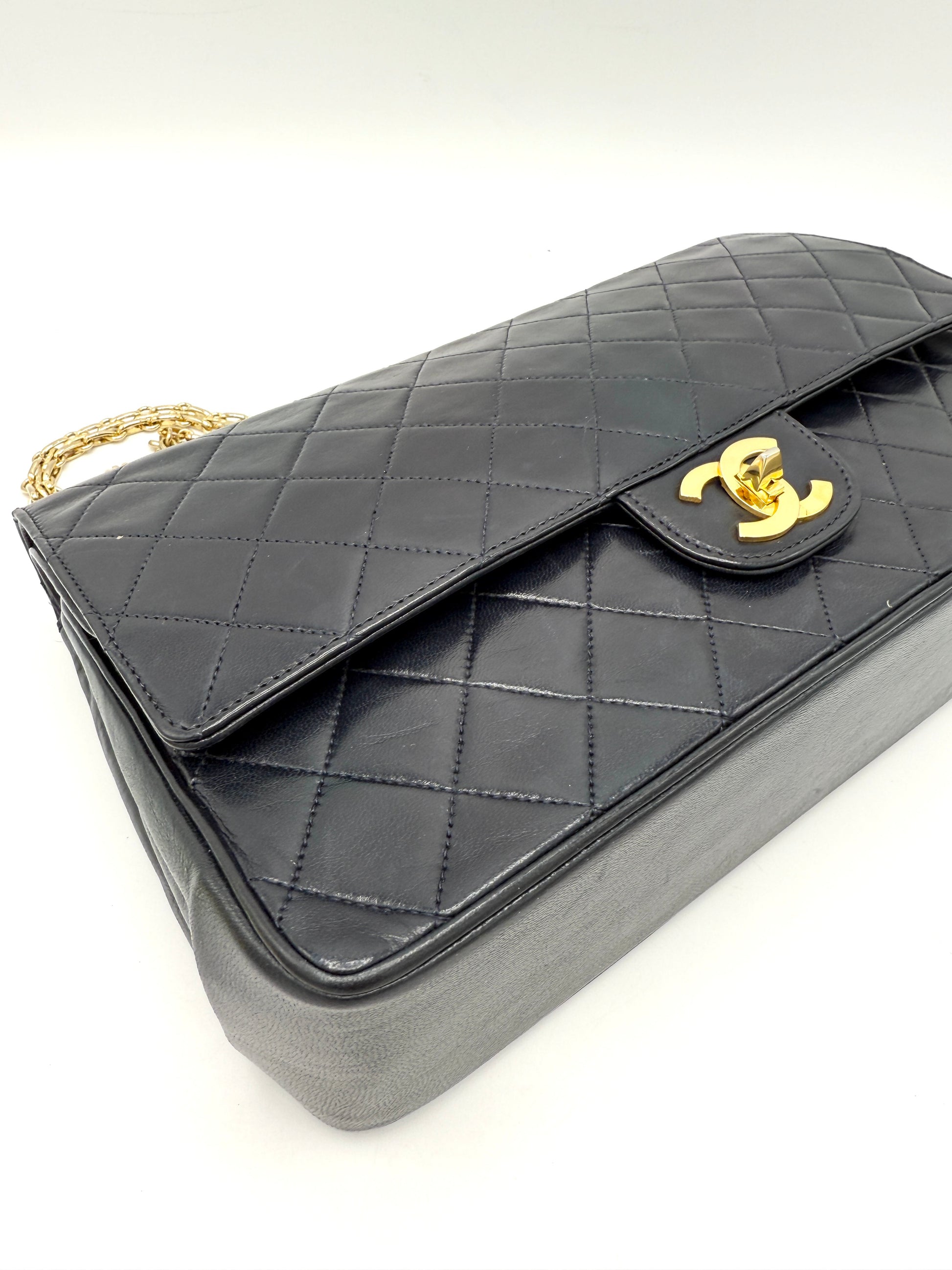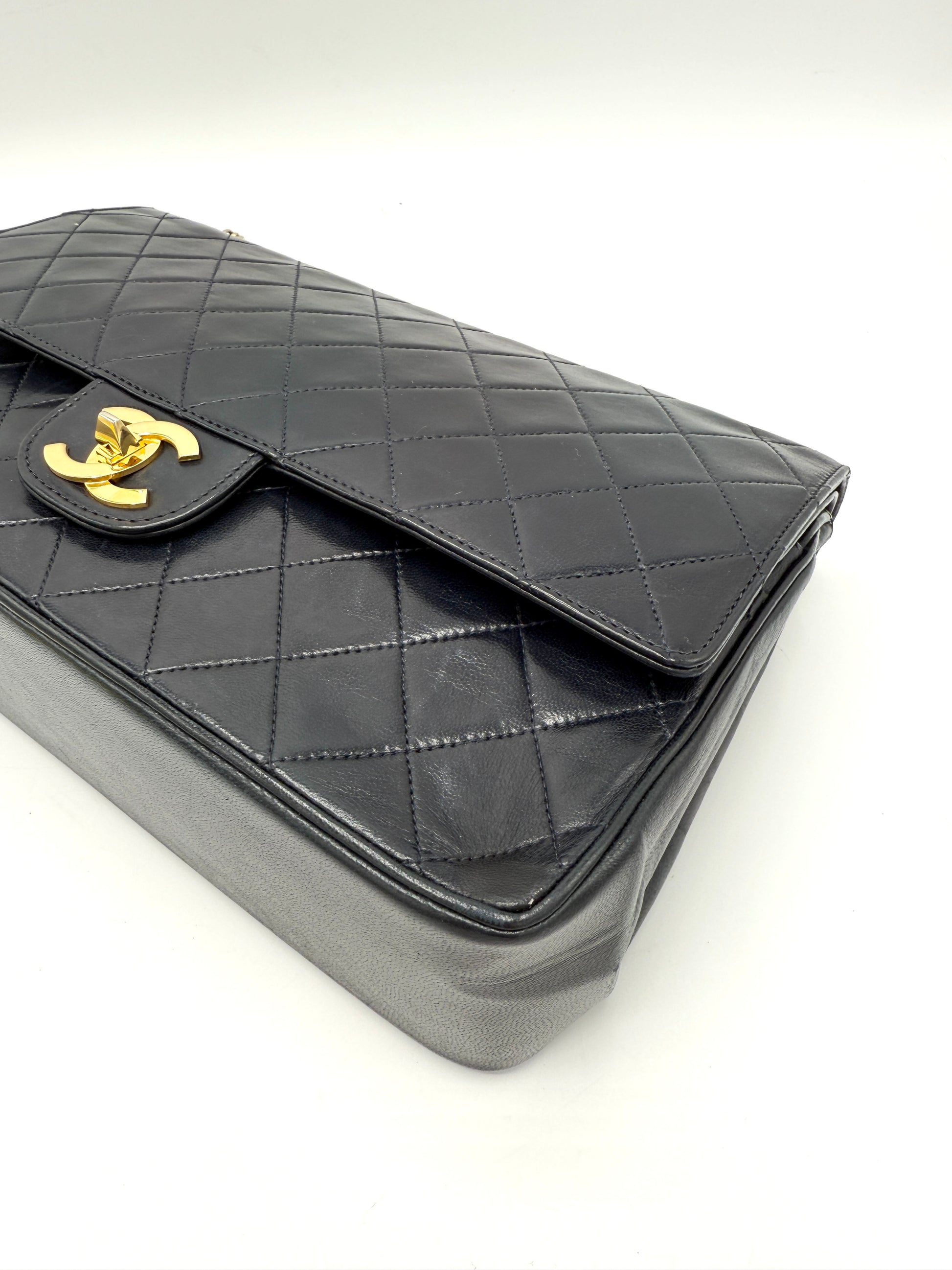100% Authentic Chanel 24k Midnight Blue Quilted Lambskin Reissue Chain Medium Double Flap