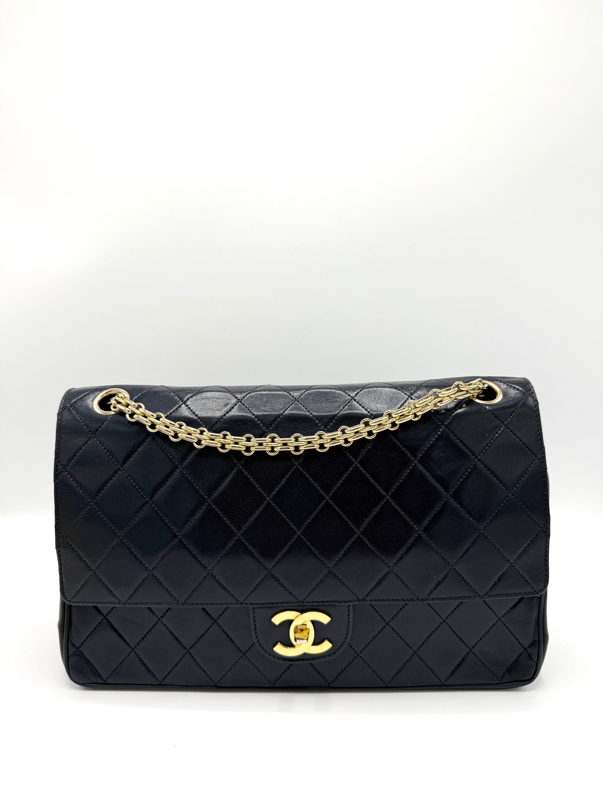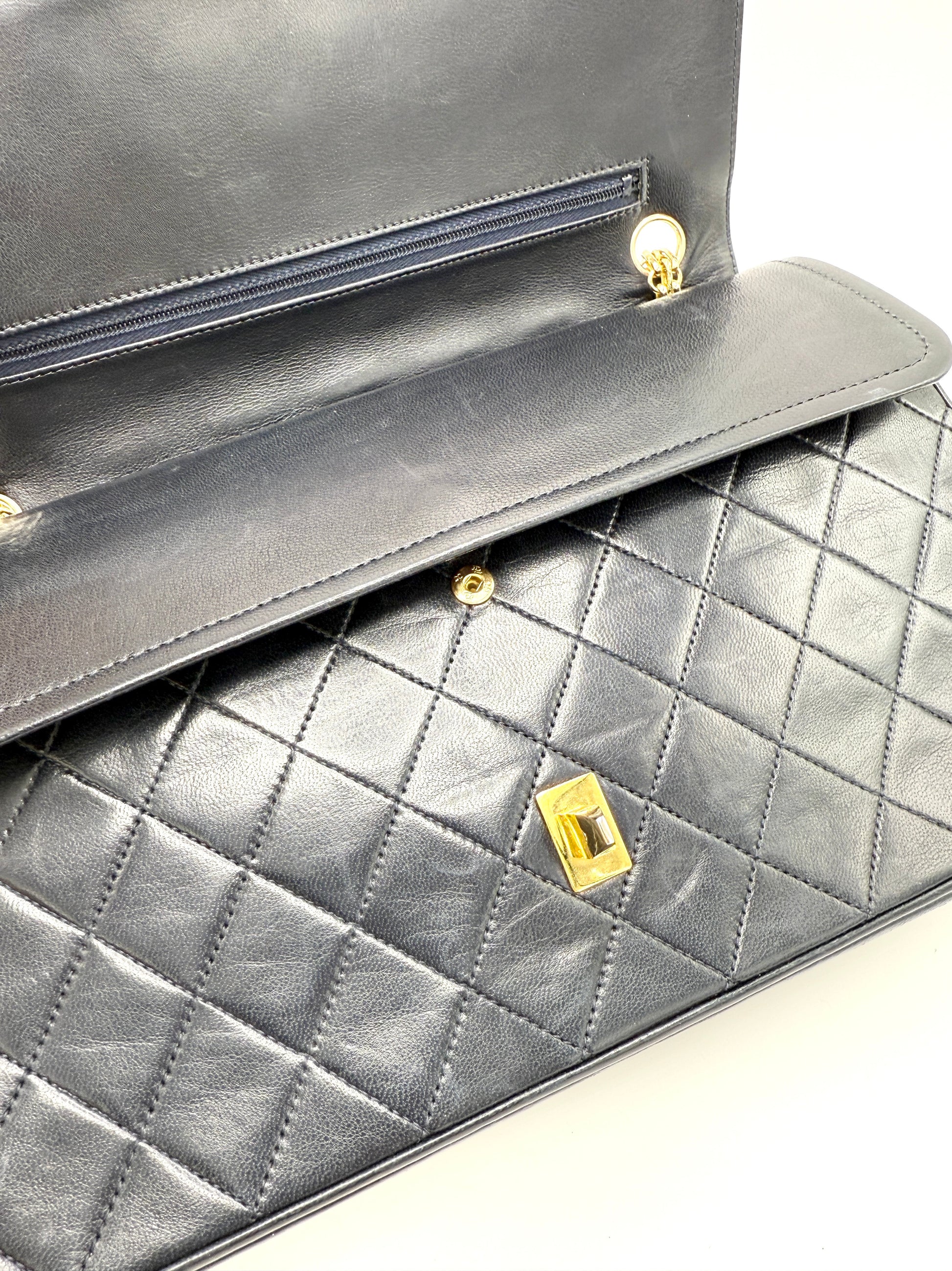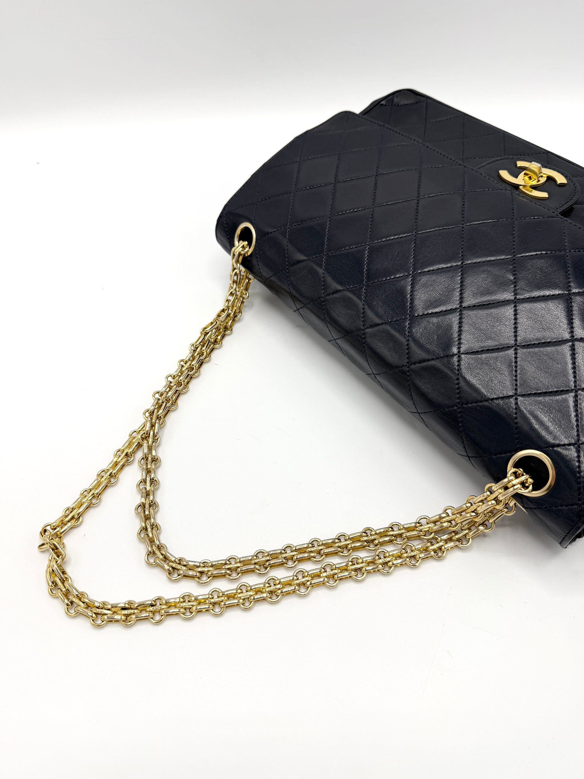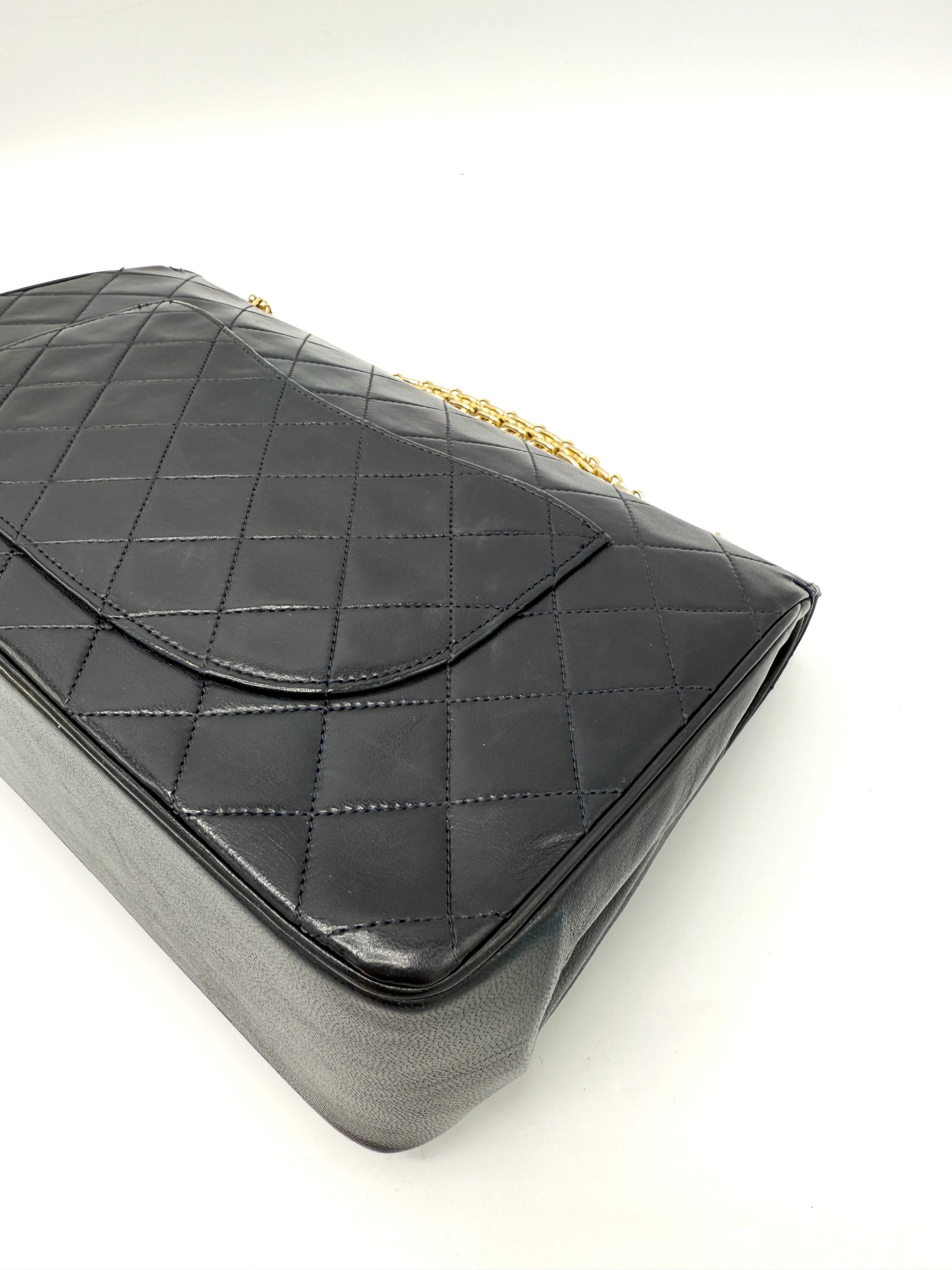 24k Midnight Blue Quilted Lambskin Reissue Chain Medium Double Flap