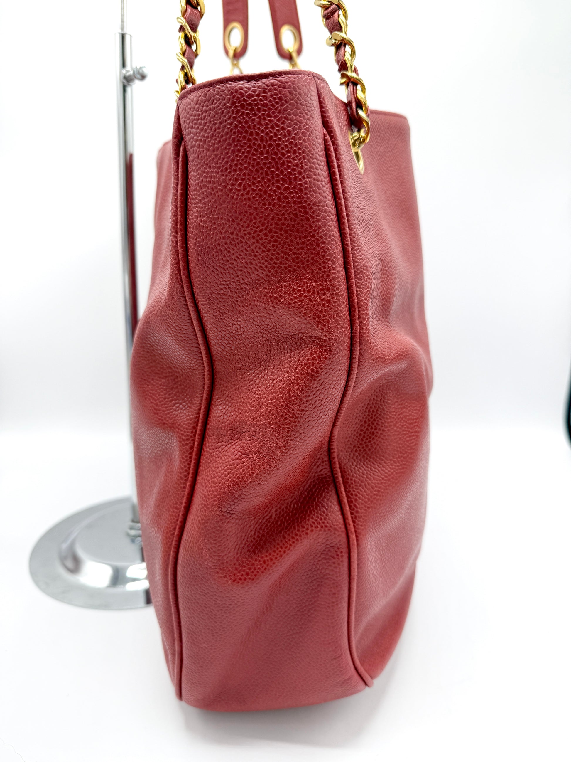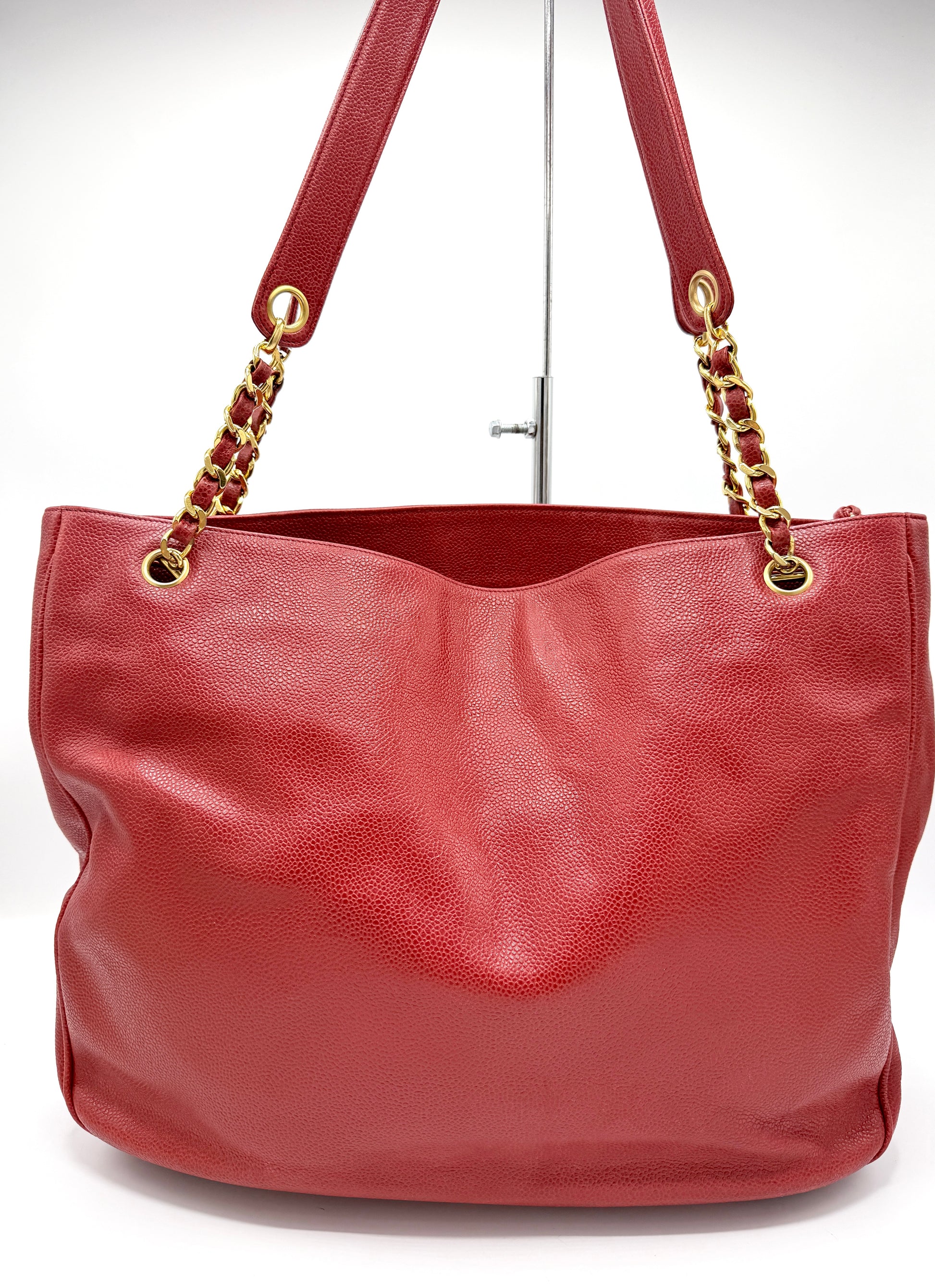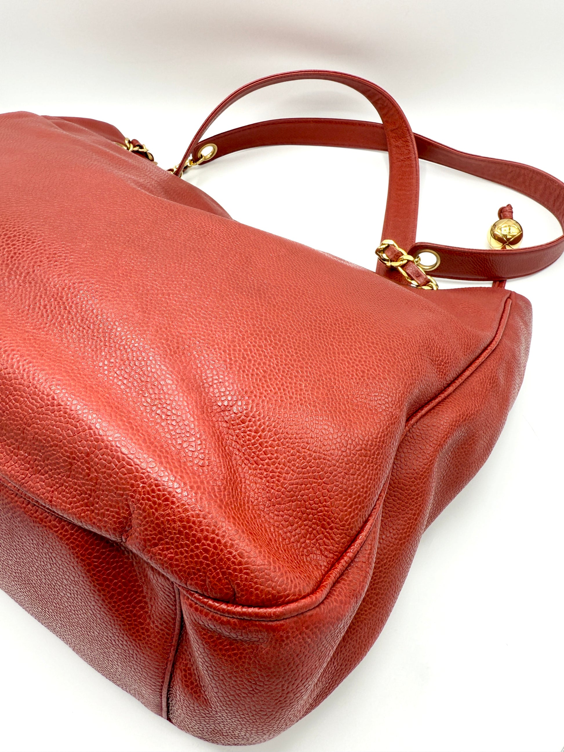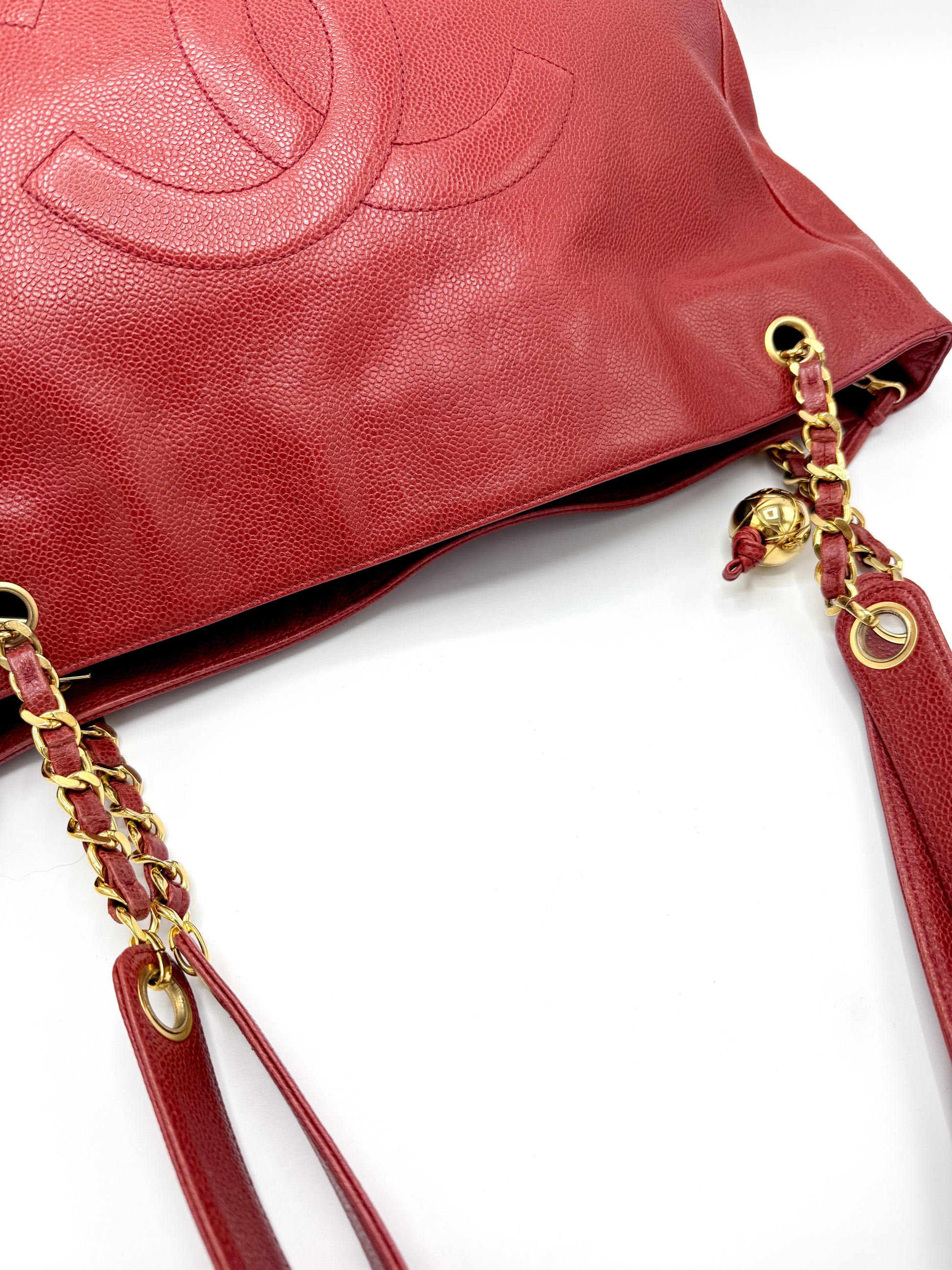 100% Authentic Chanel 24k Rare Red Caviar XL Chain Tote