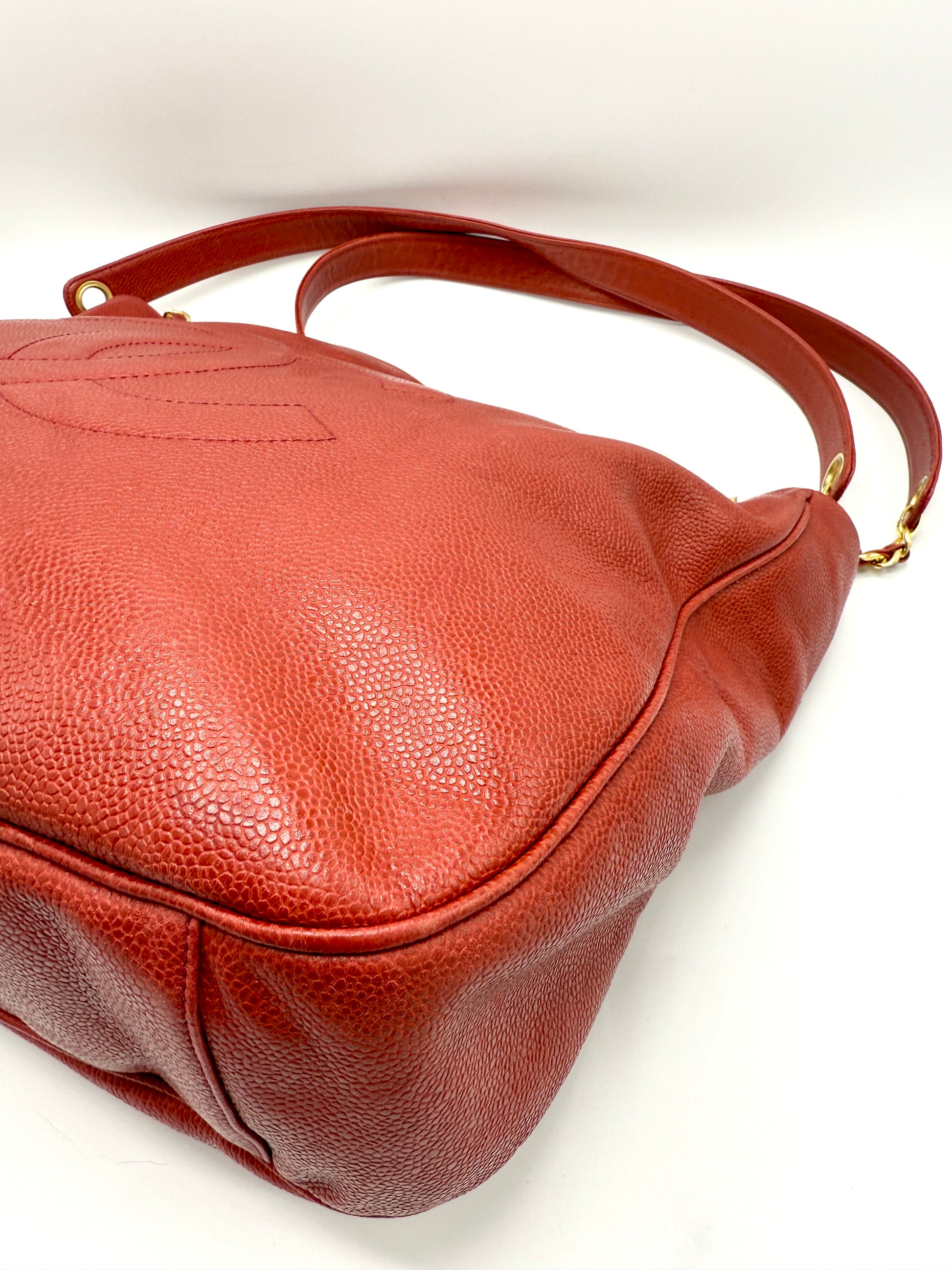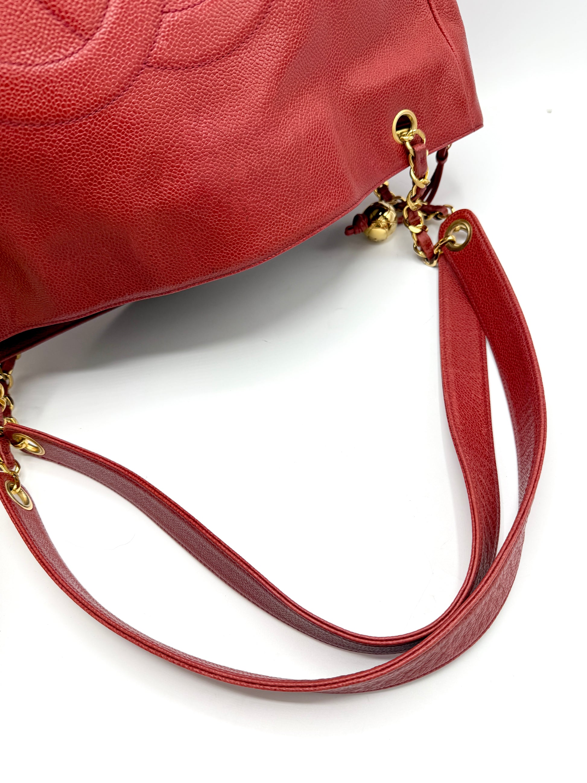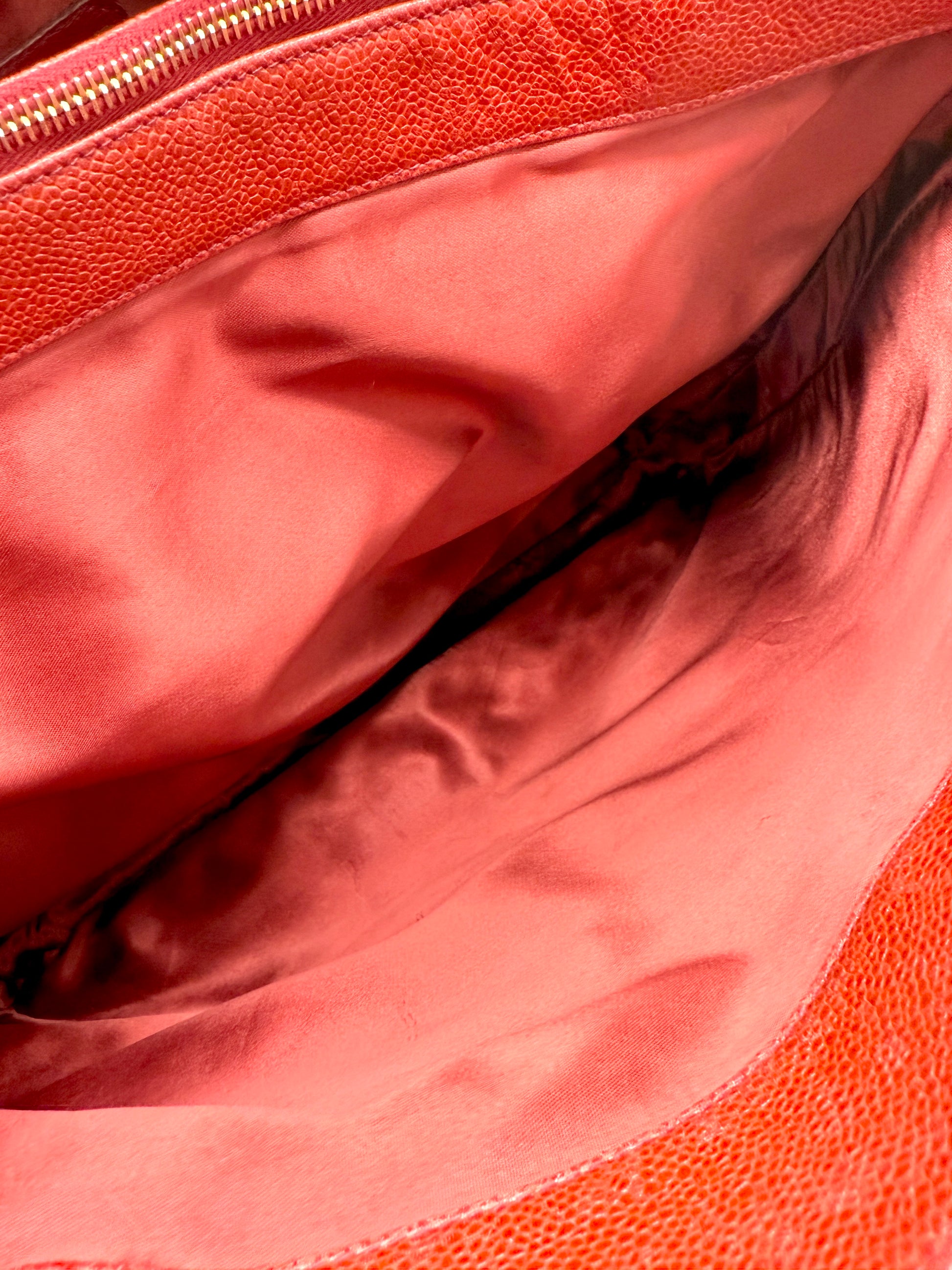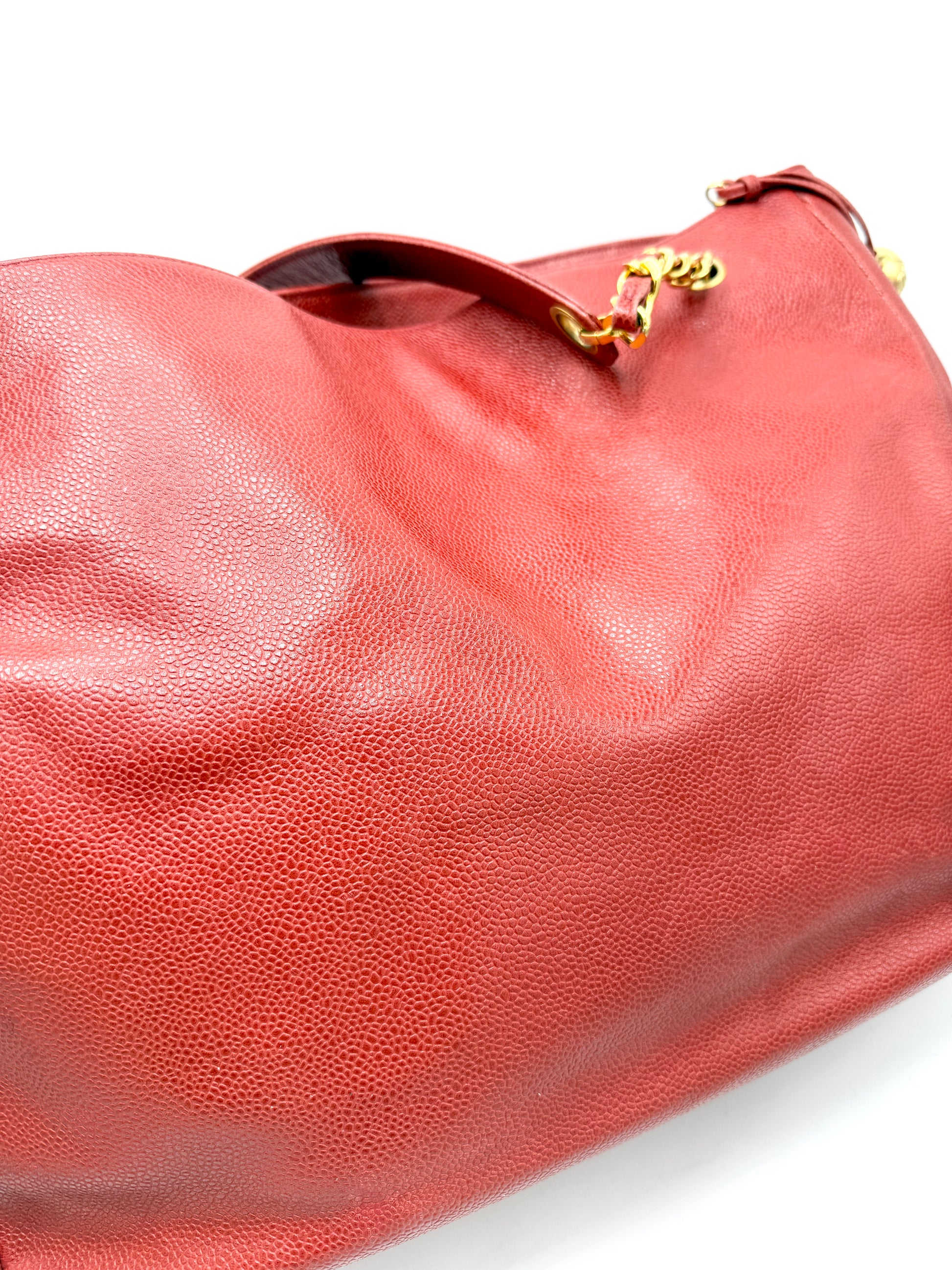100% Authentic Chanel 24k Rare Red Caviar XL Chain Tote