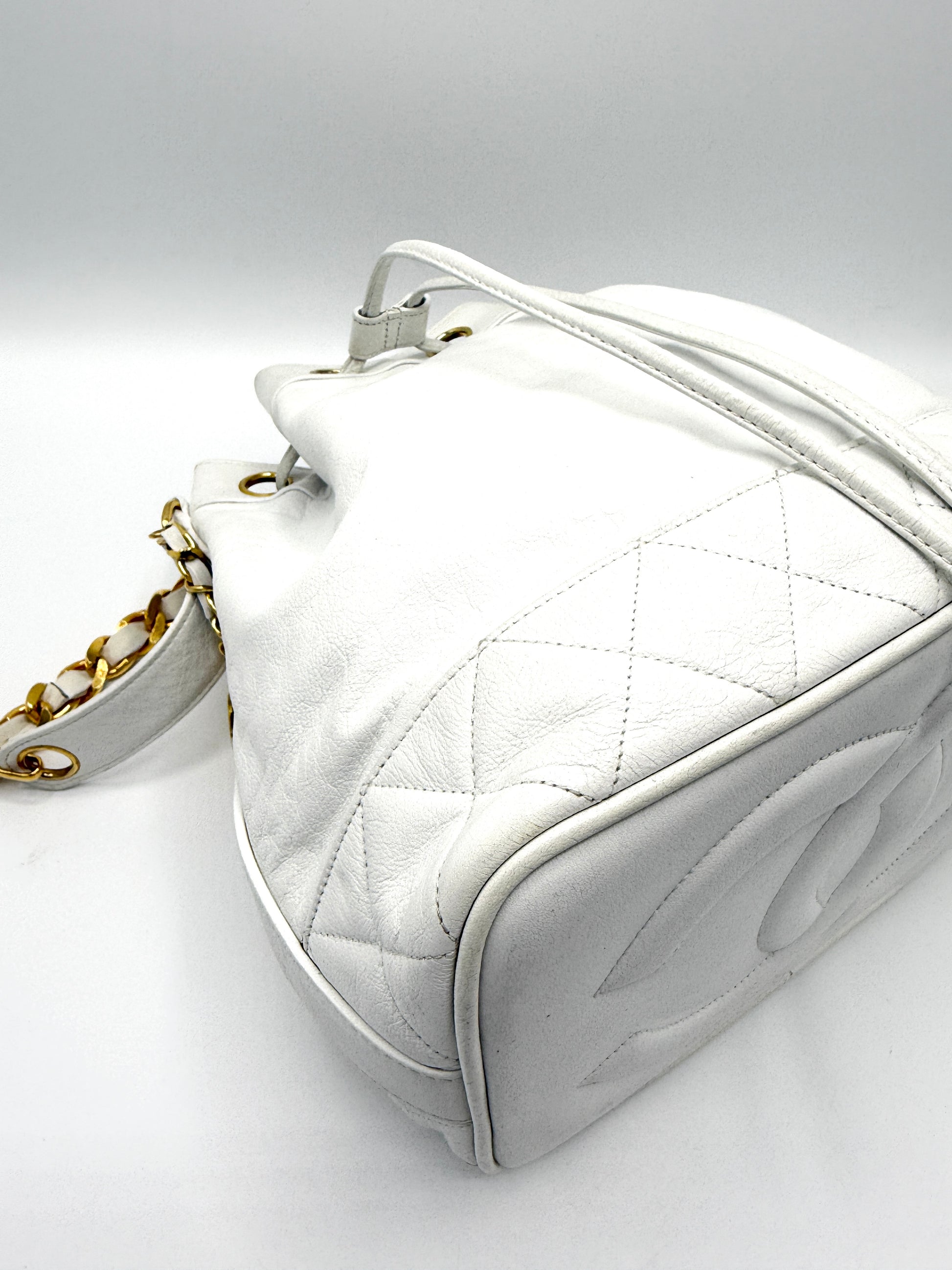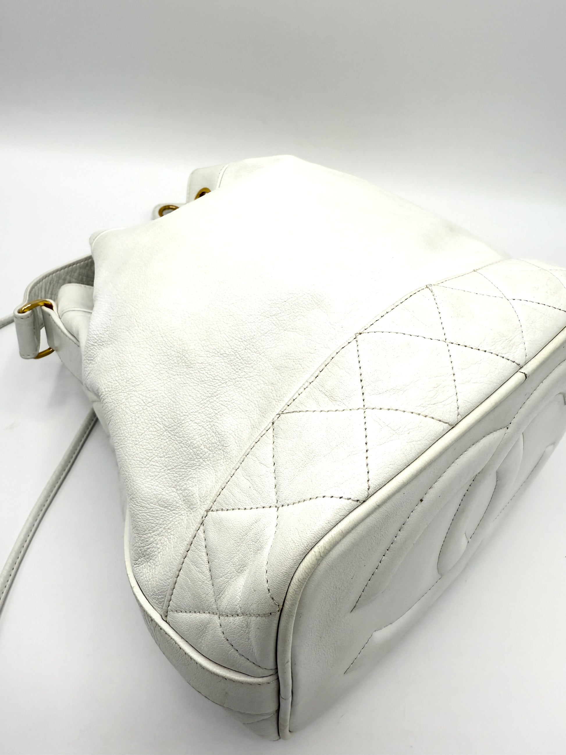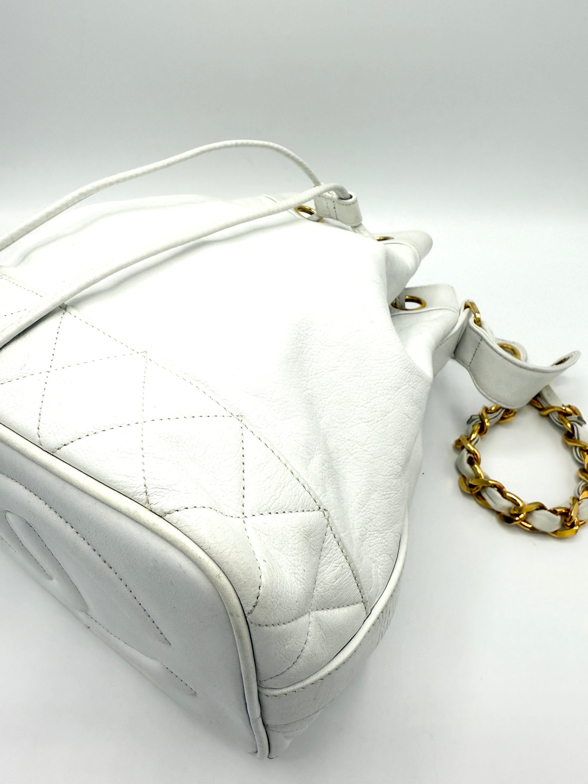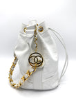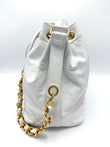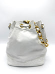 24k White Lambskin CC Medallion Chunky Chain Bucket Bag