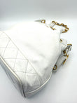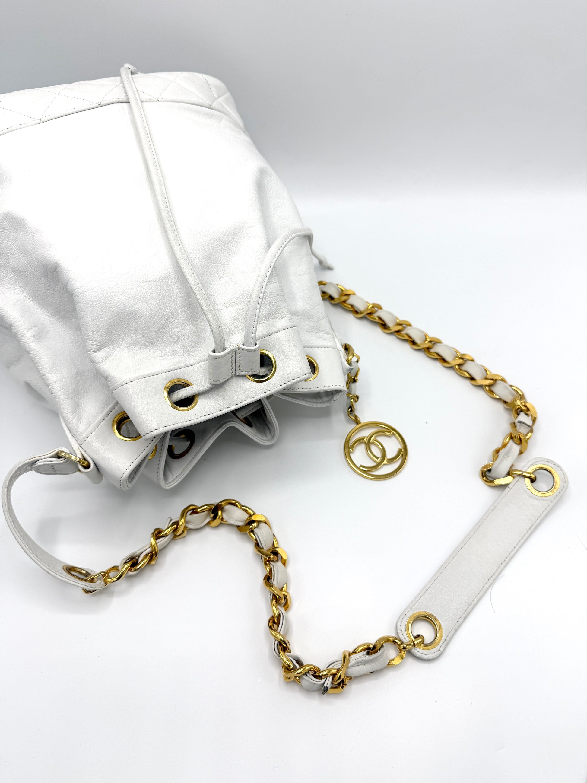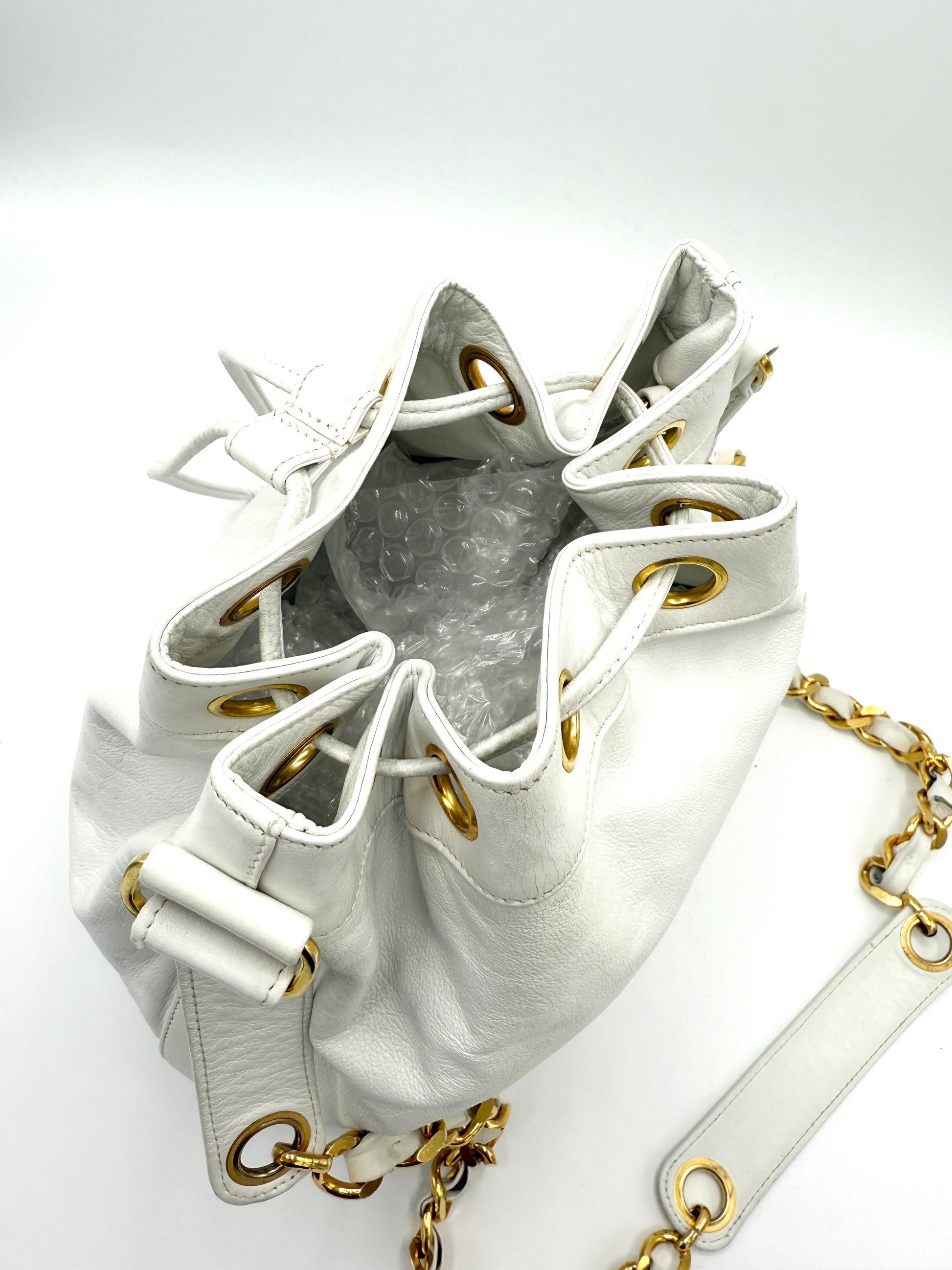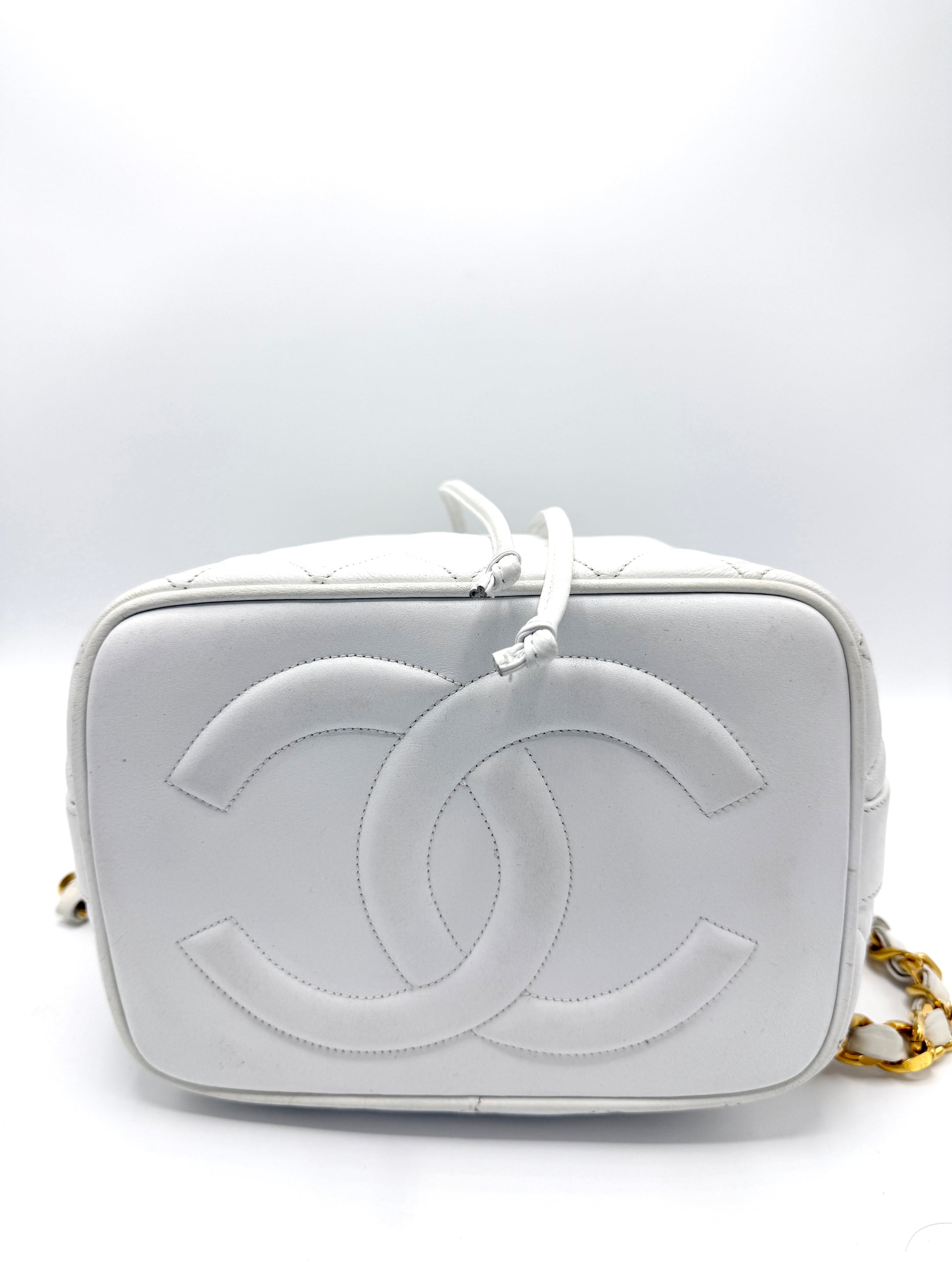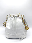 24k White Lambskin CC Medallion Chunky Chain Bucket Bag