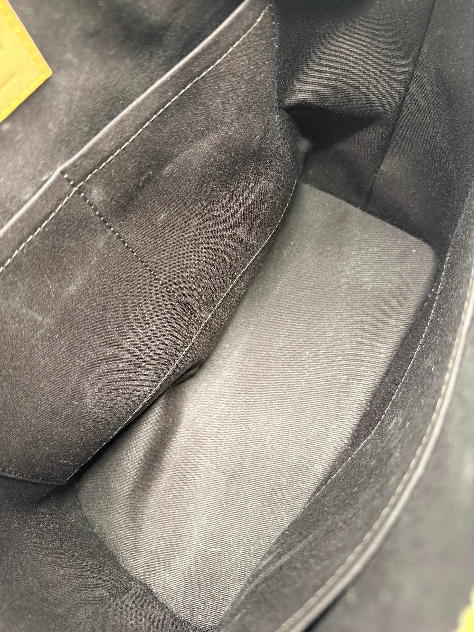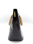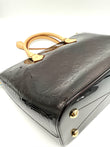 Details: minor wrinkling and minor hairline scratches on exterior patent leather. few minor hairline scratches on exterior hardware. few minor depression marks on exterior vachetta leather. few tiny specks of dust throughout interior canvas.