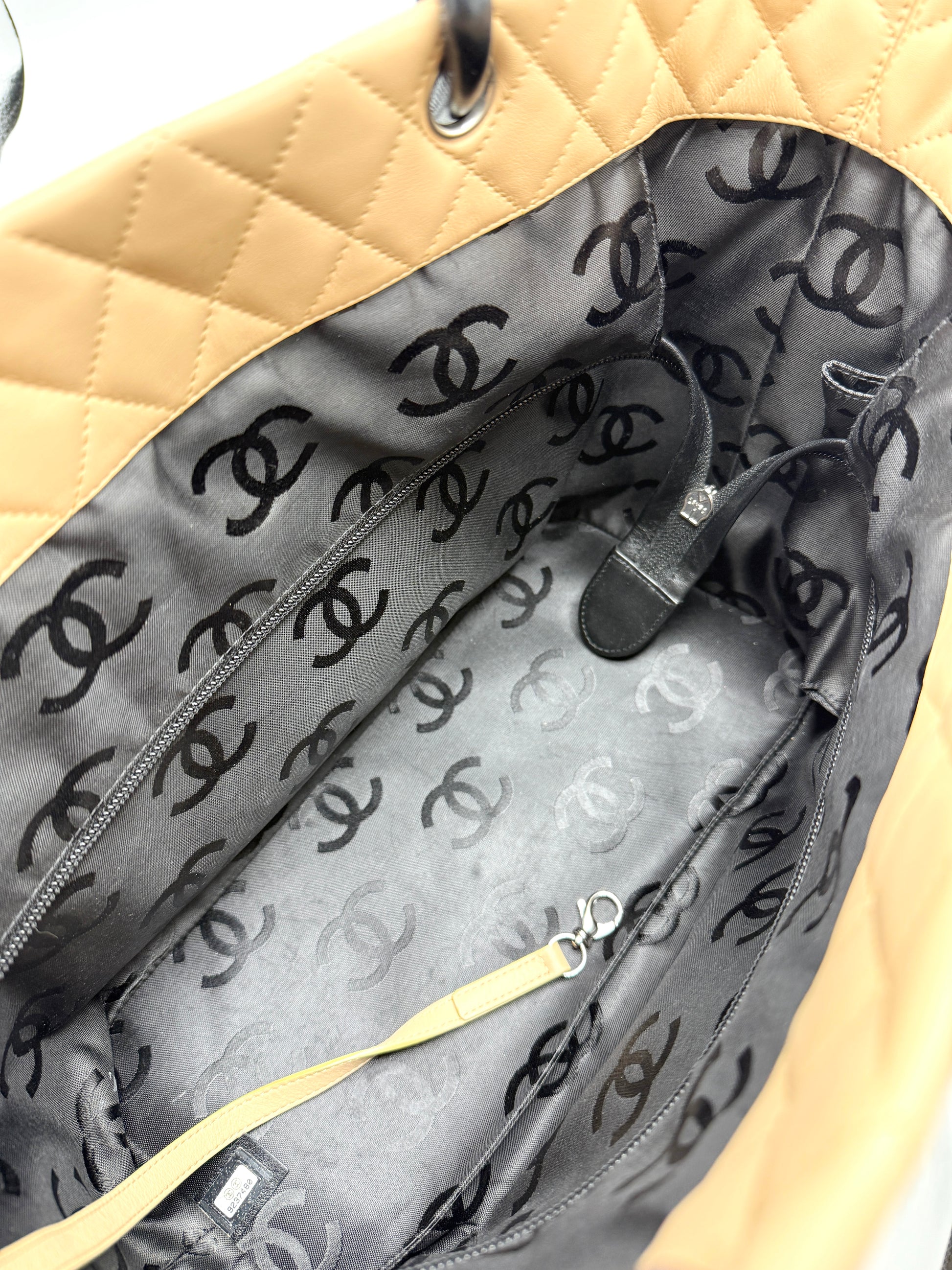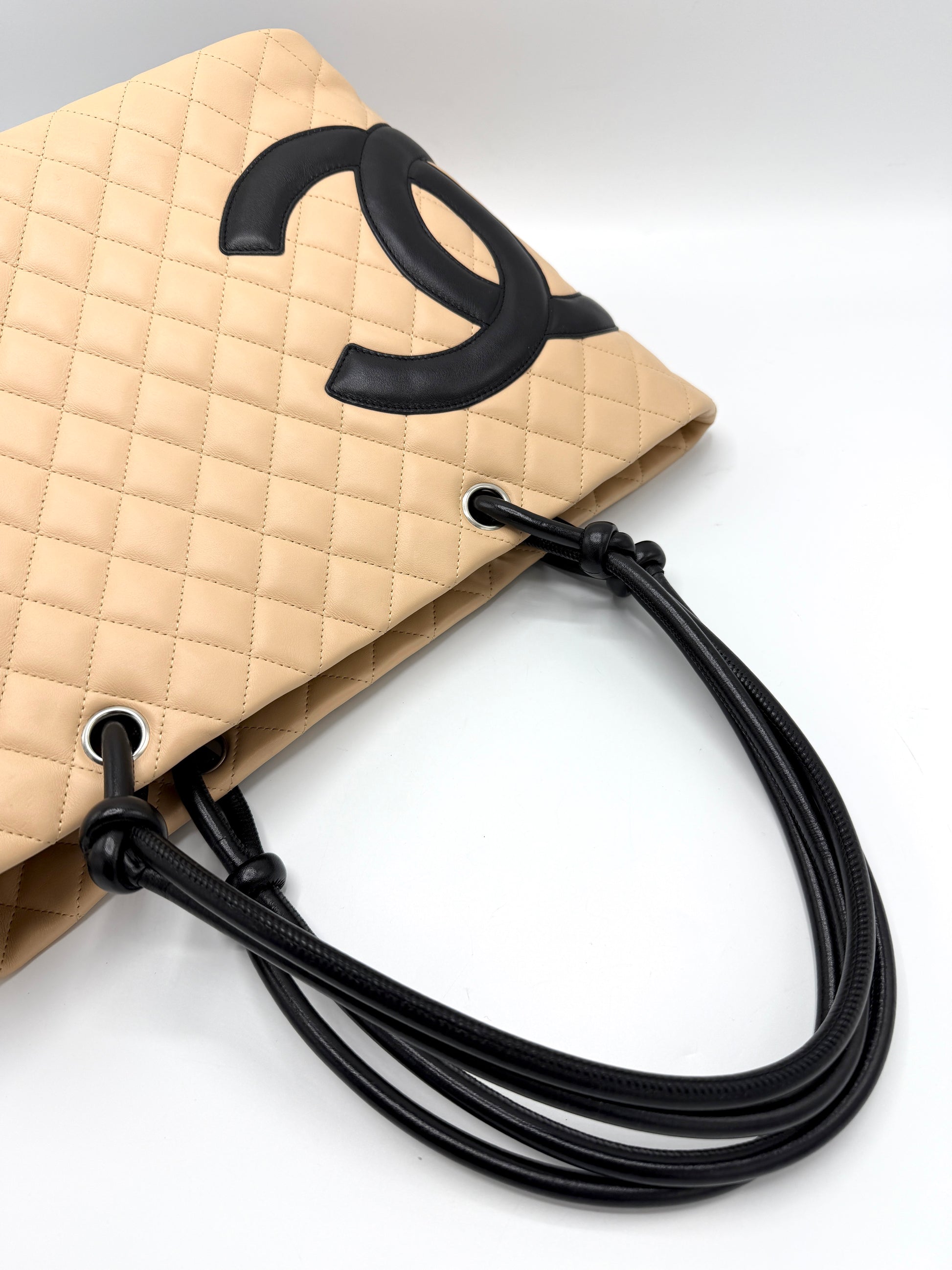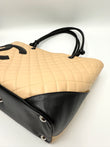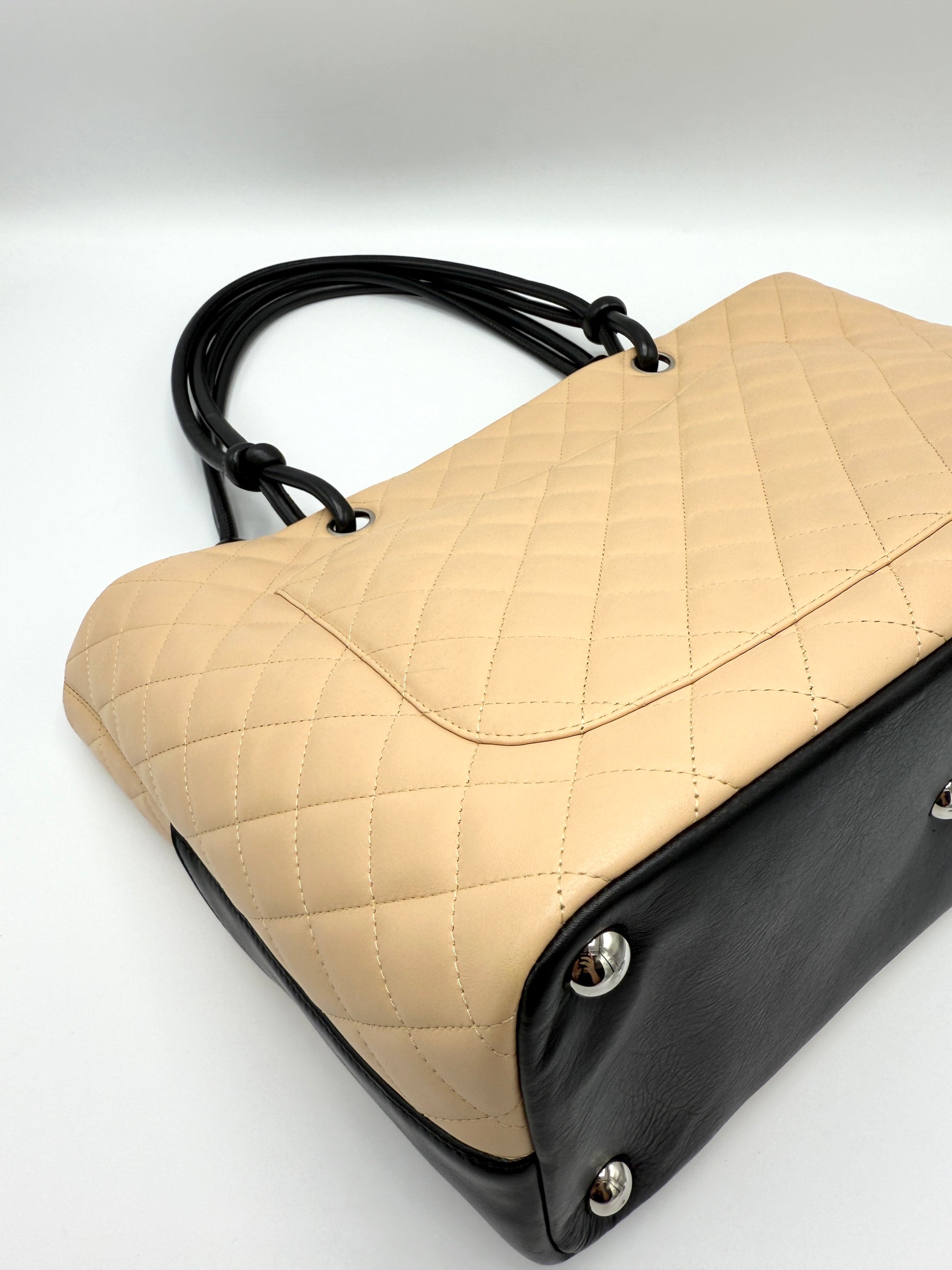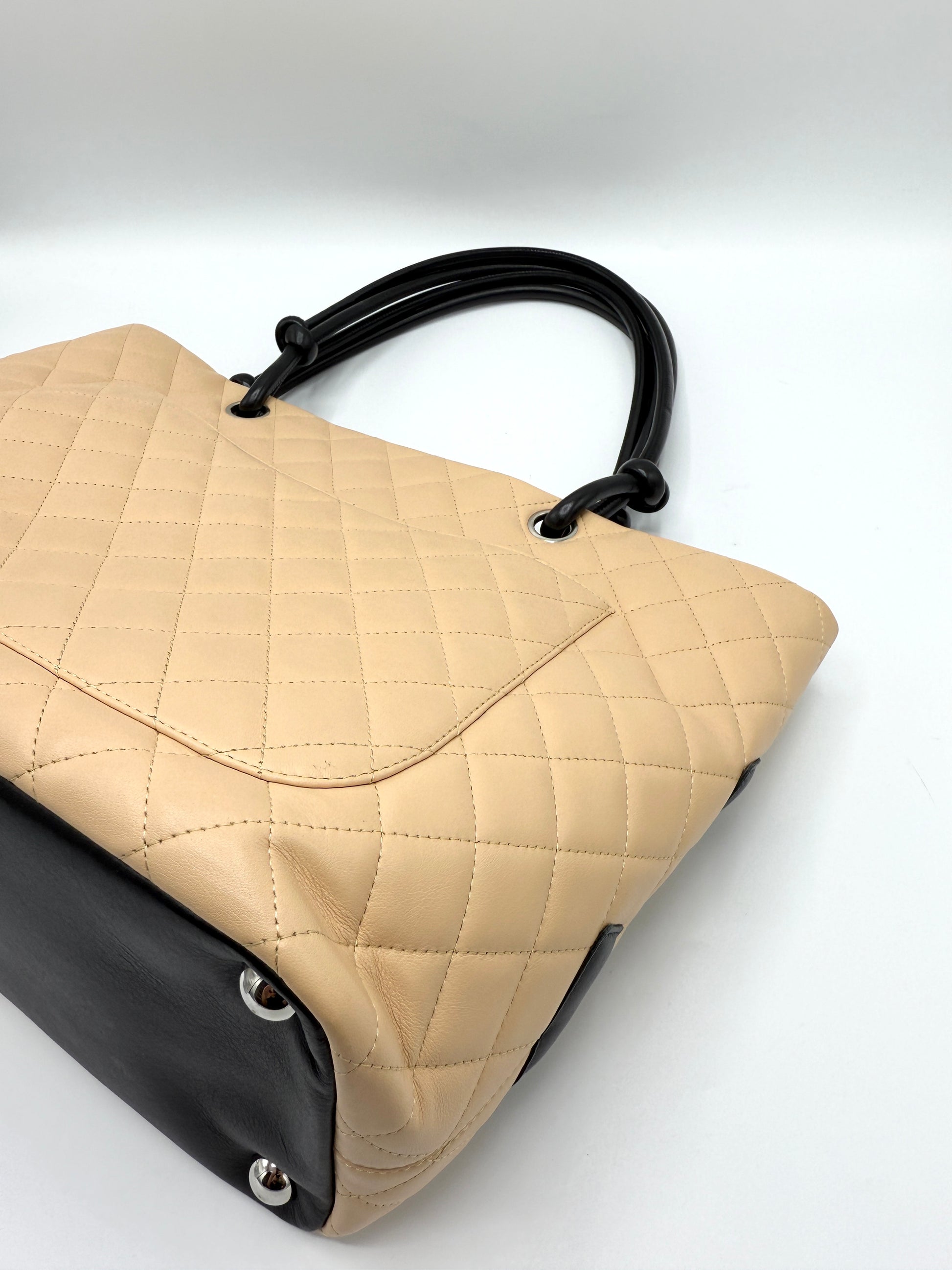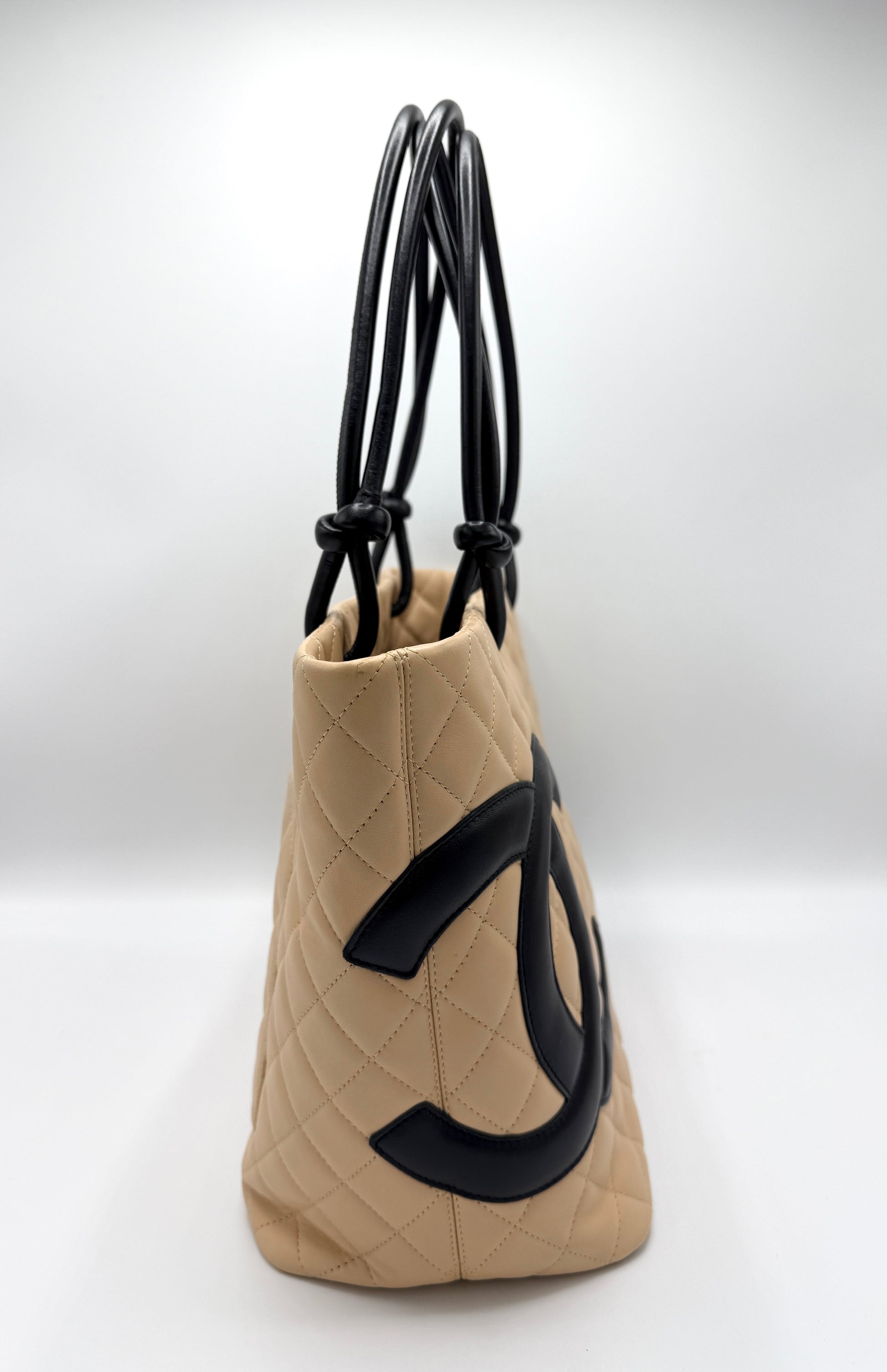100% Authentic Chanel Beige/Black Quilted Black Cambon Large Tote