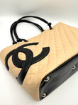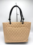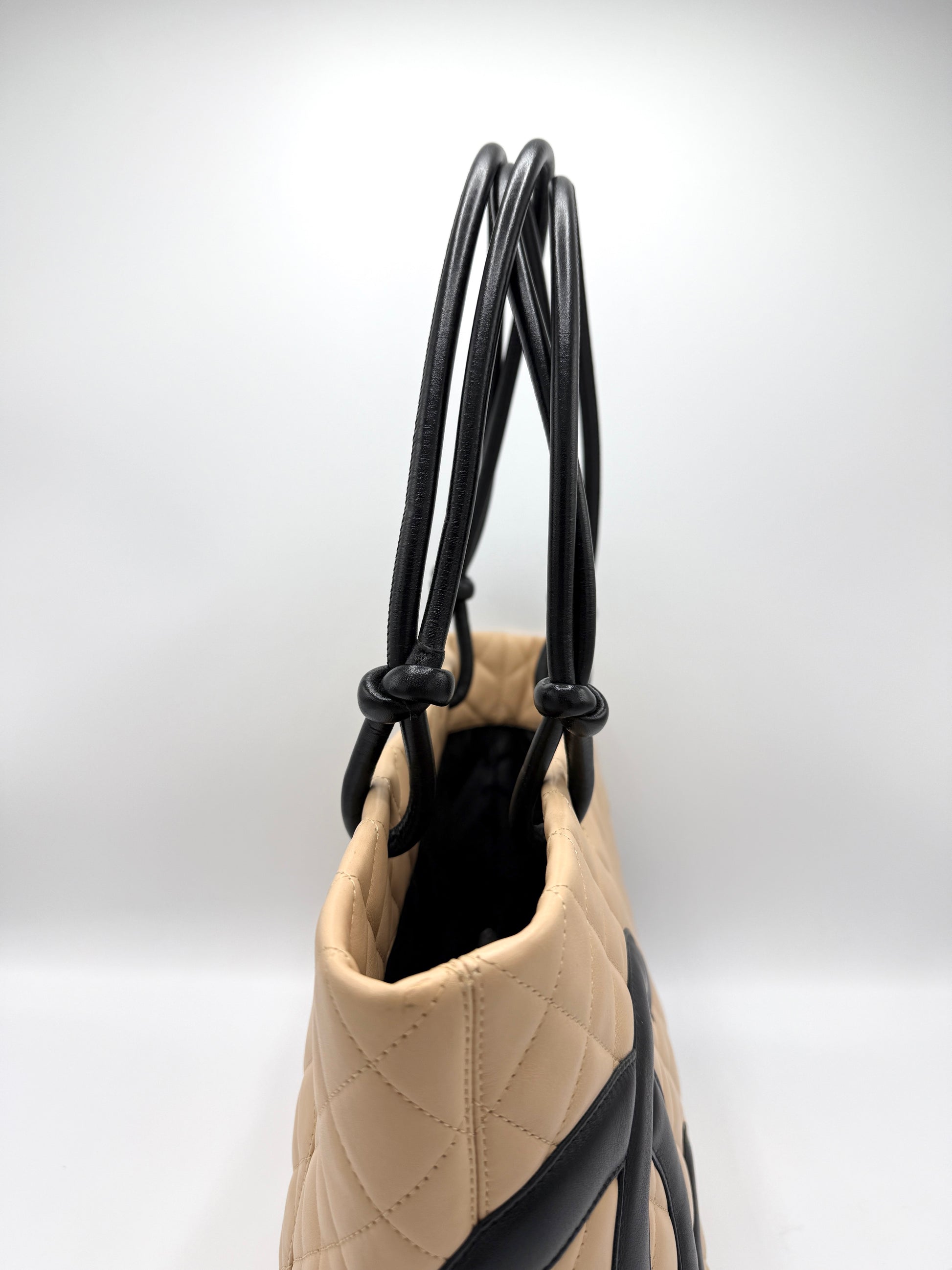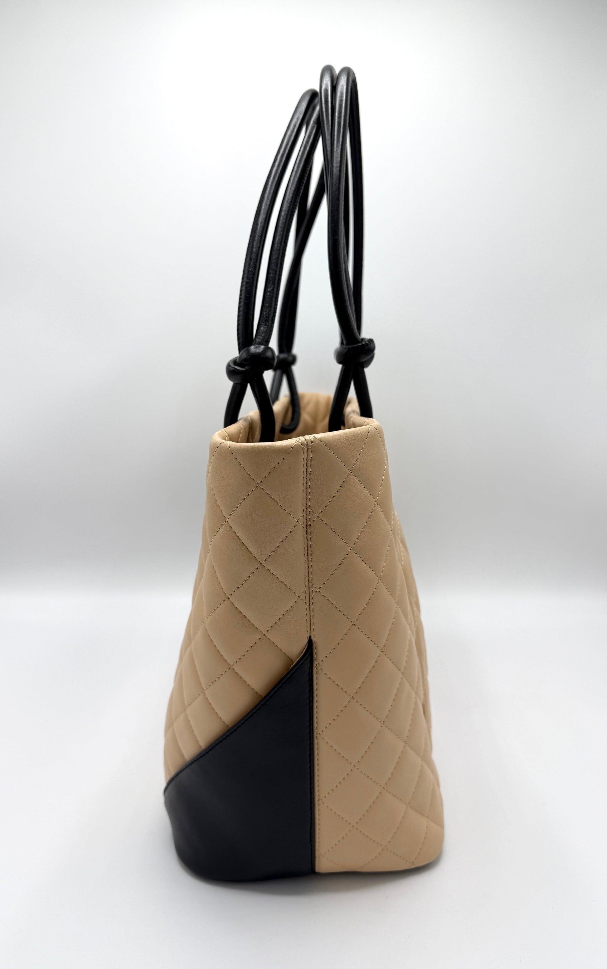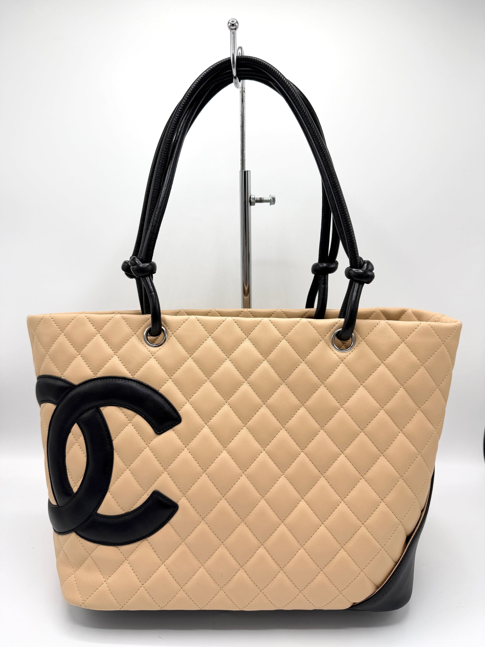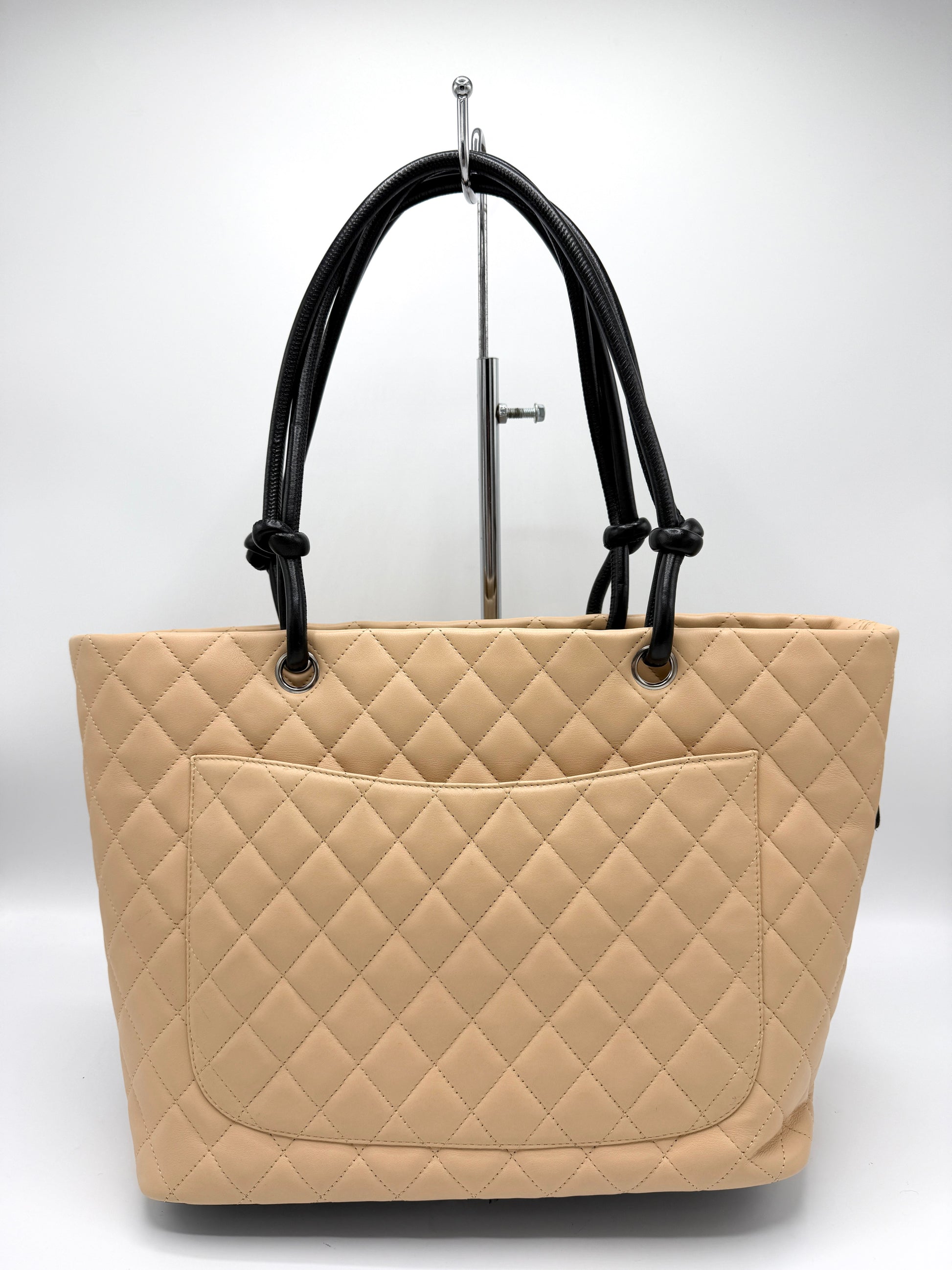 100% Authentic Chanel Beige/Black Quilted Black Cambon Large Tote