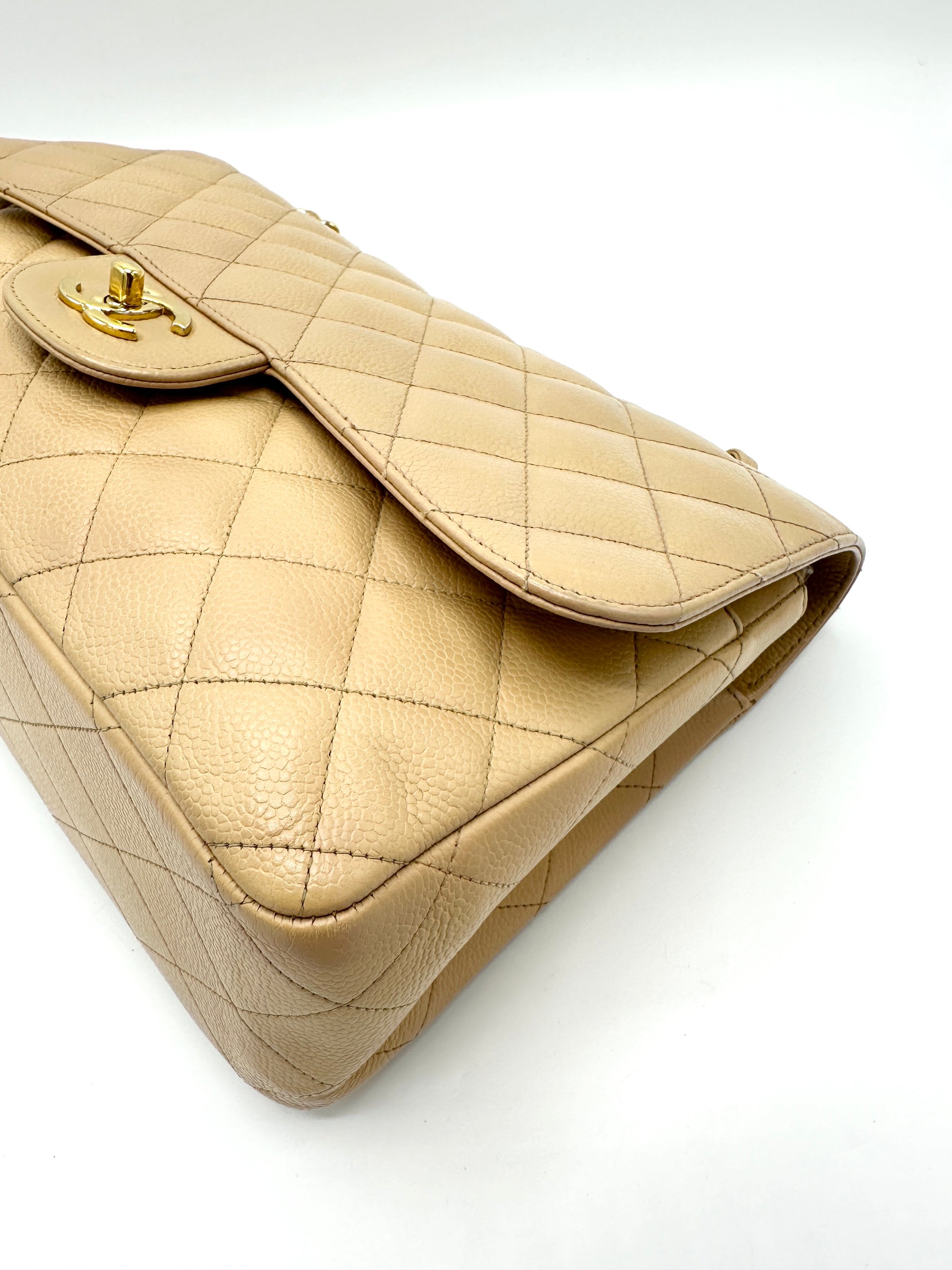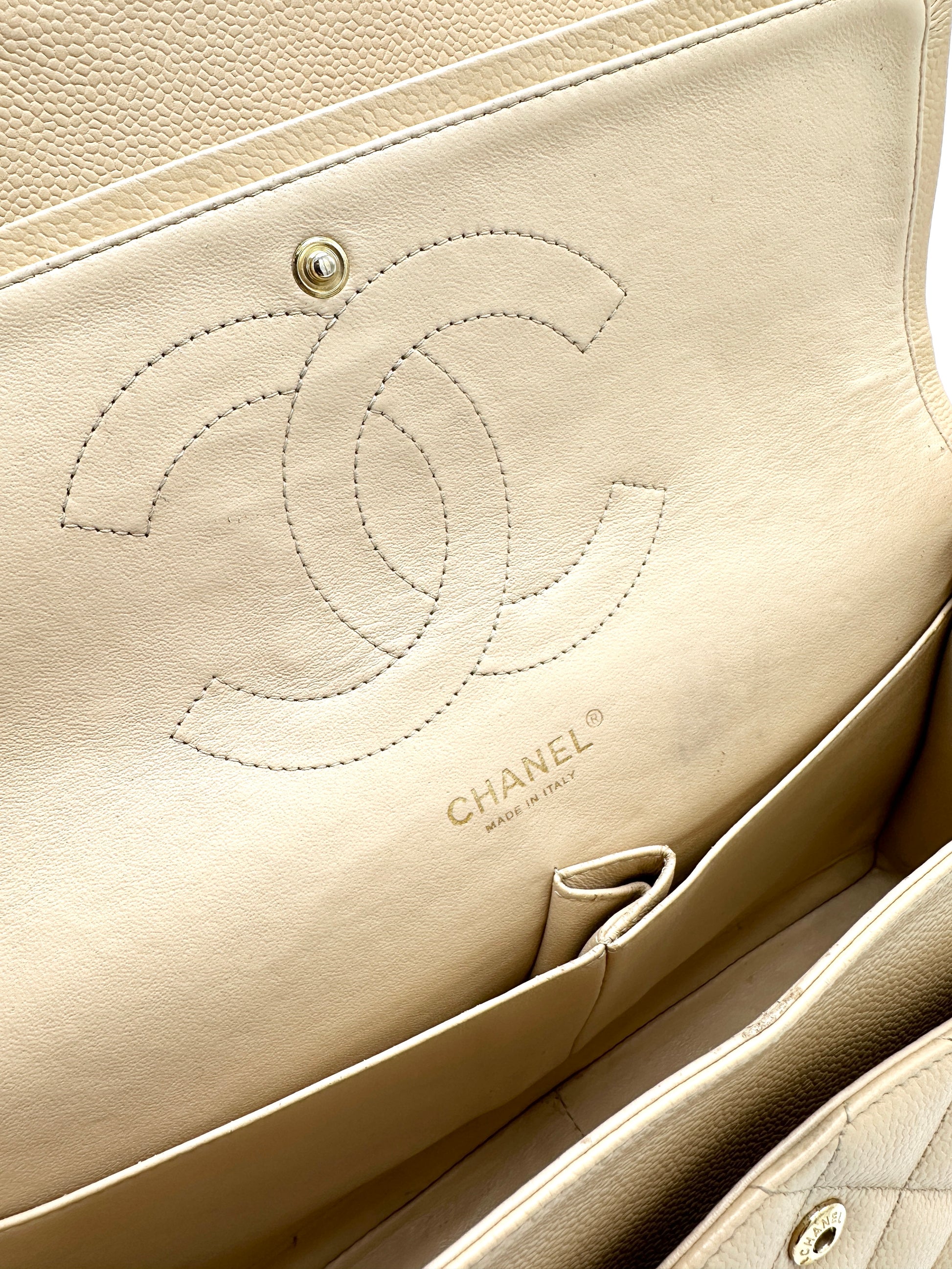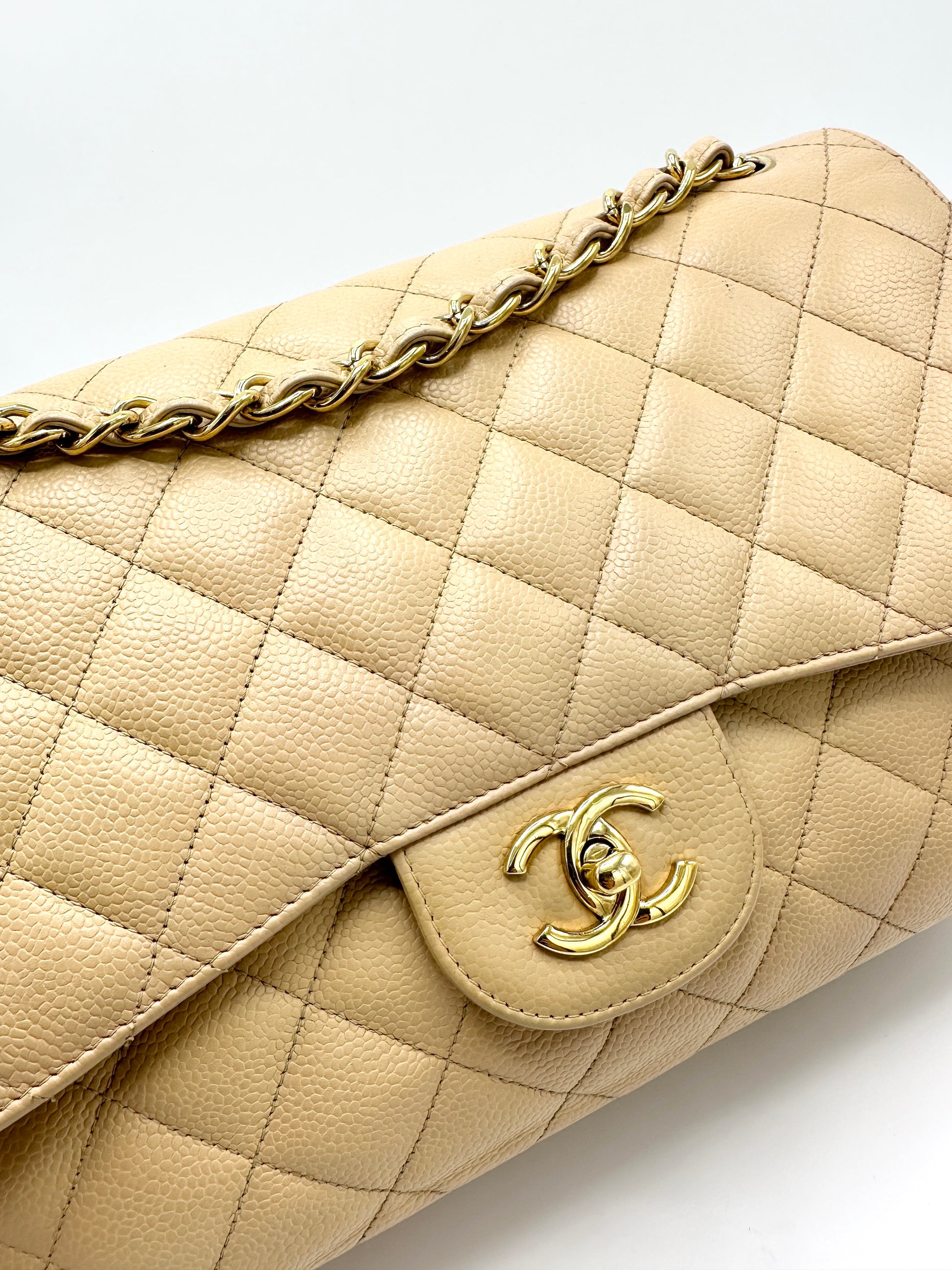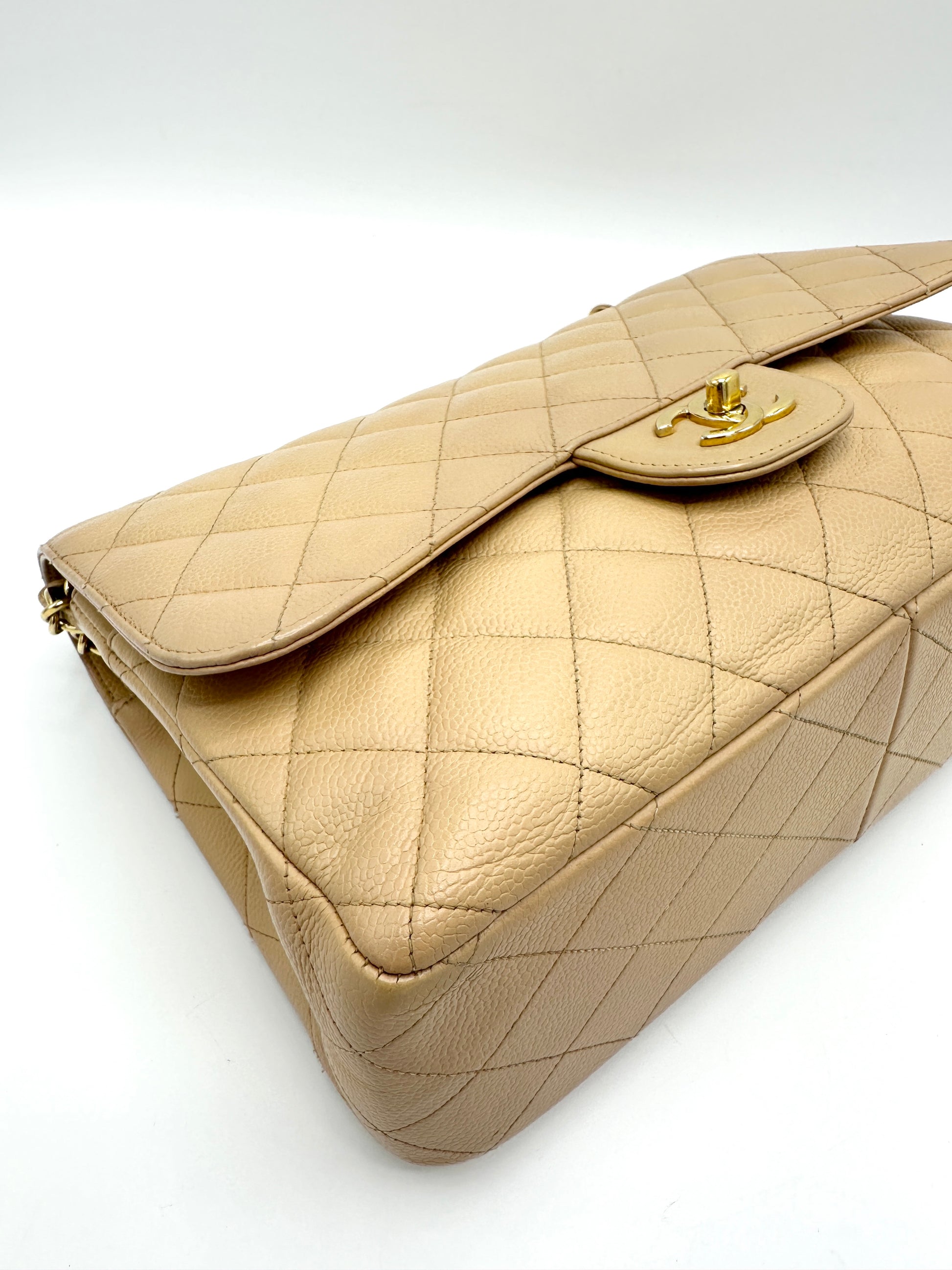 100% Authentic Chanel Beige Caviar Jumbo GHW Double Flap