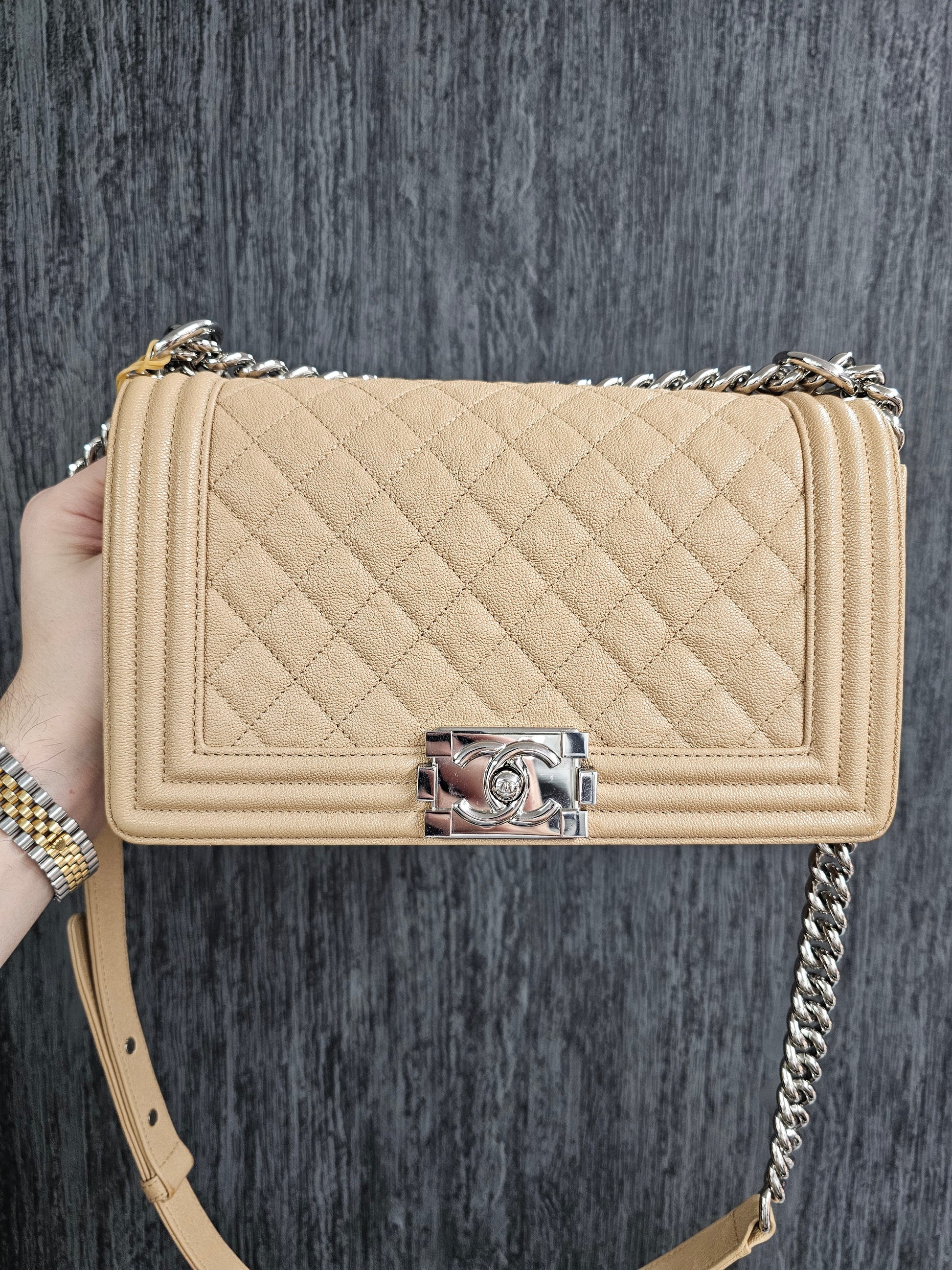 Beige Caviar SHW Medium Boy Bag