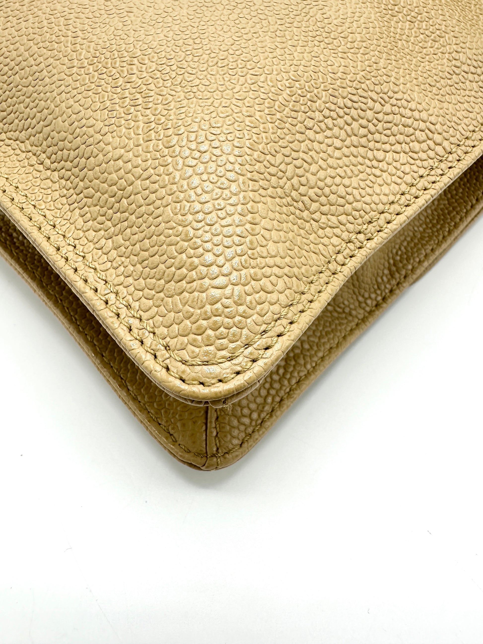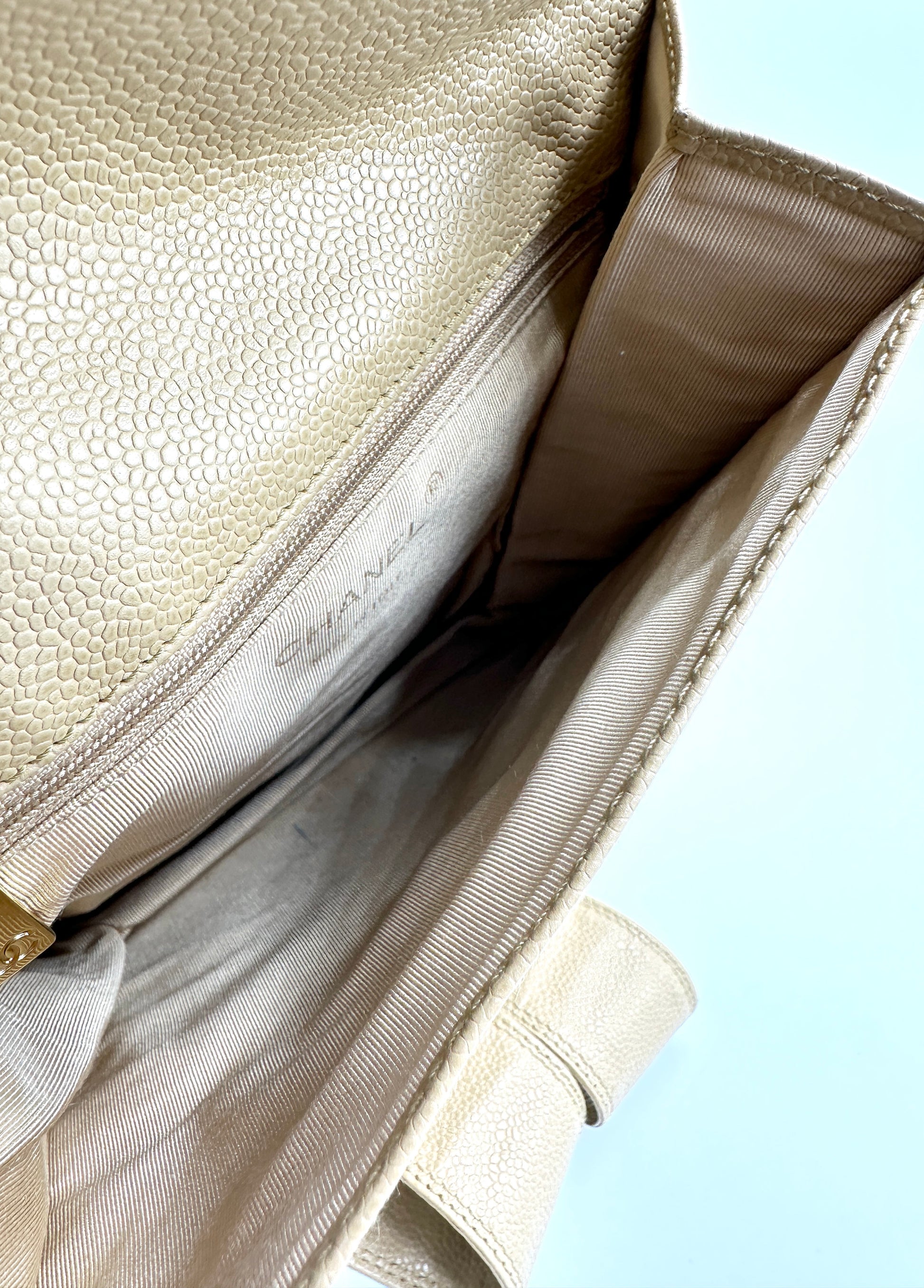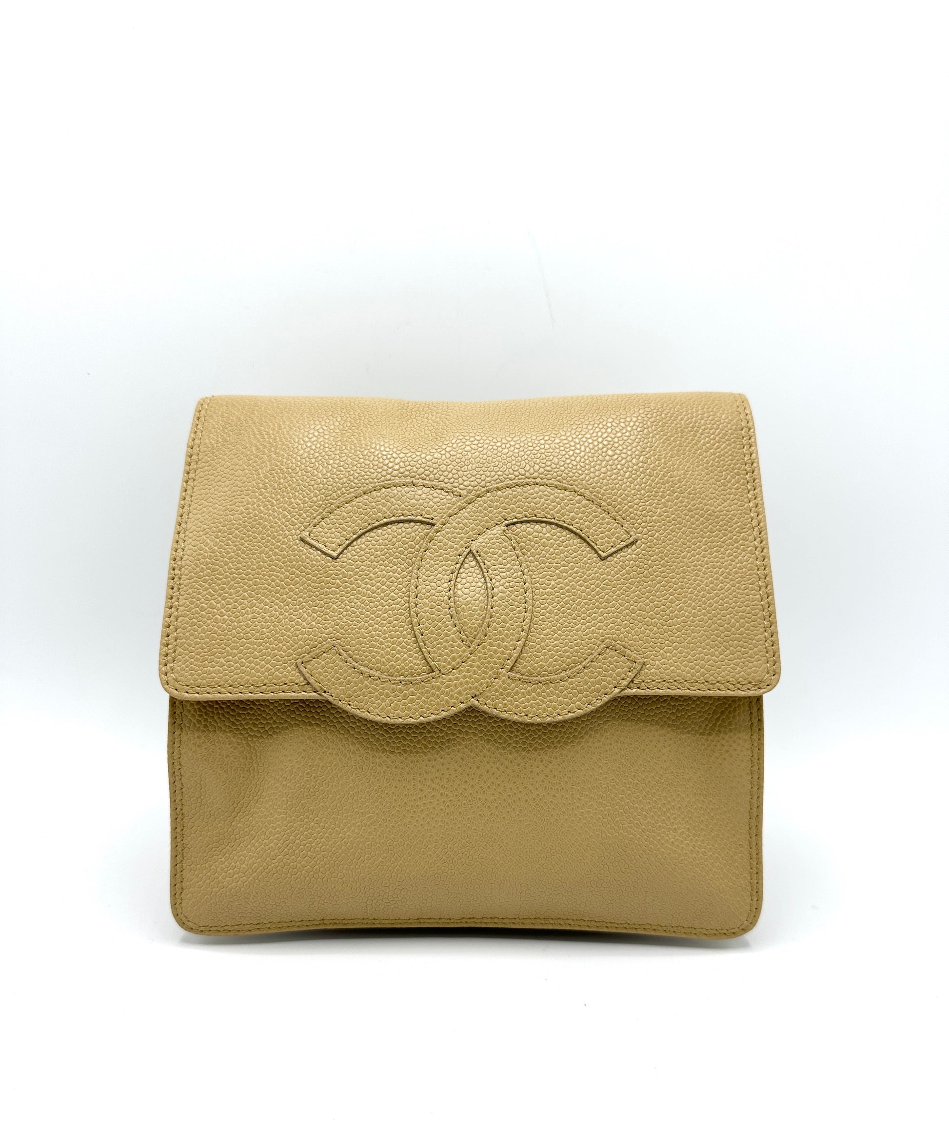 100% Authentic Chanel Beige Caviar XL CC Square Flap Crossbody
