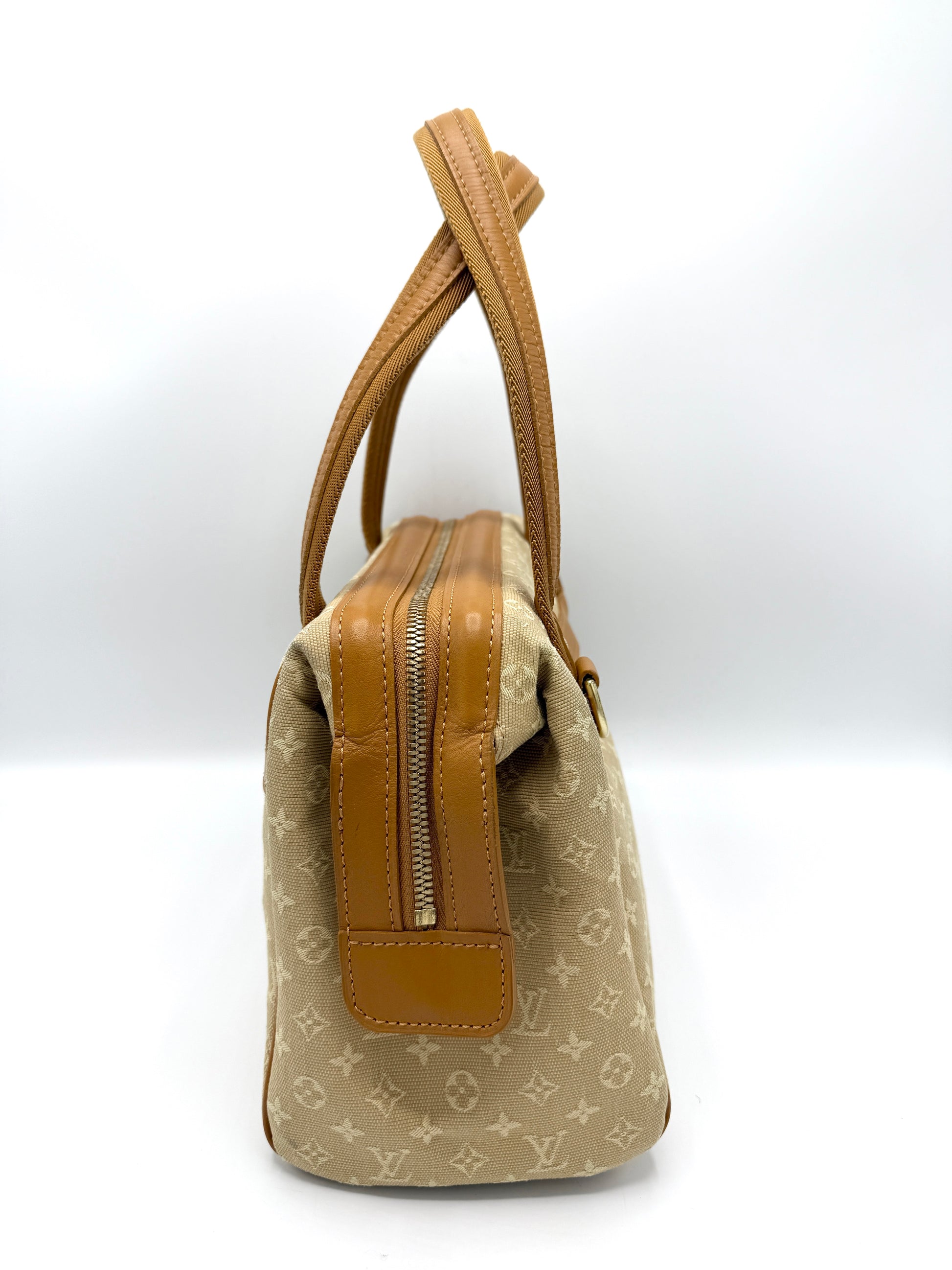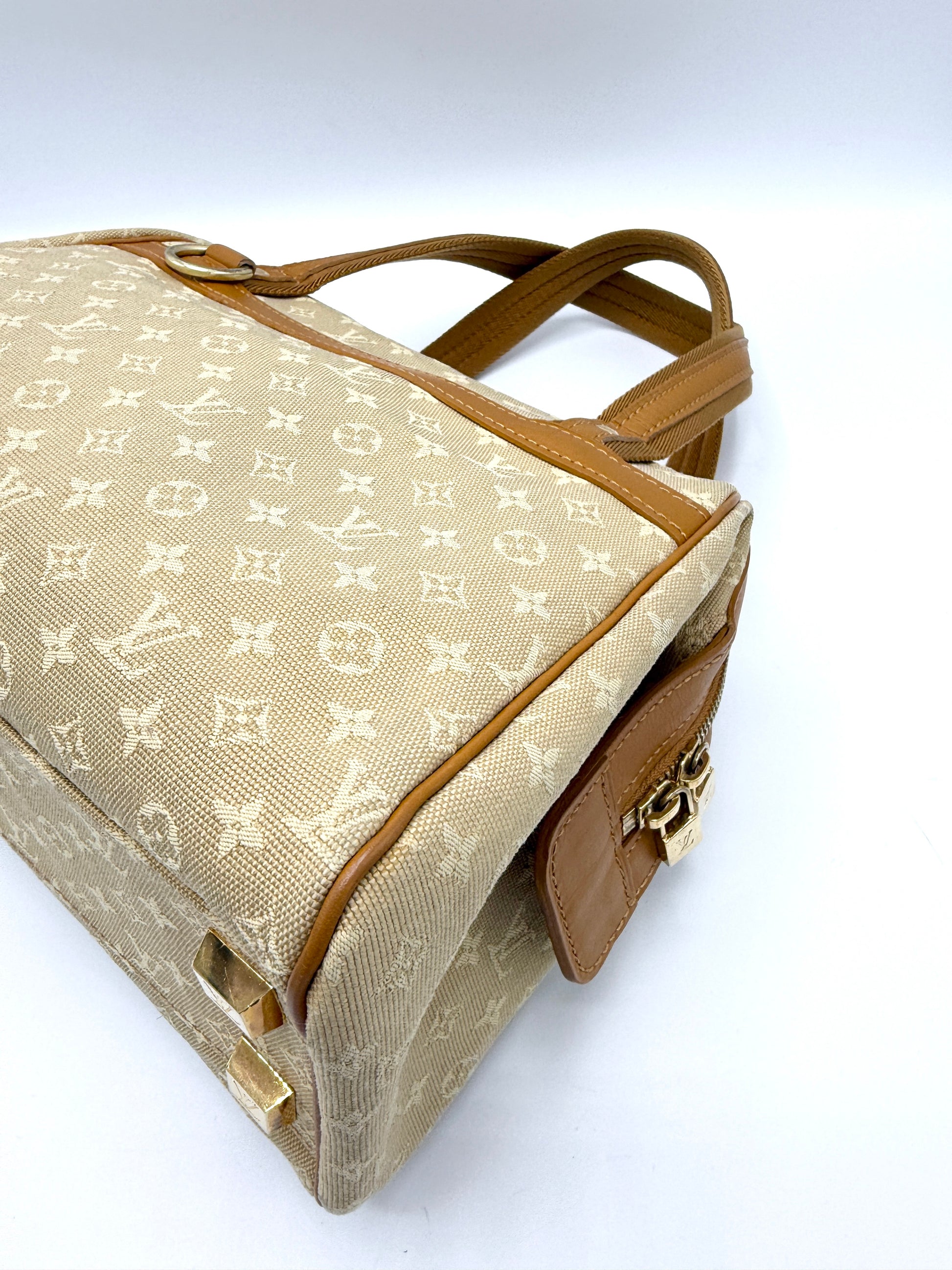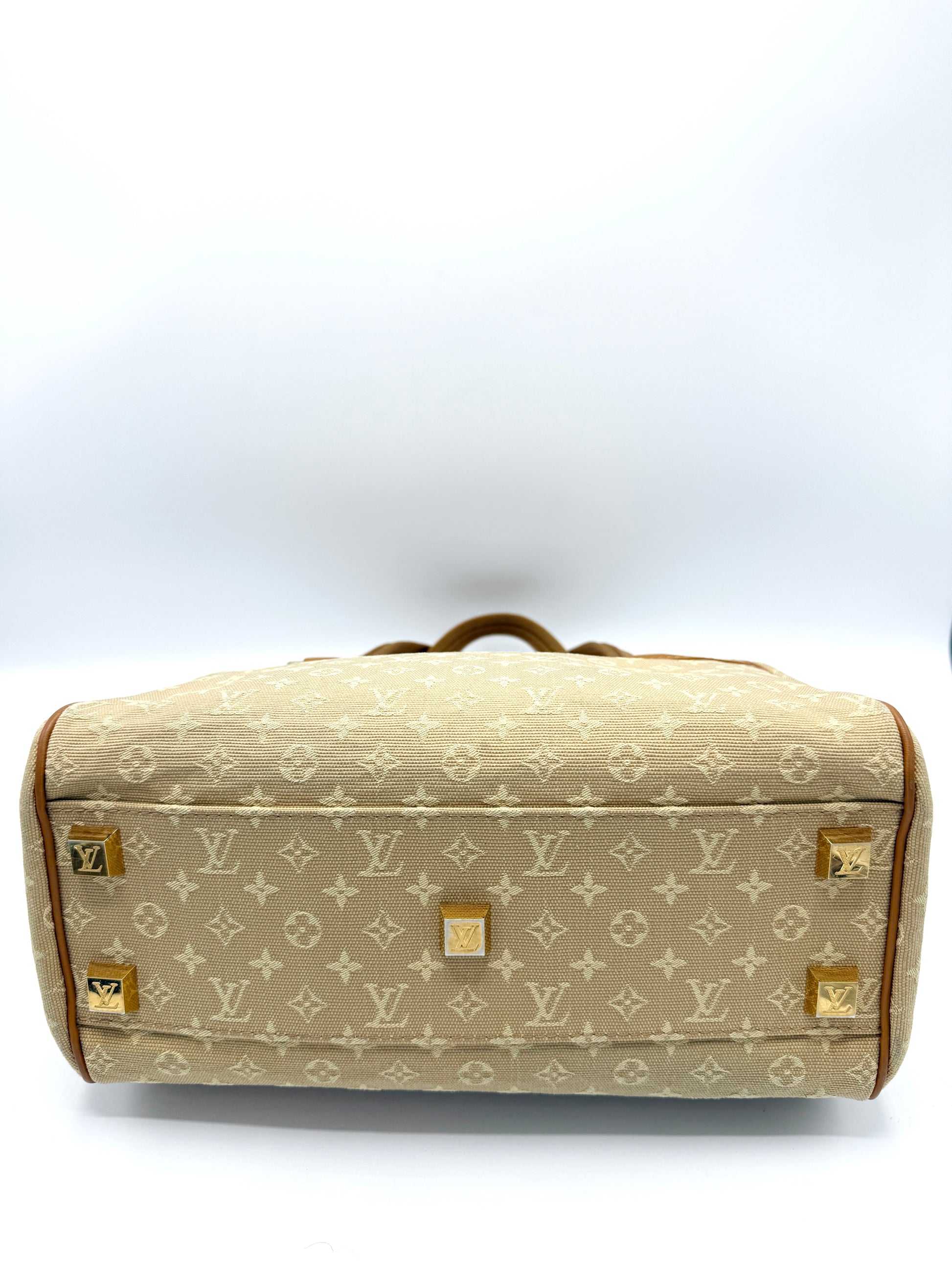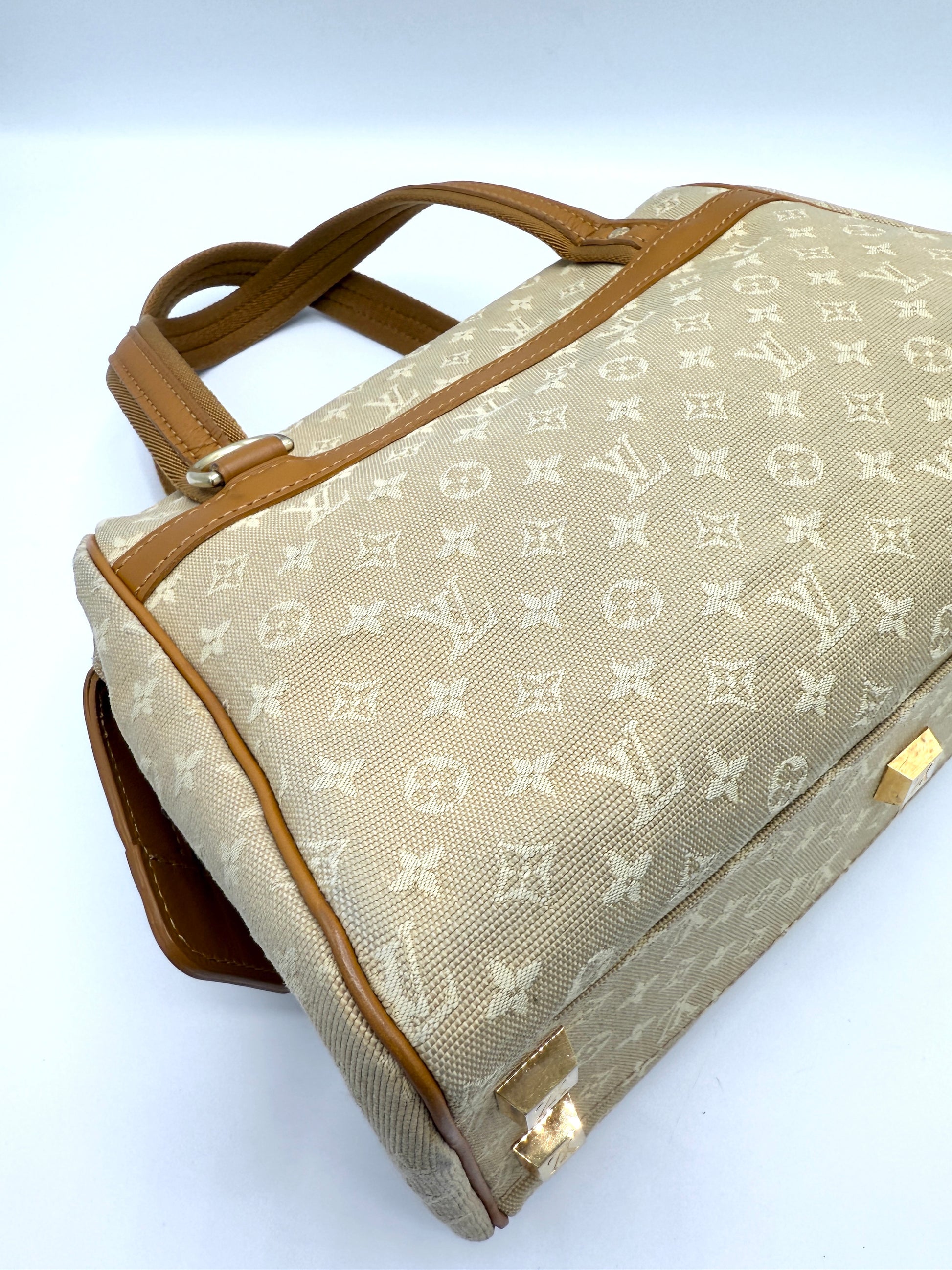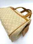 100% Authentic Louis Vuitton Beige Monogram Caramel Leather Trimmed Mini Lin Tote