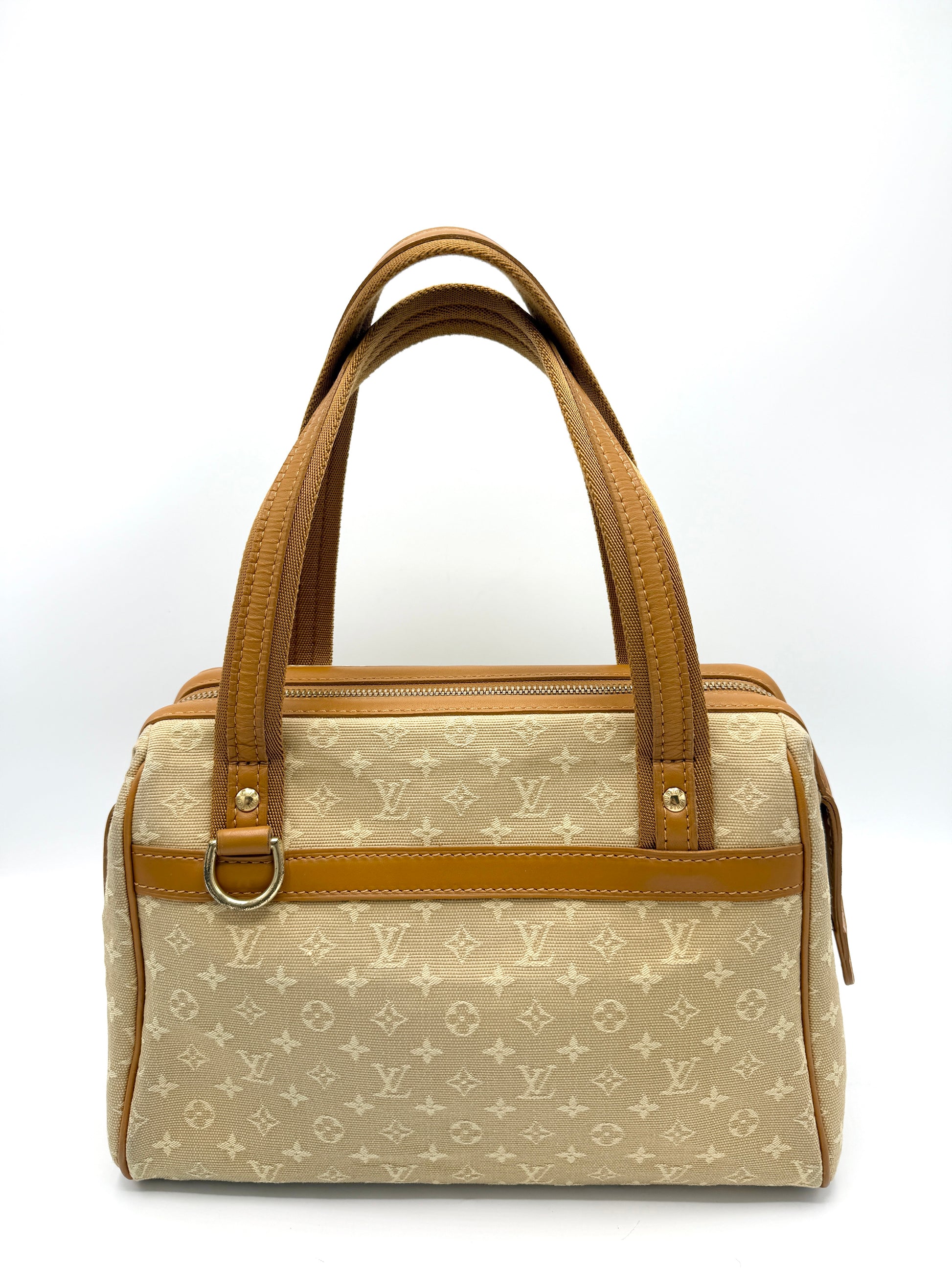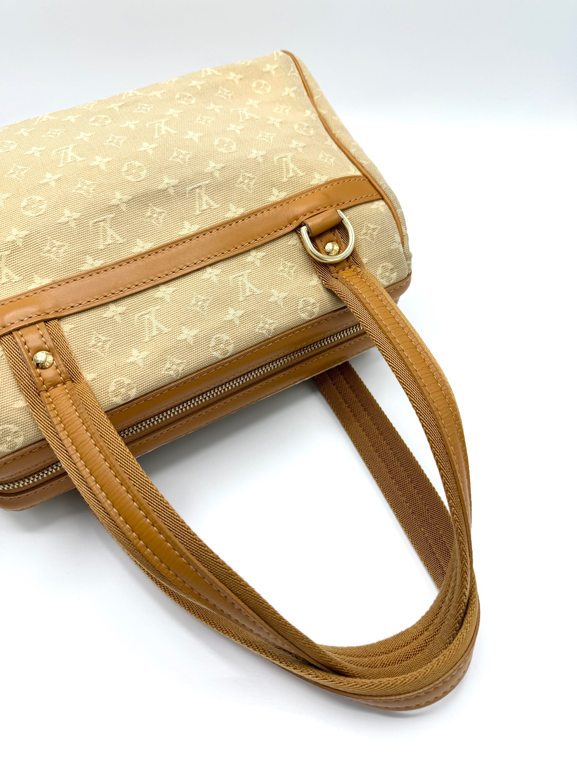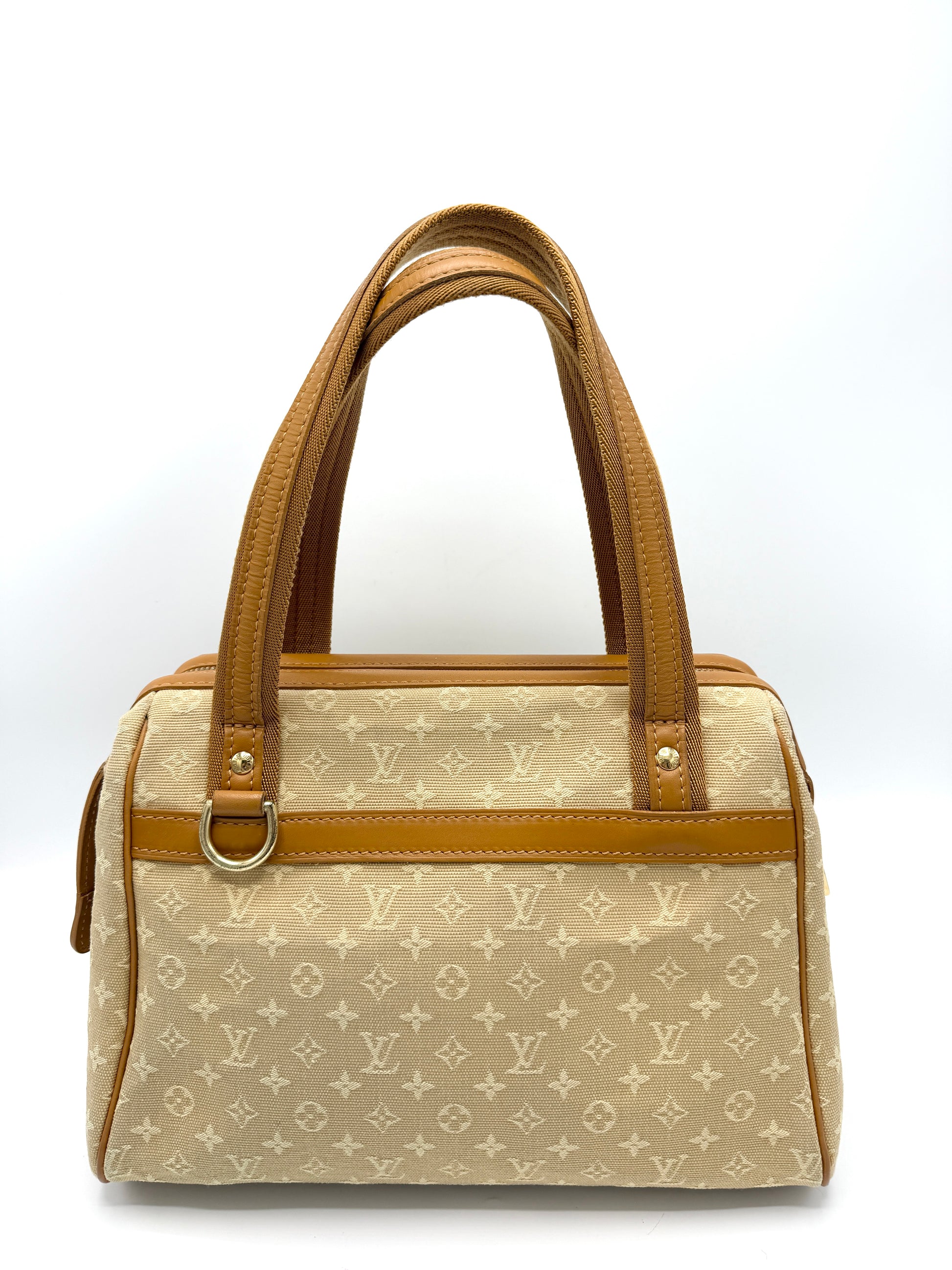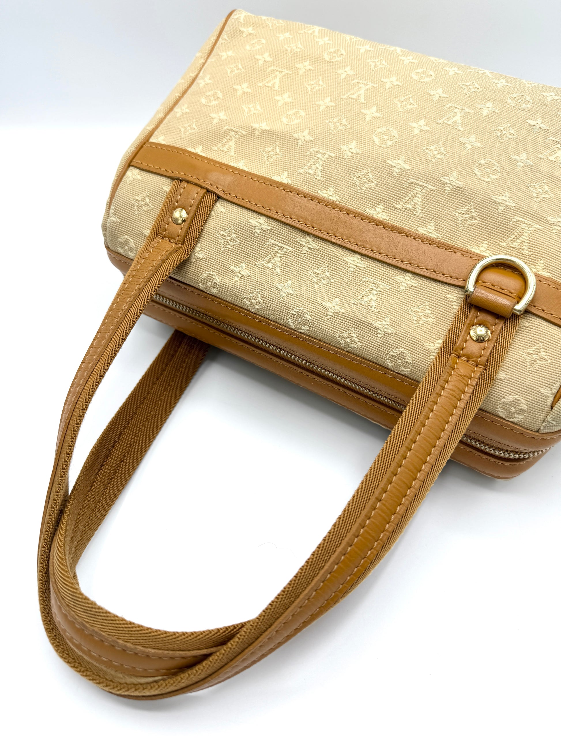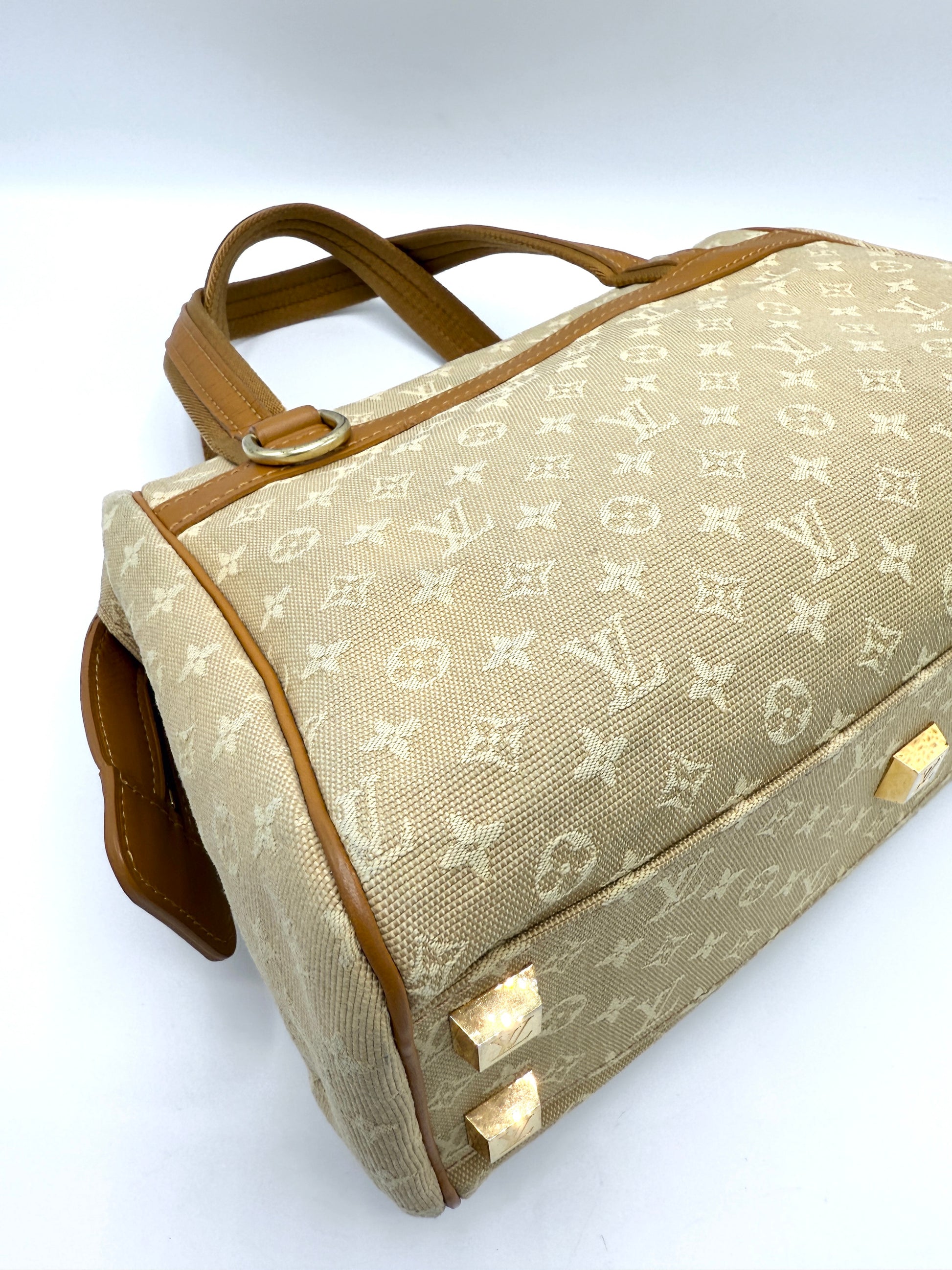 100% Authentic Louis Vuitton Beige Monogram Caramel Leather Trimmed Mini Lin Tote