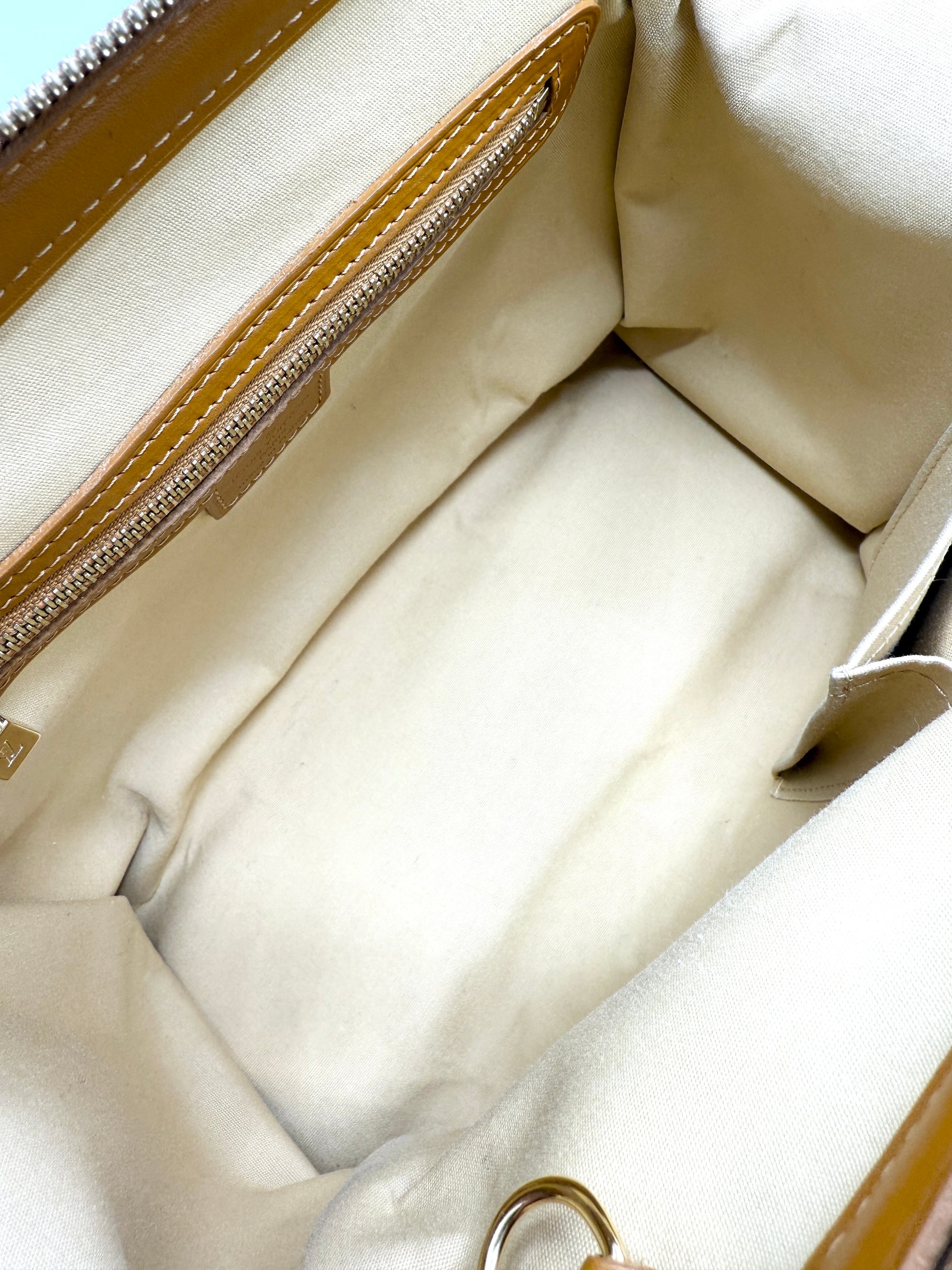 Beige Monogram Caramel Leather Trimmed Mini Lin Tote
