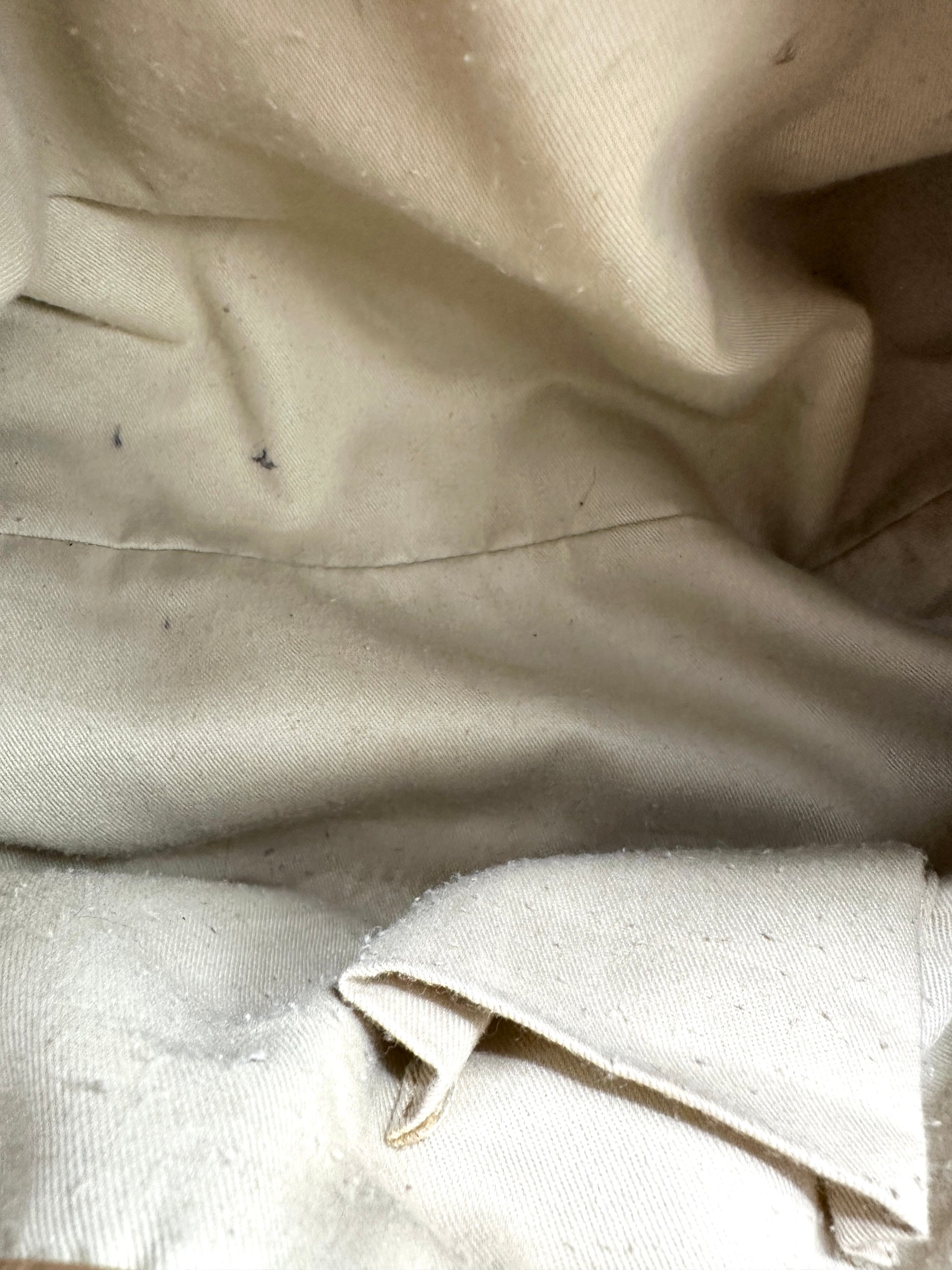 Details: Minor wrinkling on exterior leather. Minor scuffing on corners. Minor pilling and dust on interior canvas.