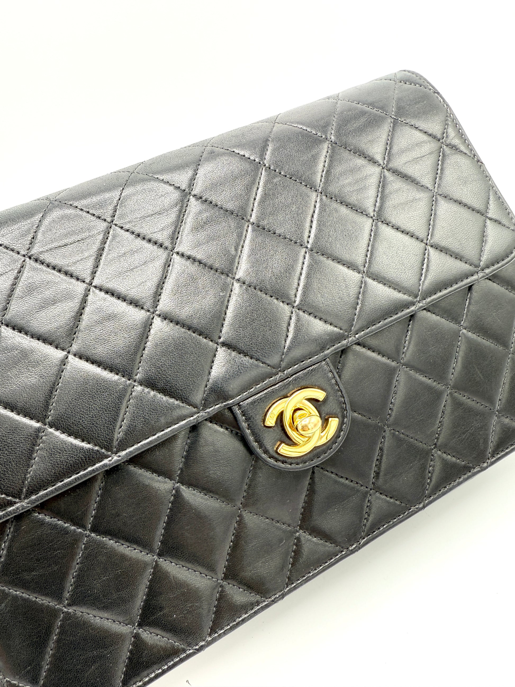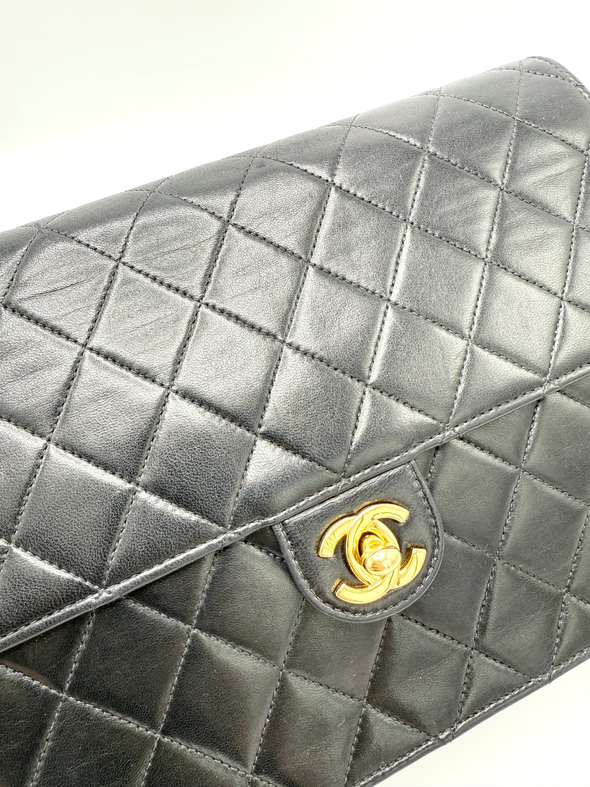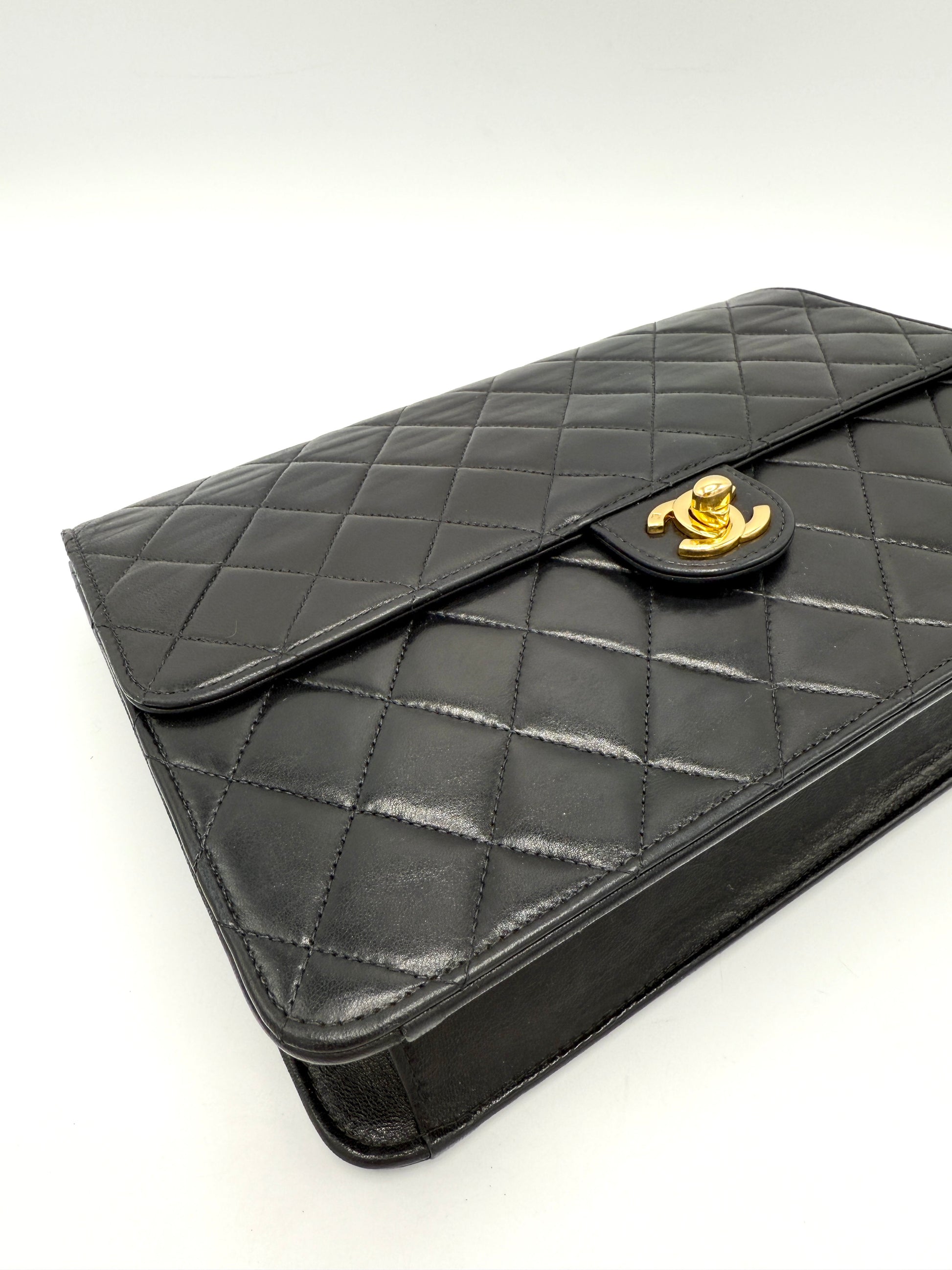 100% Authentic Chanel Black 24K CC Quilted Lambskin Flap