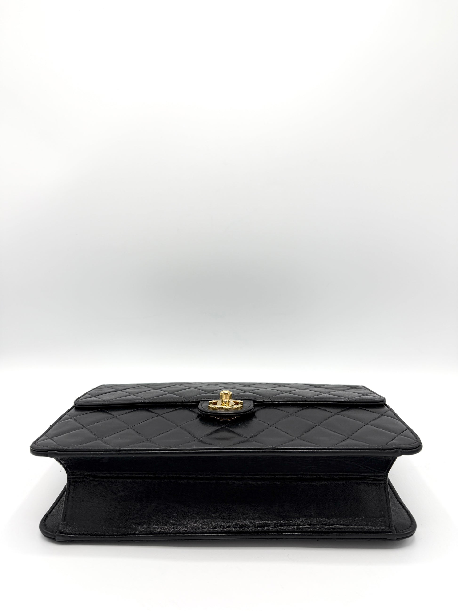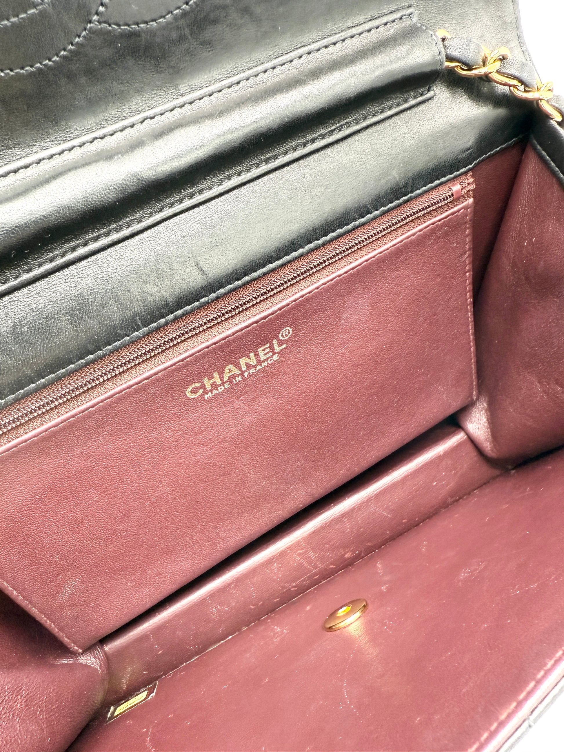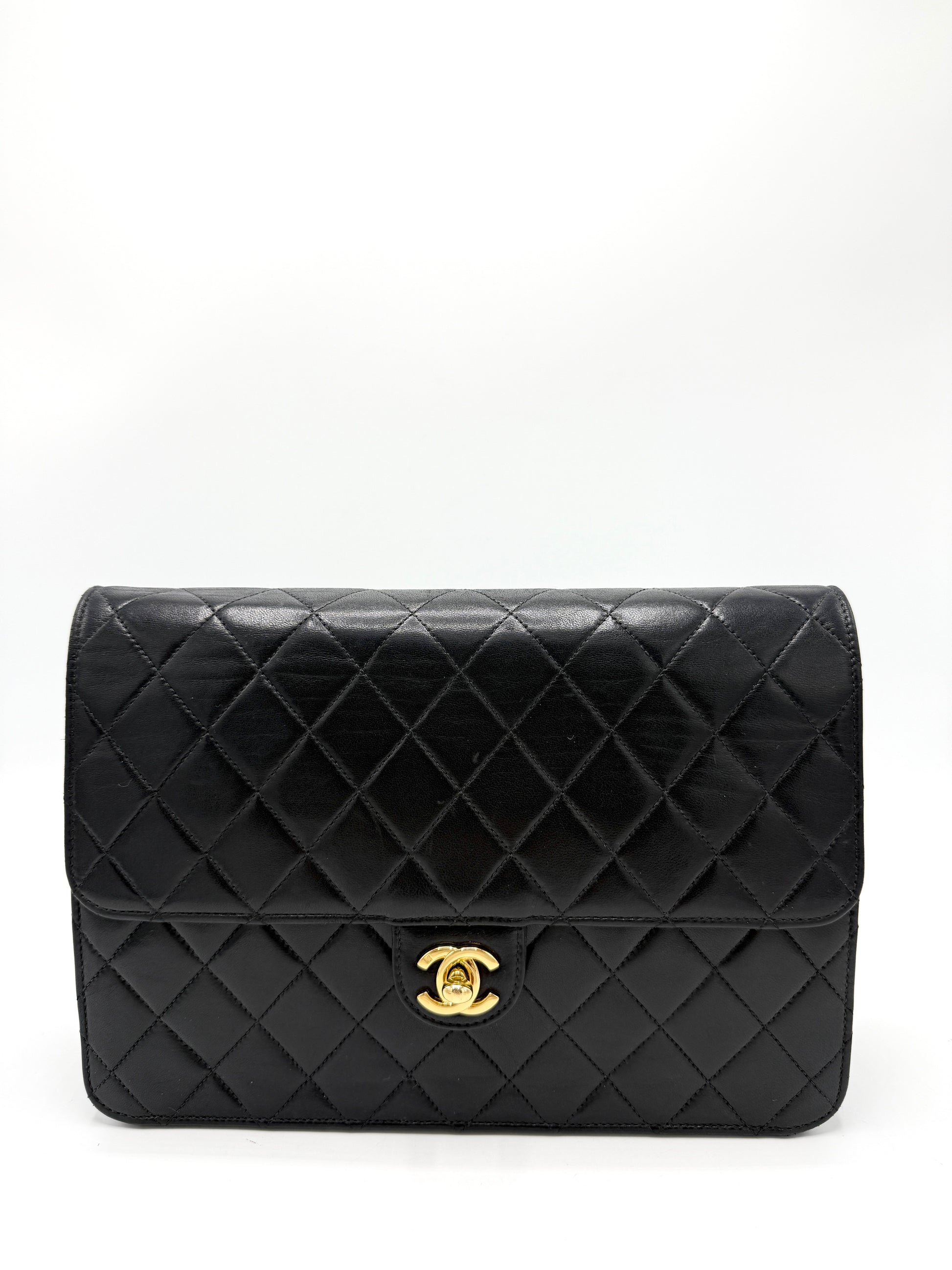 100% Authentic Chanel Black 24K CC Quilted Lambskin Flap
