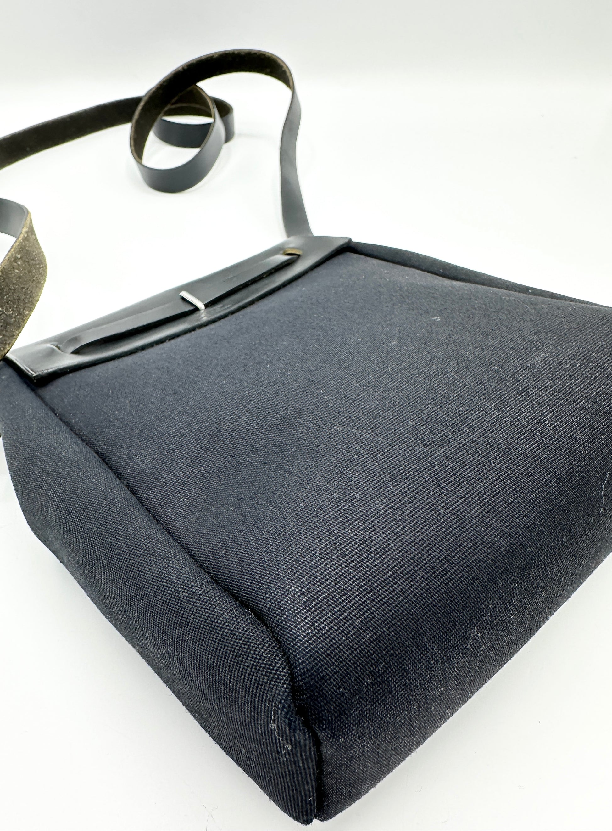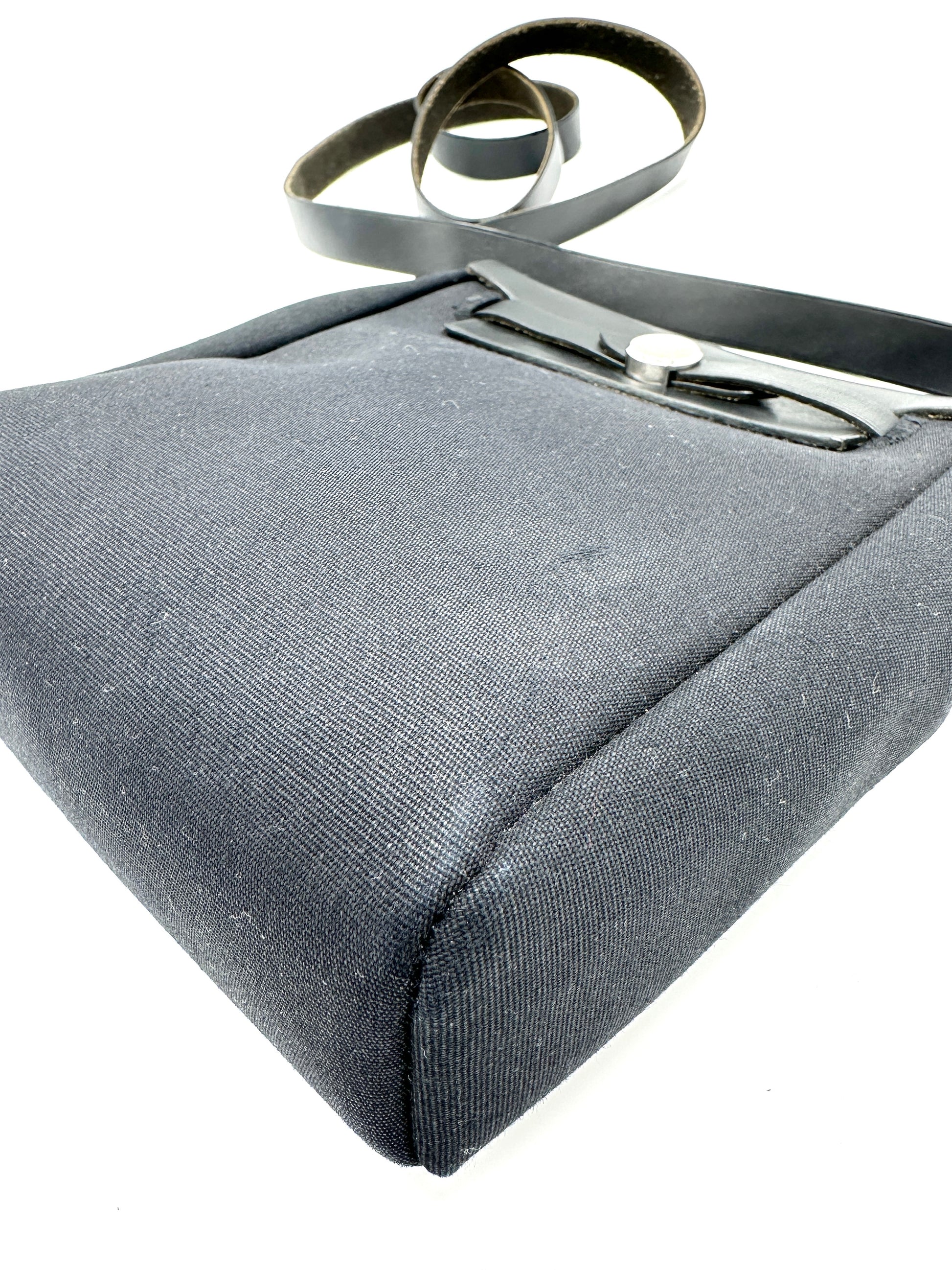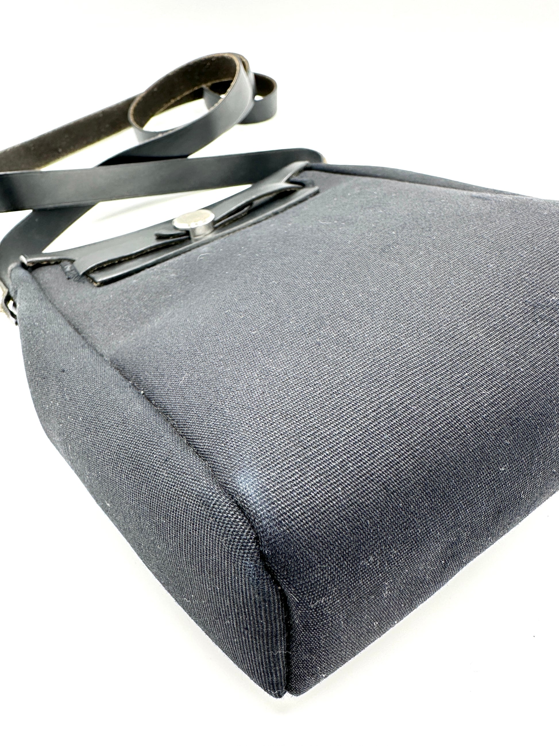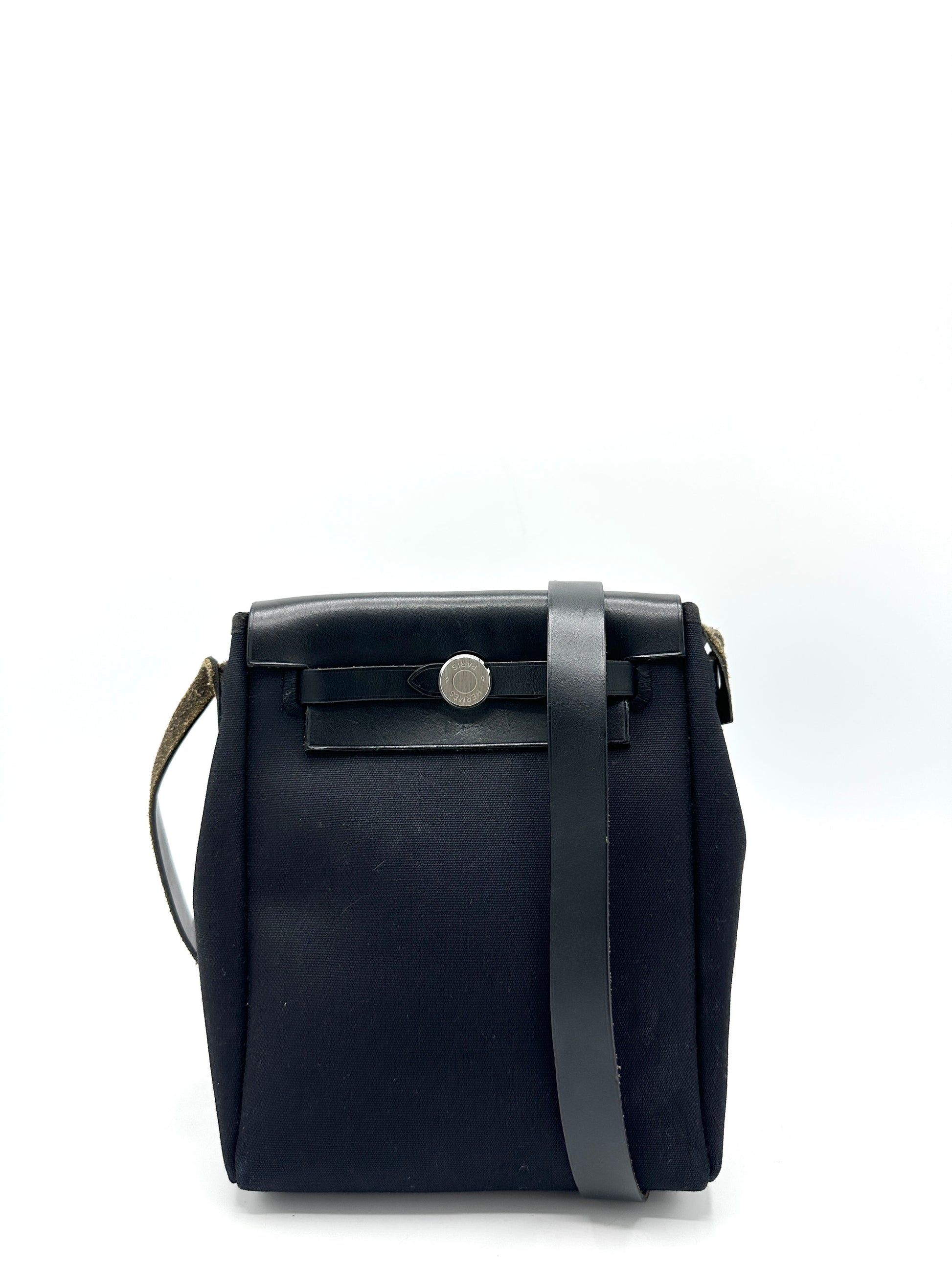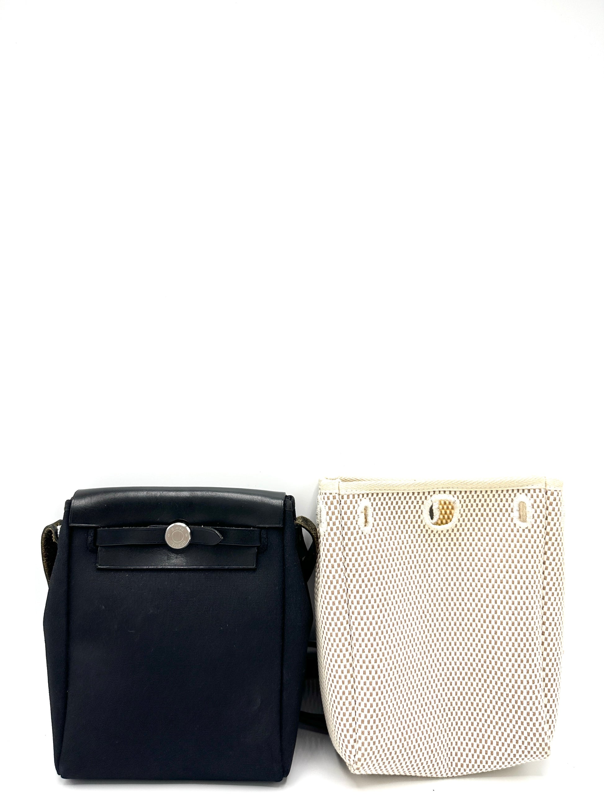 100% Authentic Hermes Black/Beige Canvas Herbag TPM