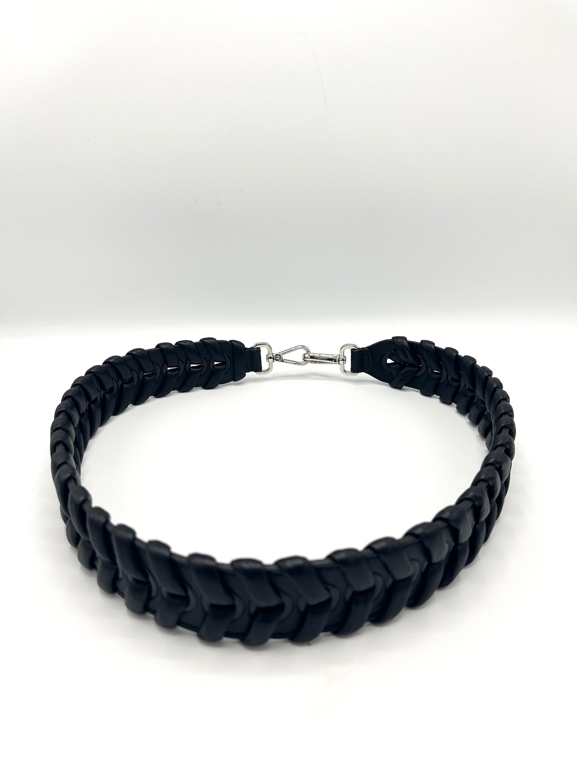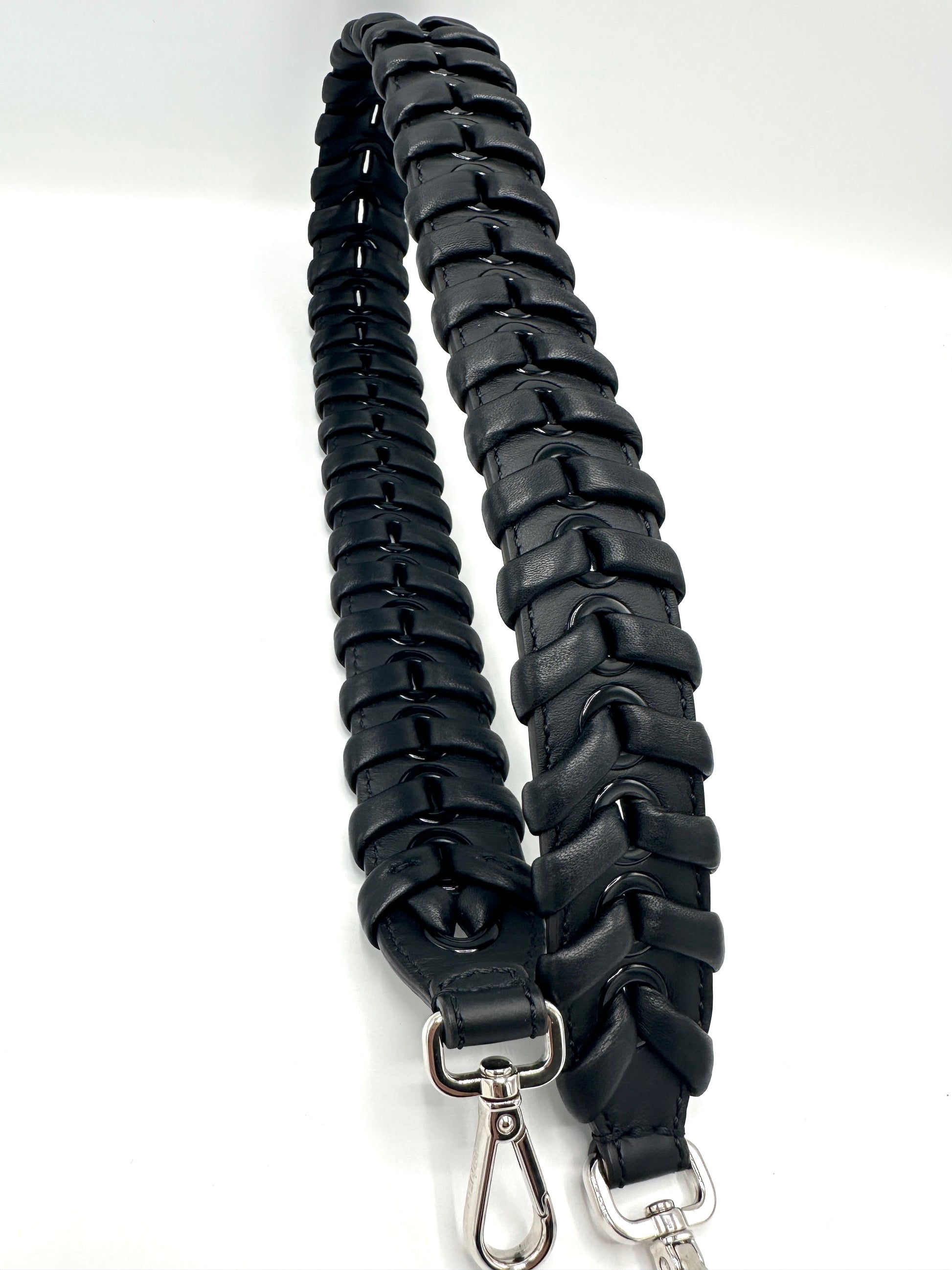 100% Authentic Fendi Black Braided Chunky SHW Strap