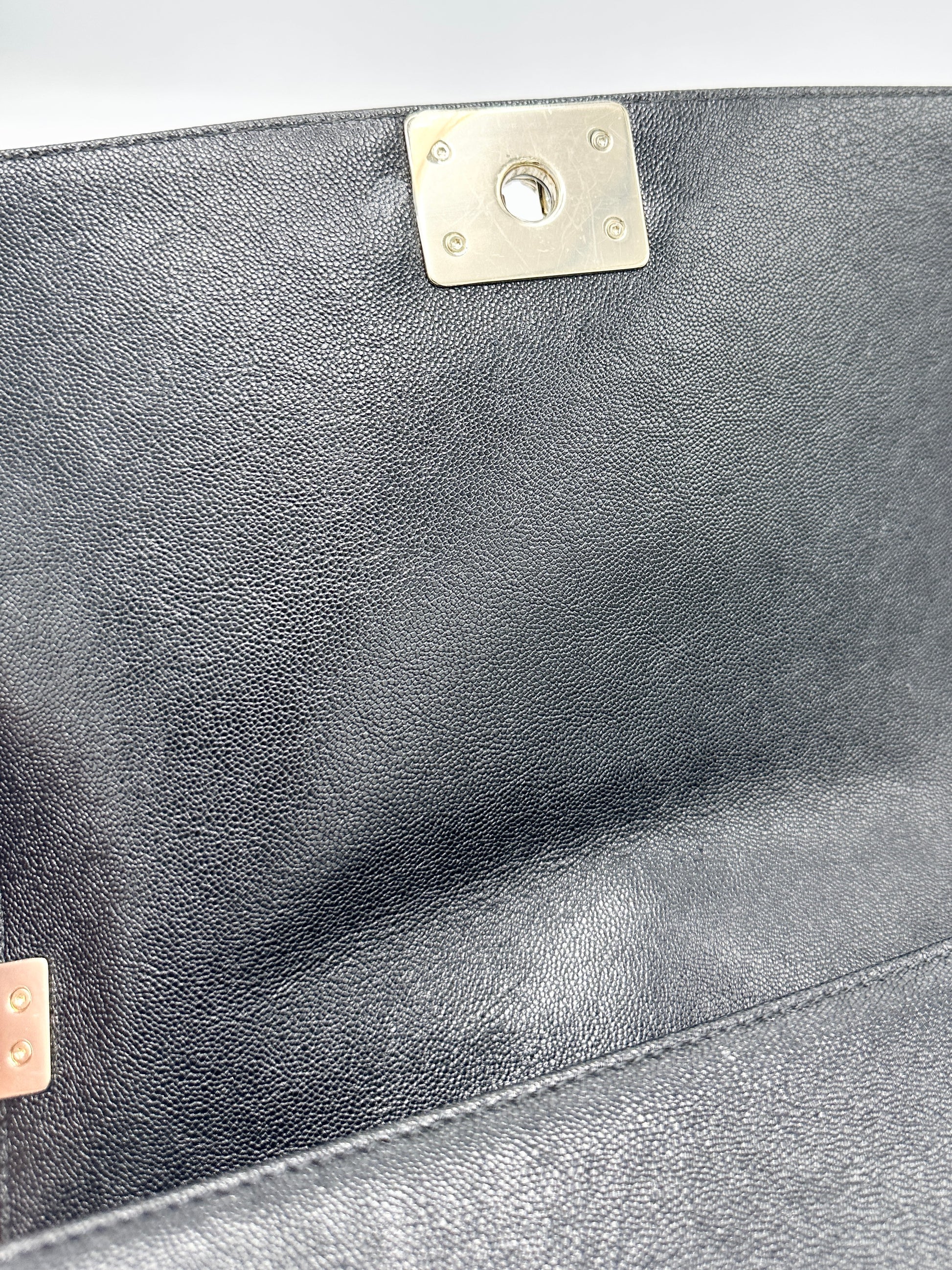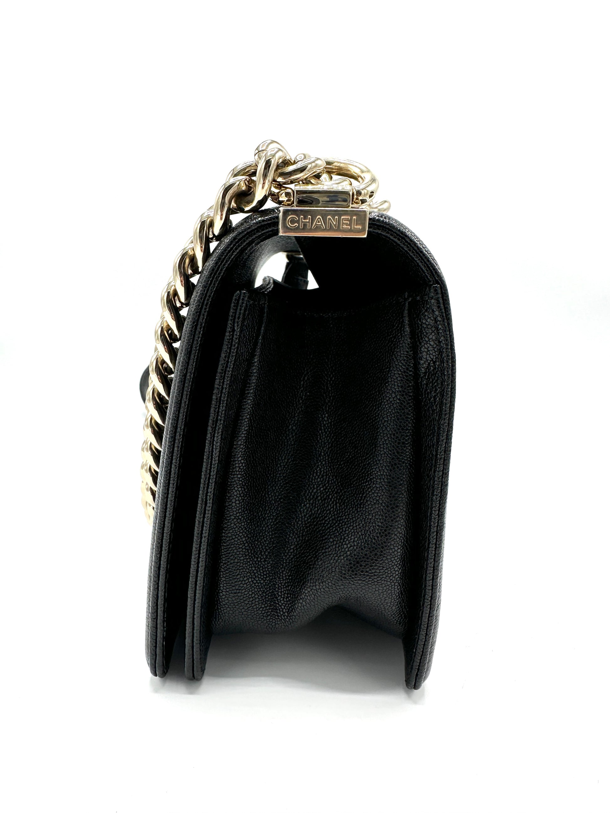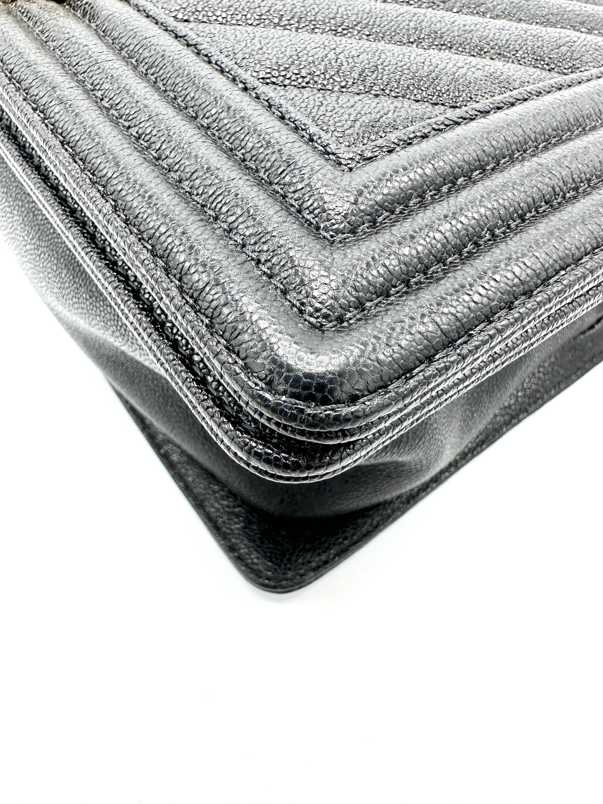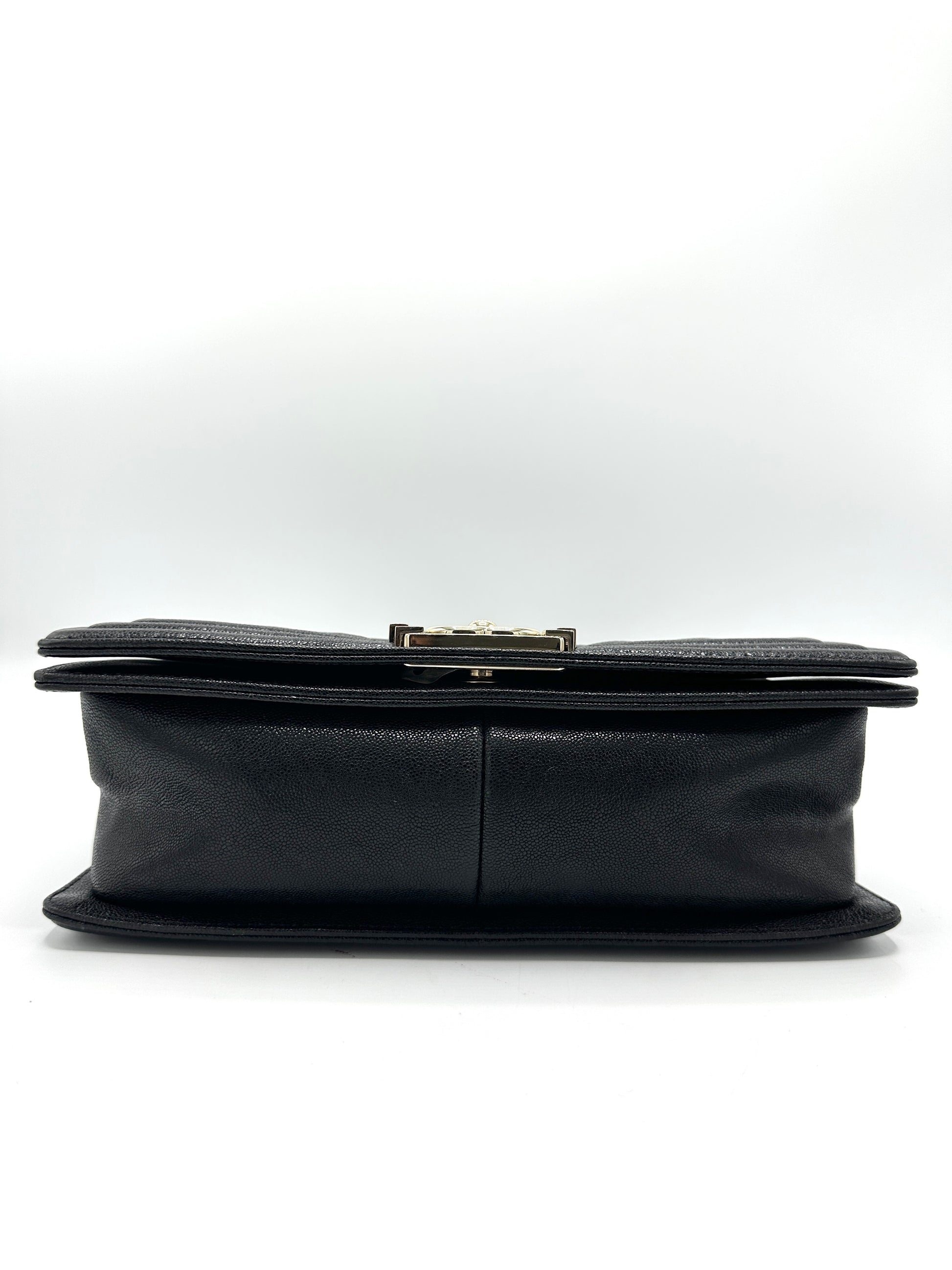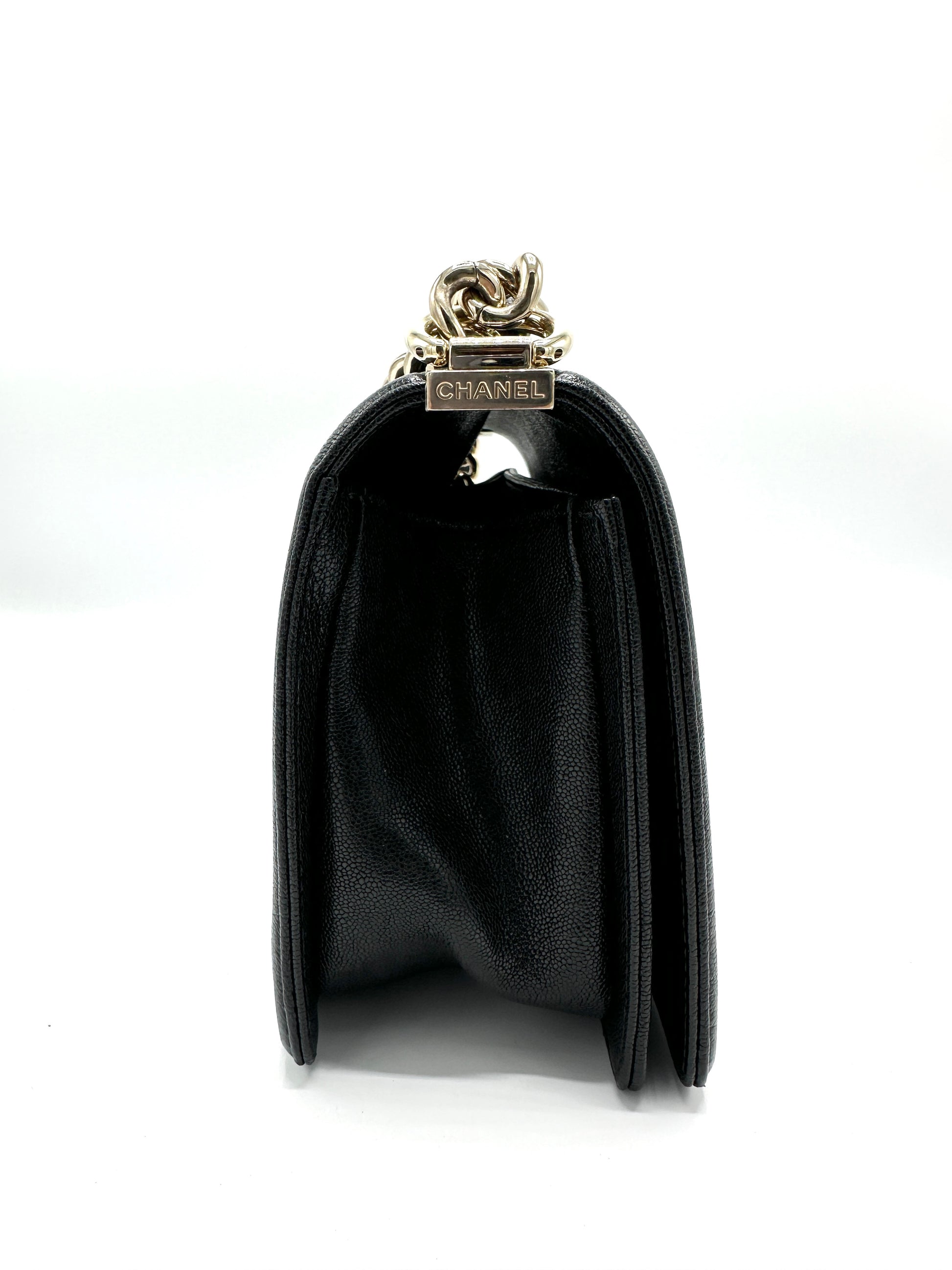 100% Authentic Chanel Black Caviar Chevron GHW Medium Boy Bag