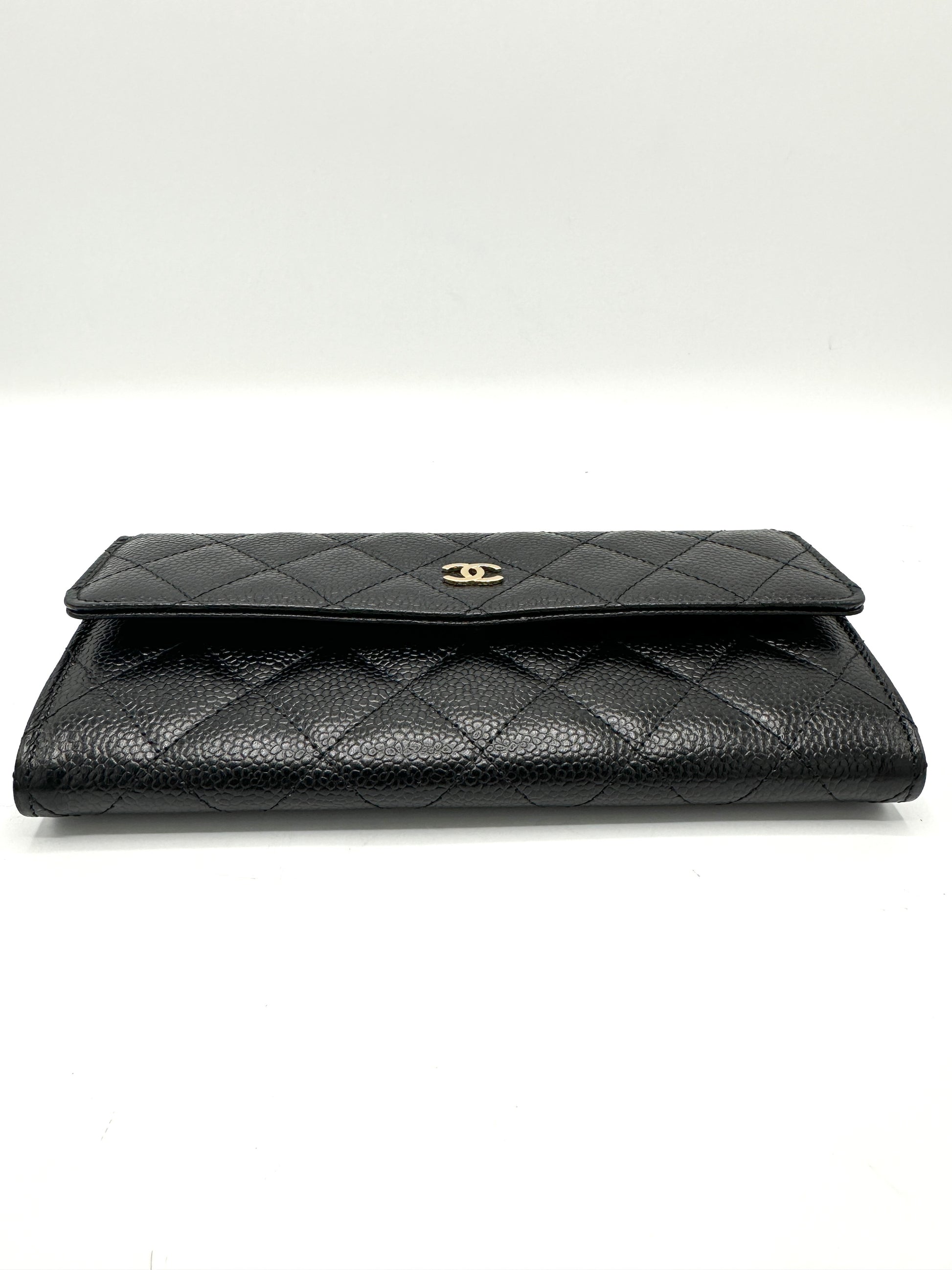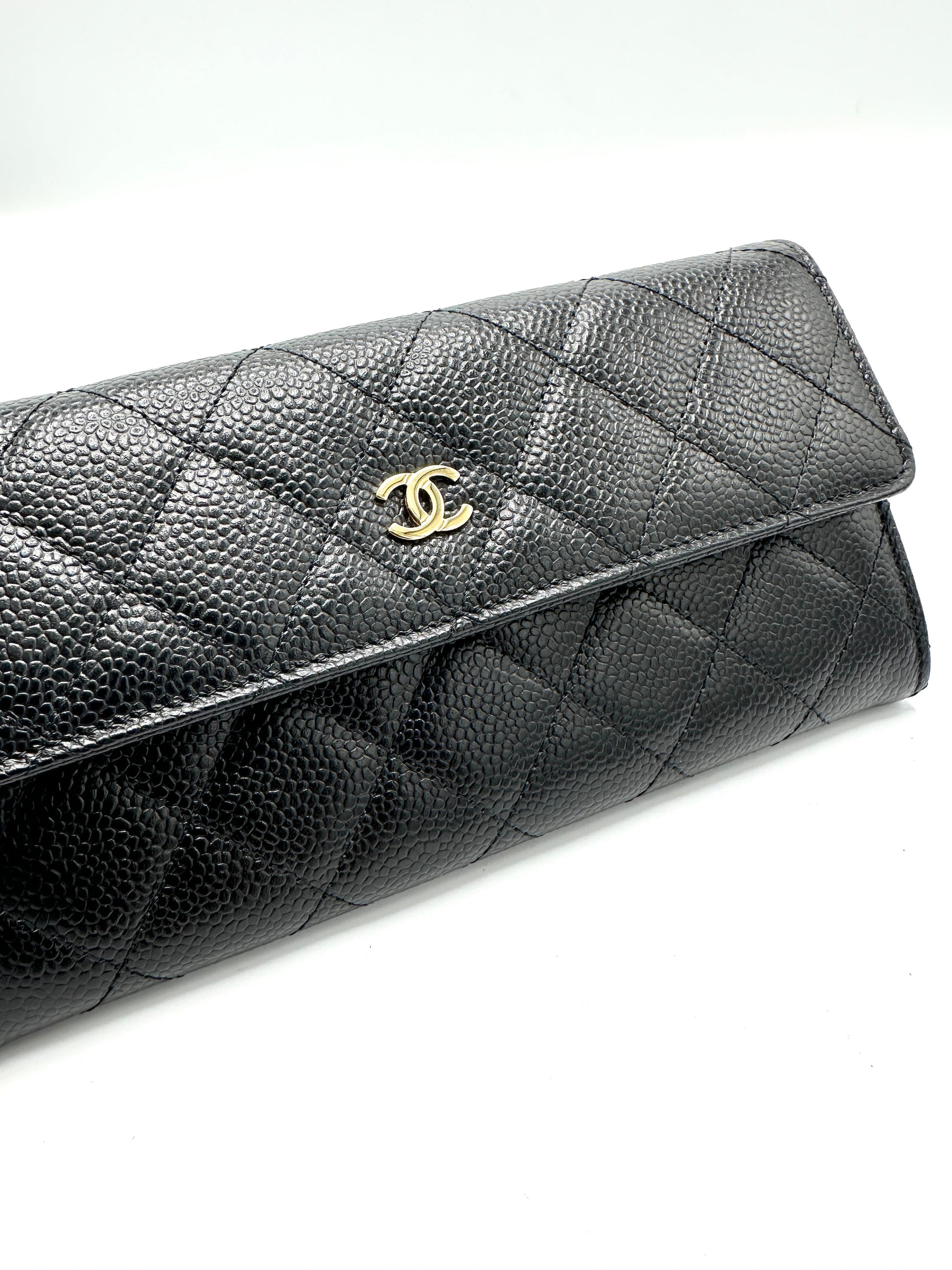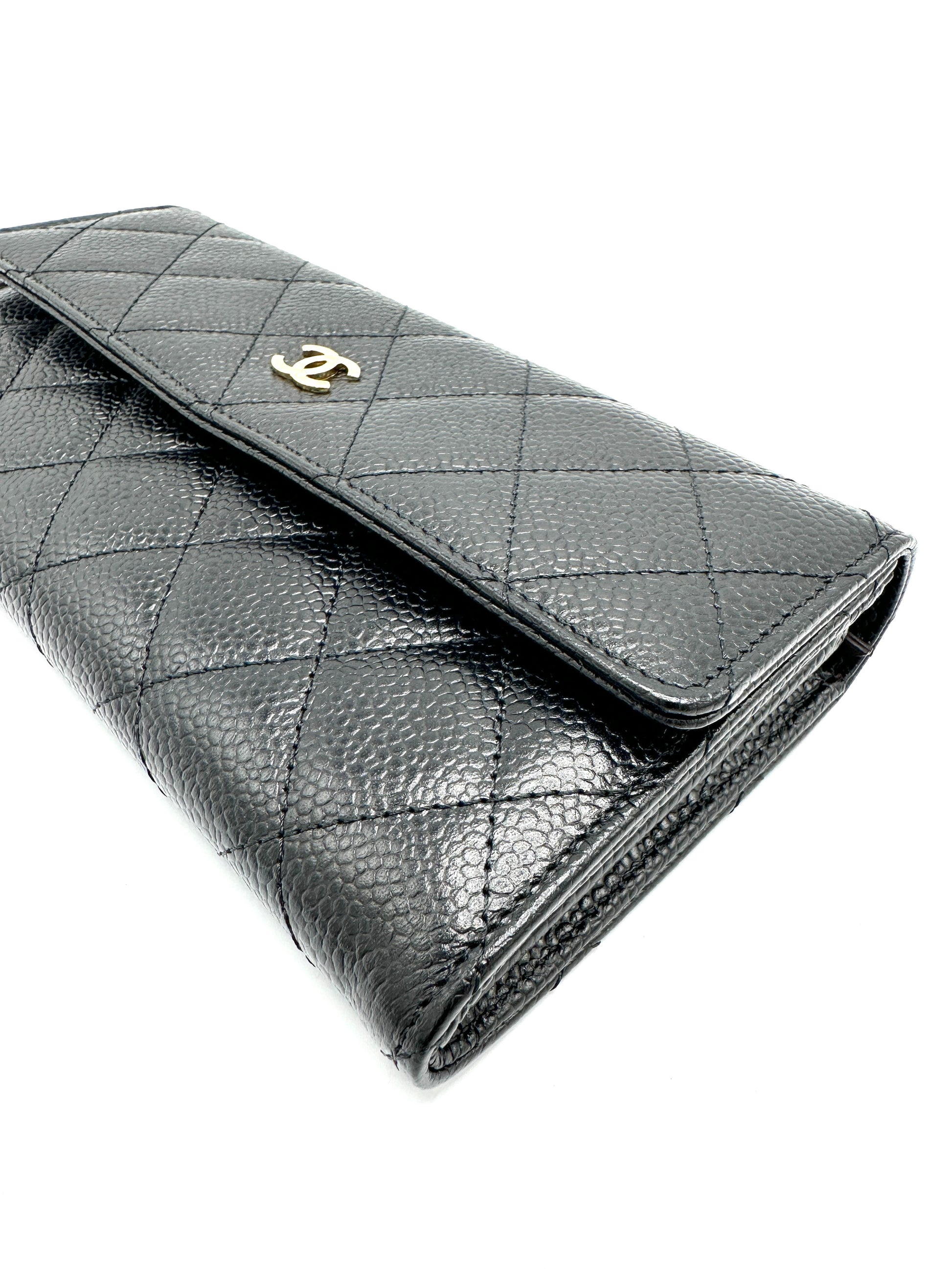 100% Authentic Chanel Black Caviar Quilted GHW Flap Wallet