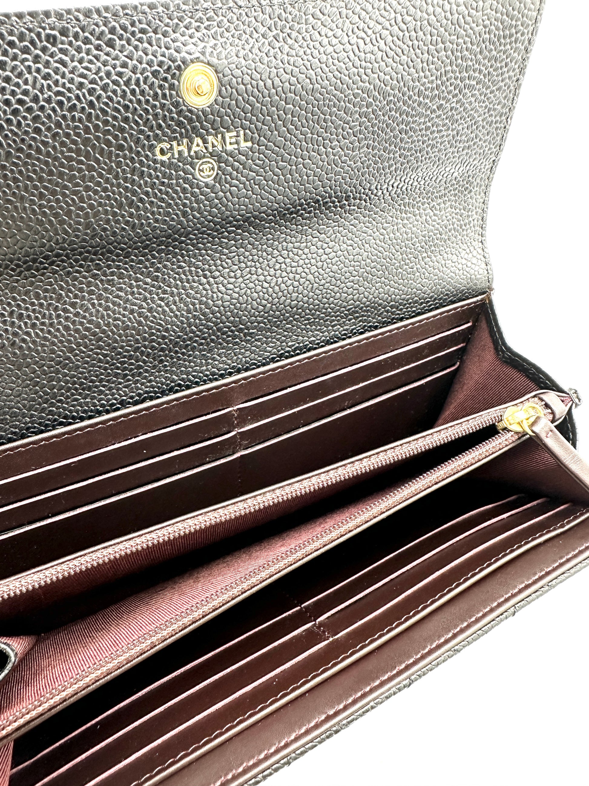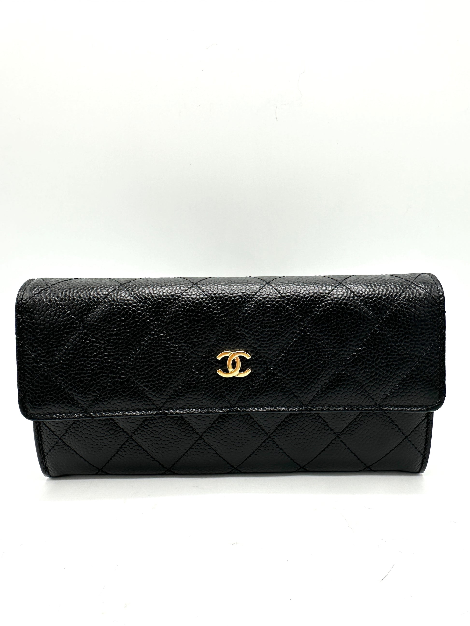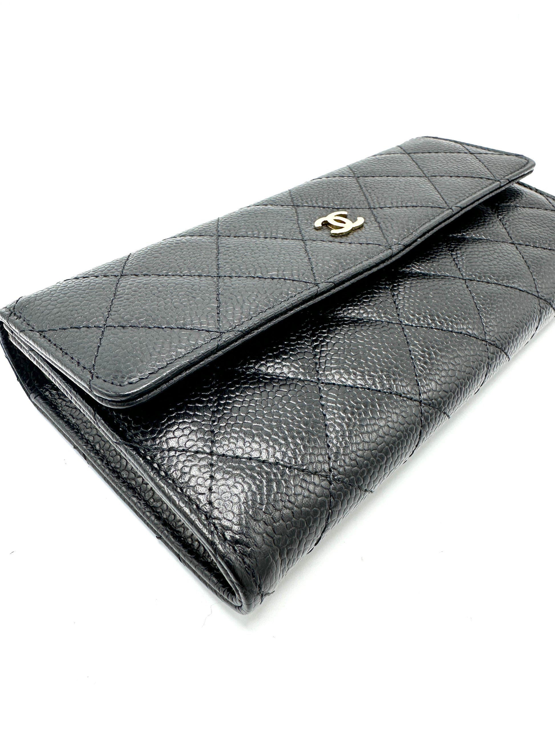 100% Authentic Chanel Black Caviar Quilted GHW Flap Wallet