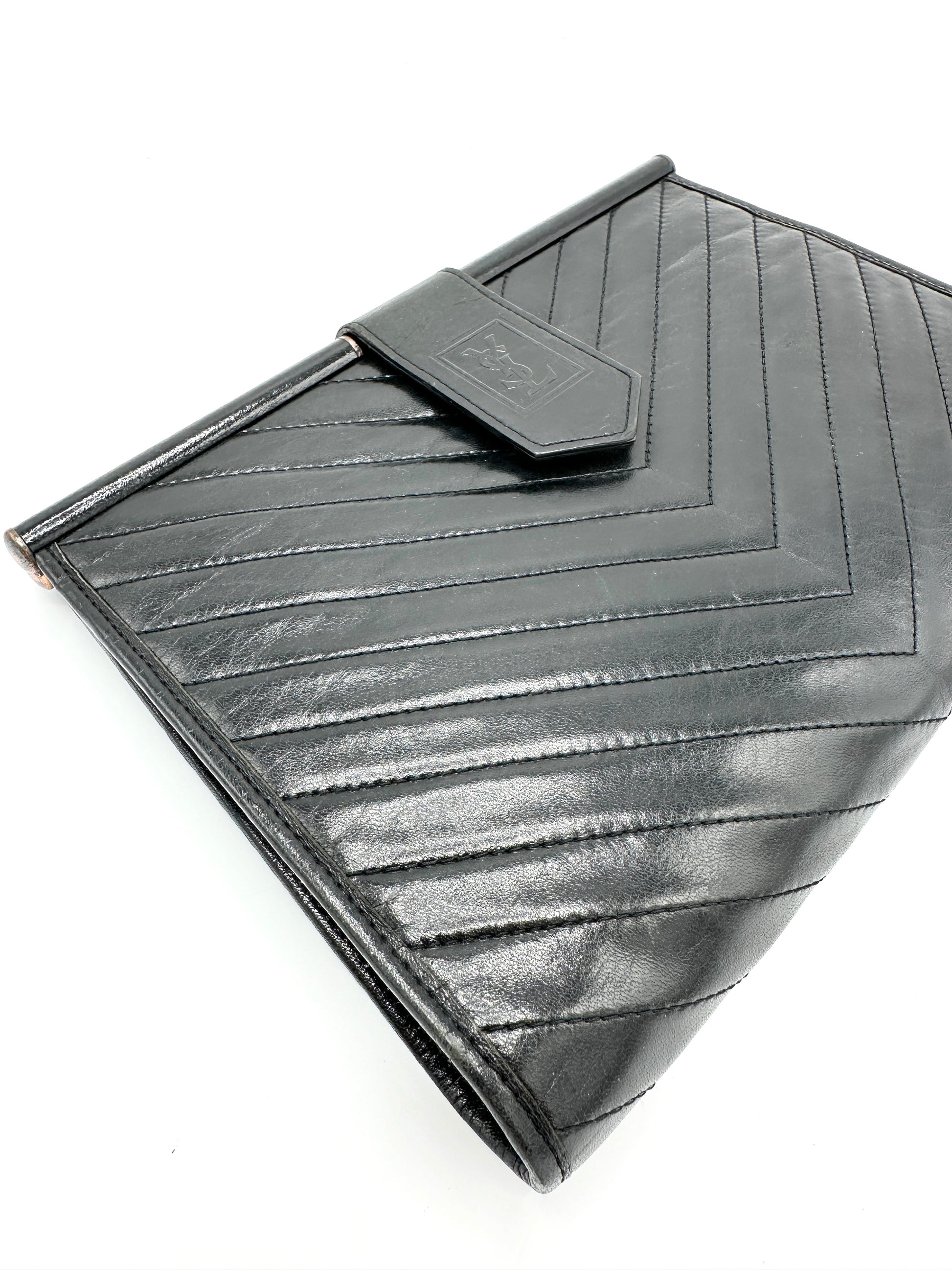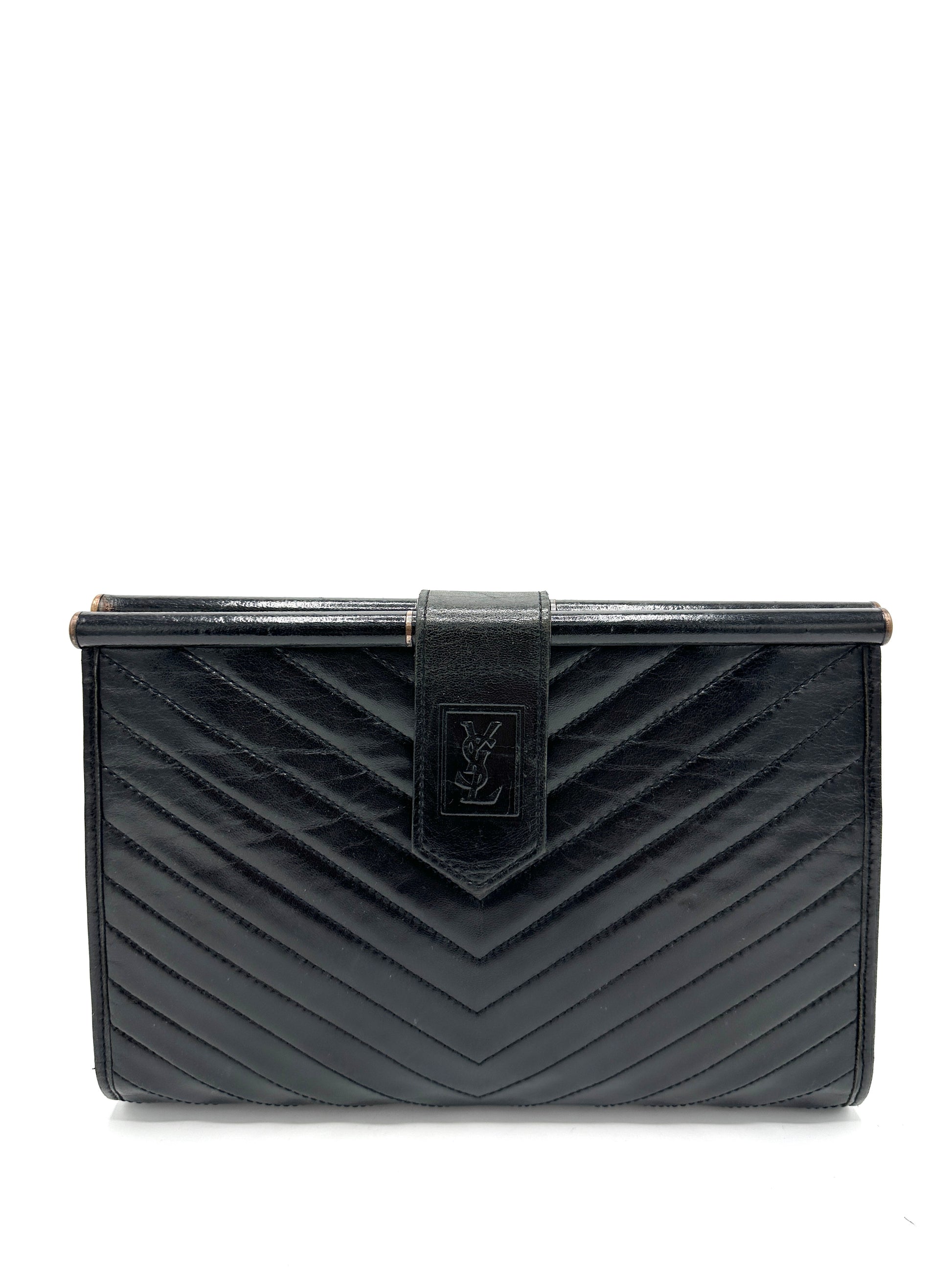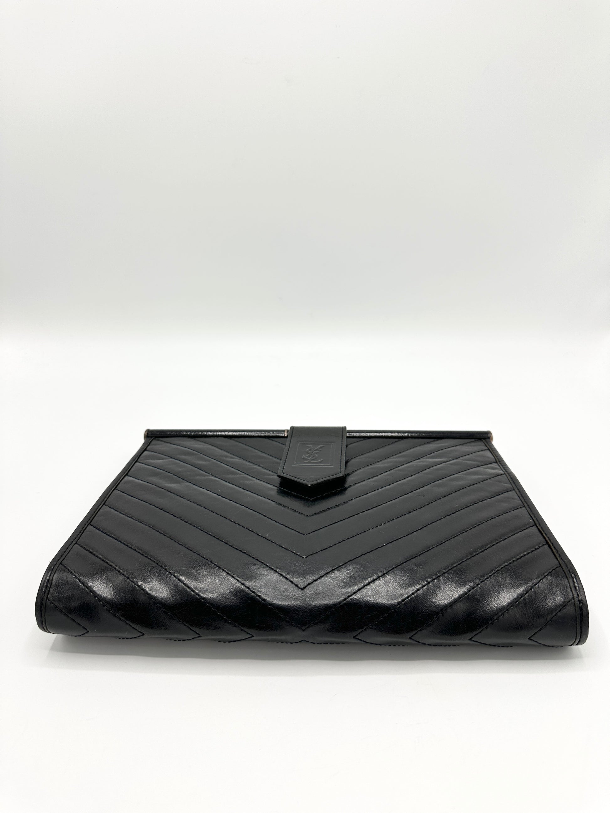 100% Authentic Saint Laurent Black Chevron Clamshell Clutch