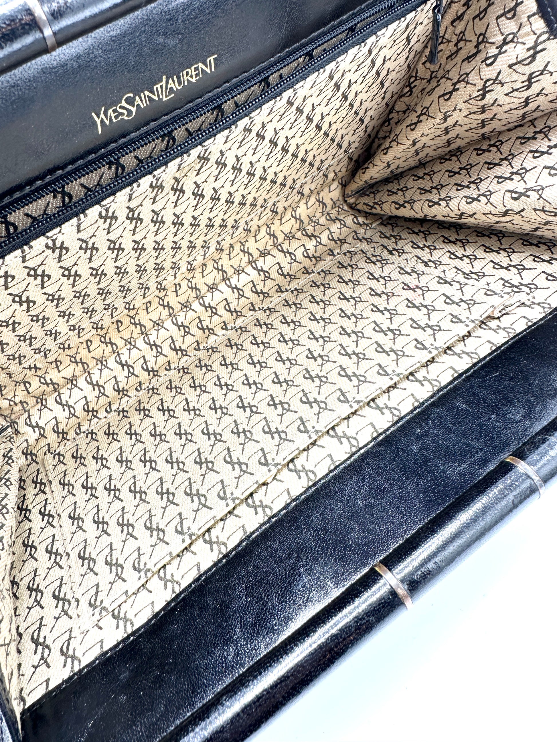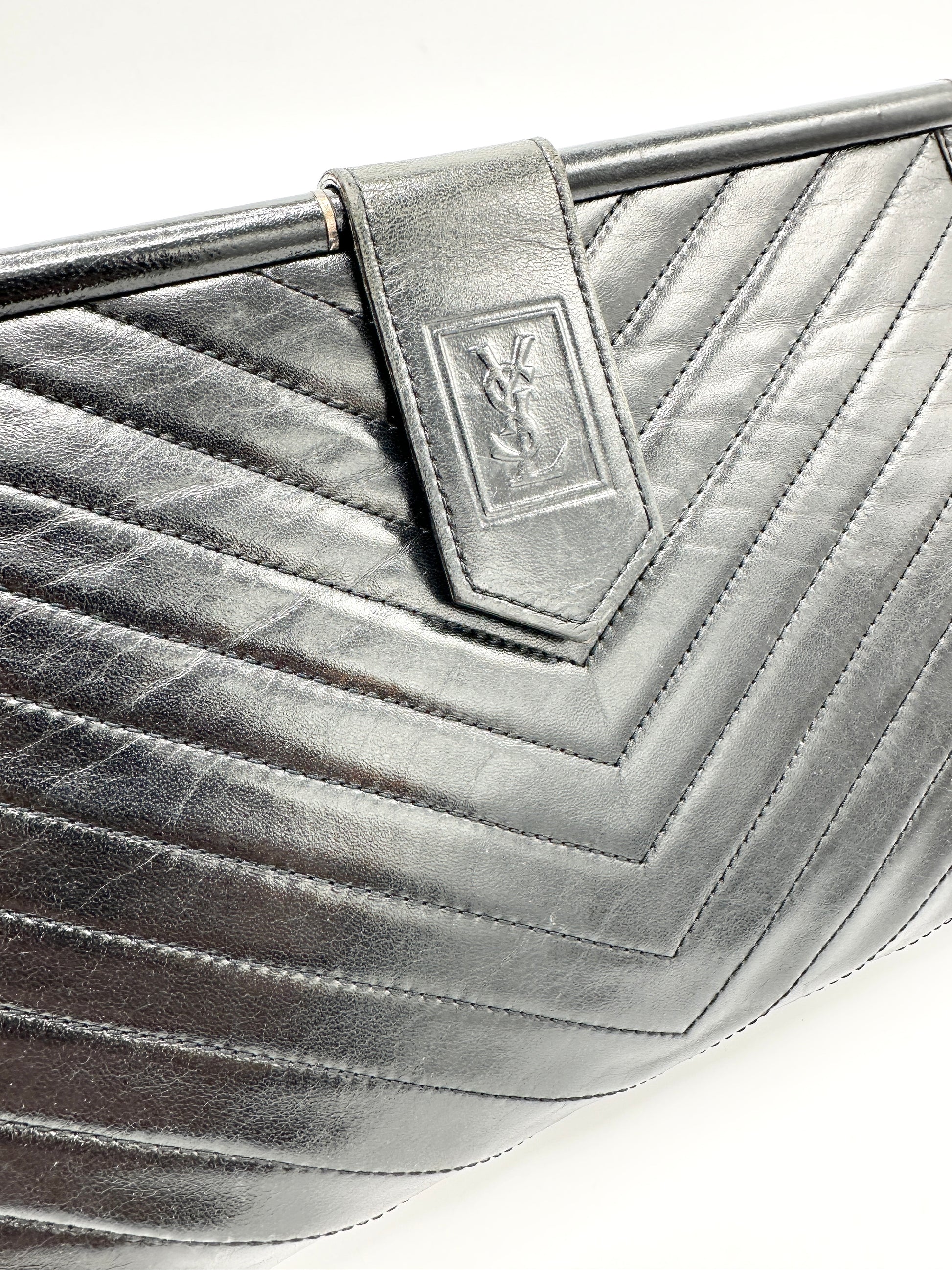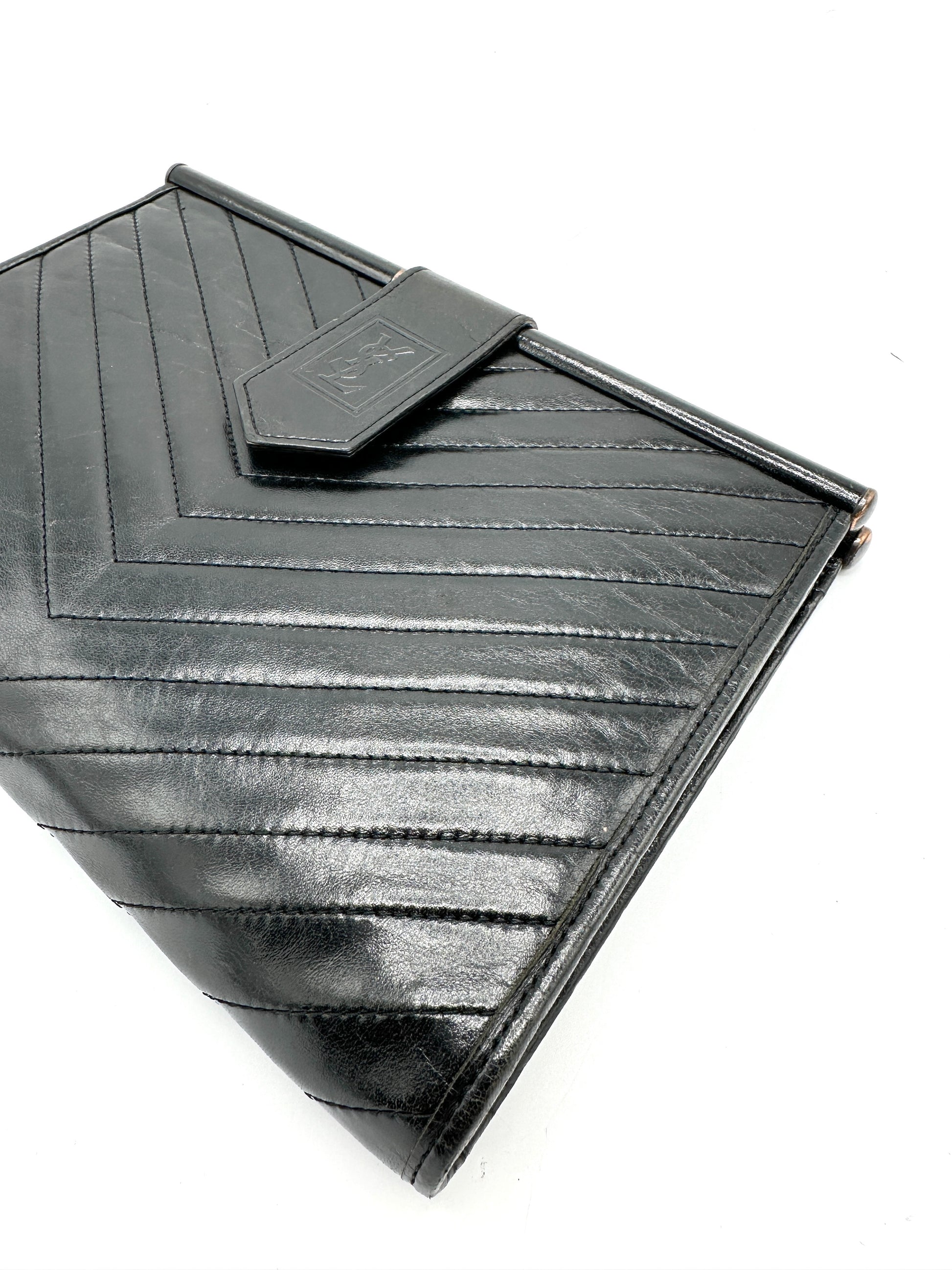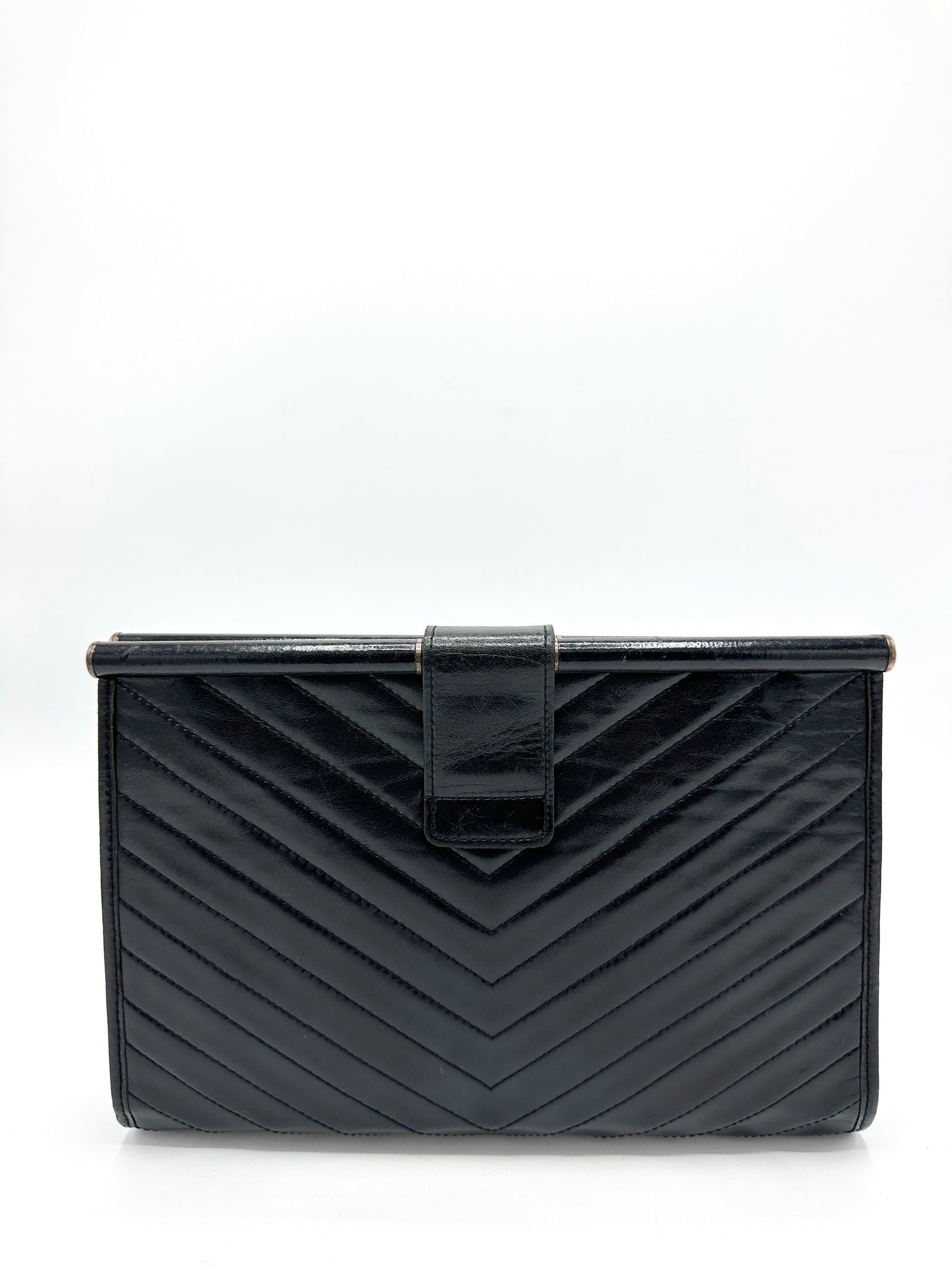100% Authentic Saint Laurent Black Chevron Clamshell Clutch