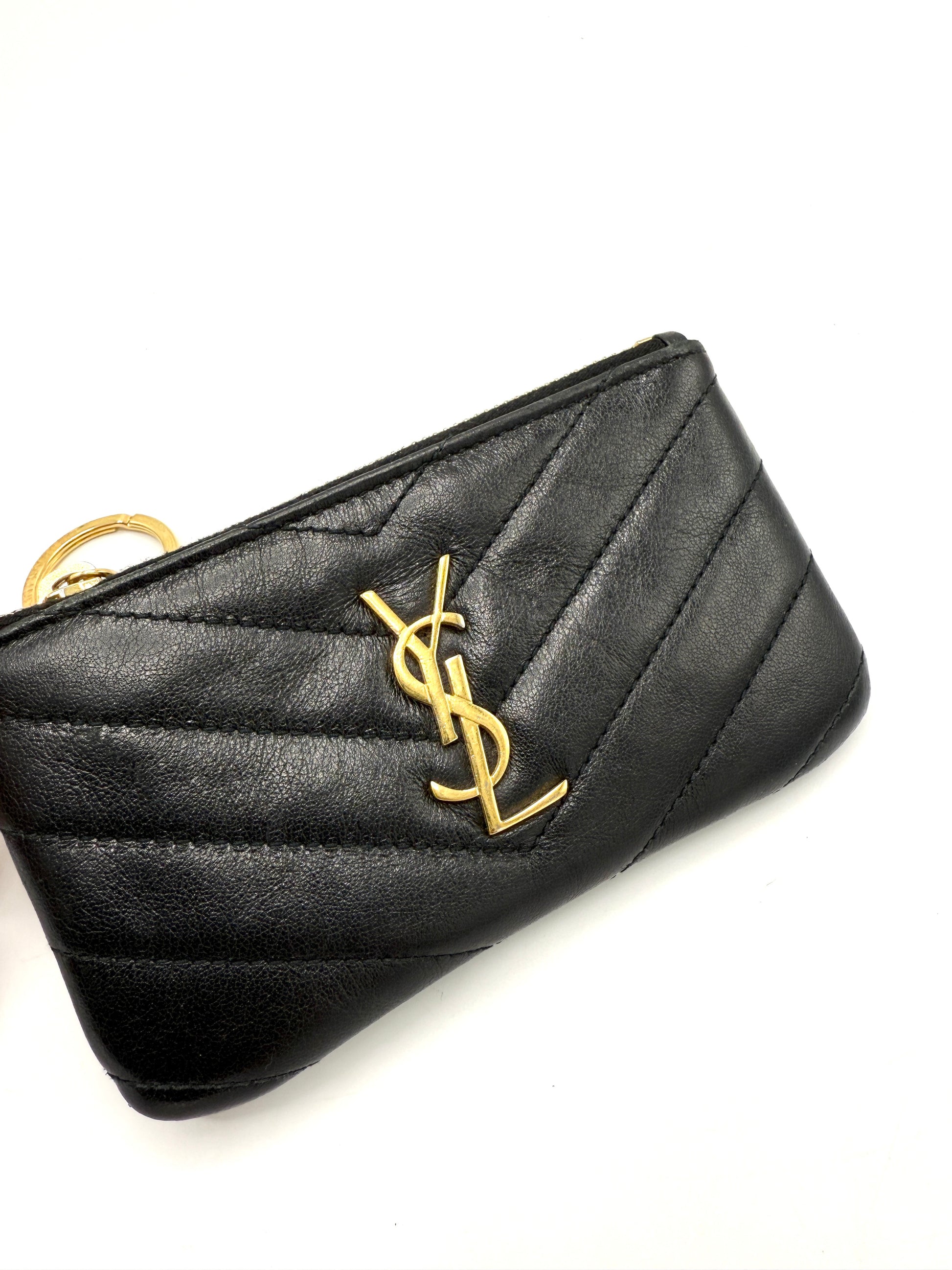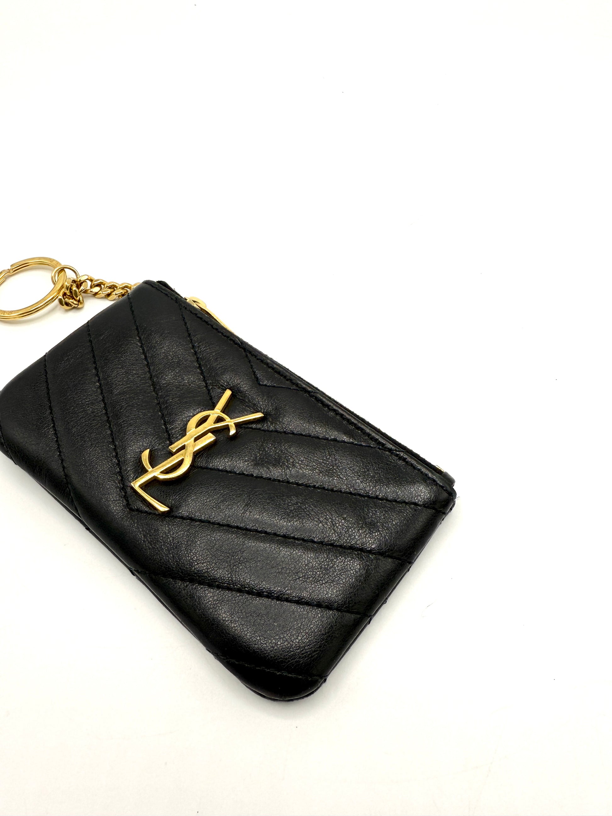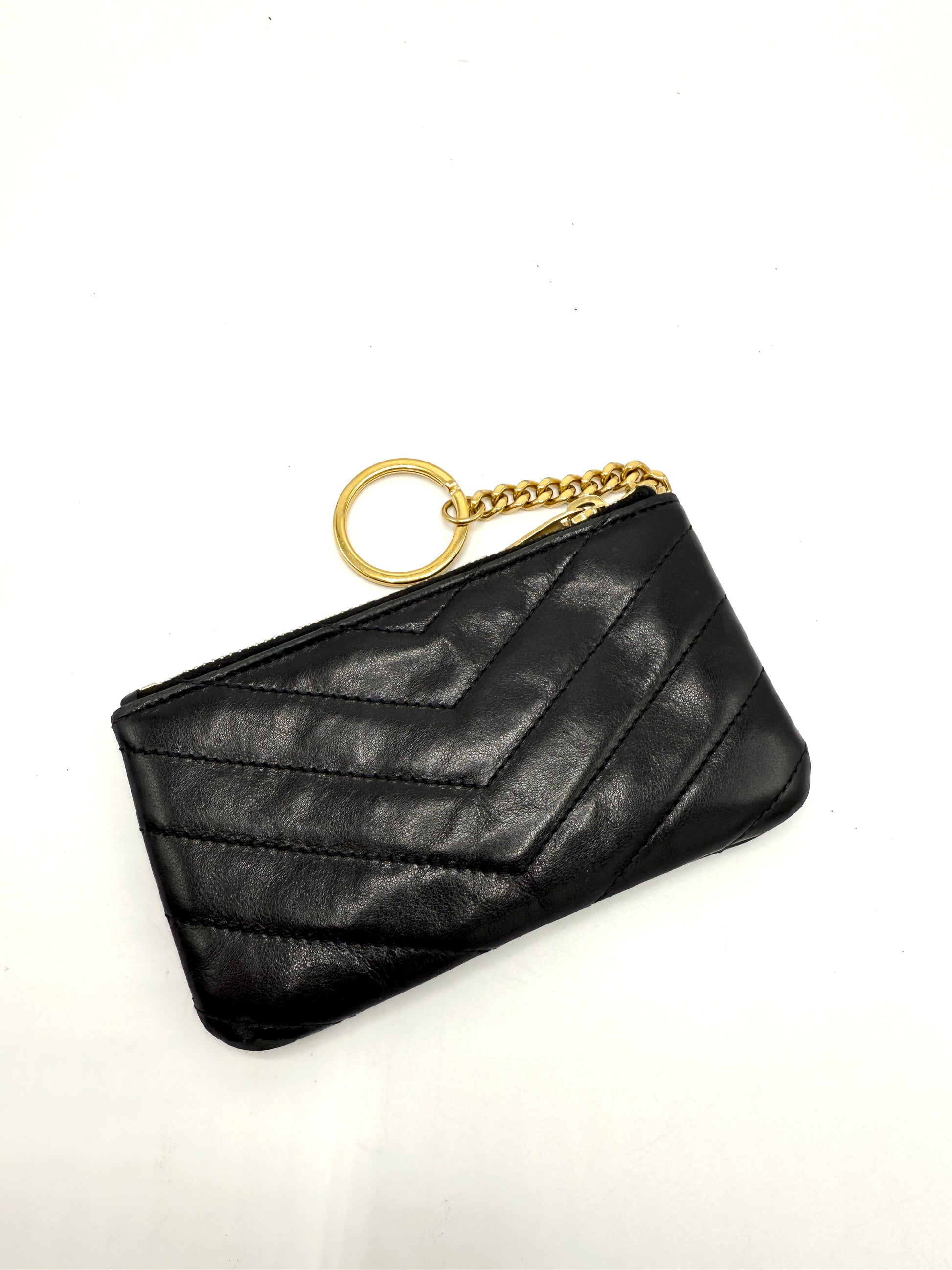 100% Authentic Saint Laurent Black Chevron GHW Coin Pouch
