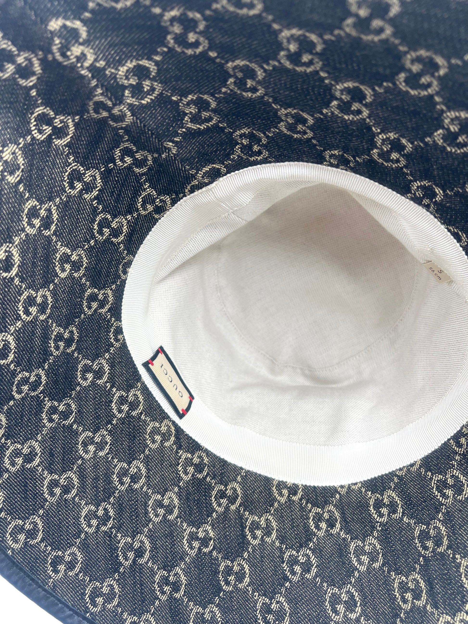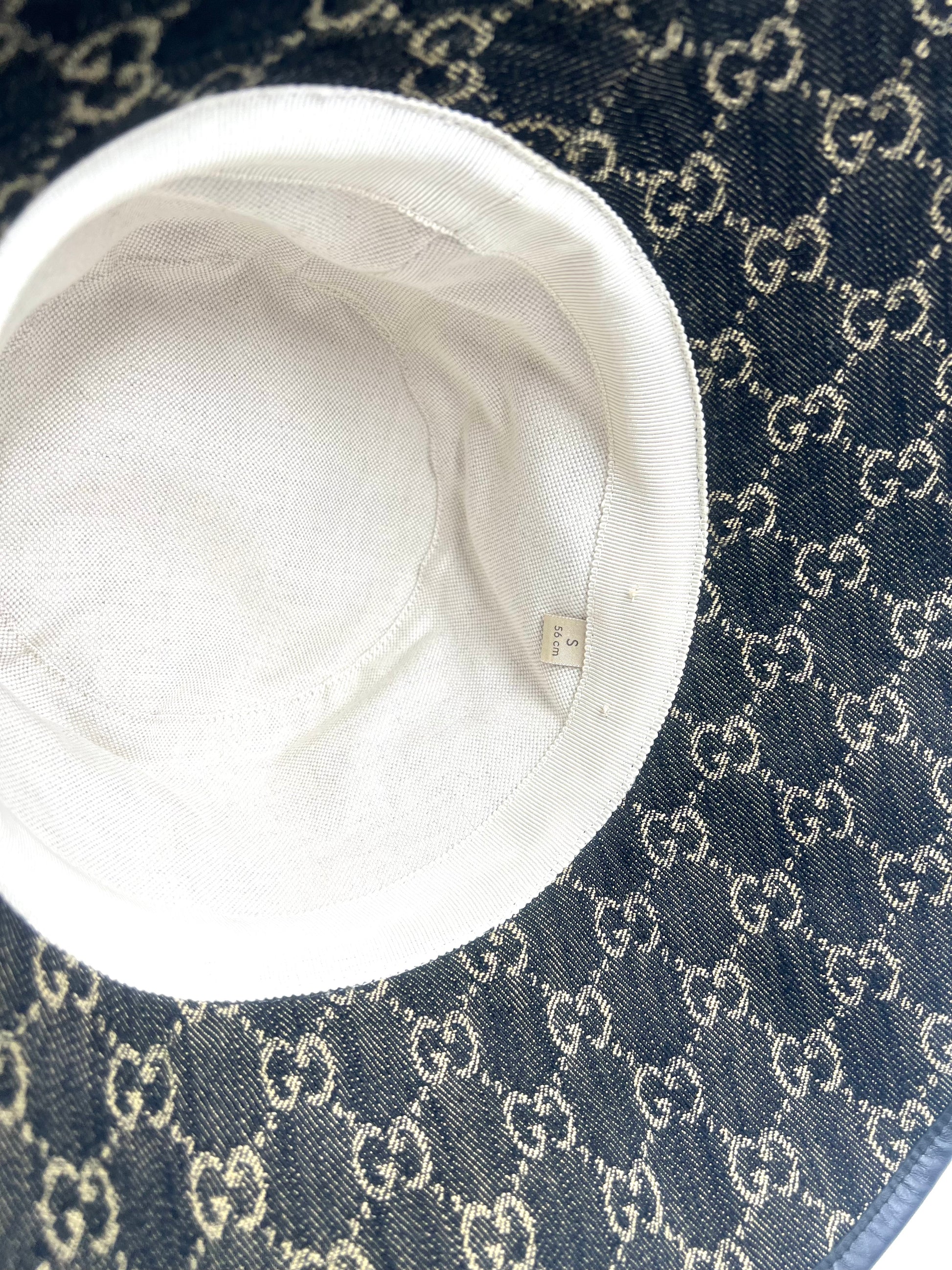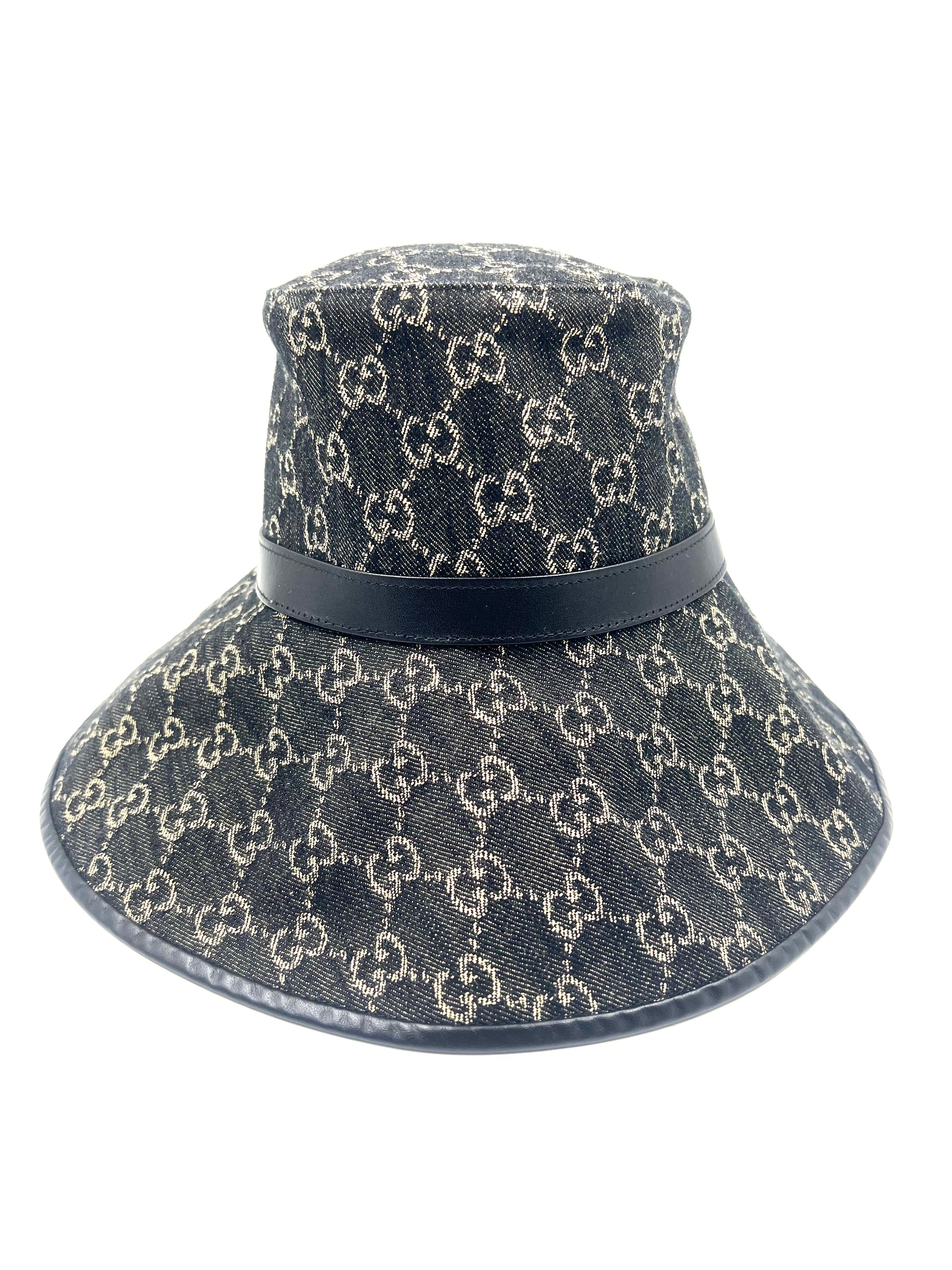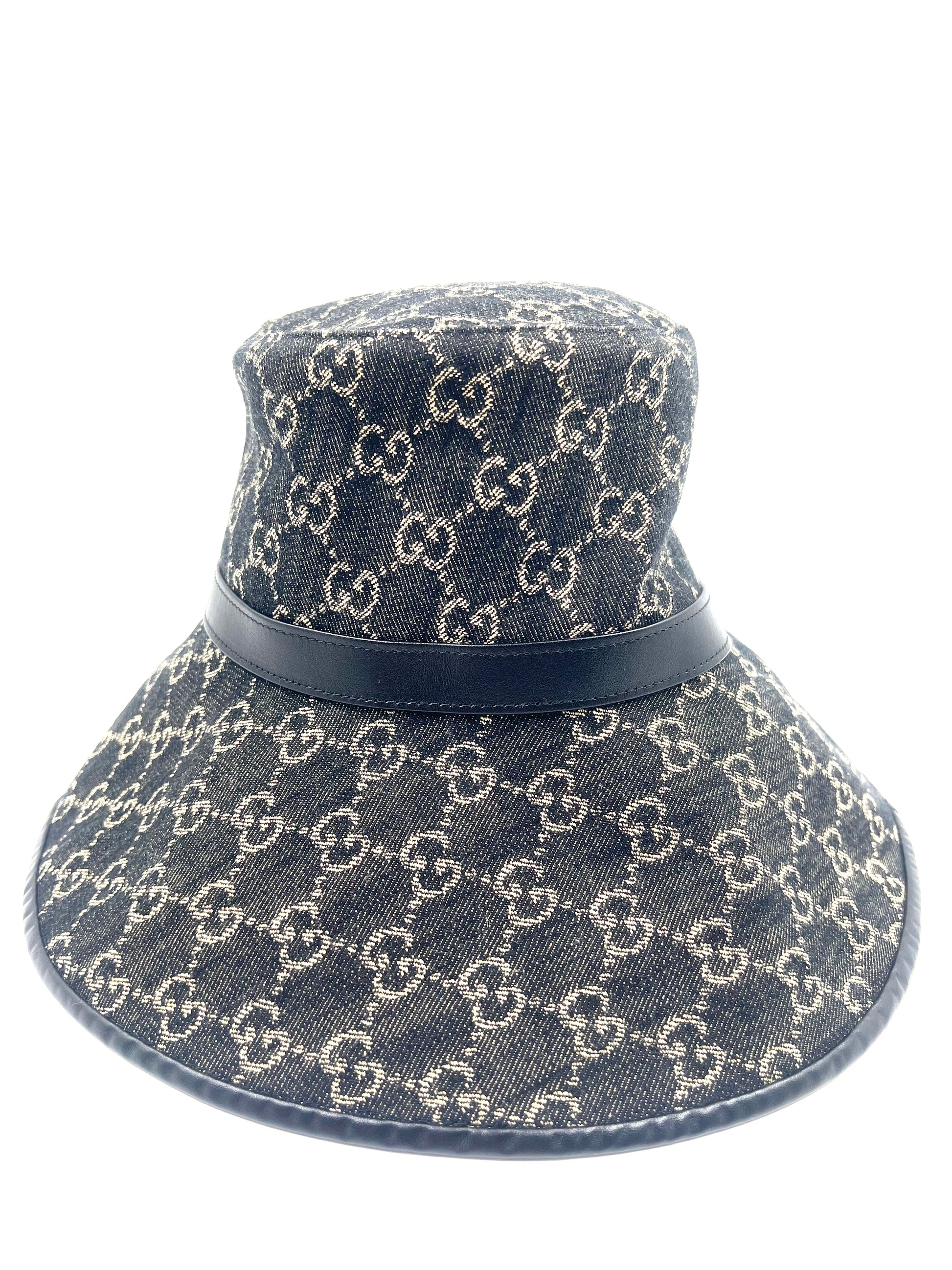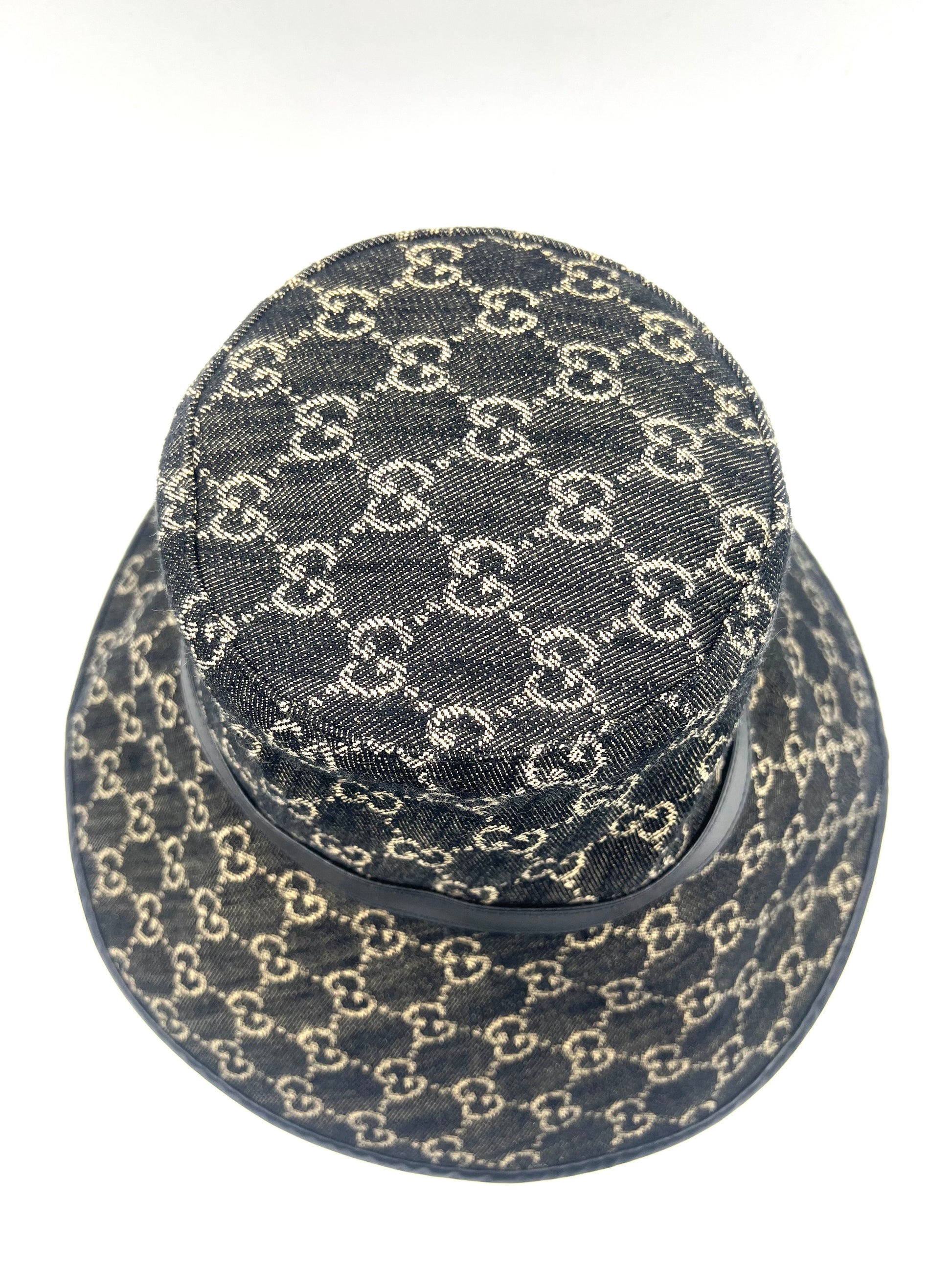 100% Authentic Gucci Black Denim GG XL Bucket Hat