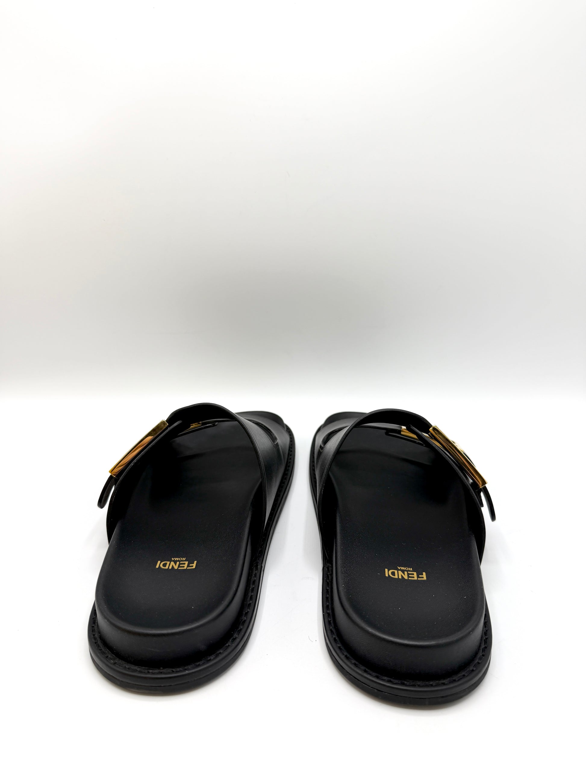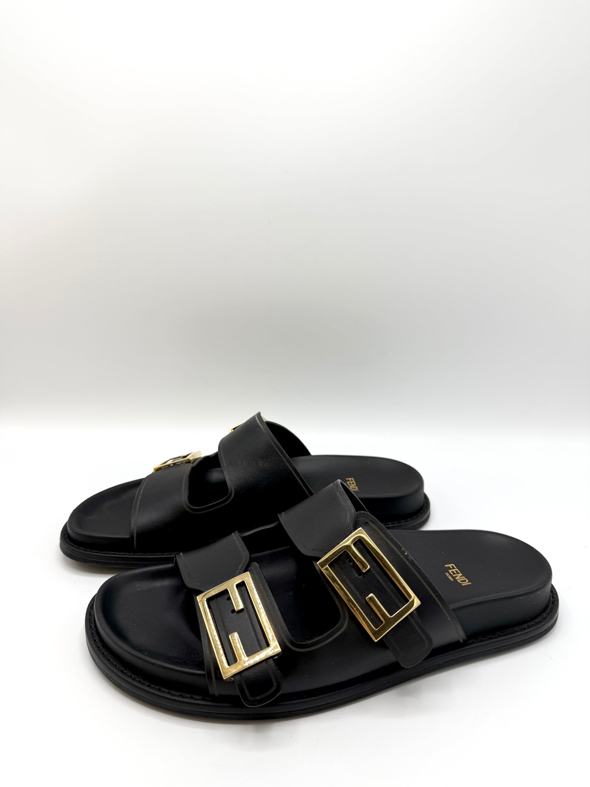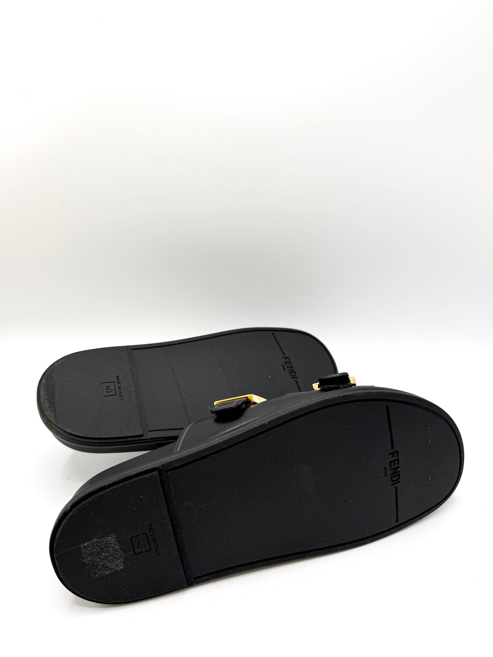 100% Authentic Fendi Black GHW Baguette Sandals SZ 40
