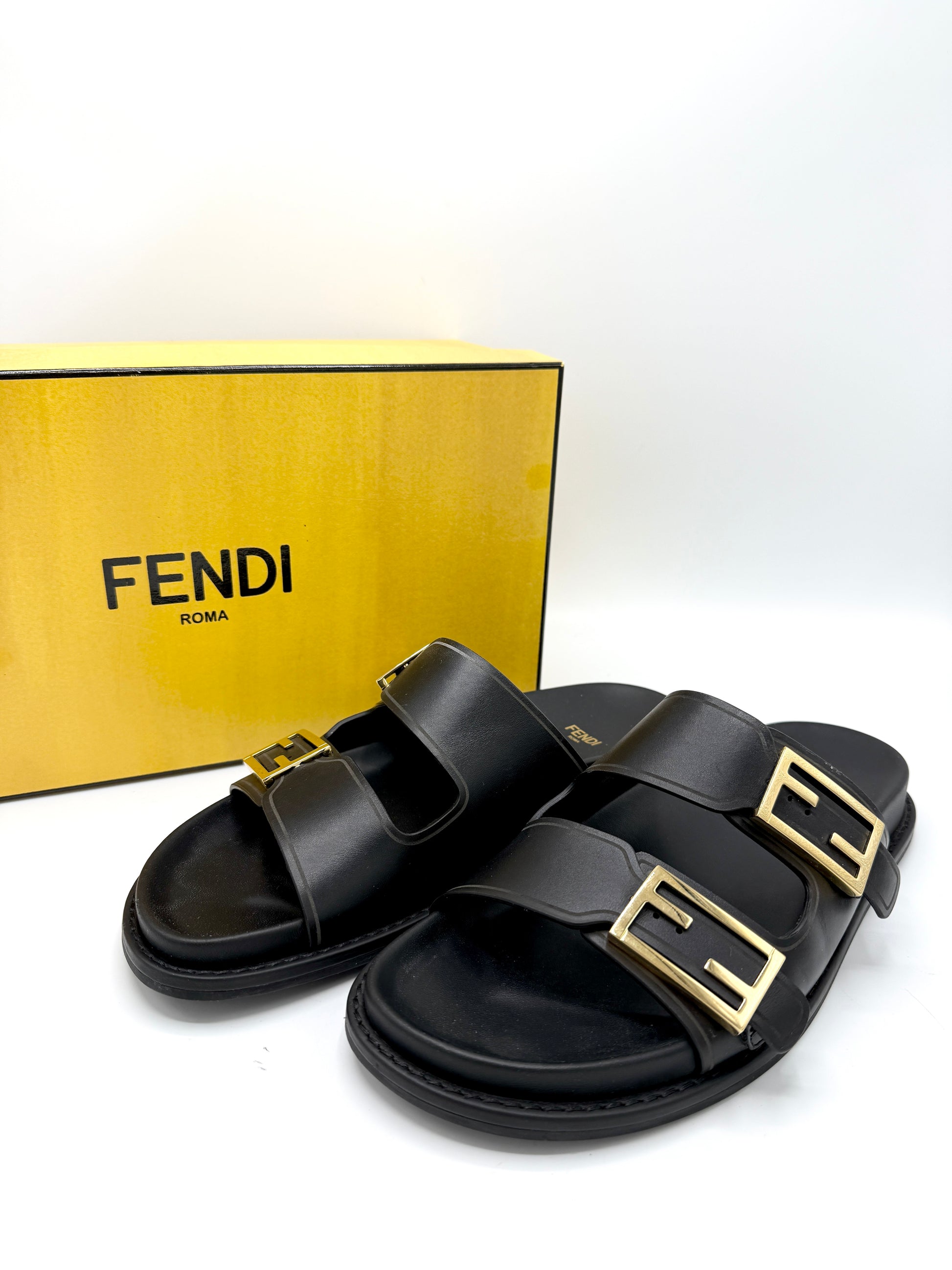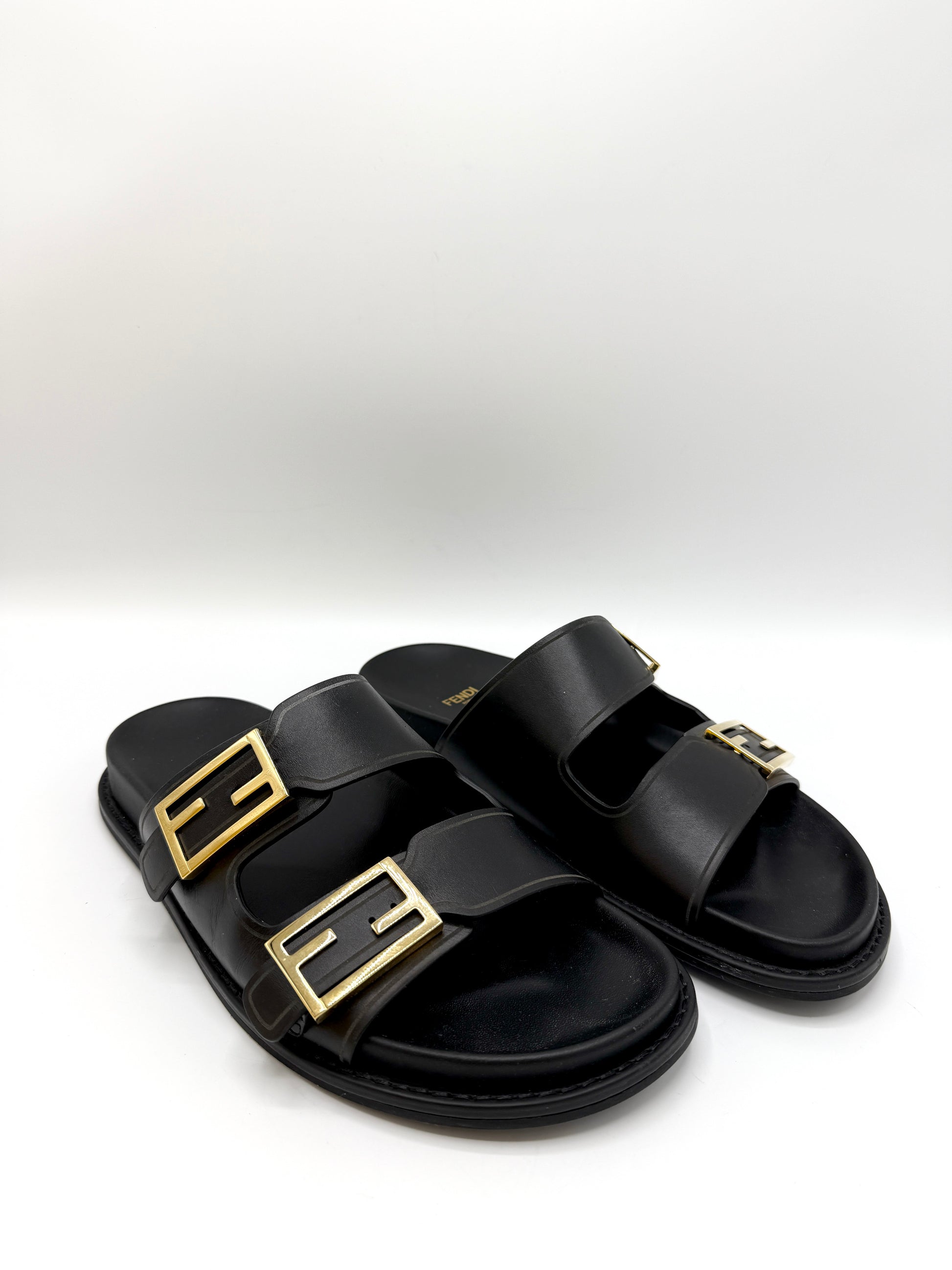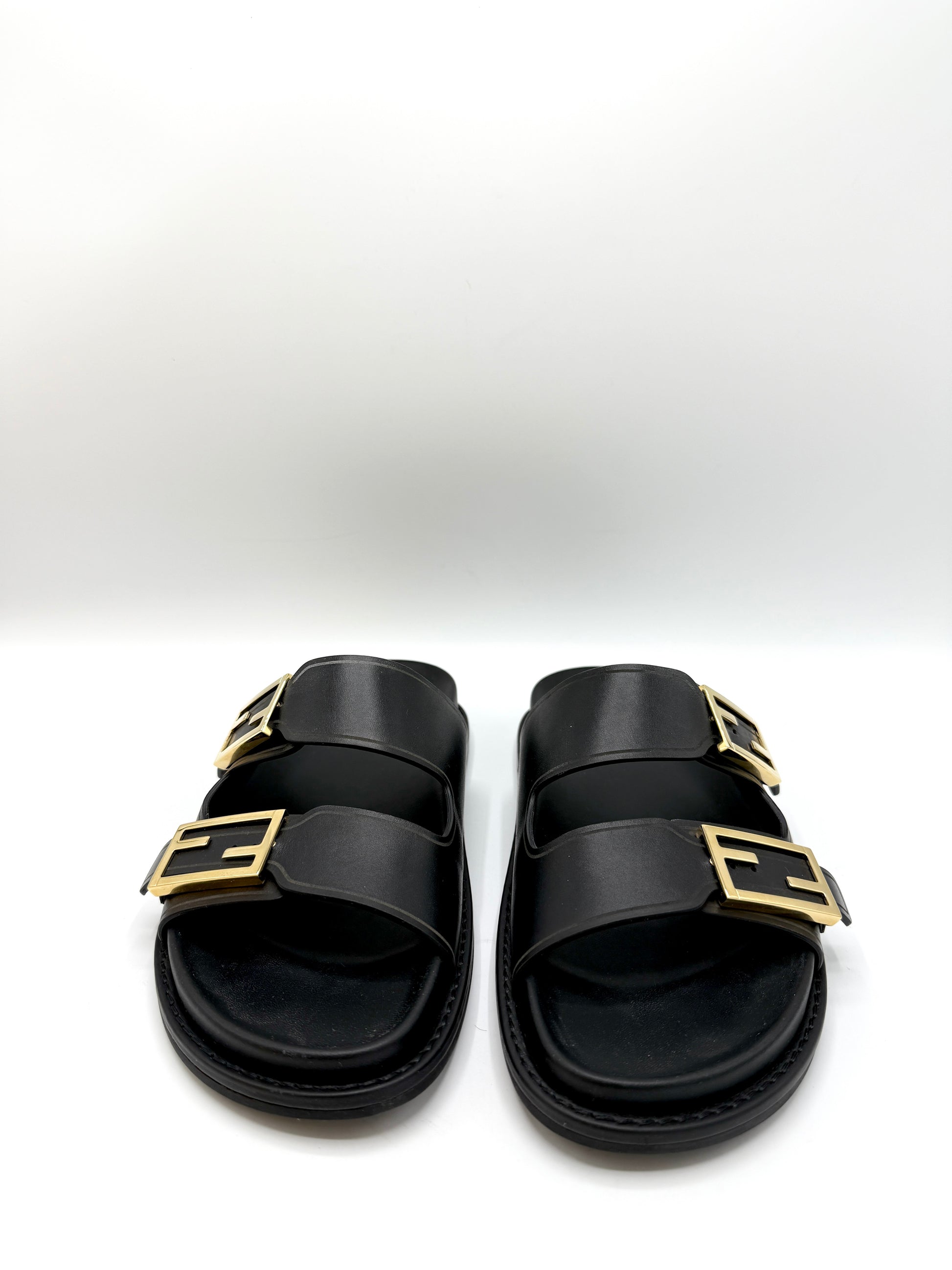 100% Authentic Fendi Black GHW Baguette Sandals SZ 40
