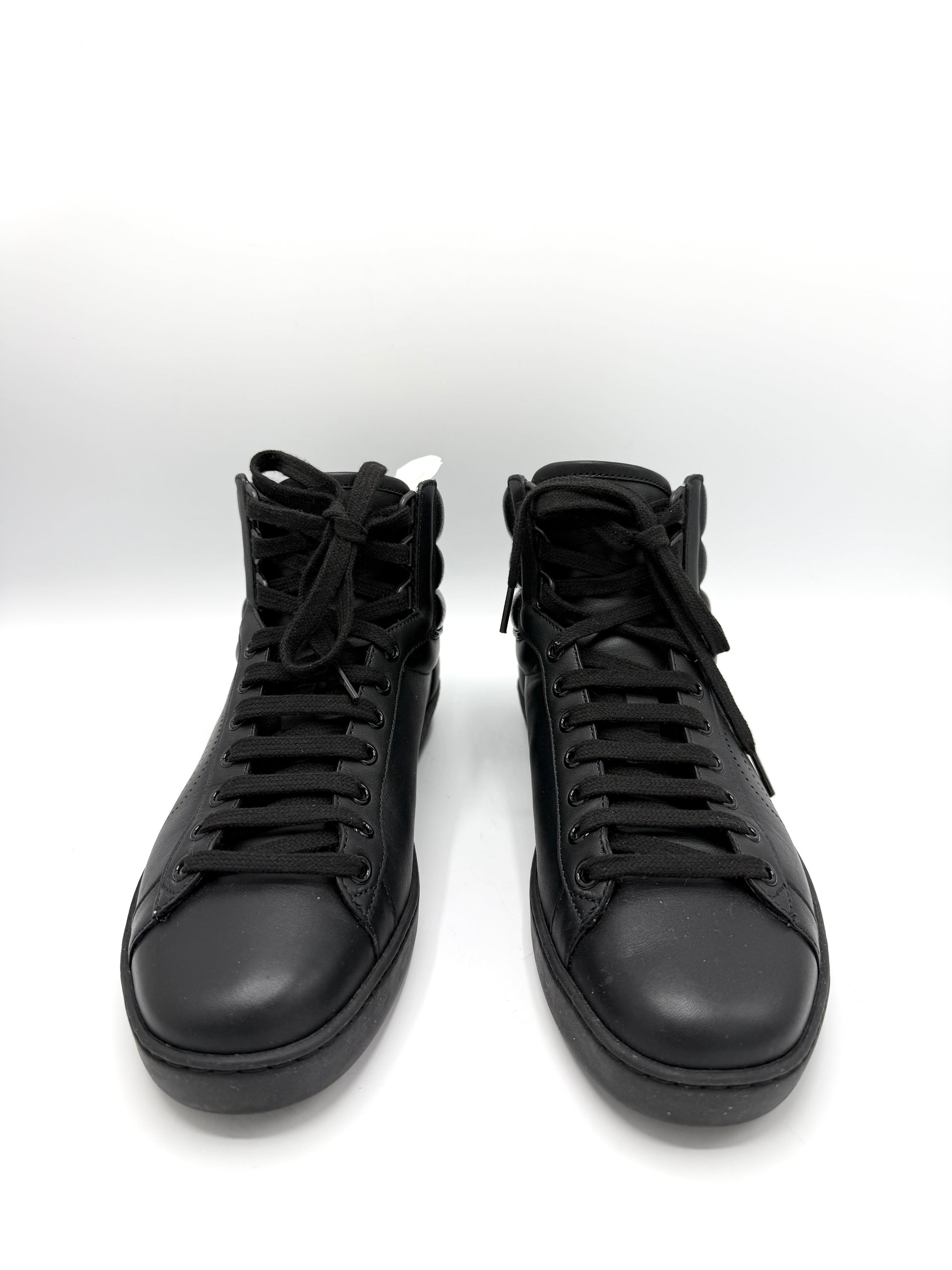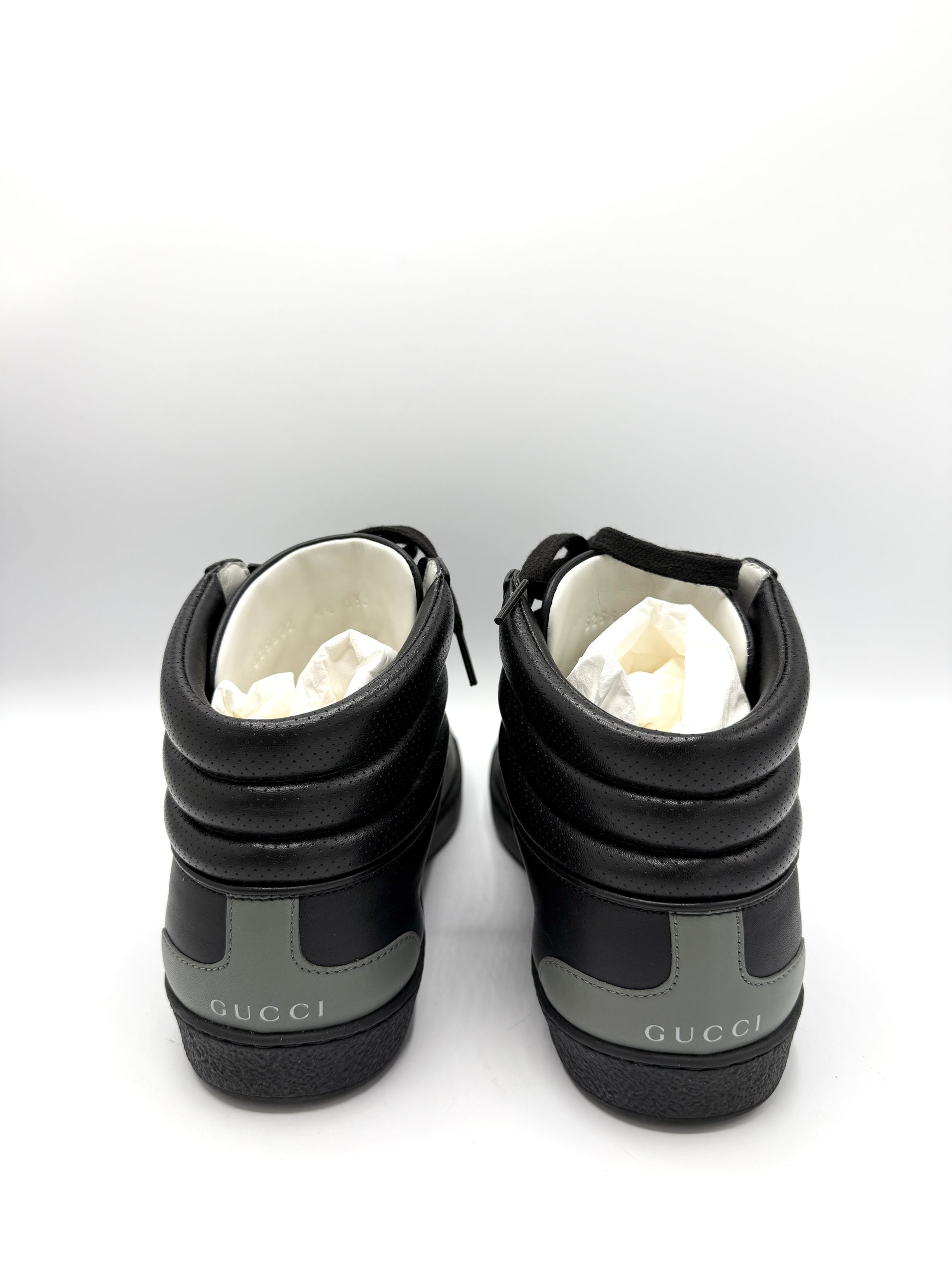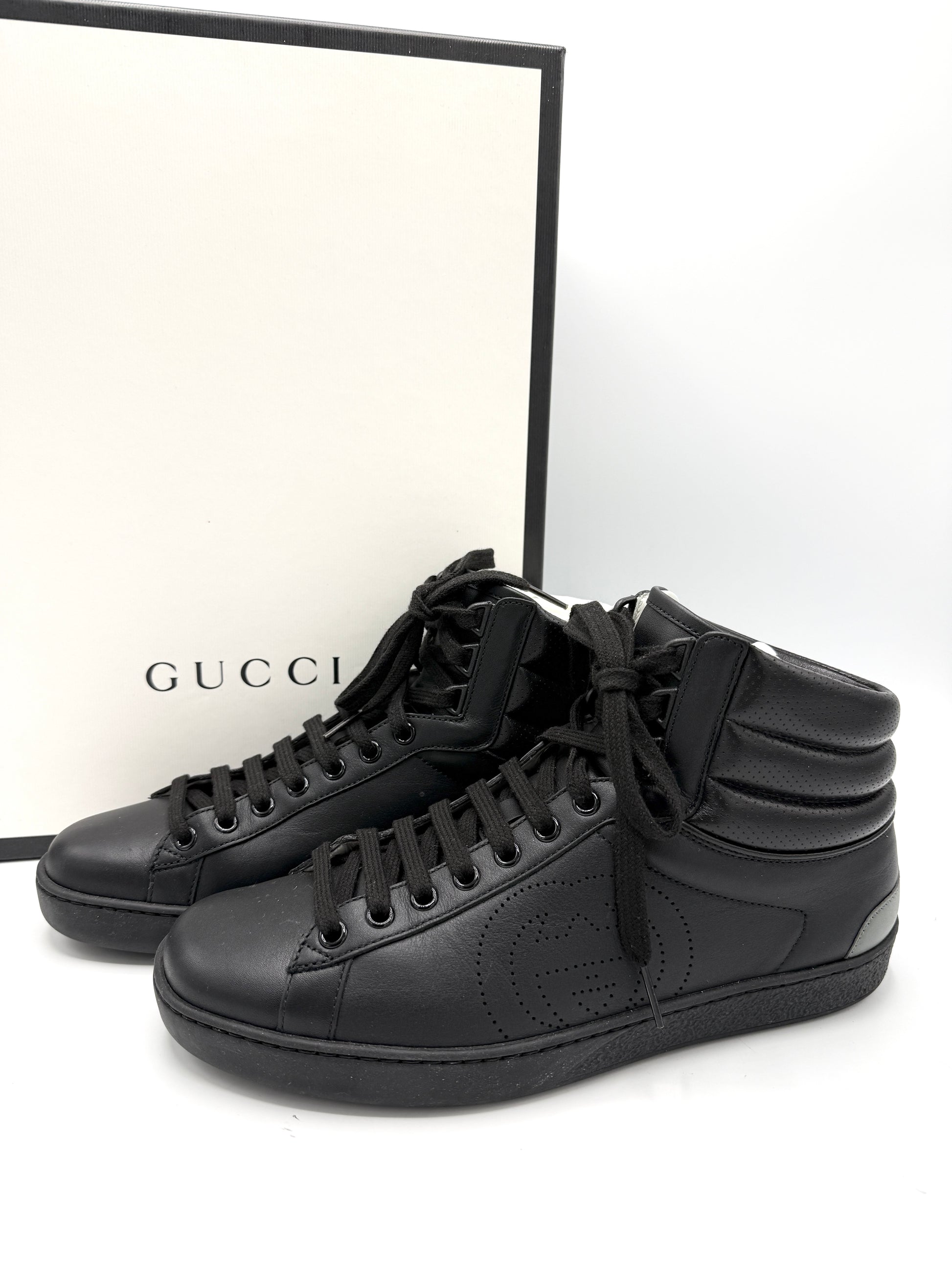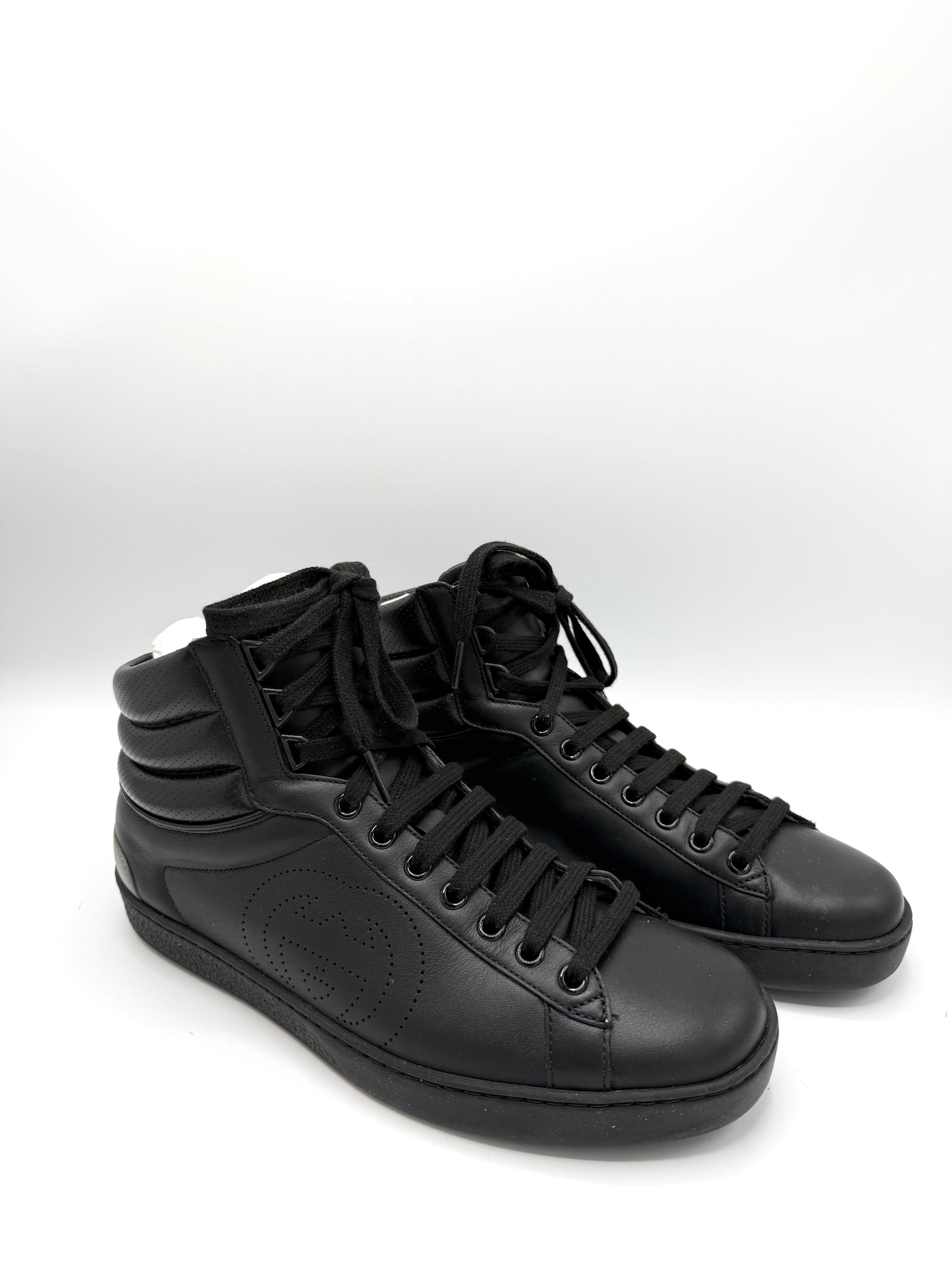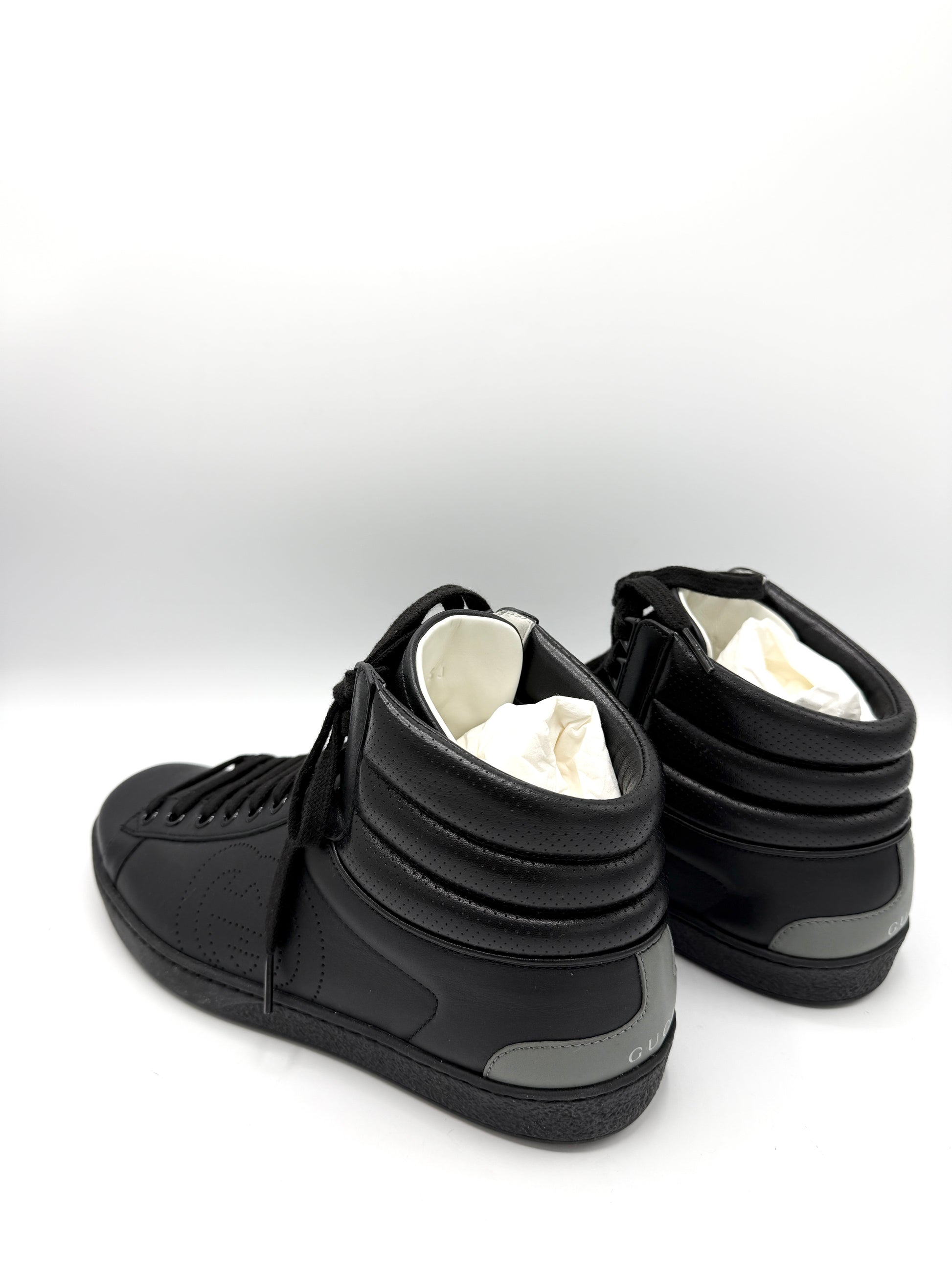100% Authentic Gucci Black Interlocking GG Perforated High Top Sneakers SZ 6 1/2