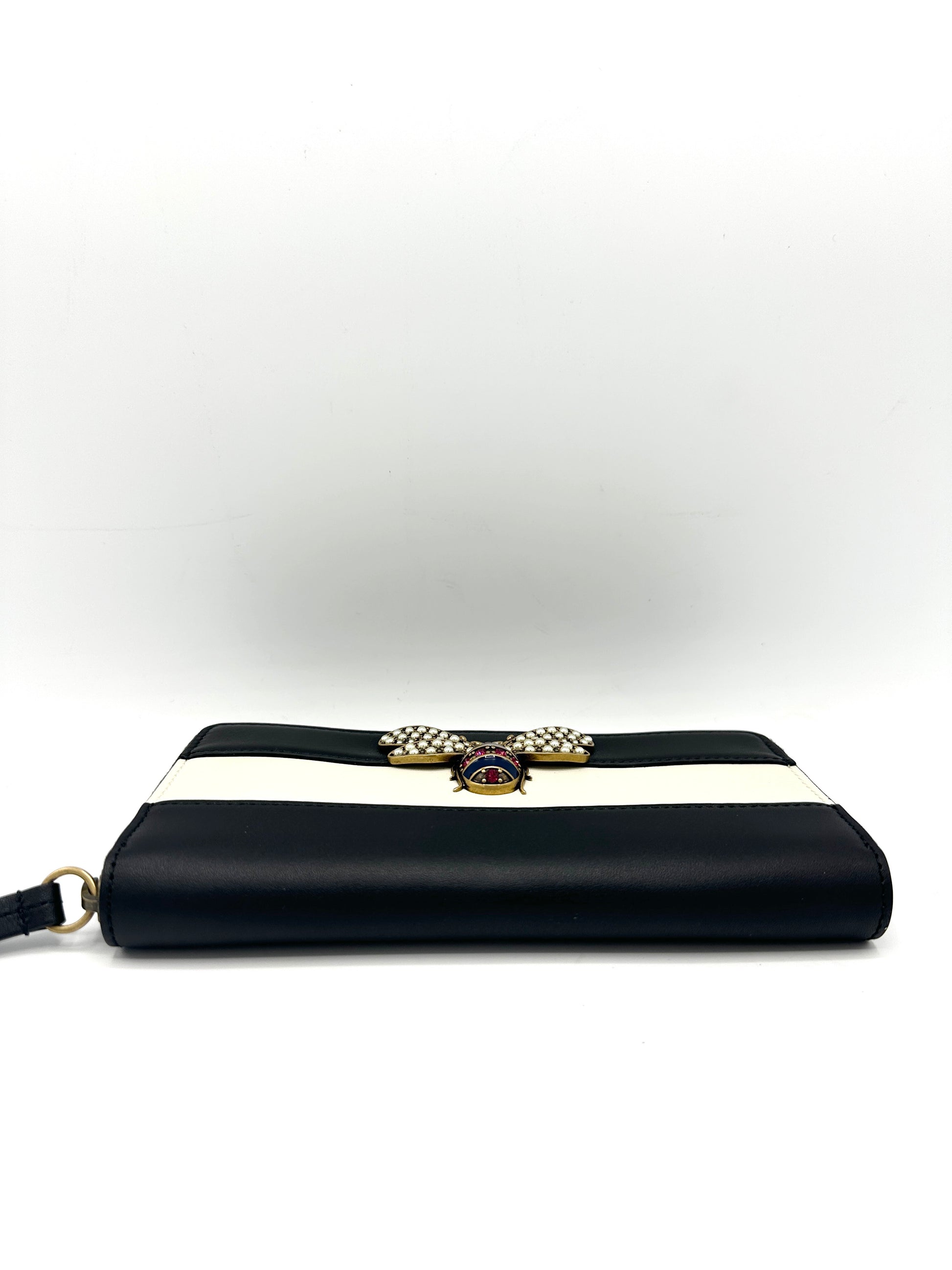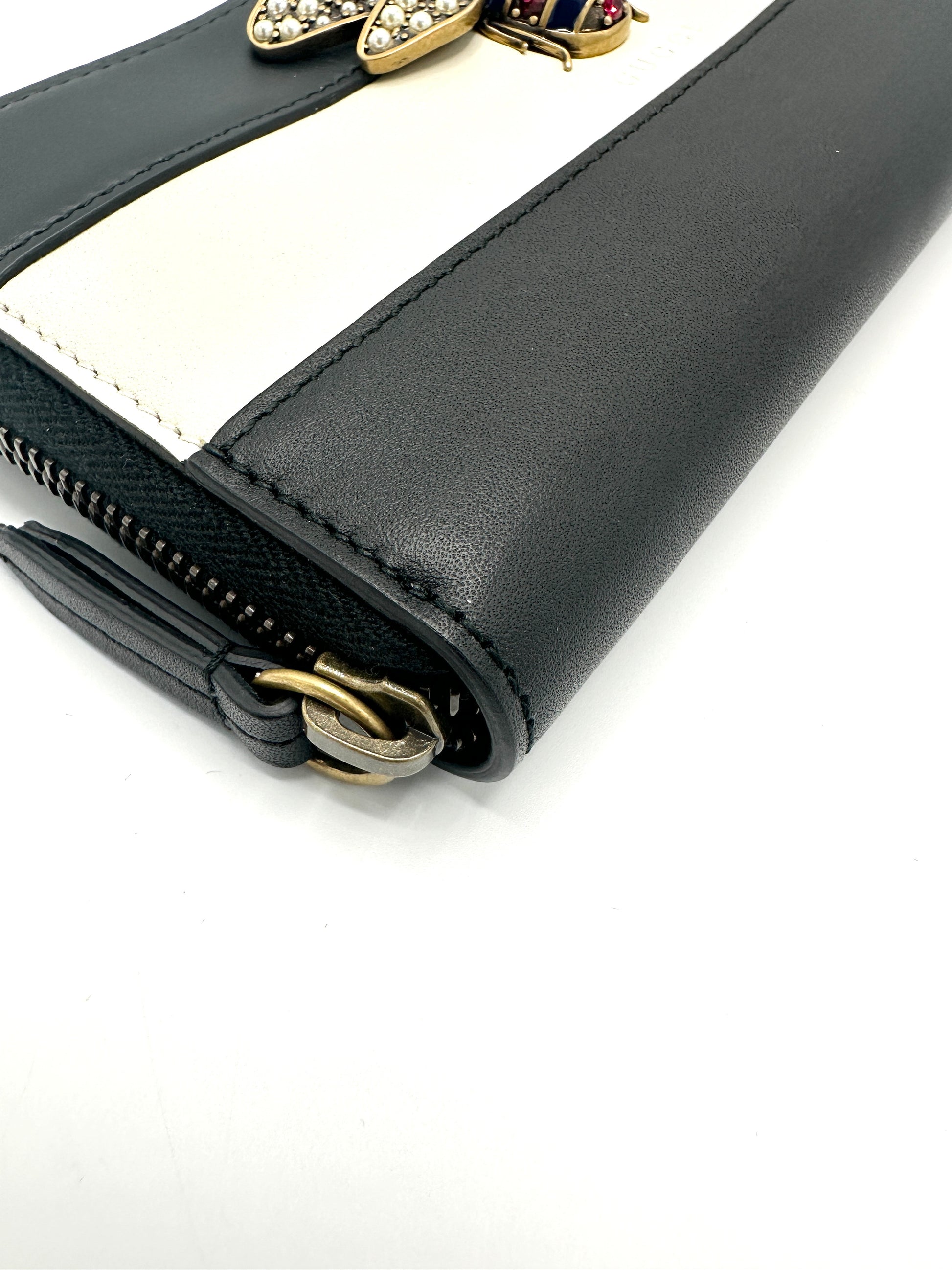 100% Authentic Gucci Black/Ivory Color Block Queen Margaret Zippy Long Wallet