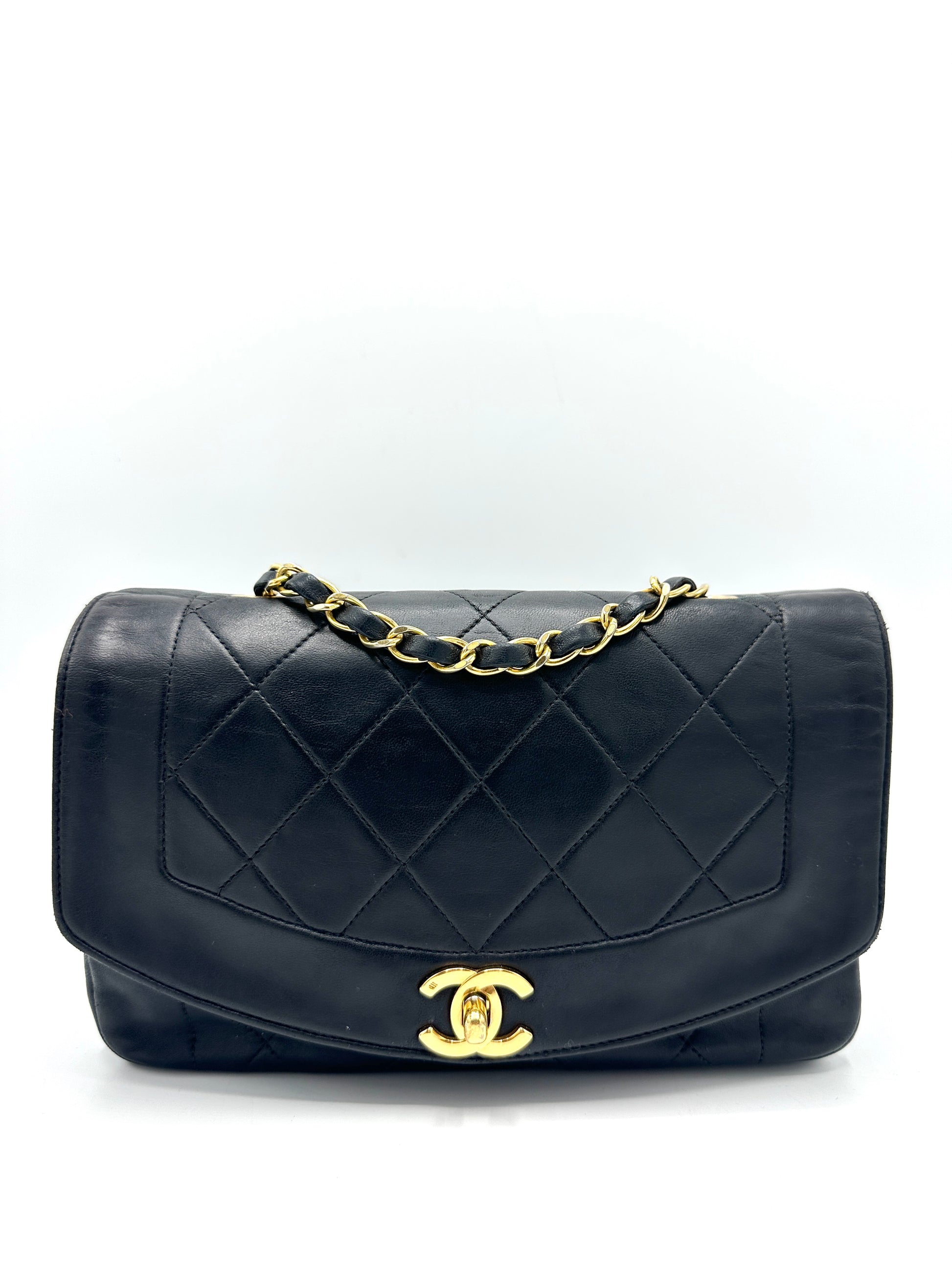 100% Authentic Chanel Black Lambskin Diana Small Flap