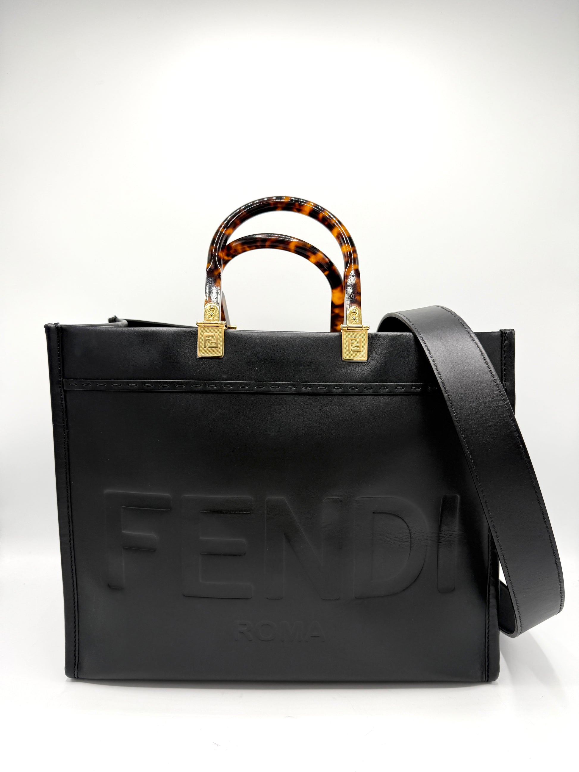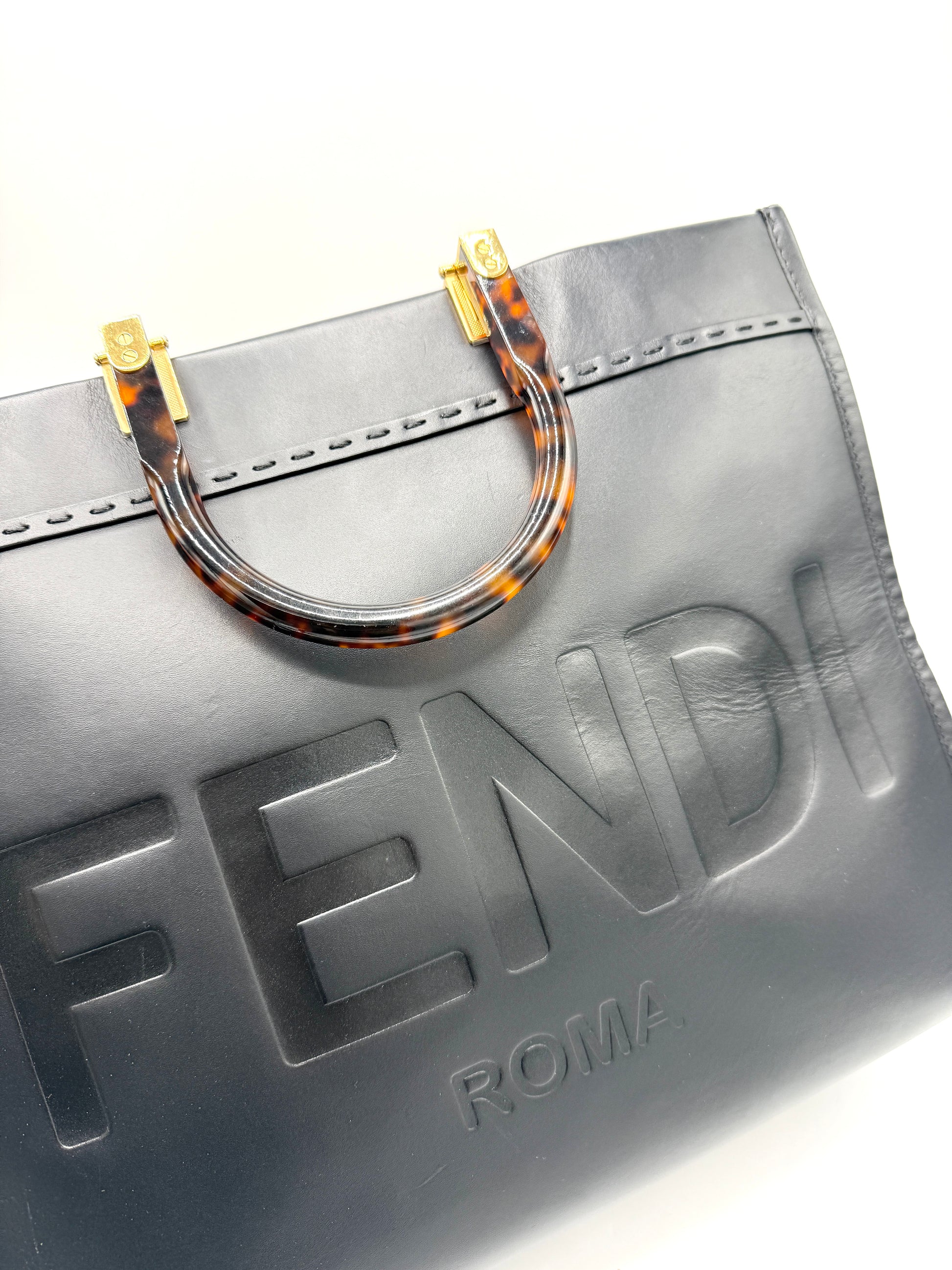 100% Authentic Fendi Black Medium Sunshine Tote