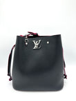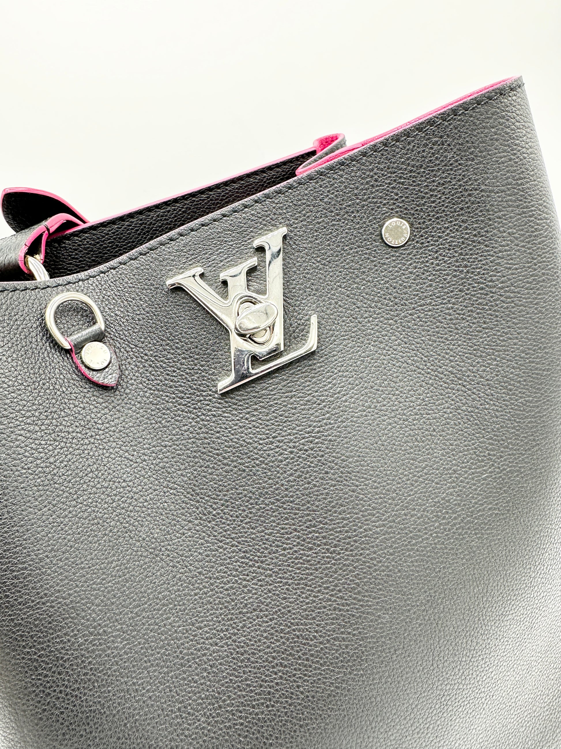 100% Authentic Louis Vuitton Black Monogram Pink Trimmed LockMe Bucket Crossbody