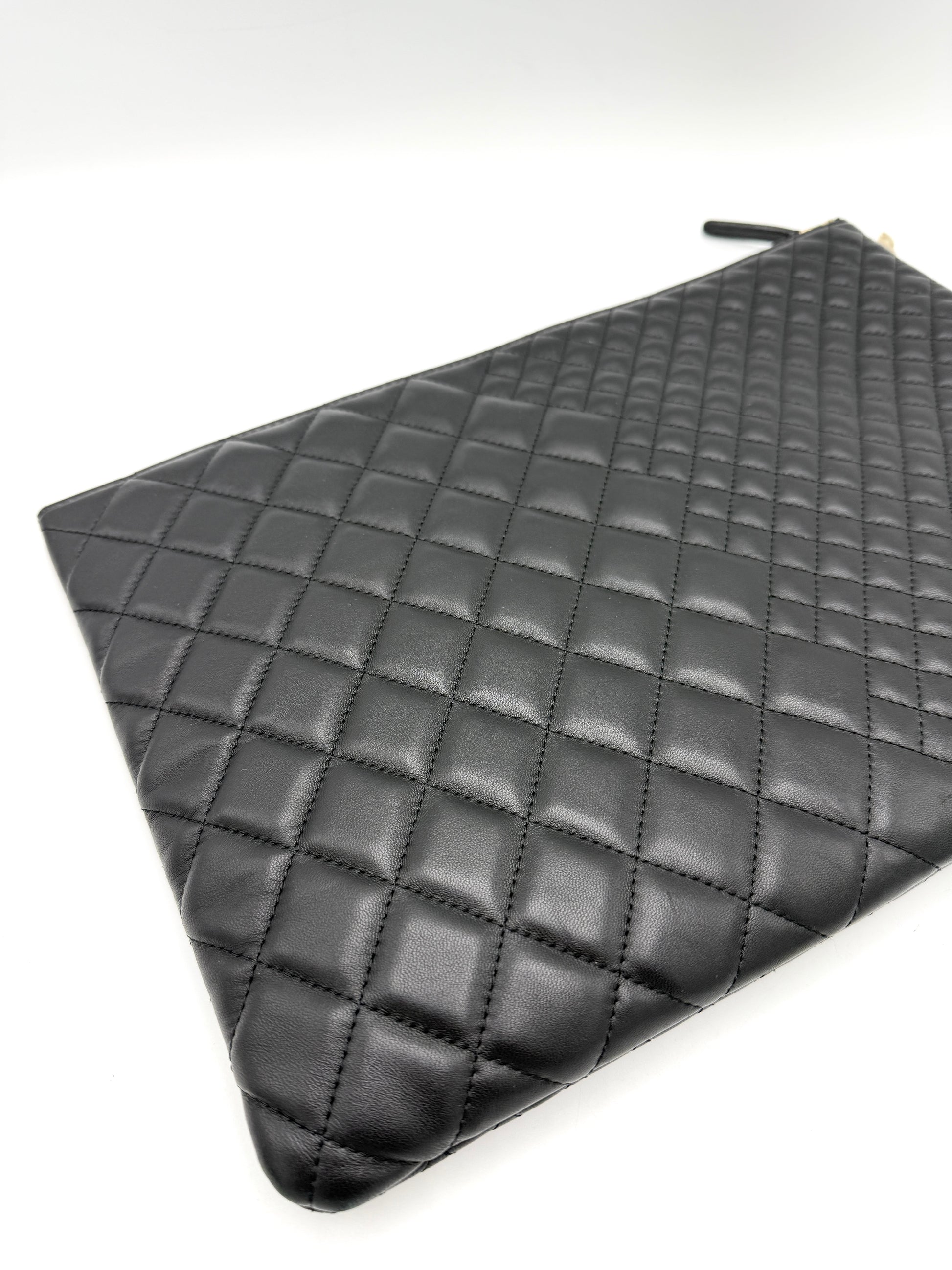 Black Multi Quilt Matelasse GHW CC Zip Clutch