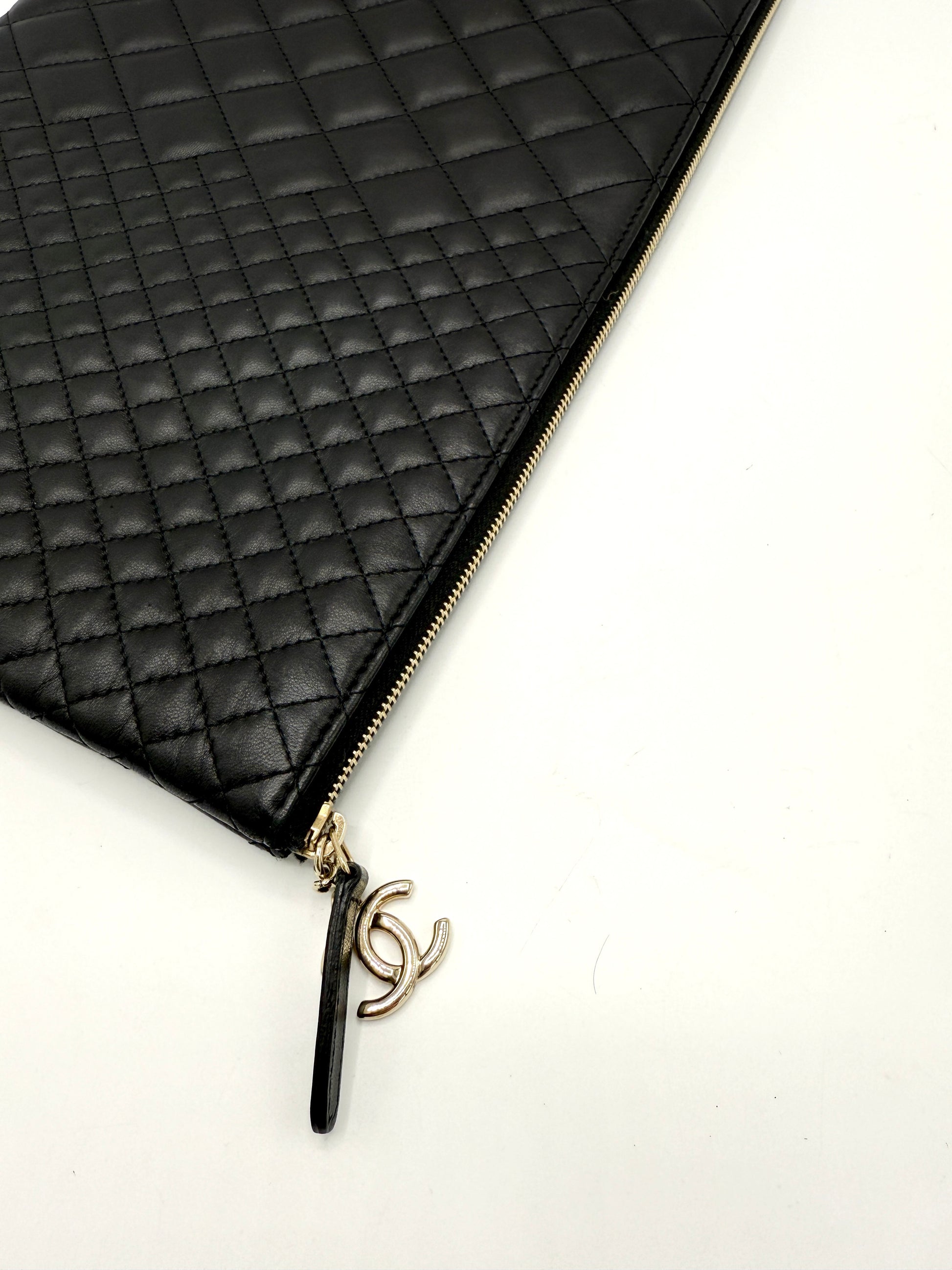100% Authentic Chanel Black Multi Quilt Matelasse GHW CC Zip Clutch