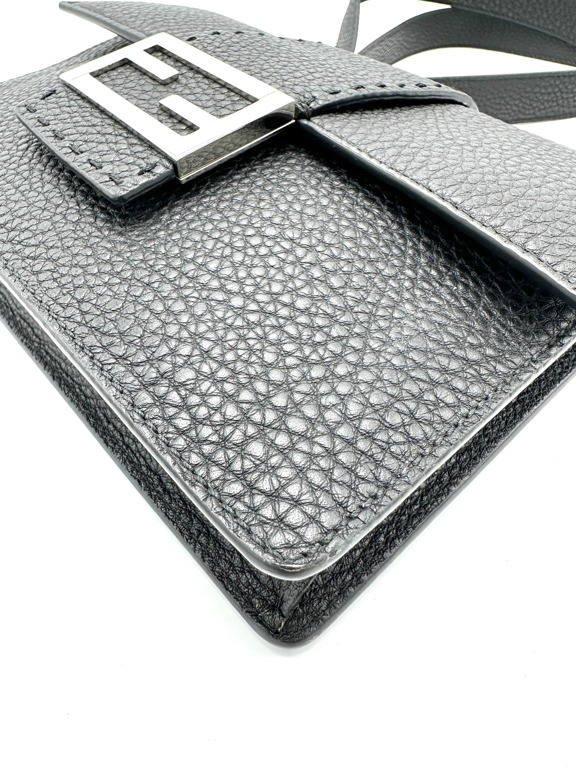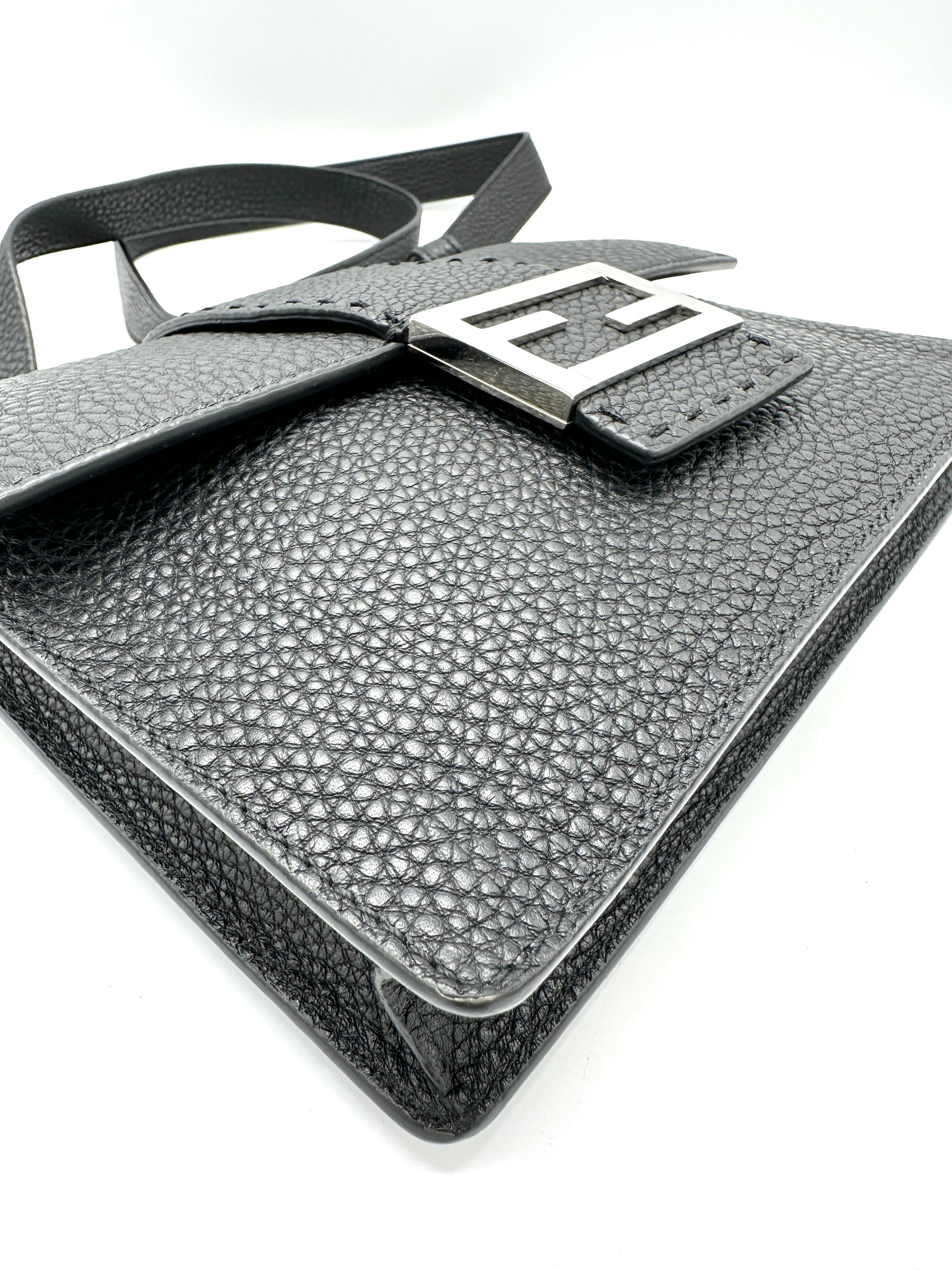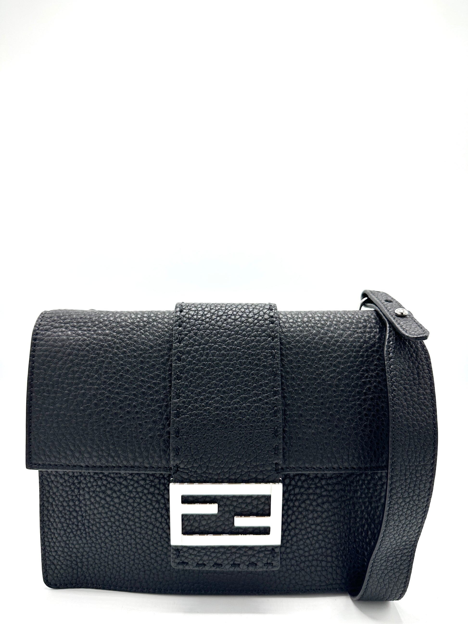 100% Authentic Fendi Black Pebbled Leather SHW Crossbody