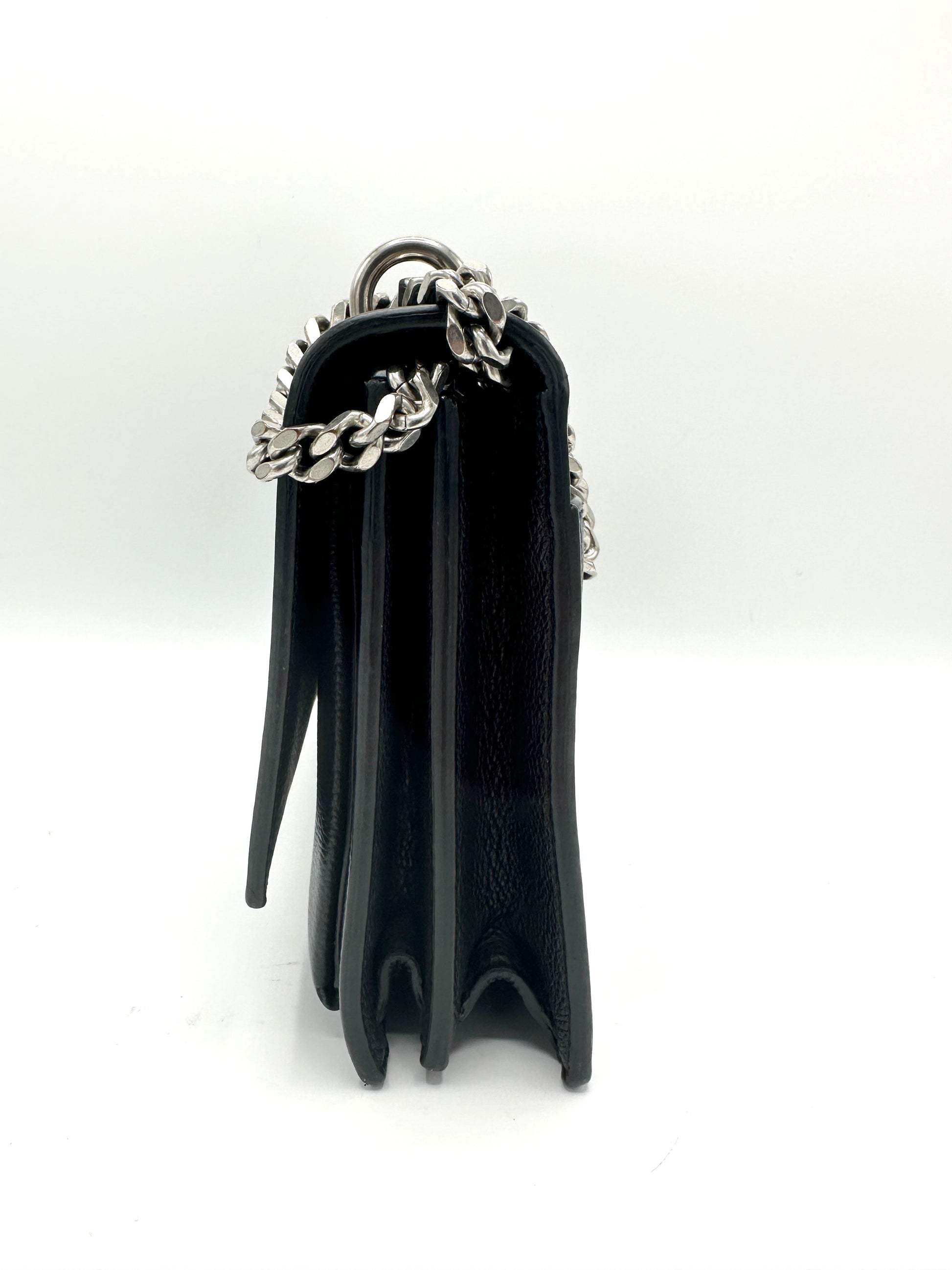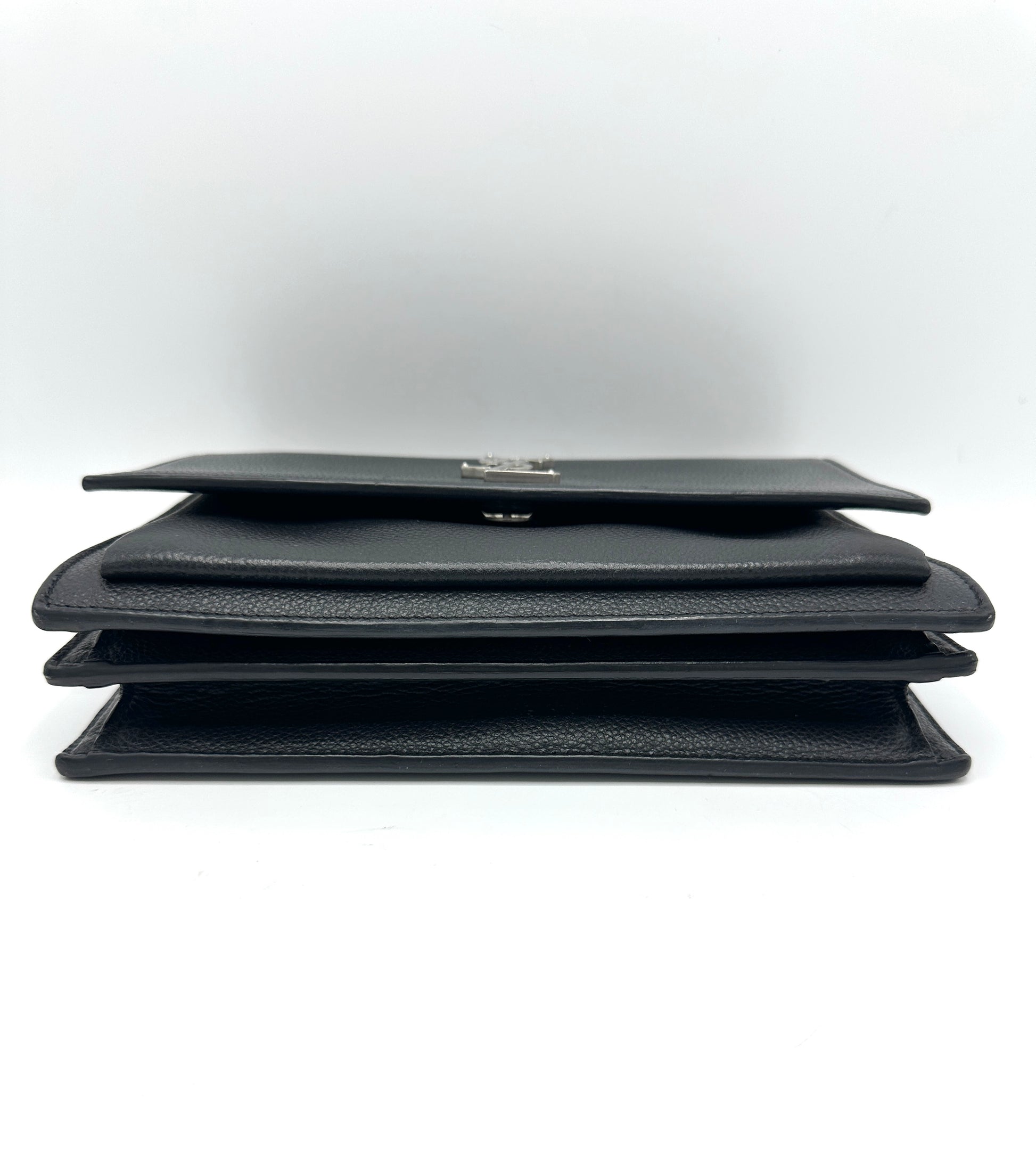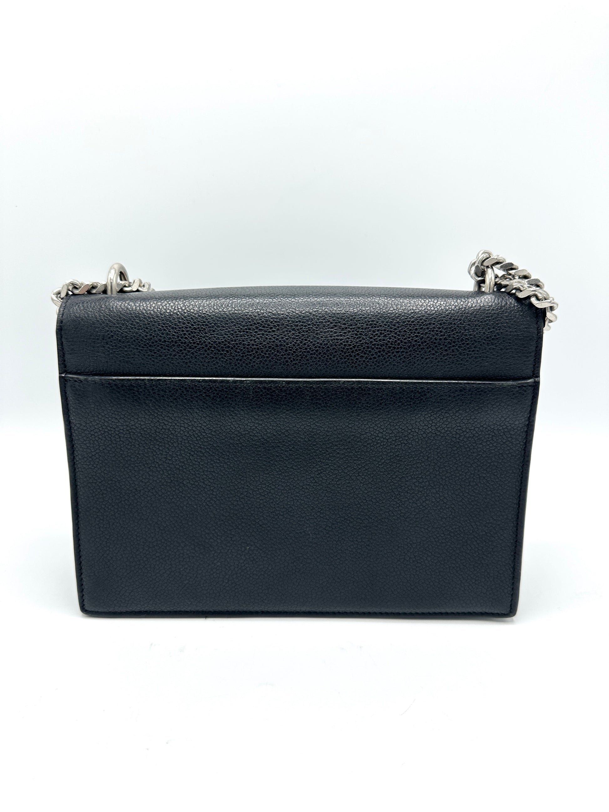 100% Authentic Saint Laurent Black Pebbled Leather SHW Sunset Chain Flap