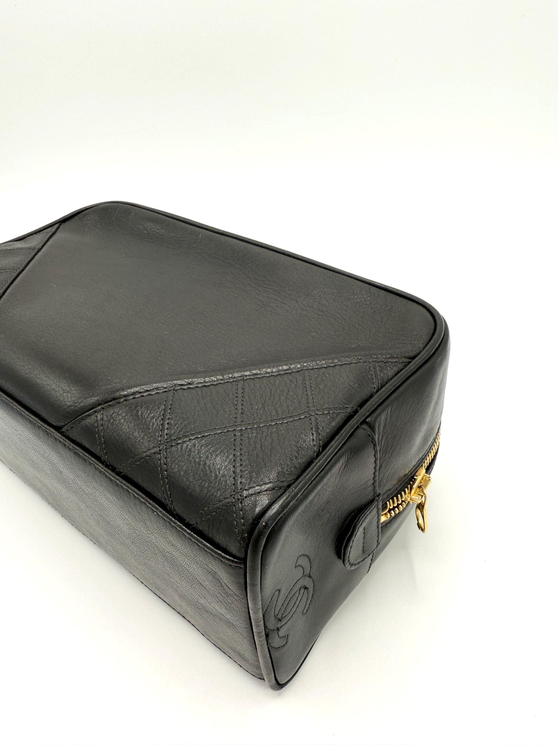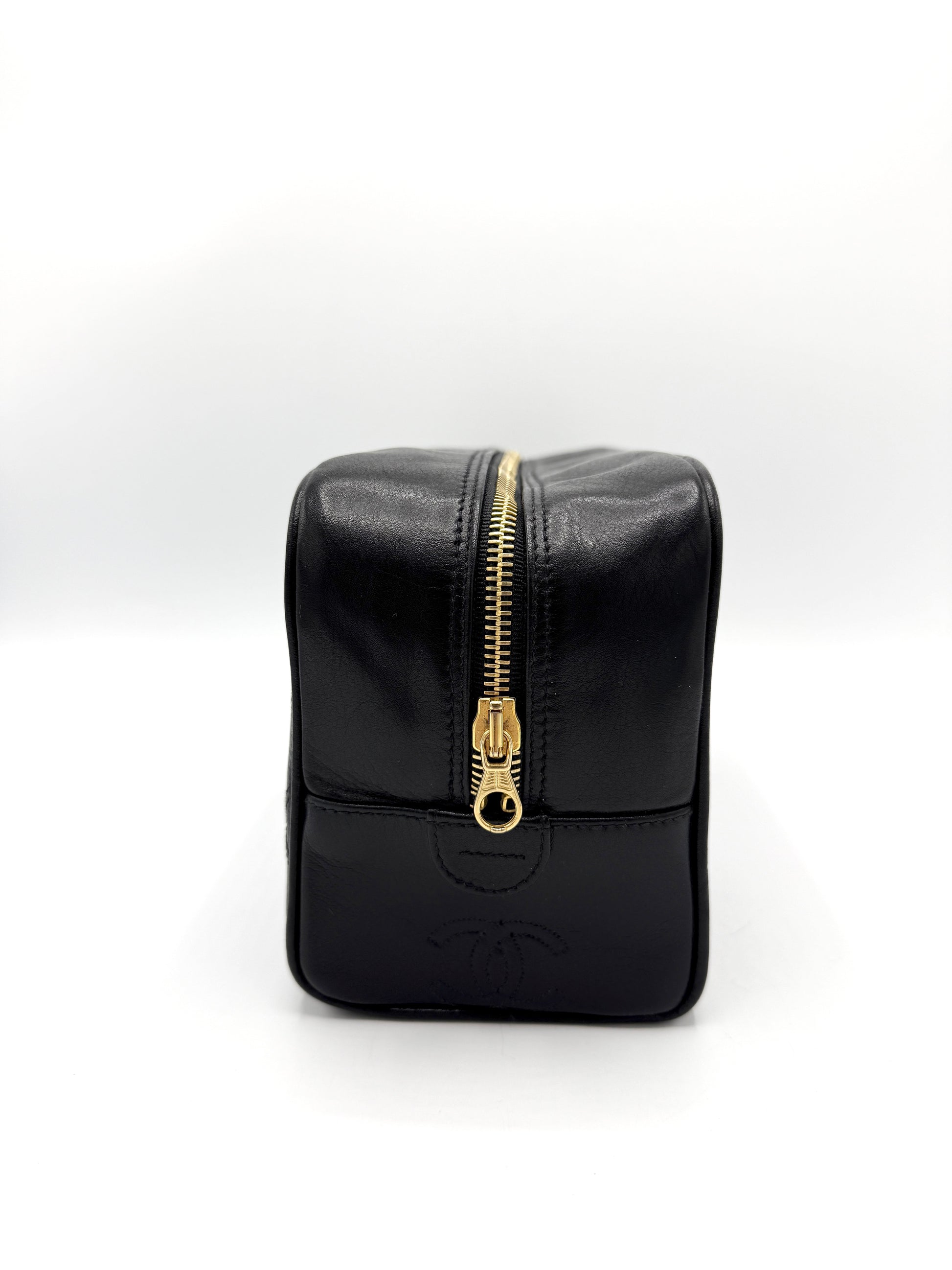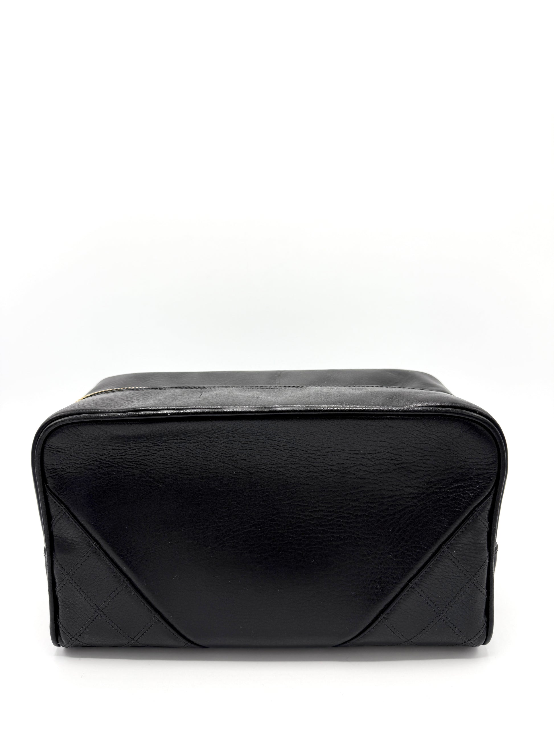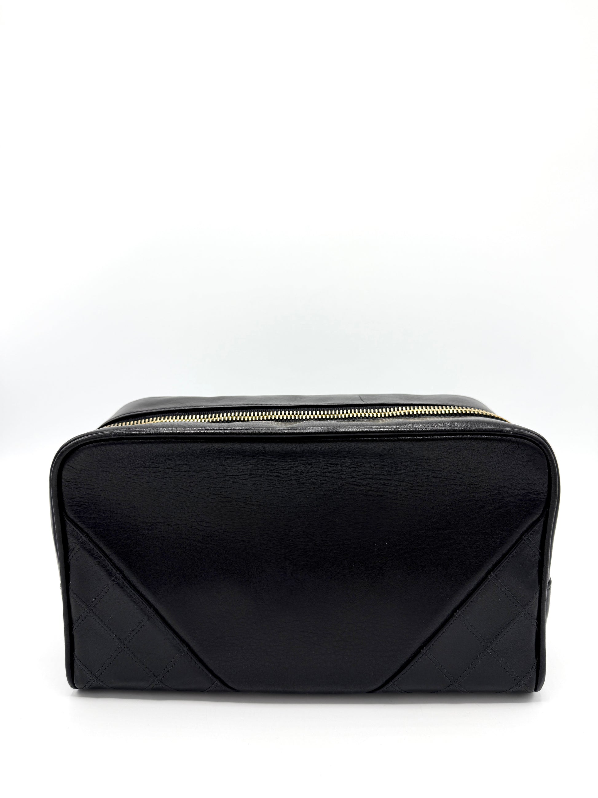 100% Authentic Chanel Black Quilted Zip Toiletry Pouch