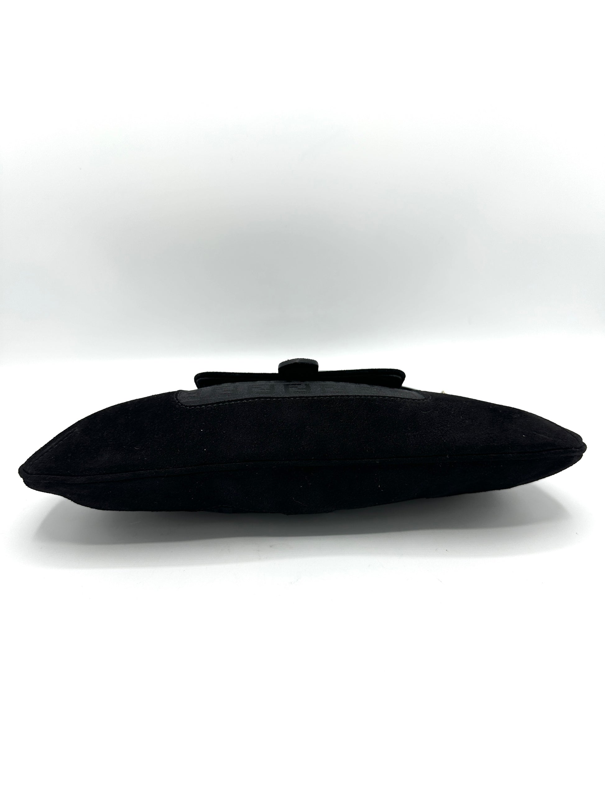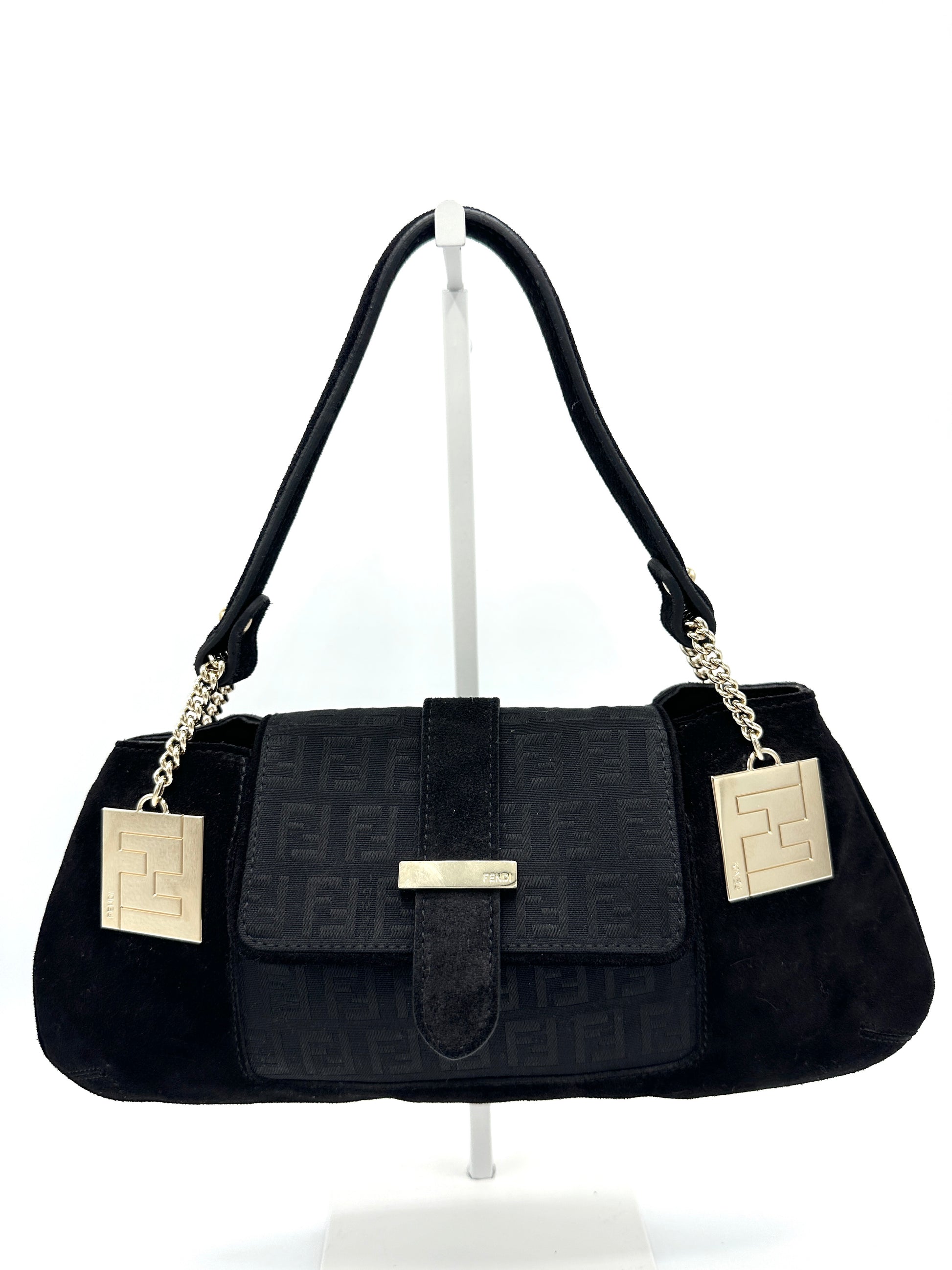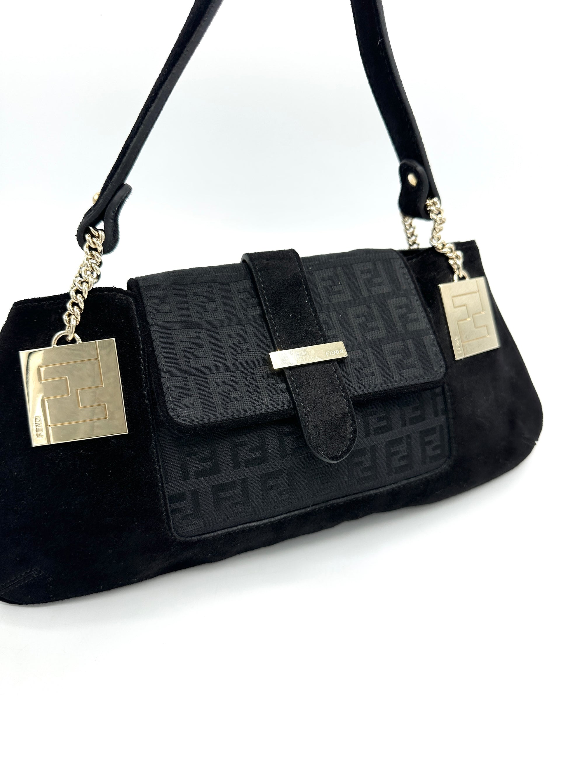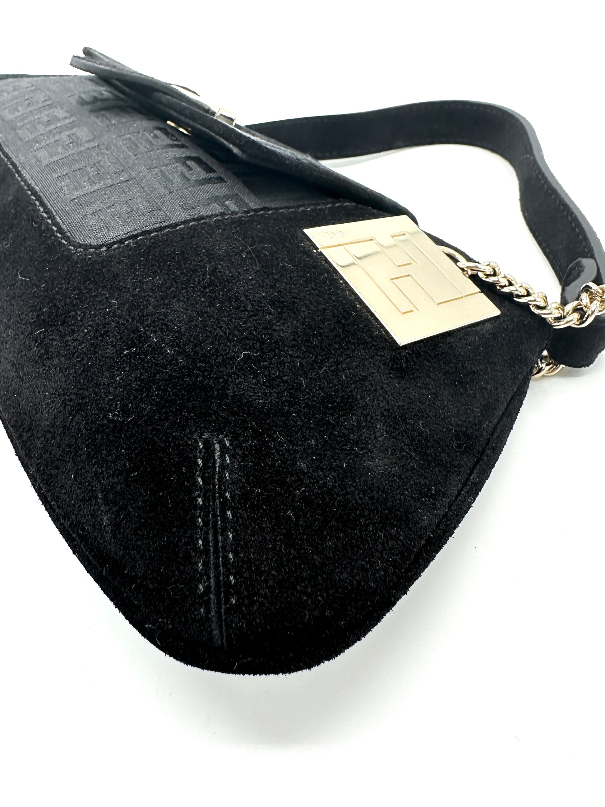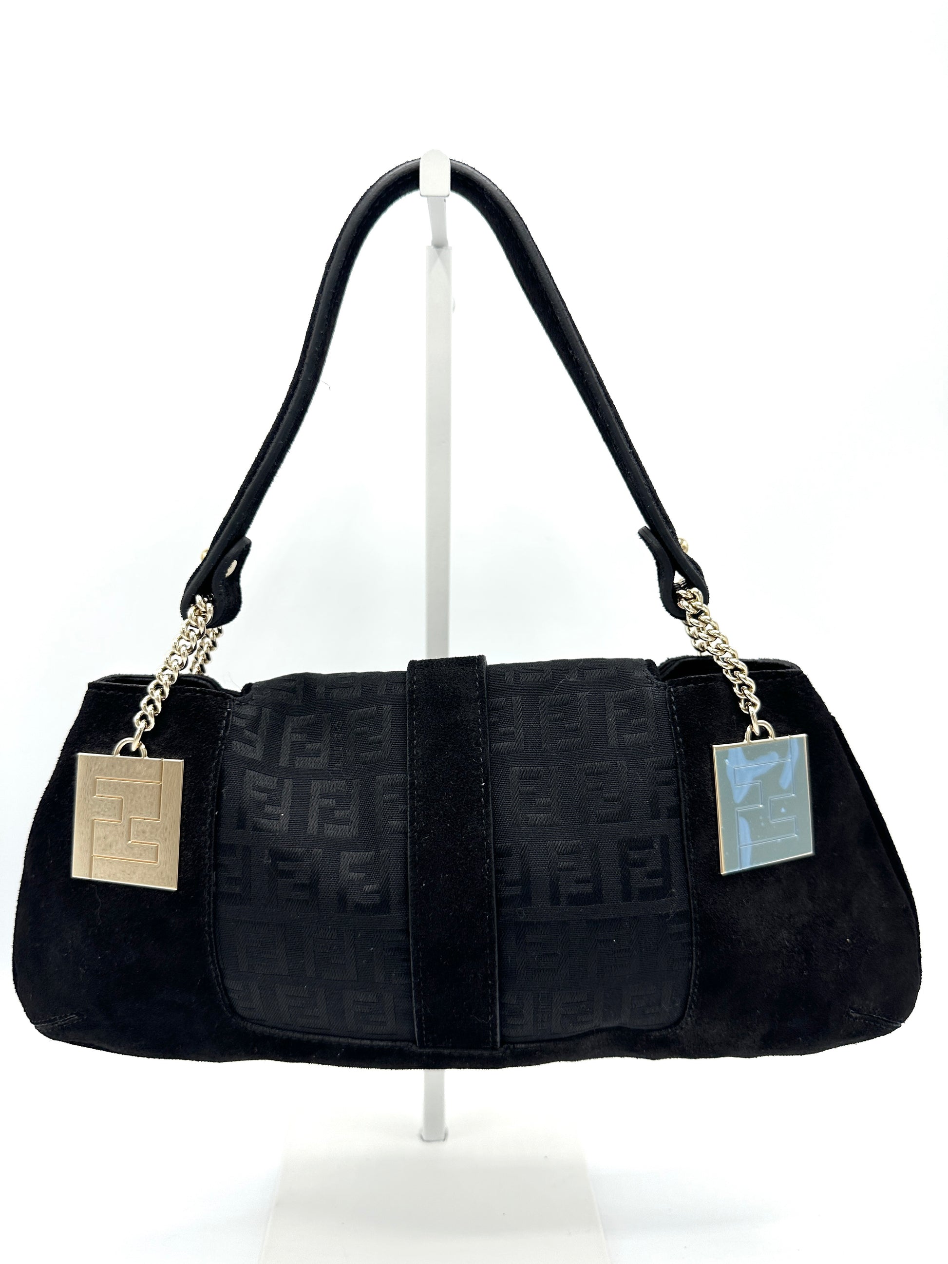100% Authentic Fendi Black Suede GHW Square Logo Shoulder Bag