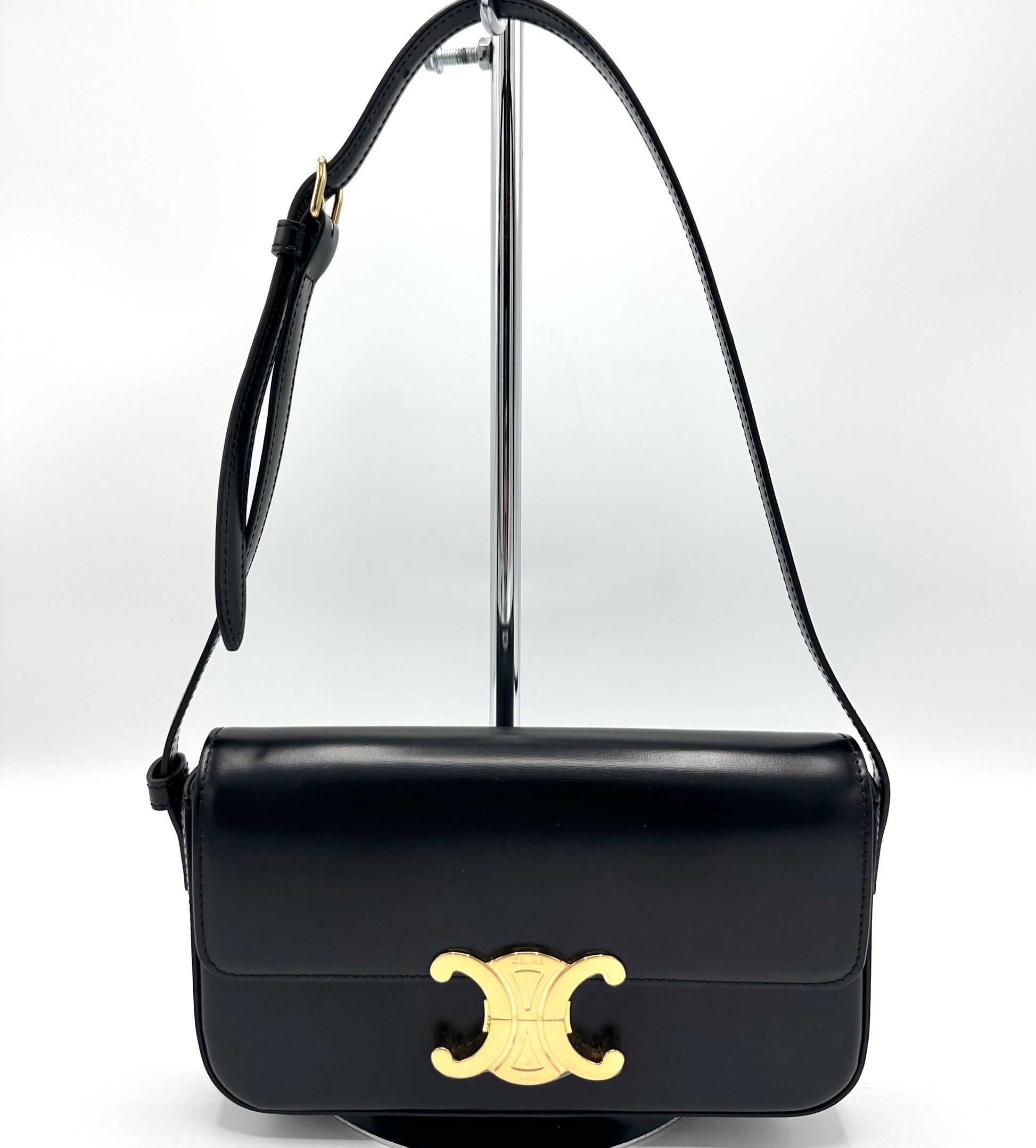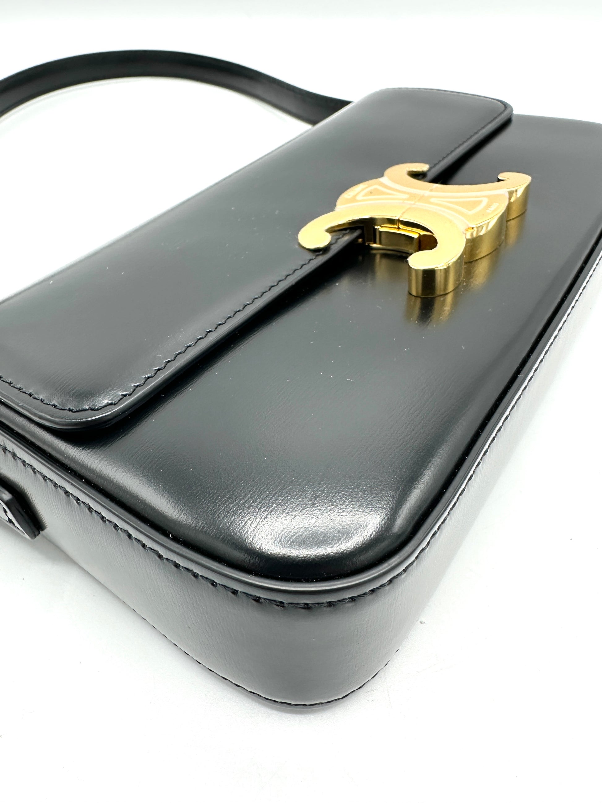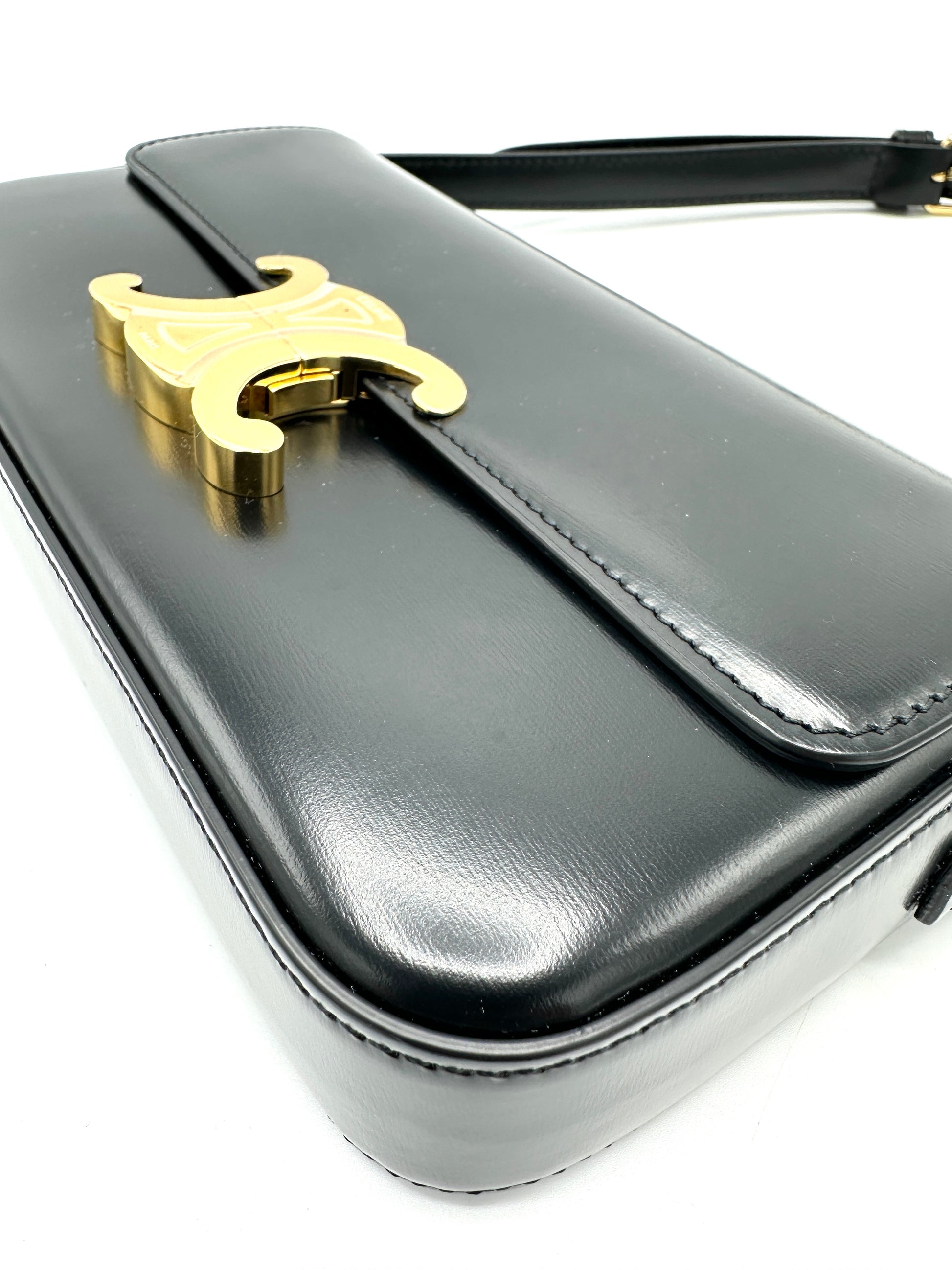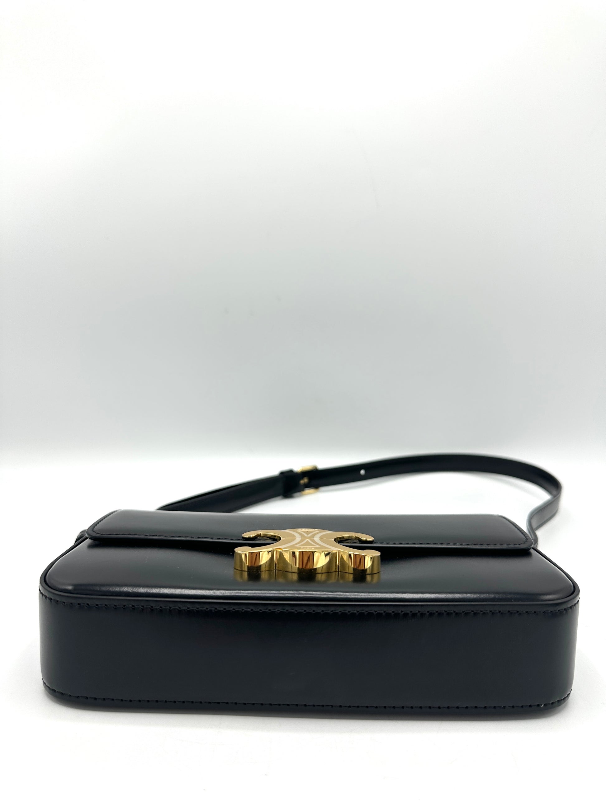 100% Authentic Celine Black Triomphe East West Flap Crossbody