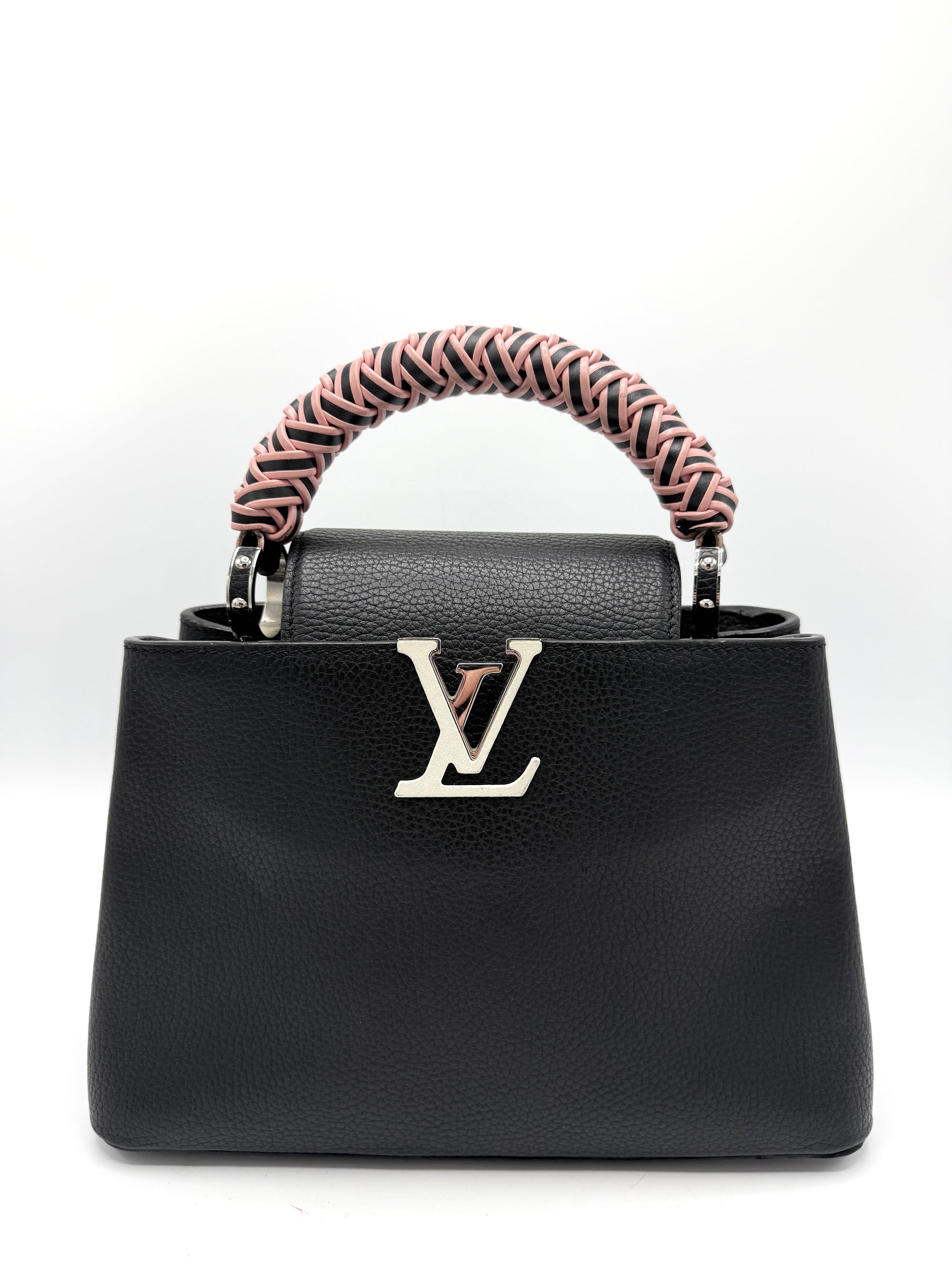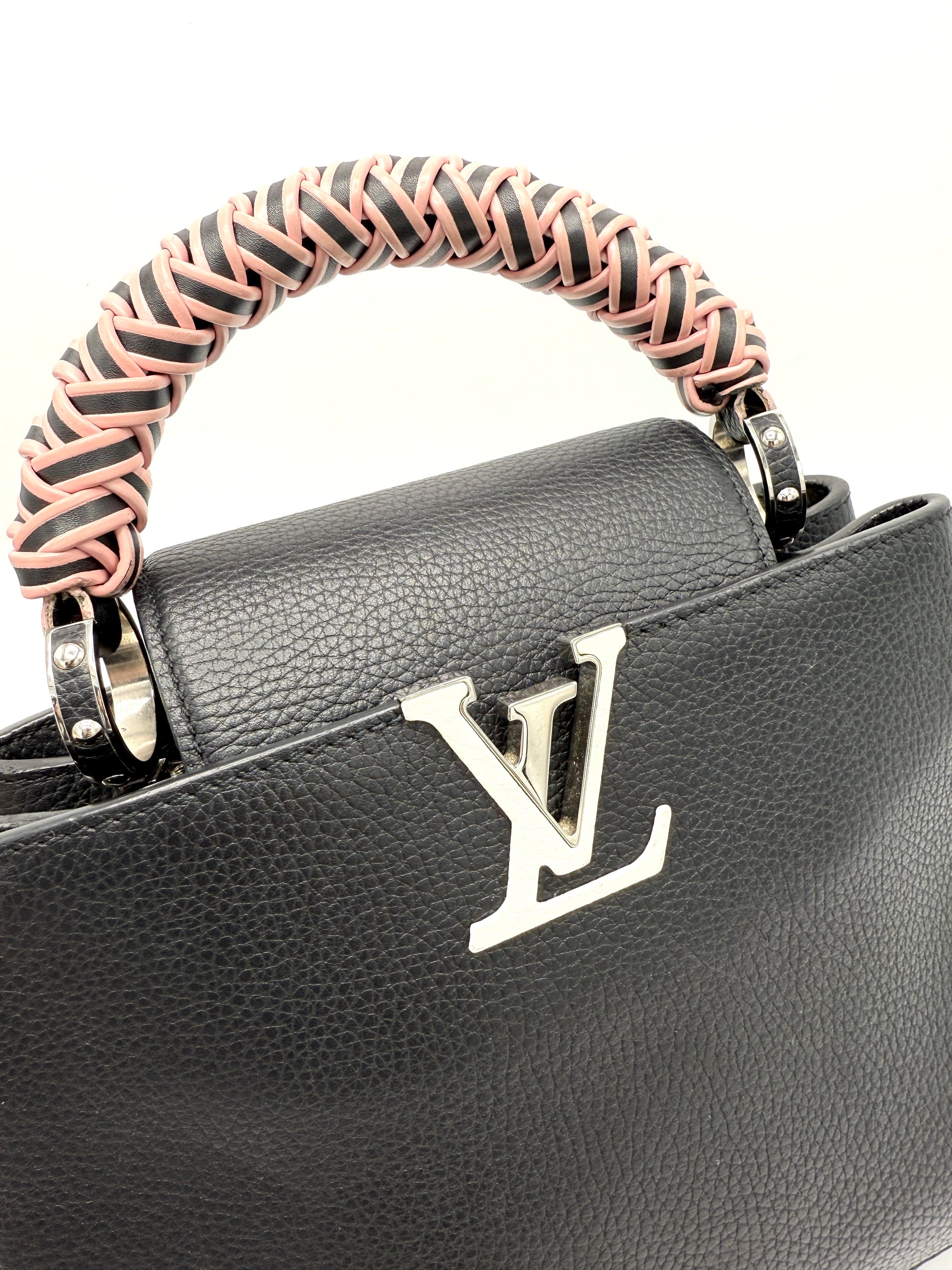 100% Authentic Louis Vuitton Black Weaved Chain Capucines BB