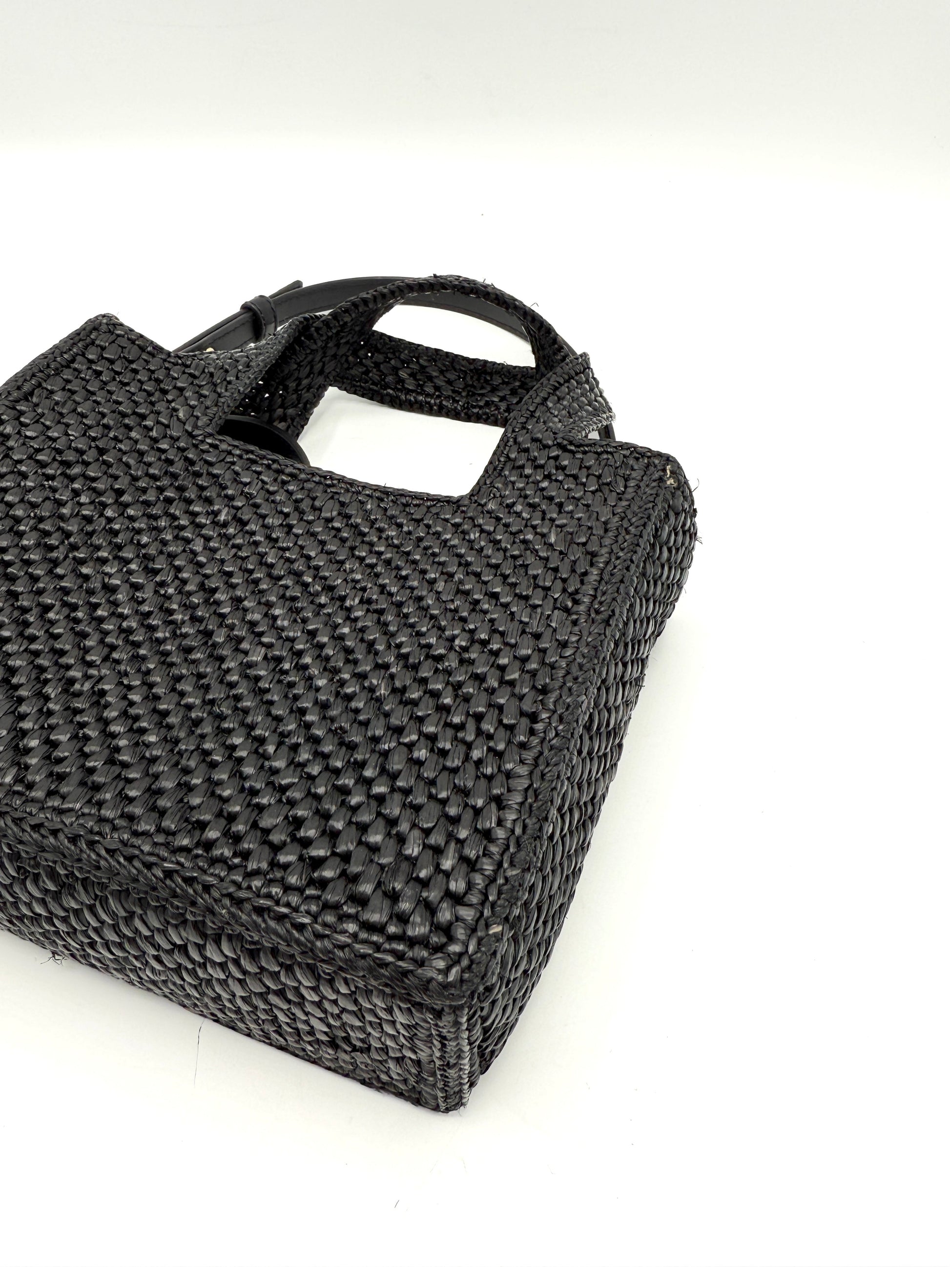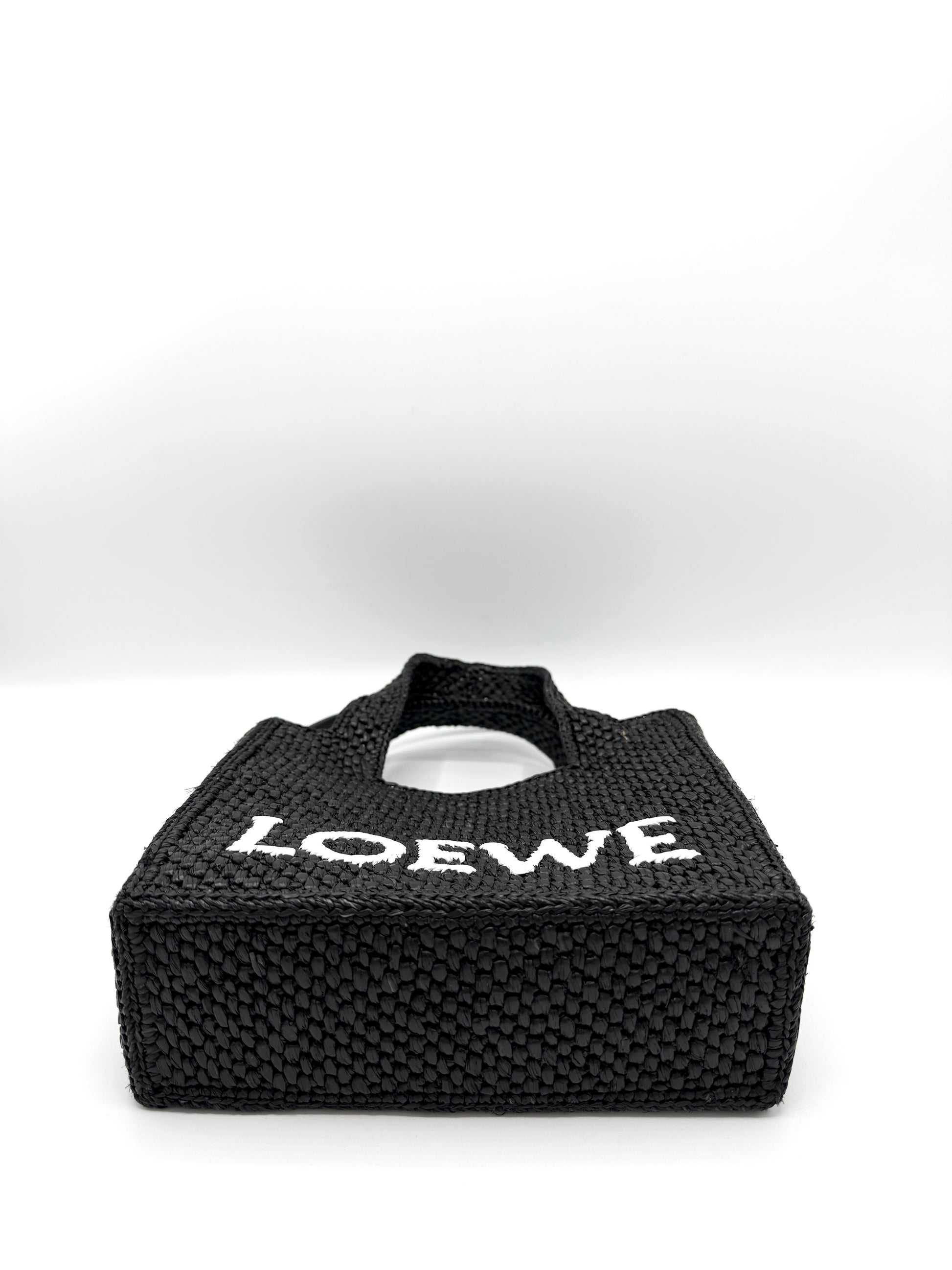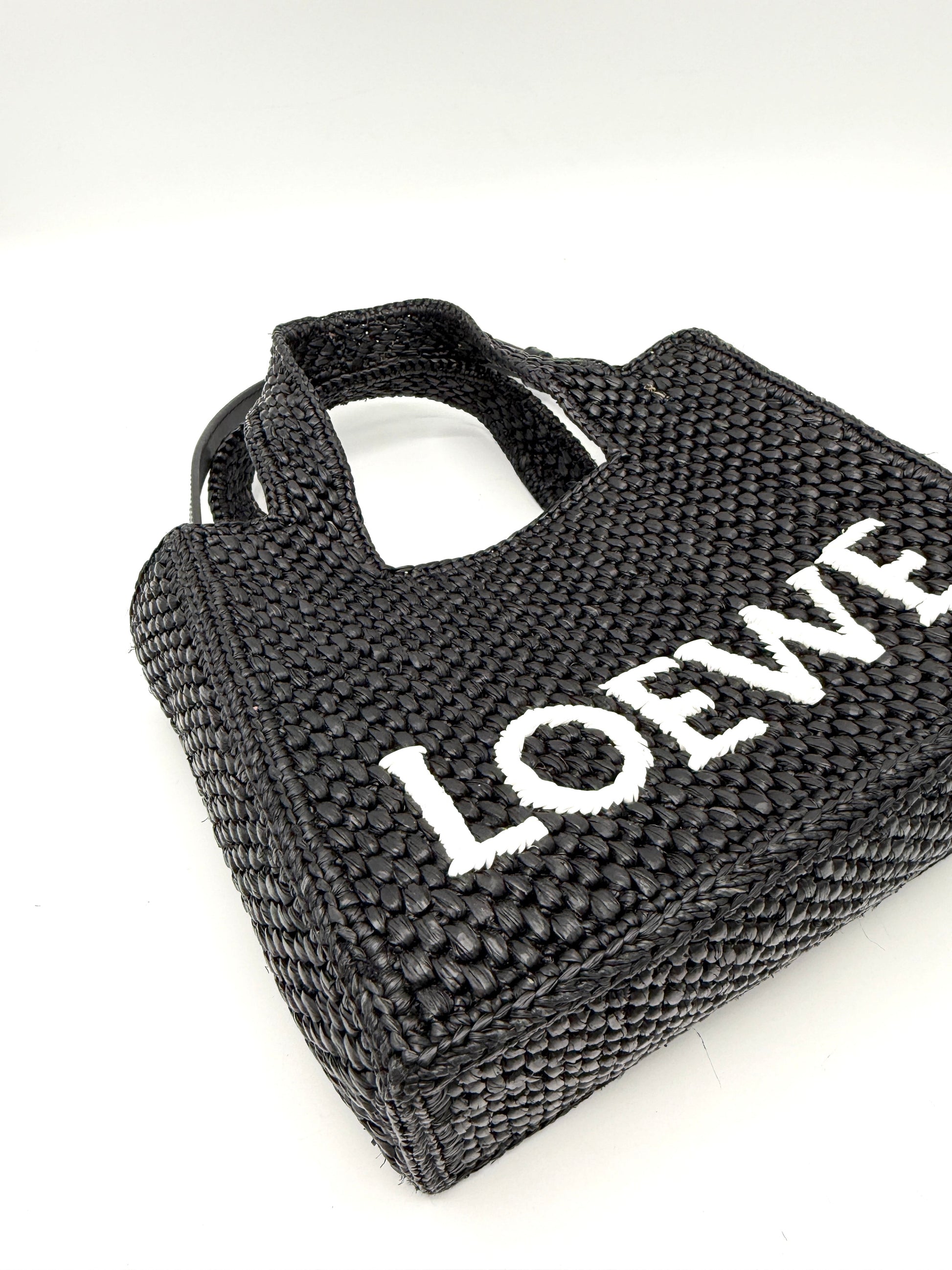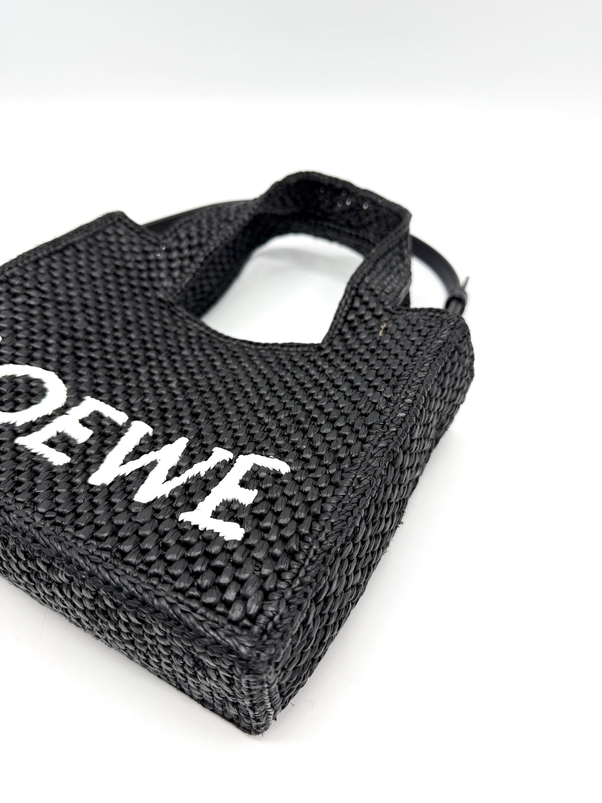 100% Authentic Loewe Black Weaved Raffia Logo Tote