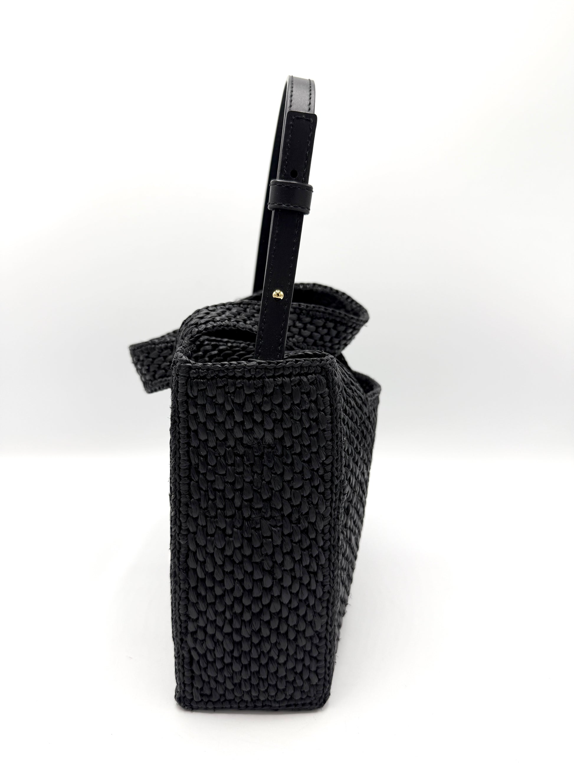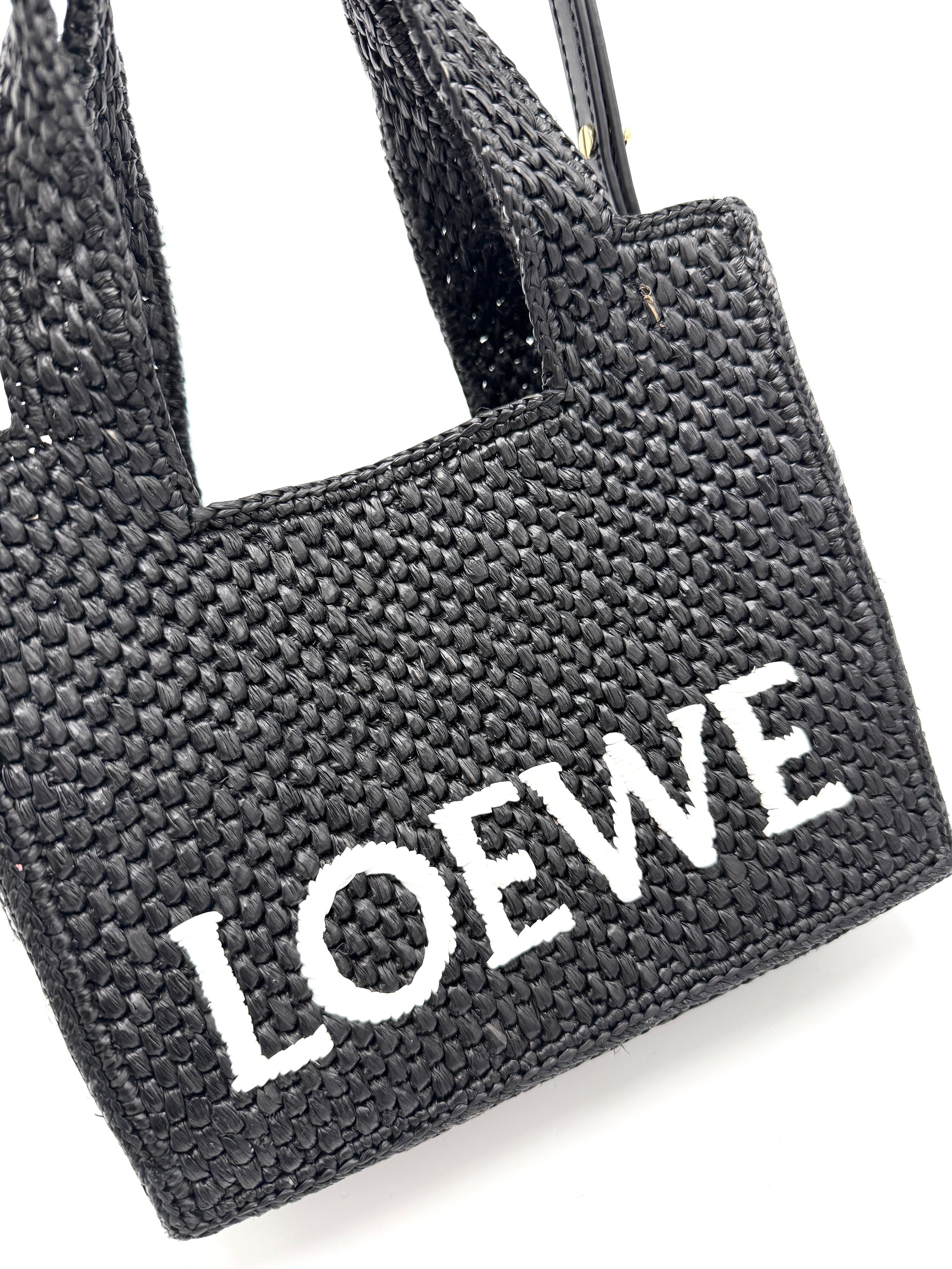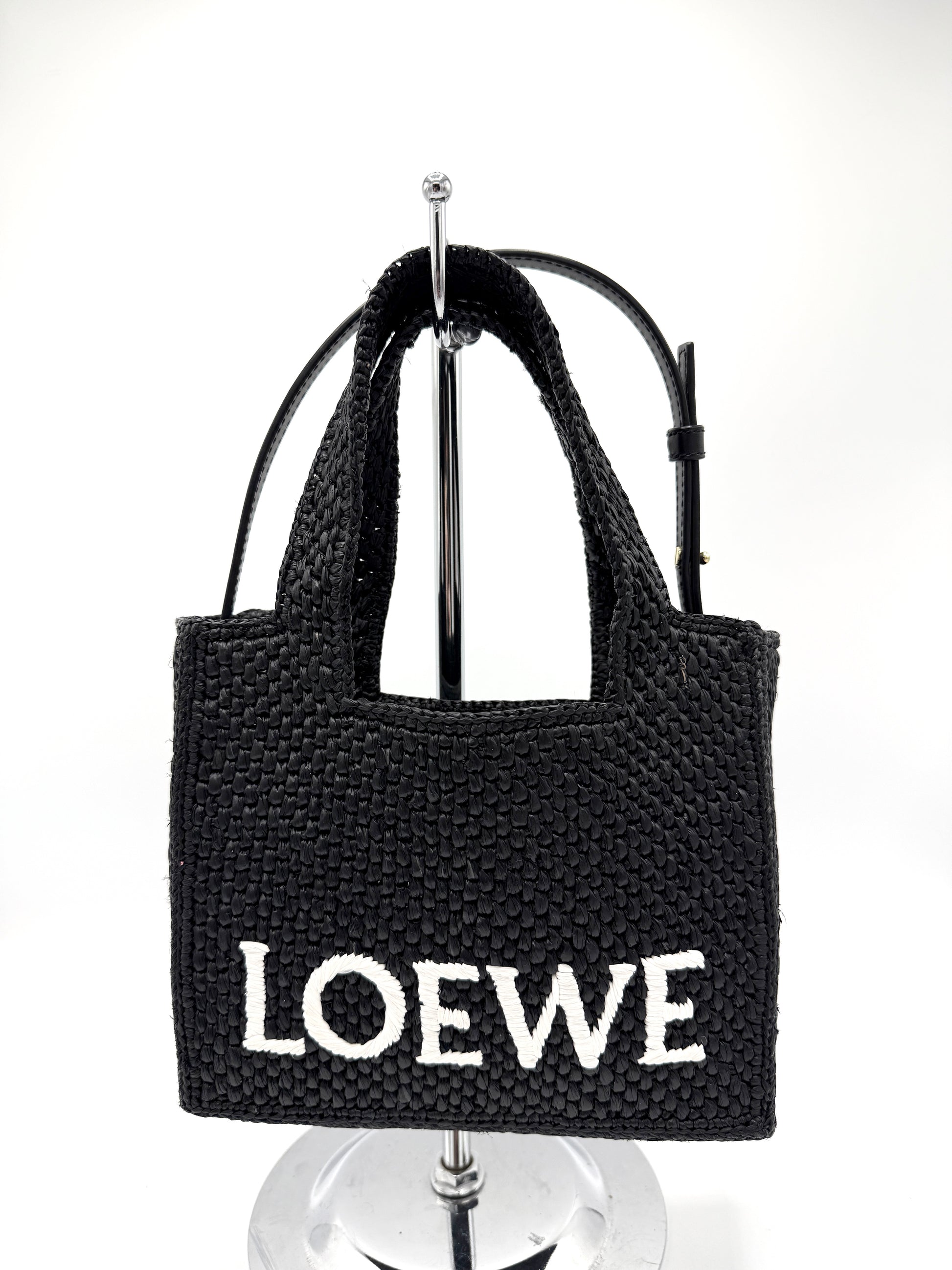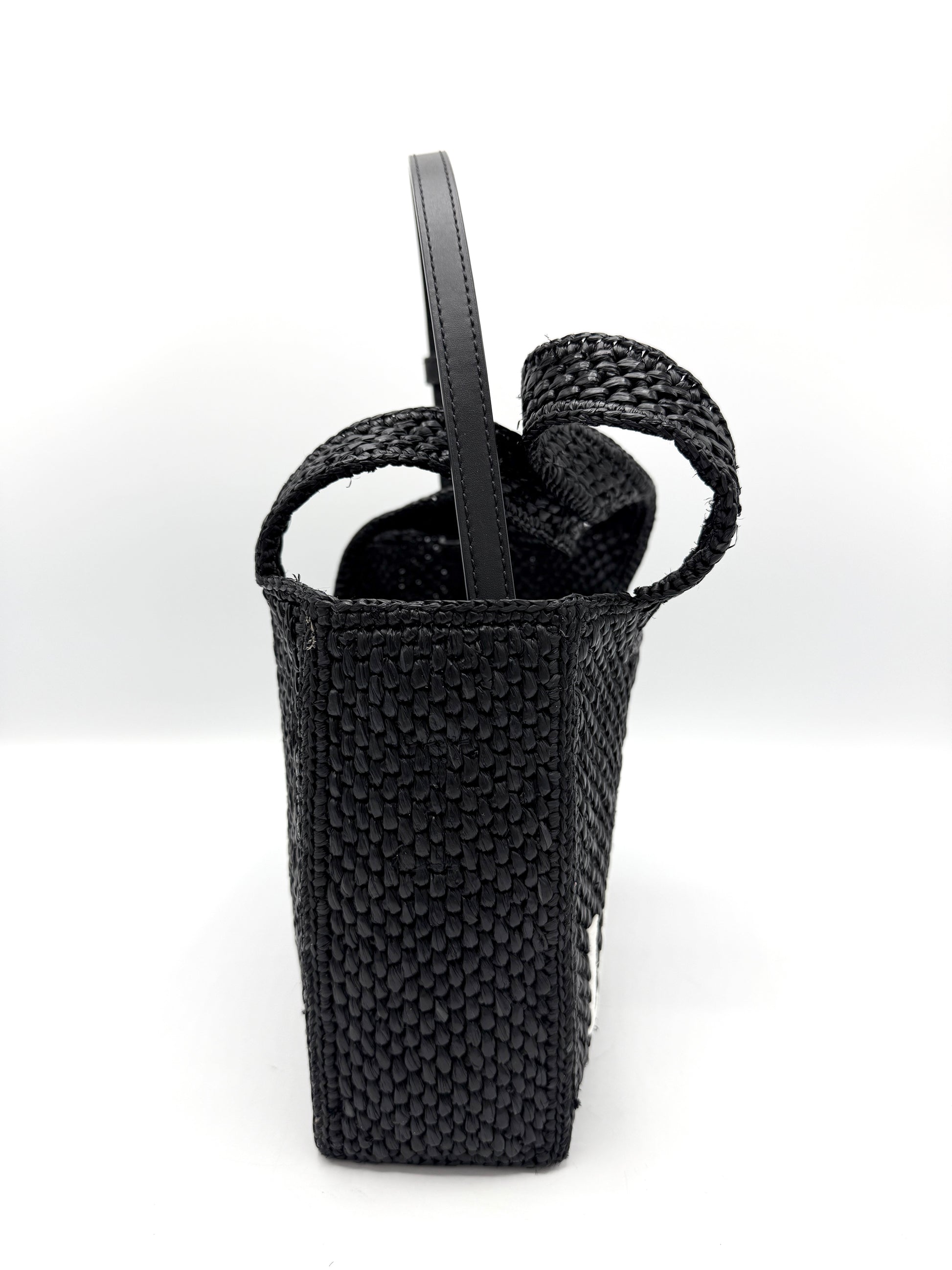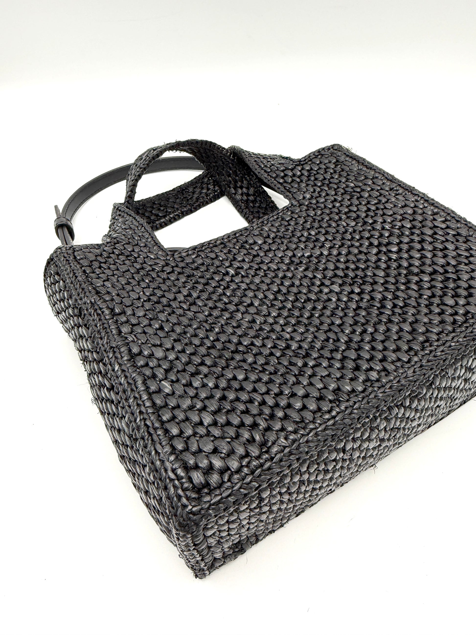 100% Authentic Loewe Black Weaved Raffia Logo Tote