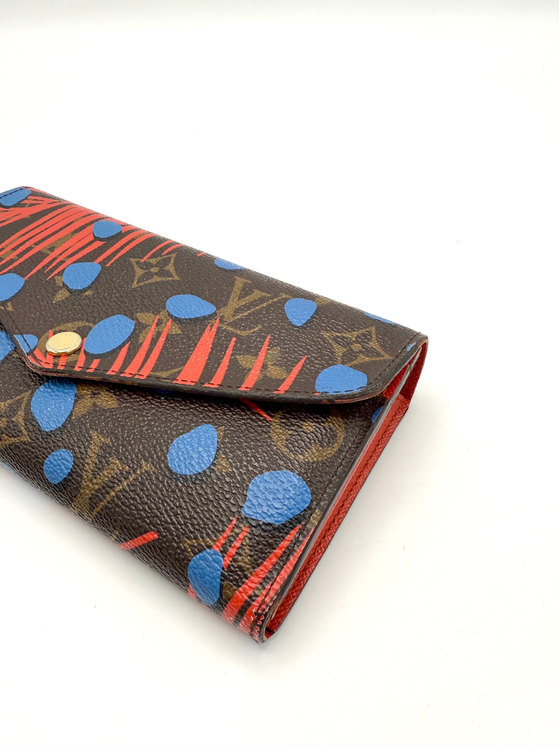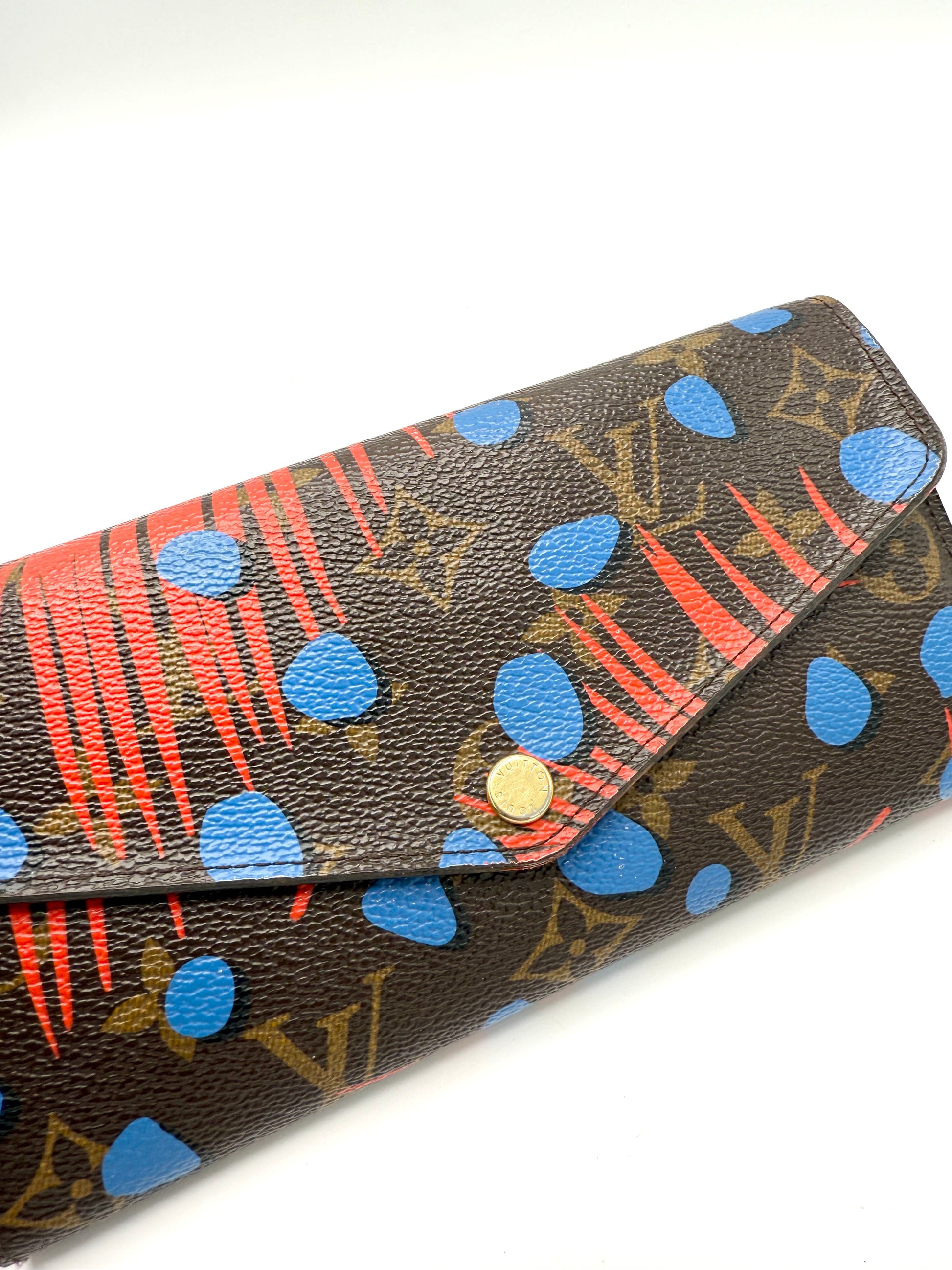 100% Authentic Louis Vuitton Blue/Red Monogram Jungle Dots Flap Wallet